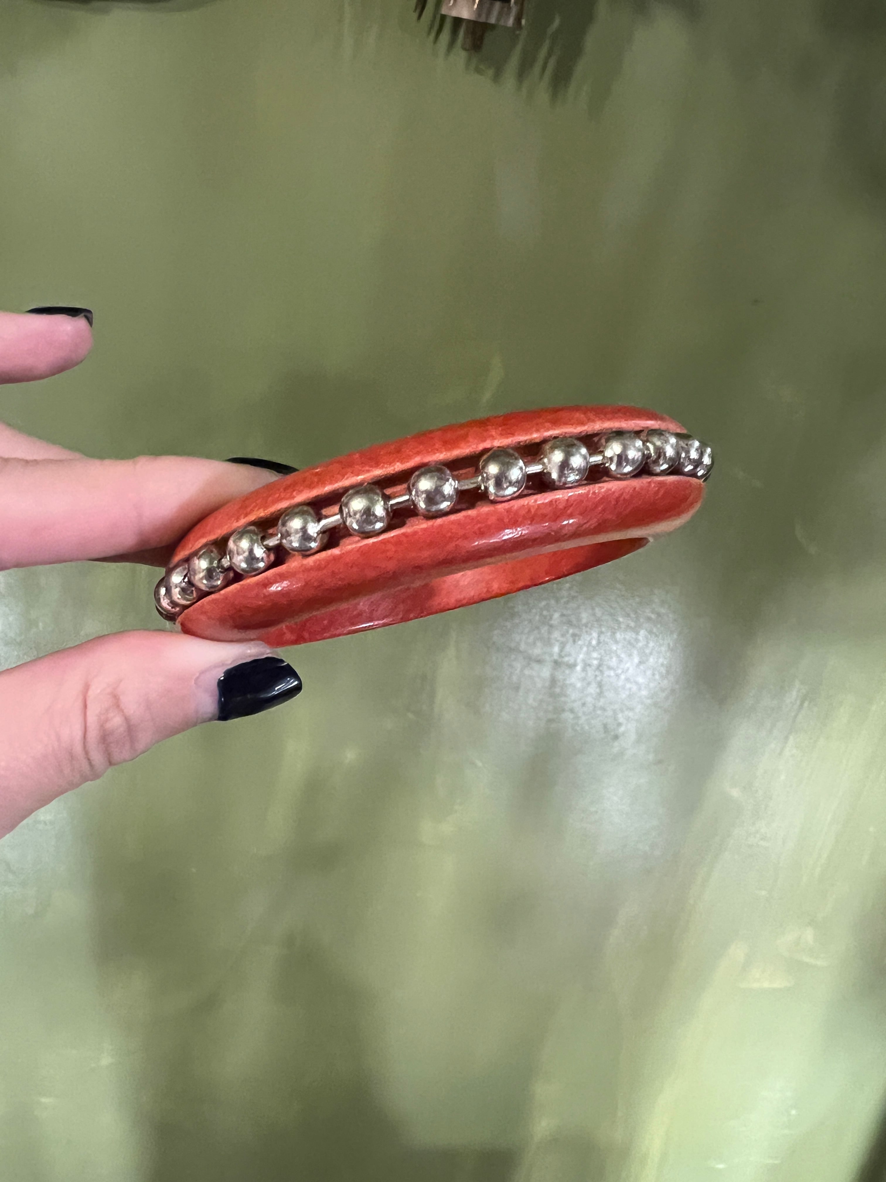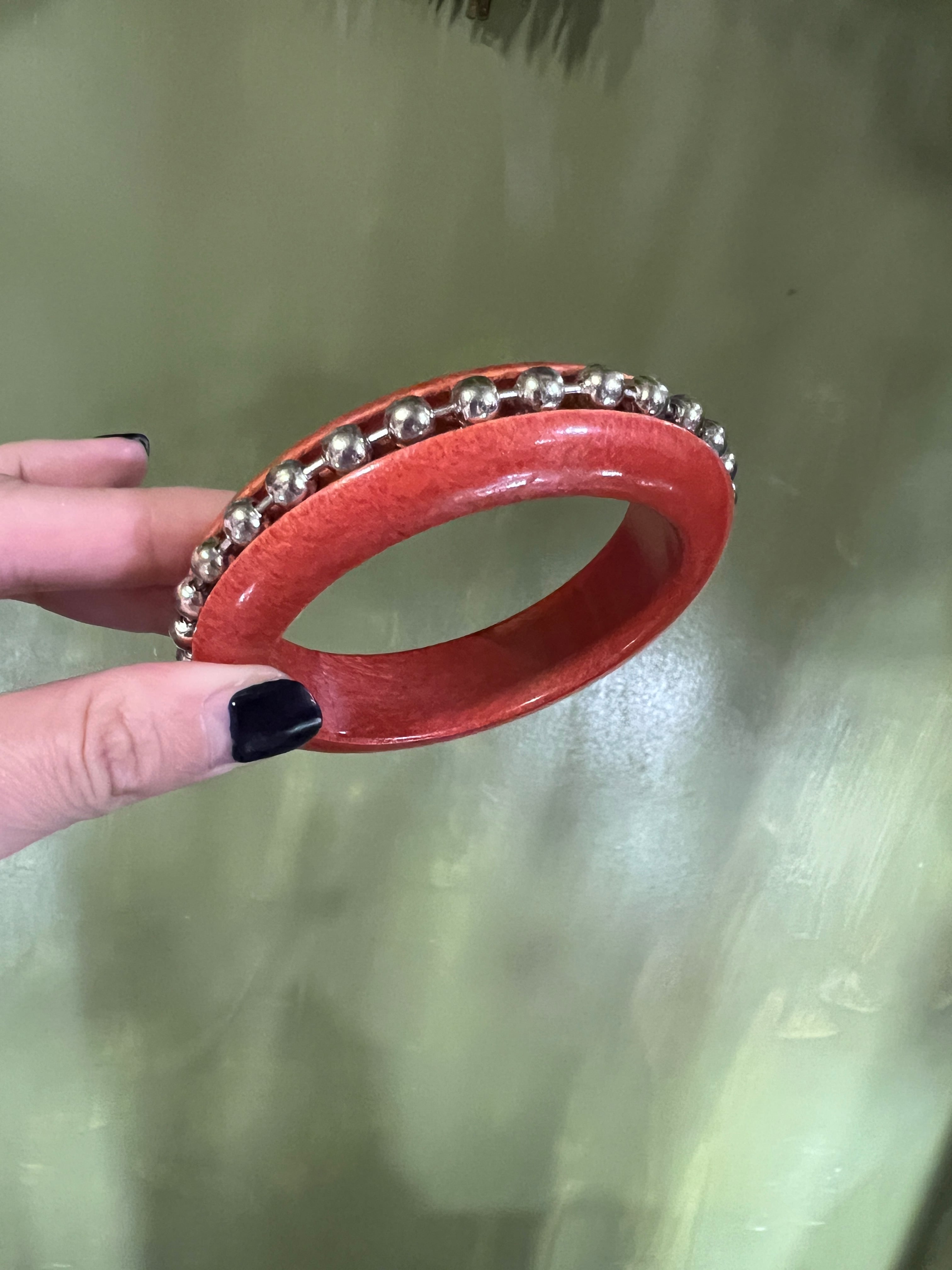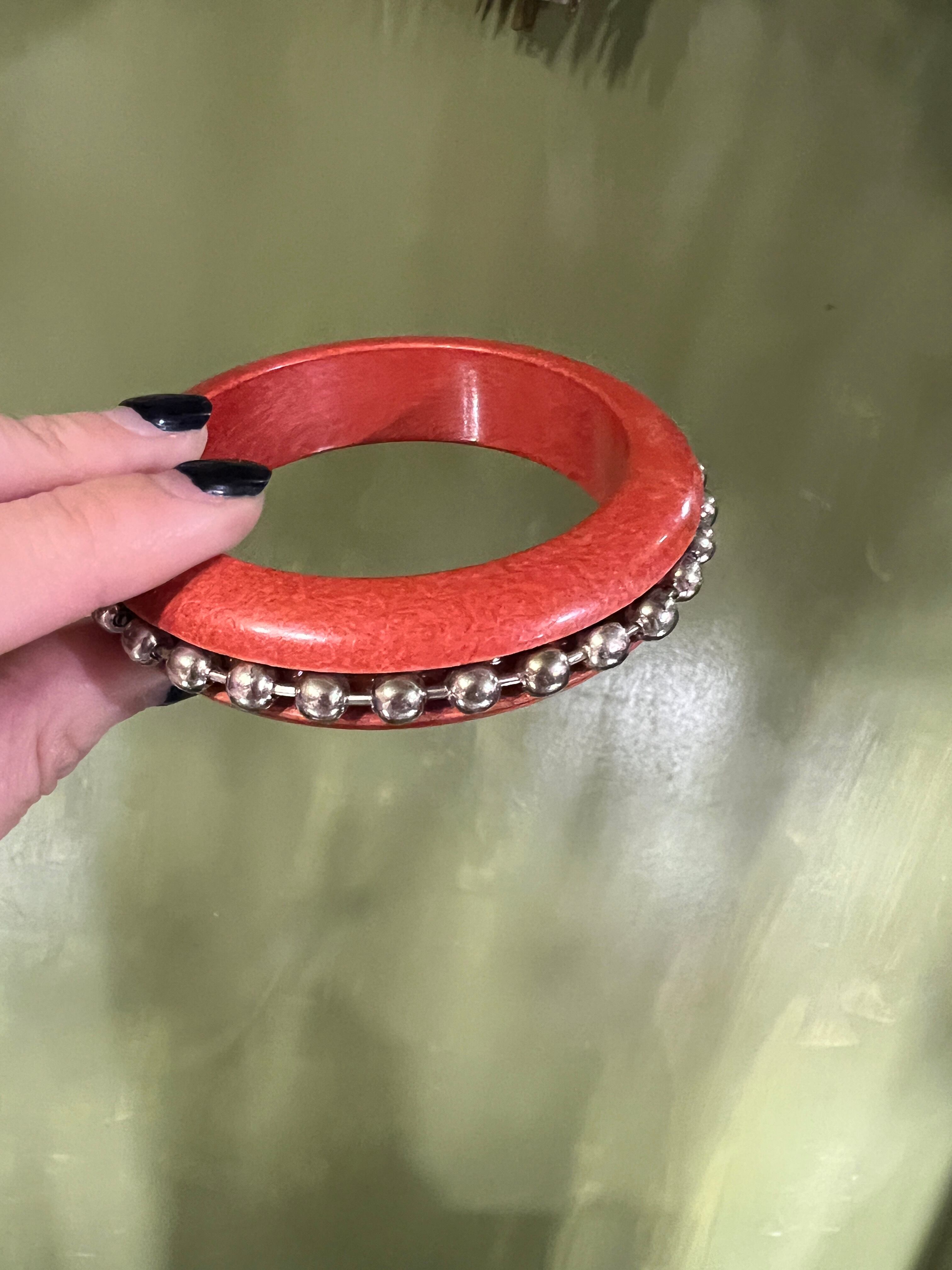 【リース中】Vintage orange wood × silver bowl chain bangle ( ヴィンテージ オレンジ ウッド × シルバー ボールチェーン バングル )