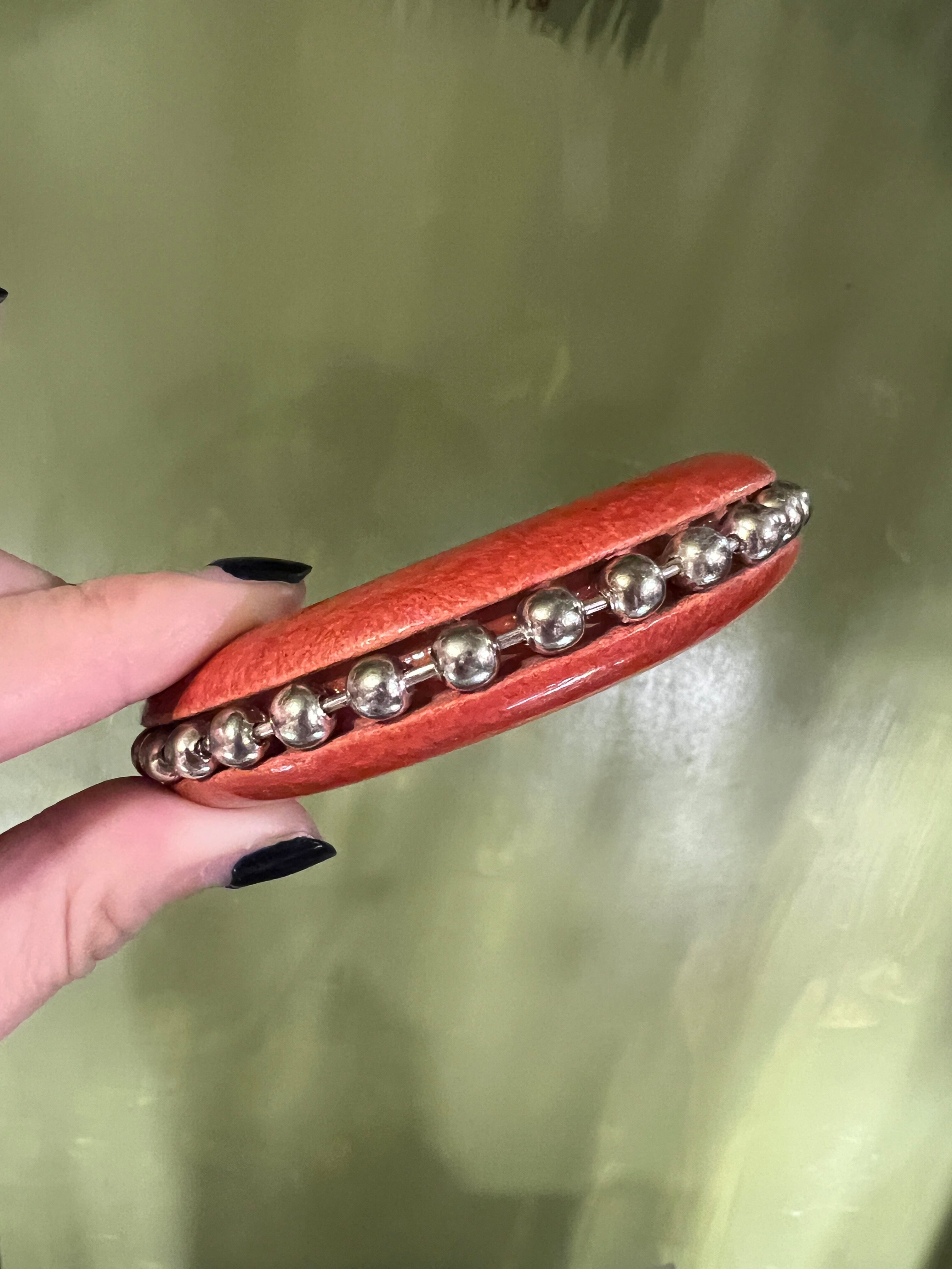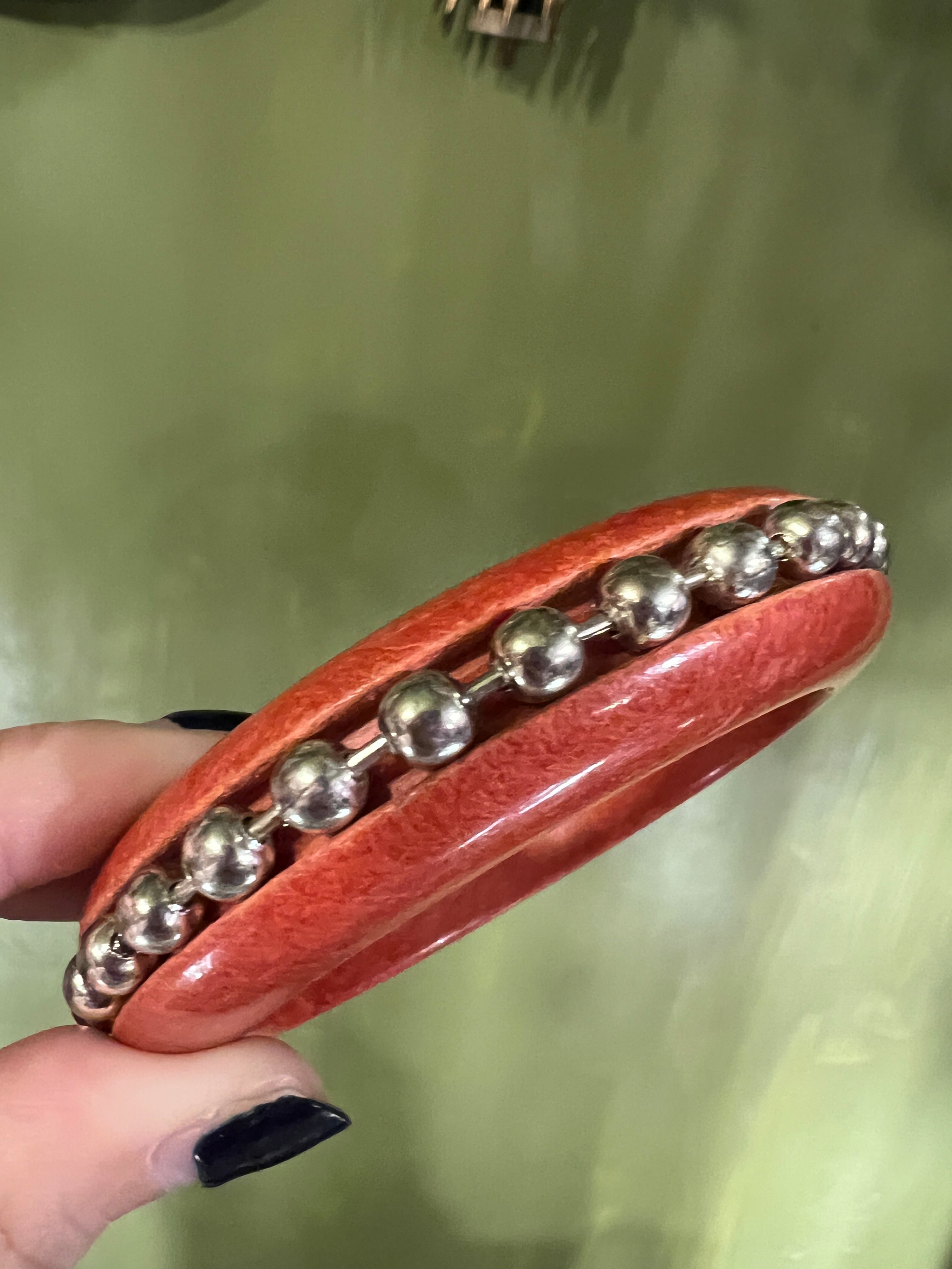 Vintage orange wood × silver bowl chain bangle ( ヴィンテージ オレンジ ウッド × シルバー ボールチェーン バングル )