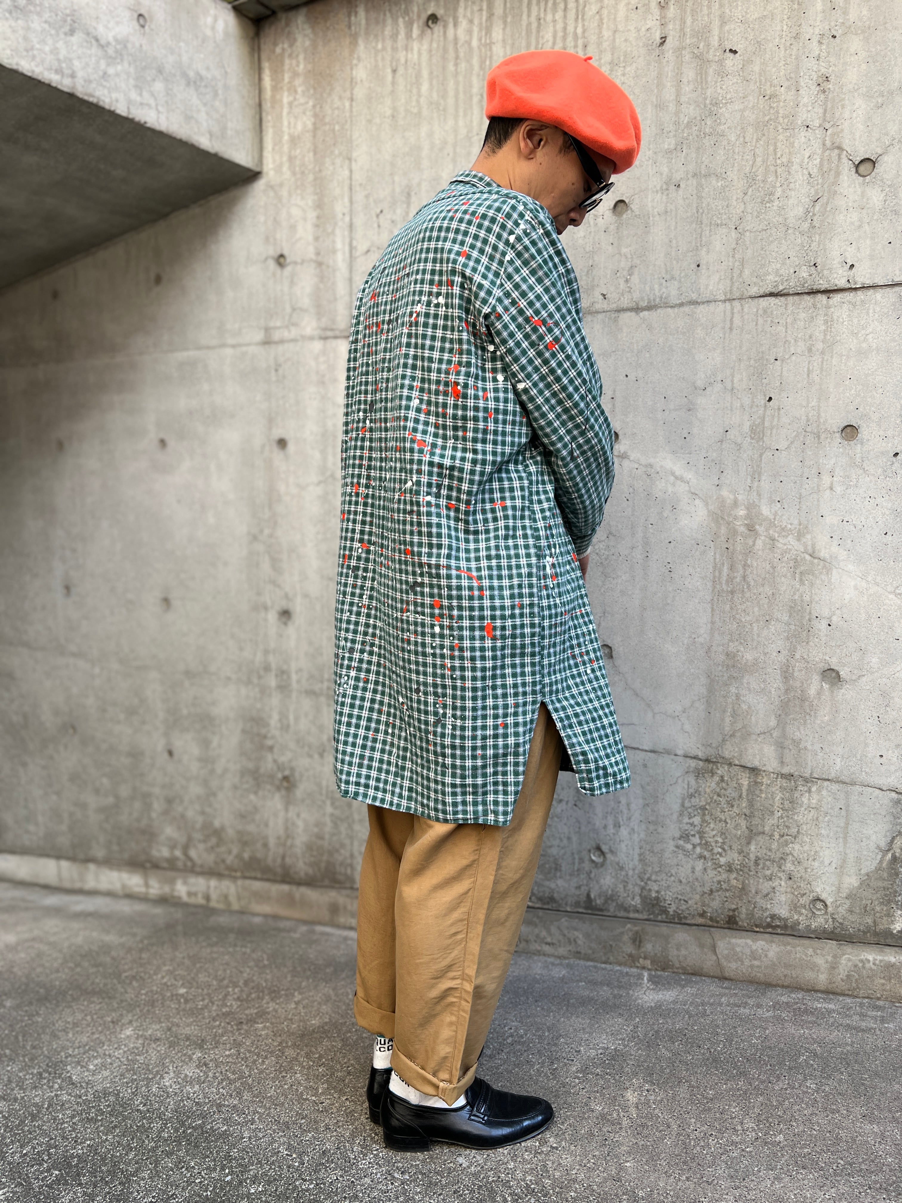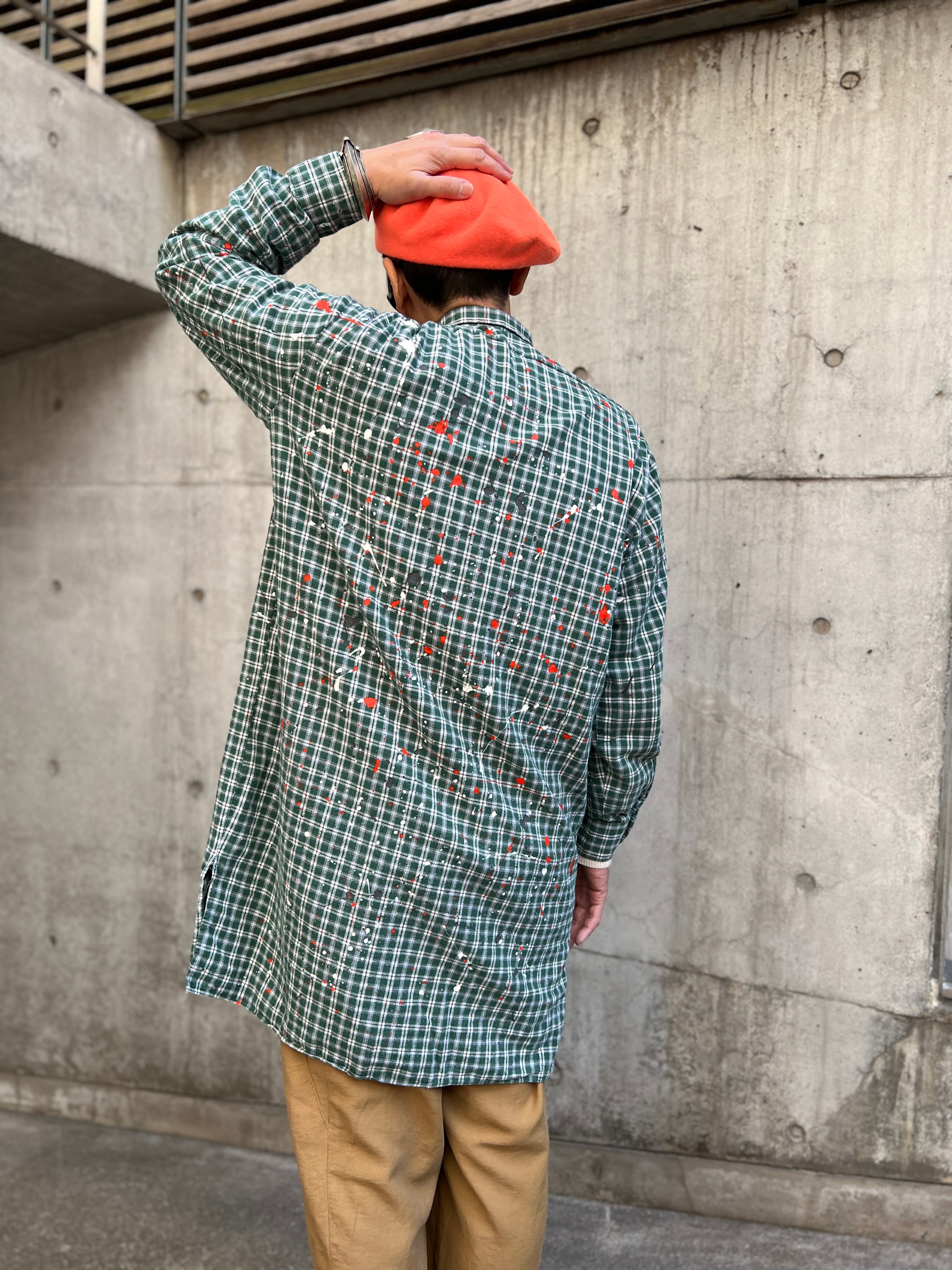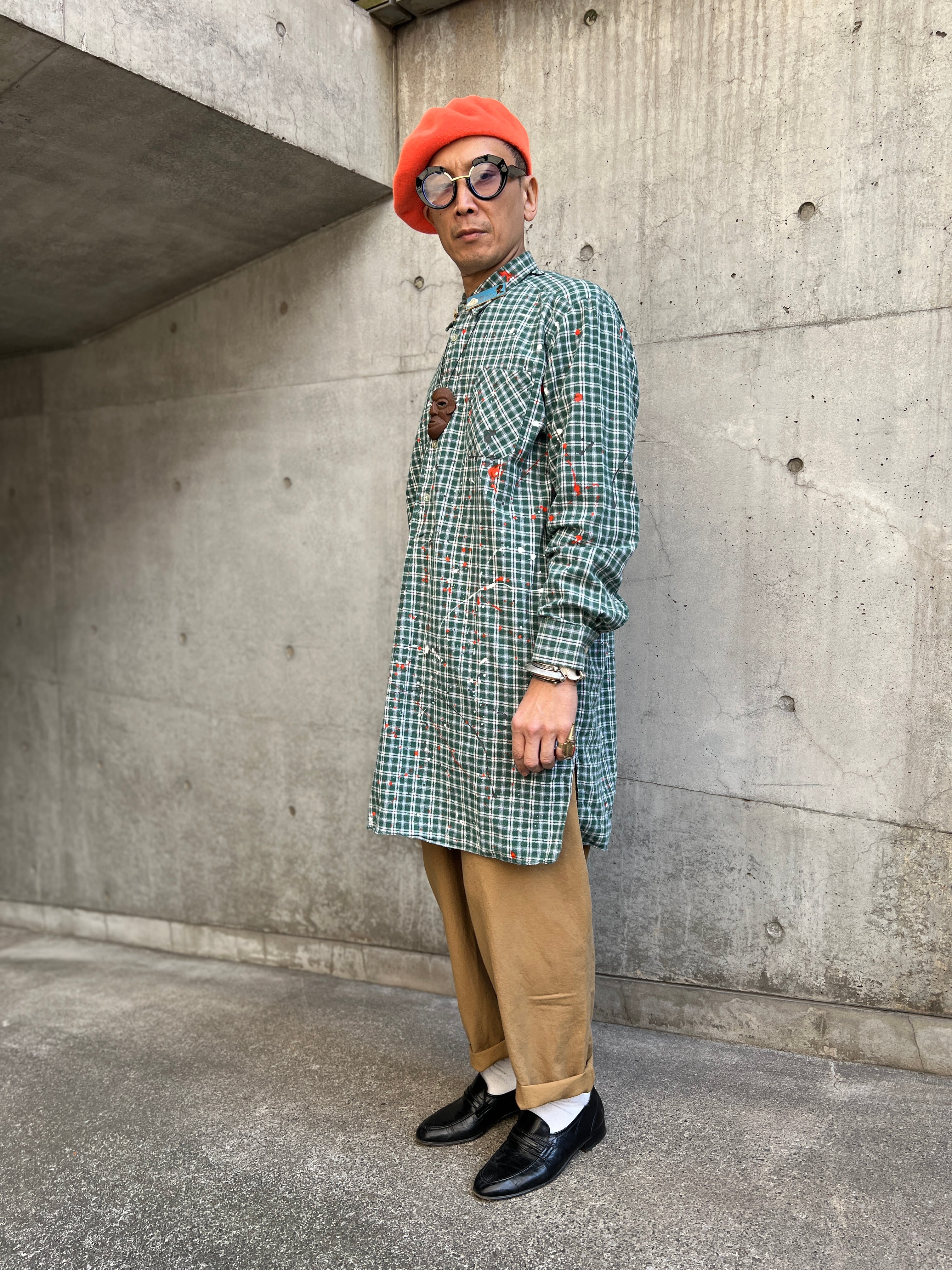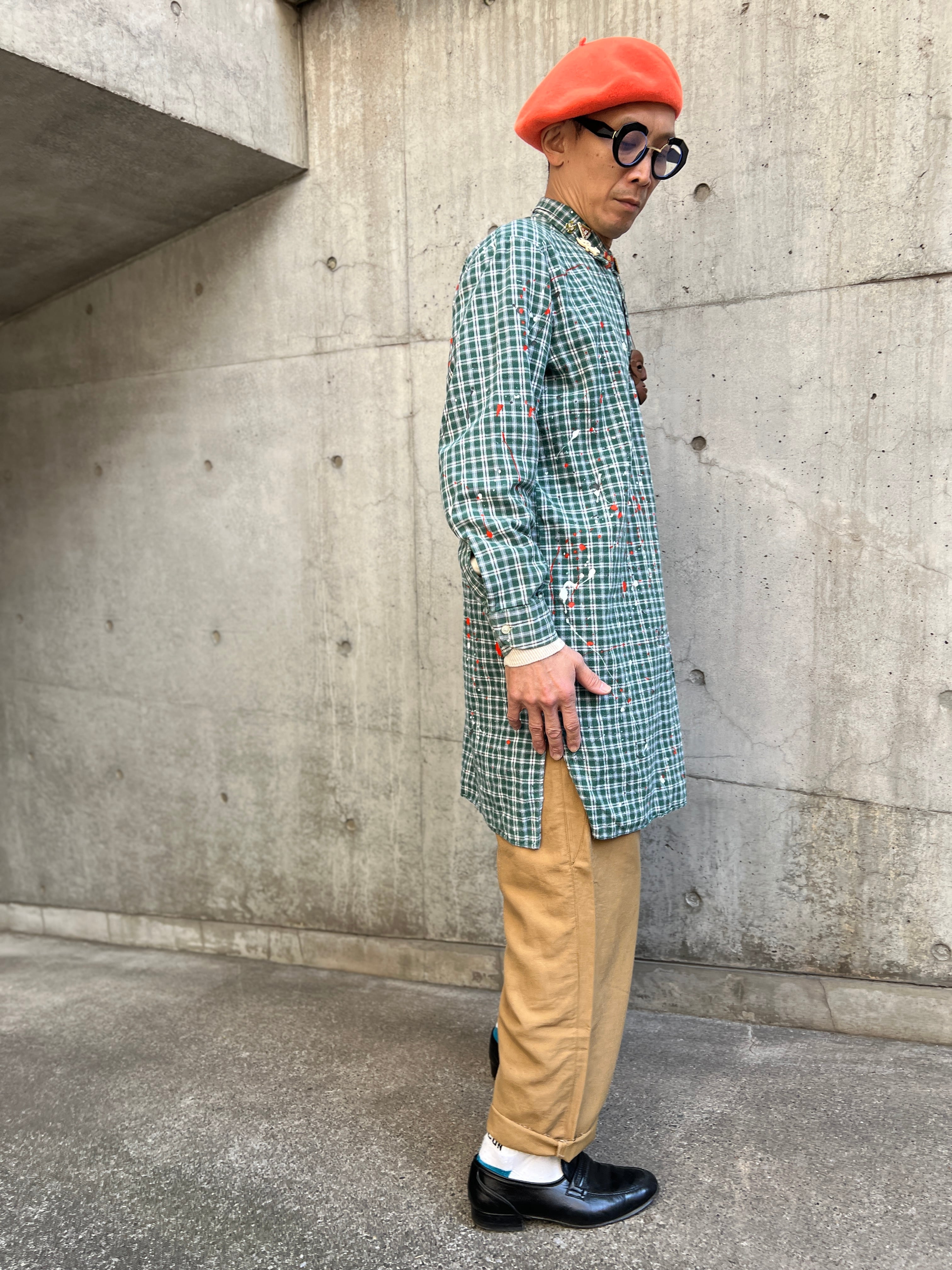 ヴィンテージのプルオーバーグランパコットンシャツのグッドボディーに、1点1点その個体に合わせて施された