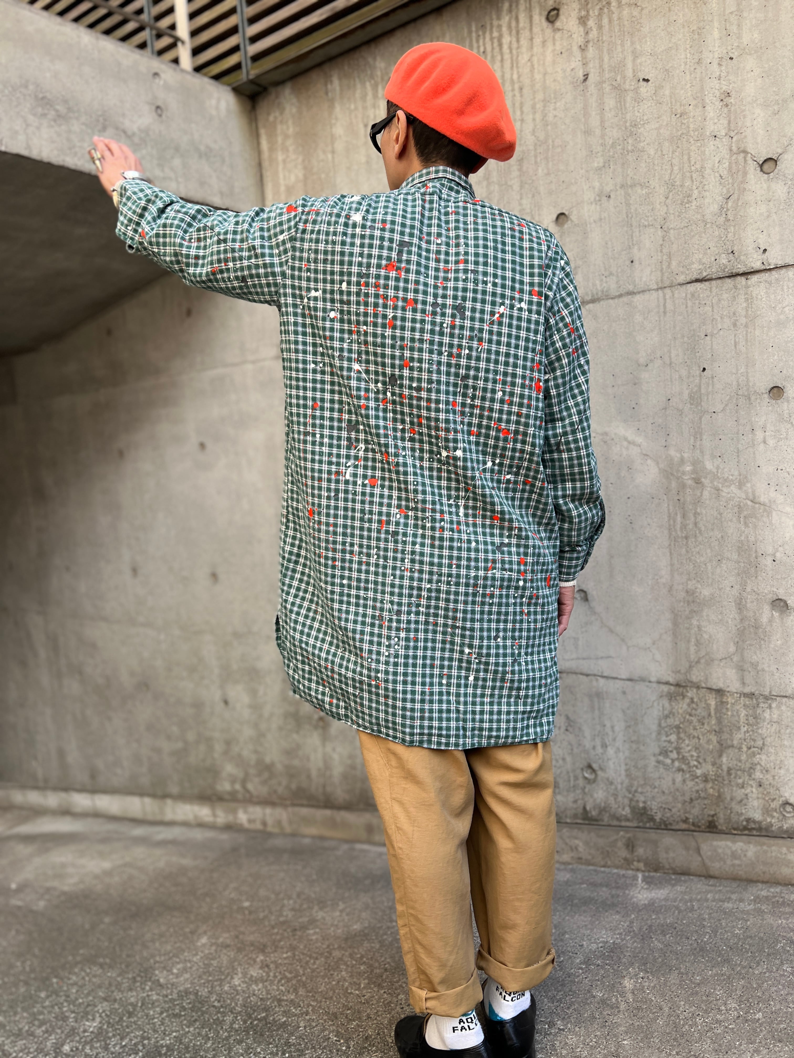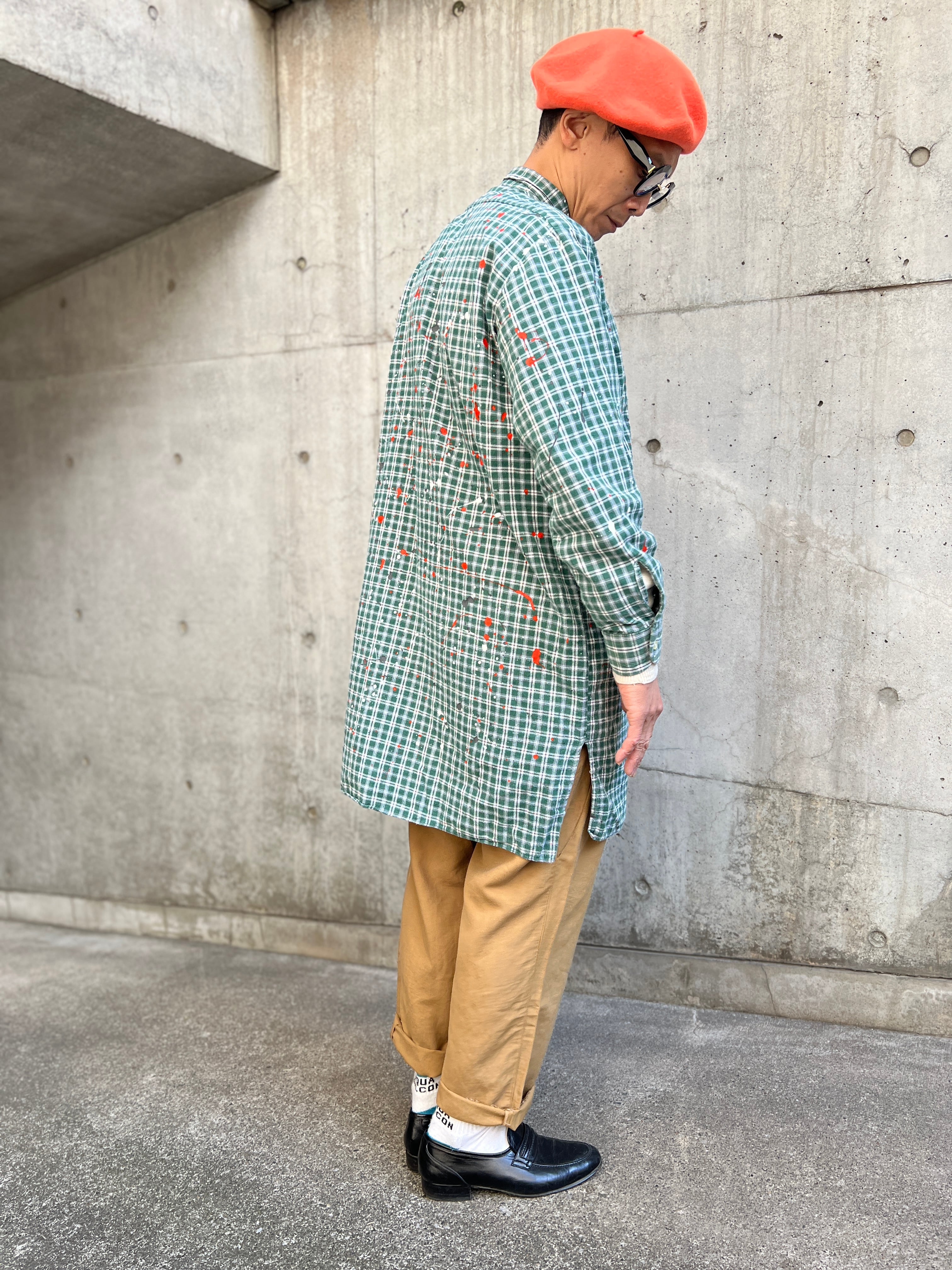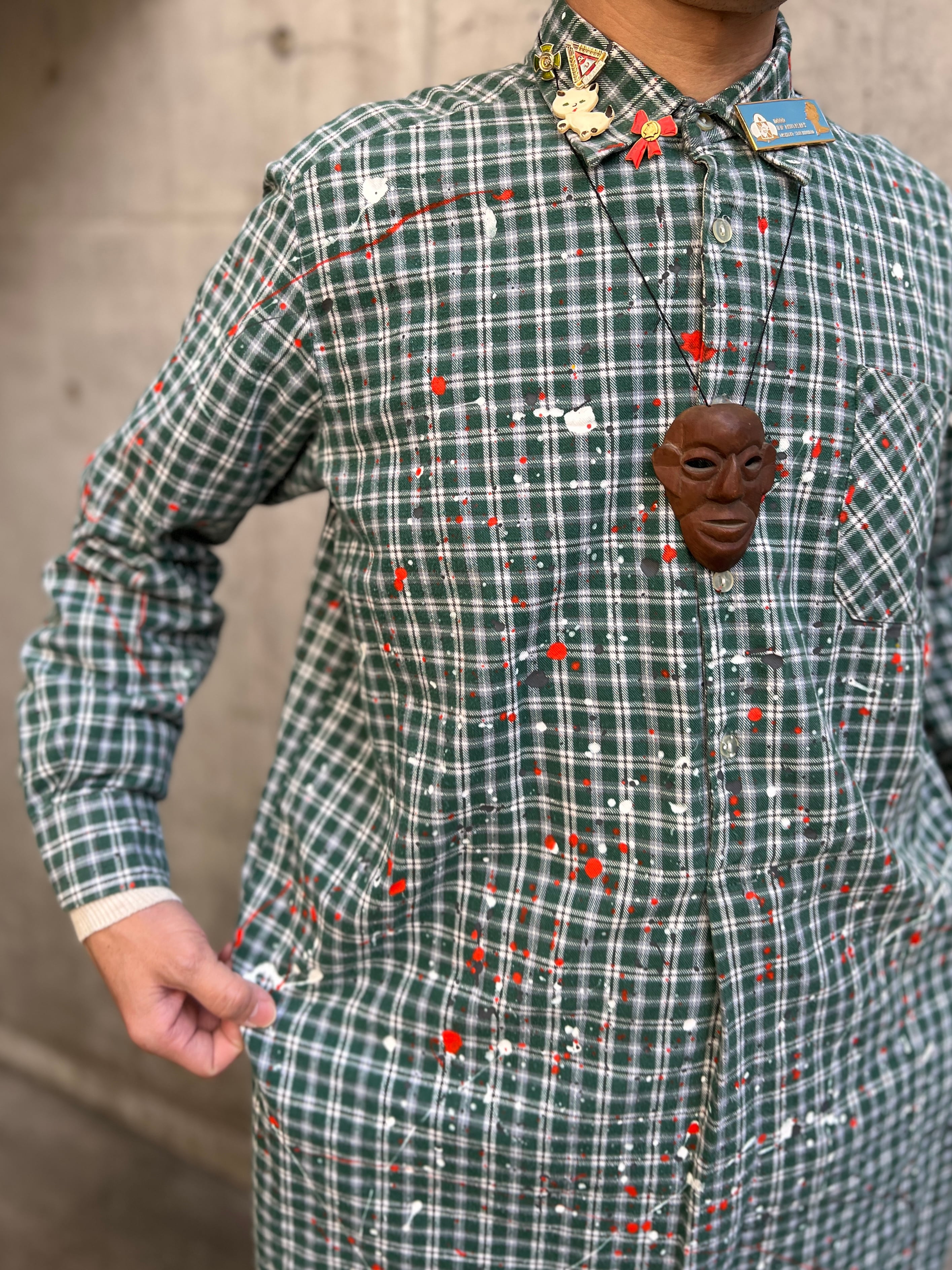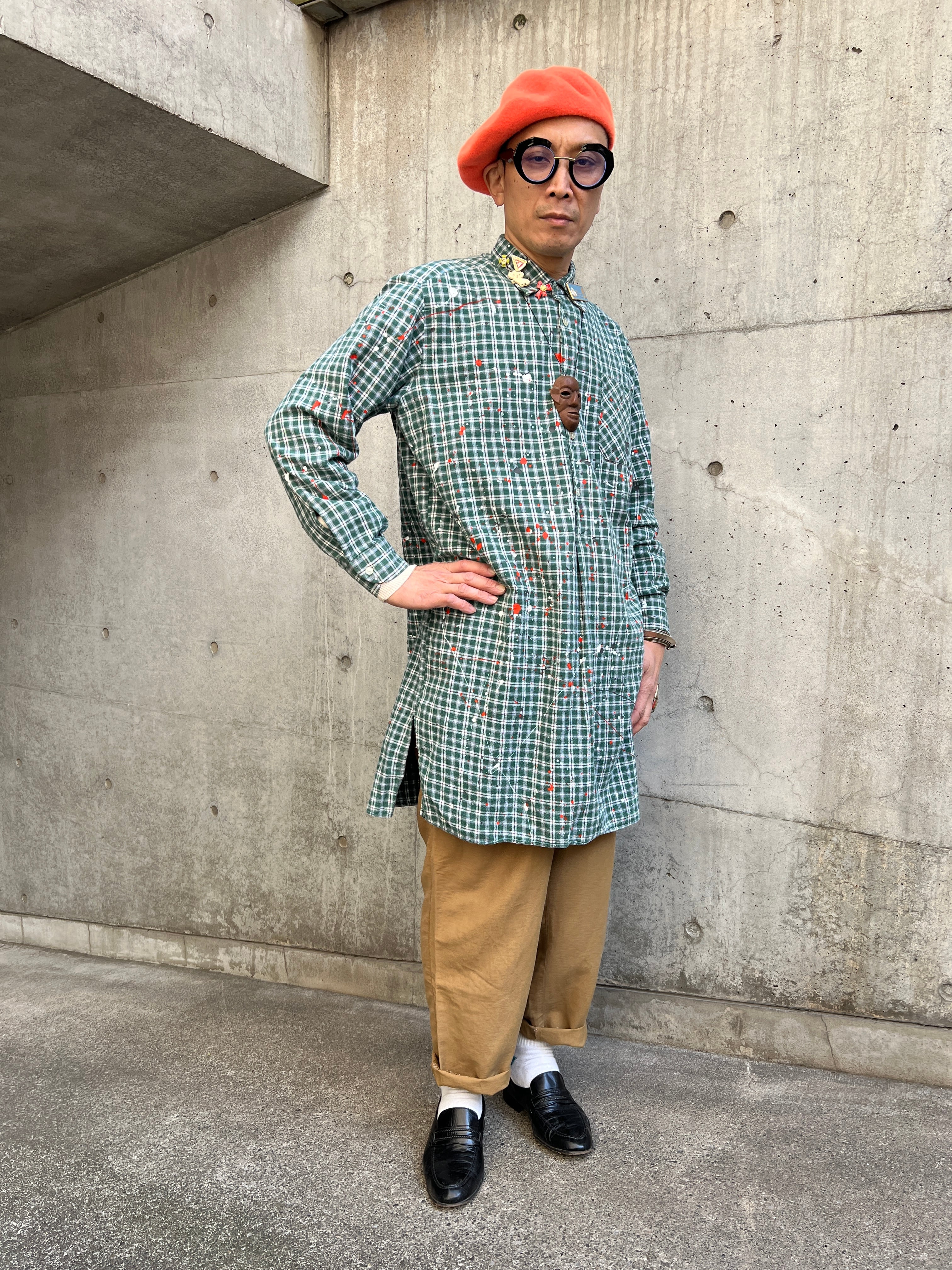 ヴィンテージのプルオーバーグランパコットンシャツのグッドボディーに、1点1点その個体に合わせて施された