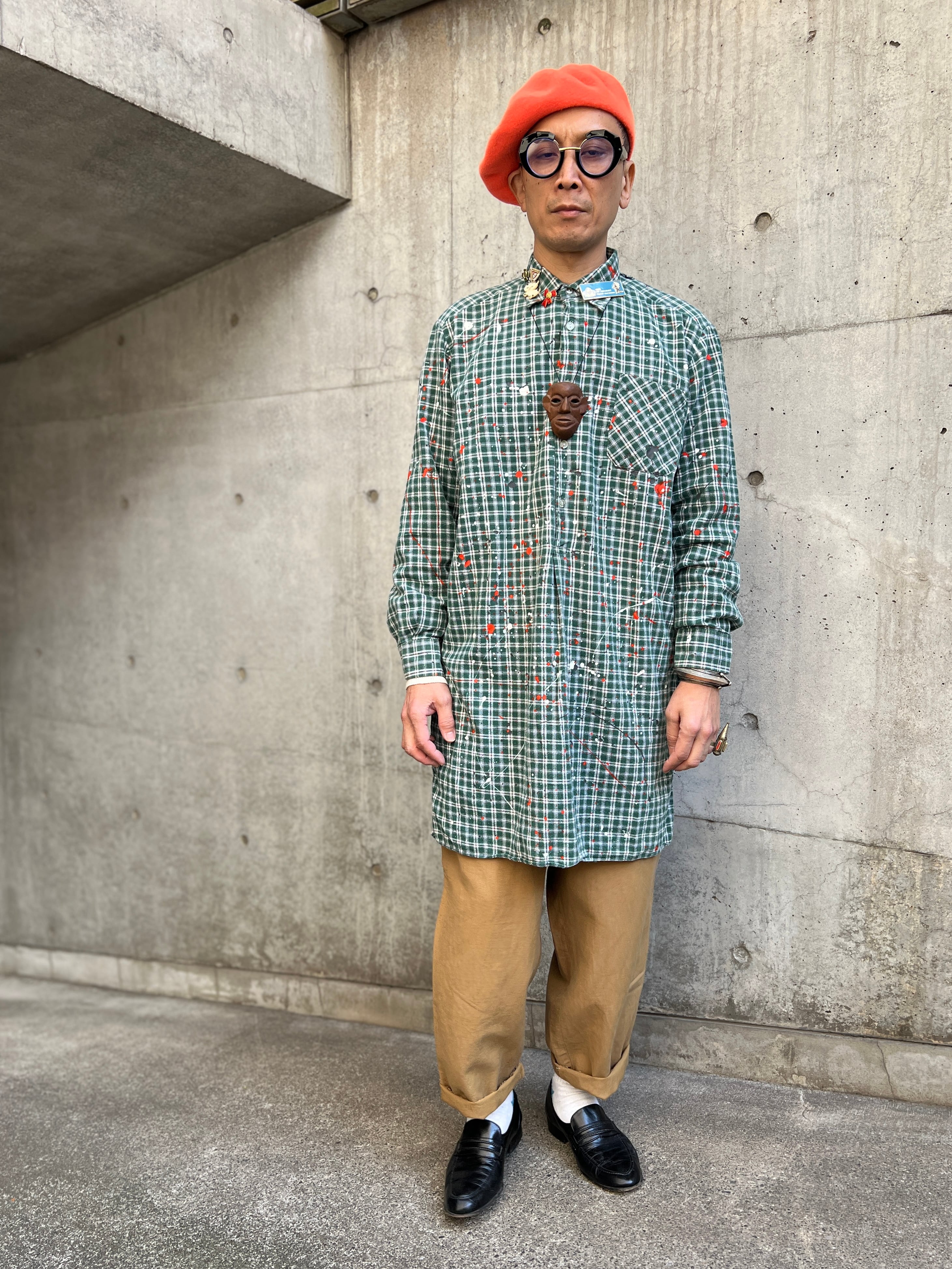 グランパシャツ特有のゆったりとしたシルエットに、