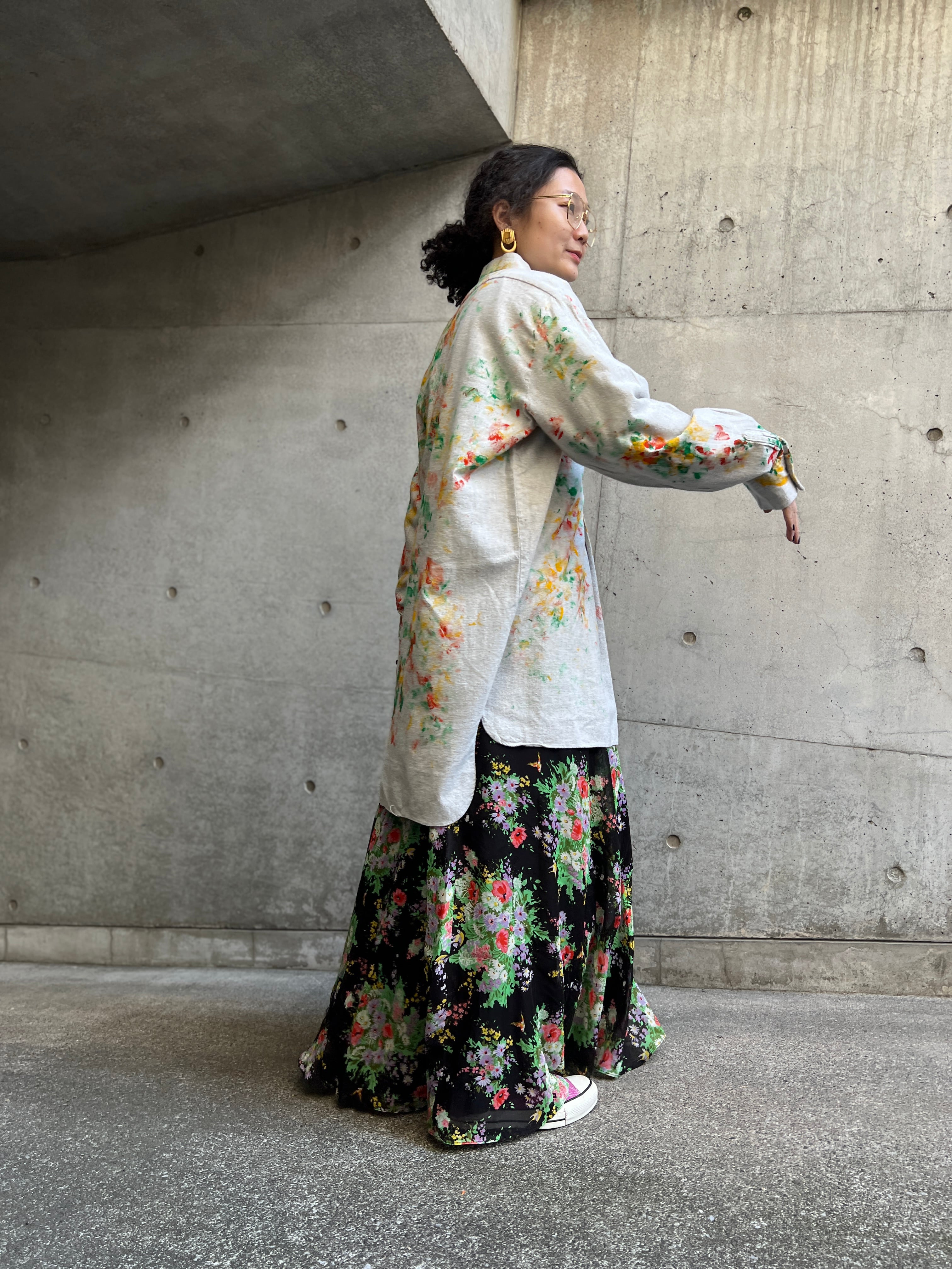 無地では出せない“アートな空気”を纏える一枚に仕上がっています。