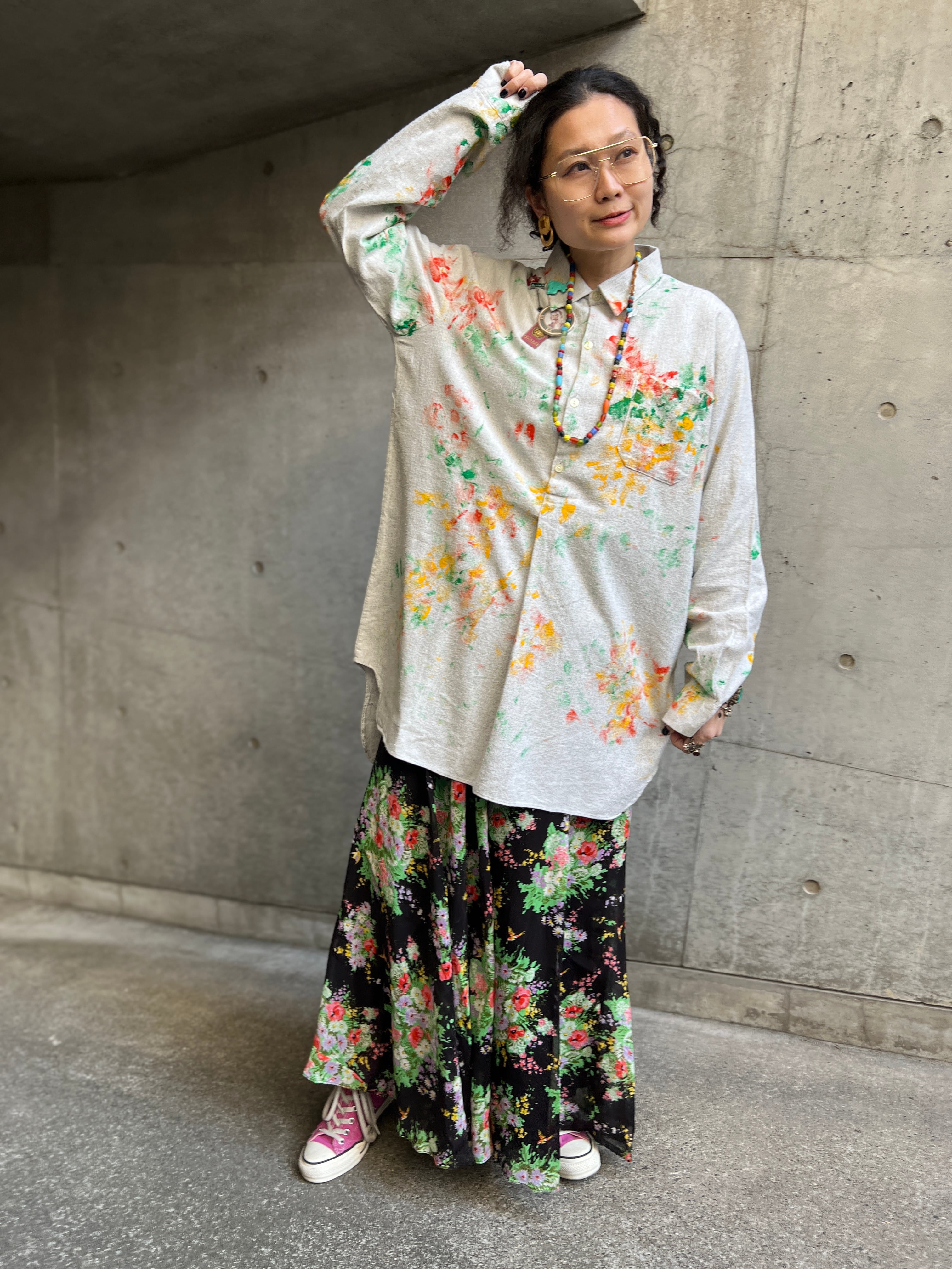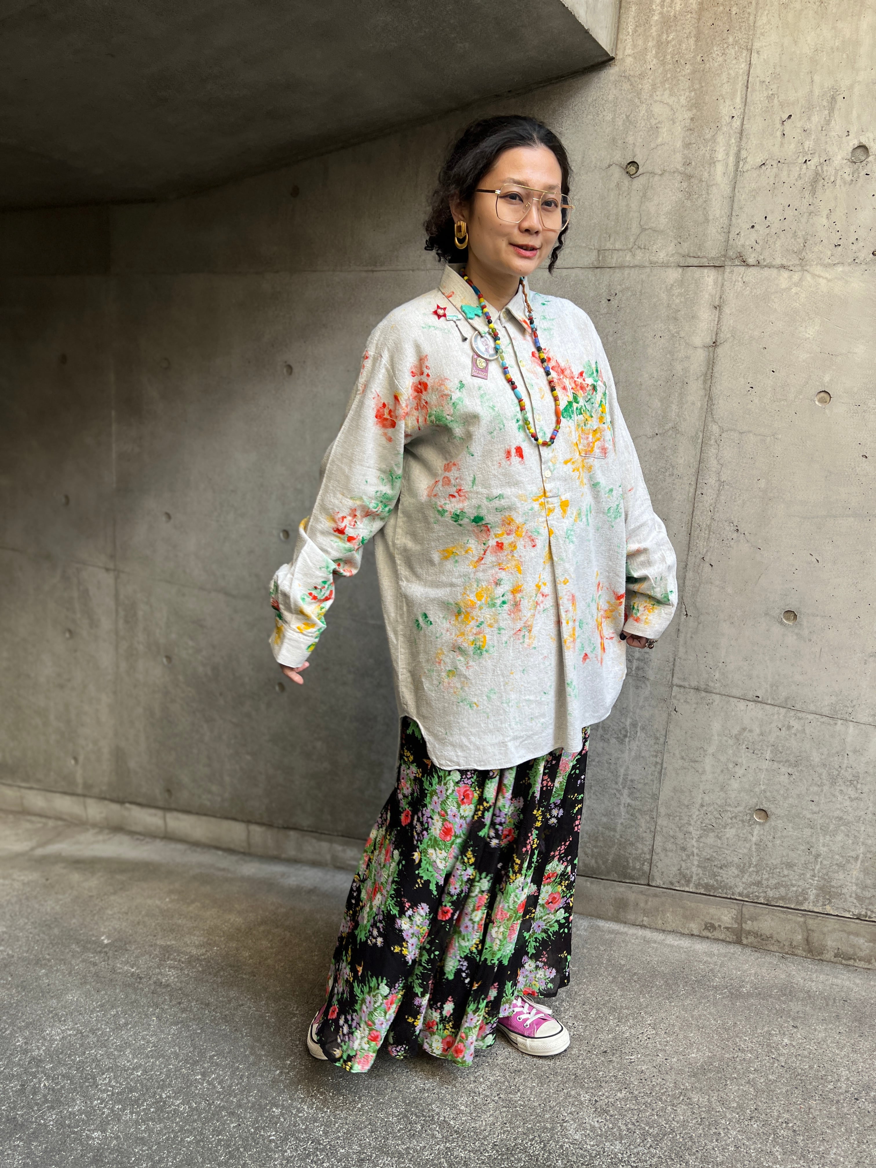 カラーパンツや柄スカートと合わせれば一瞬で“アートなムード”に。