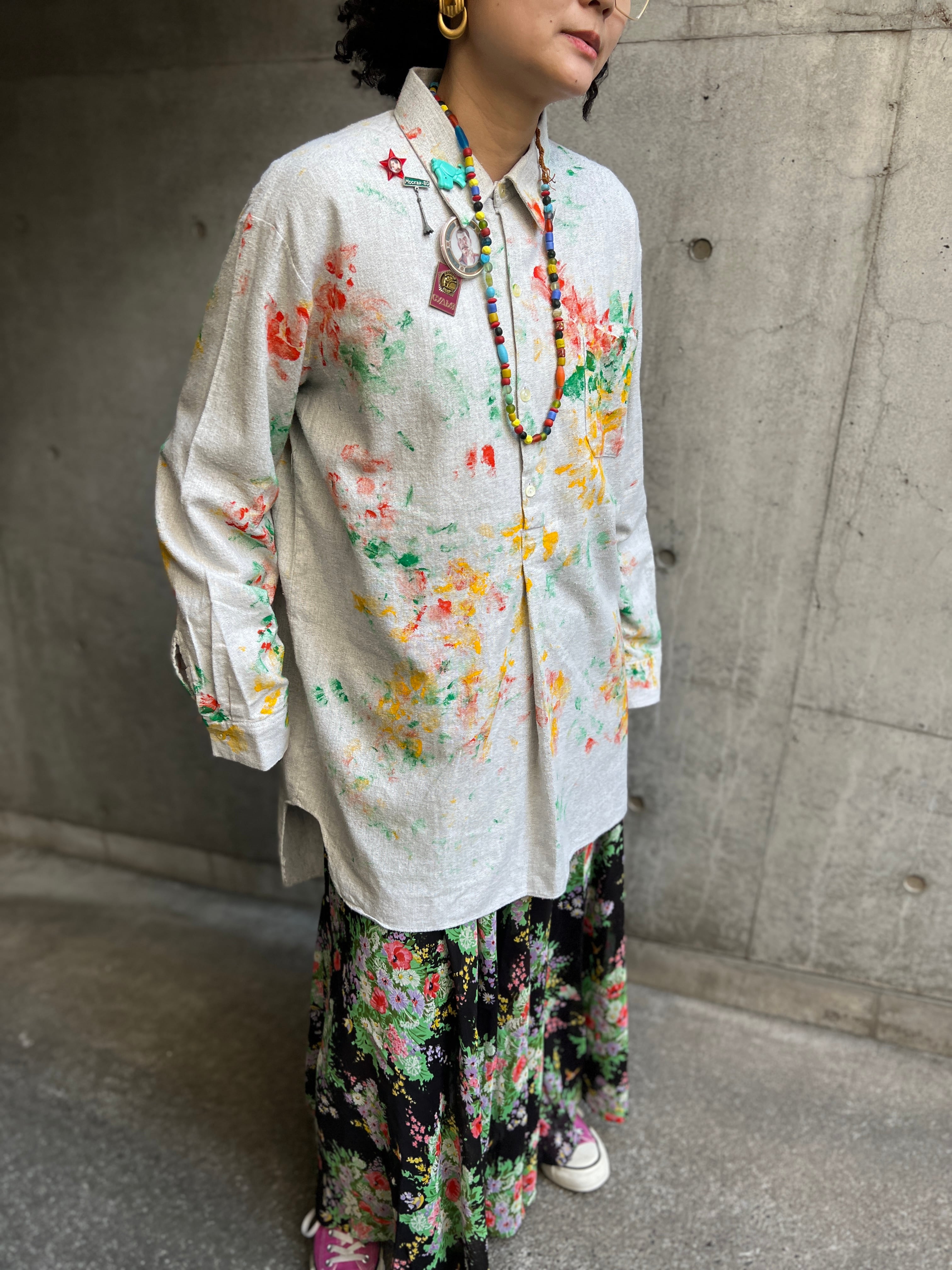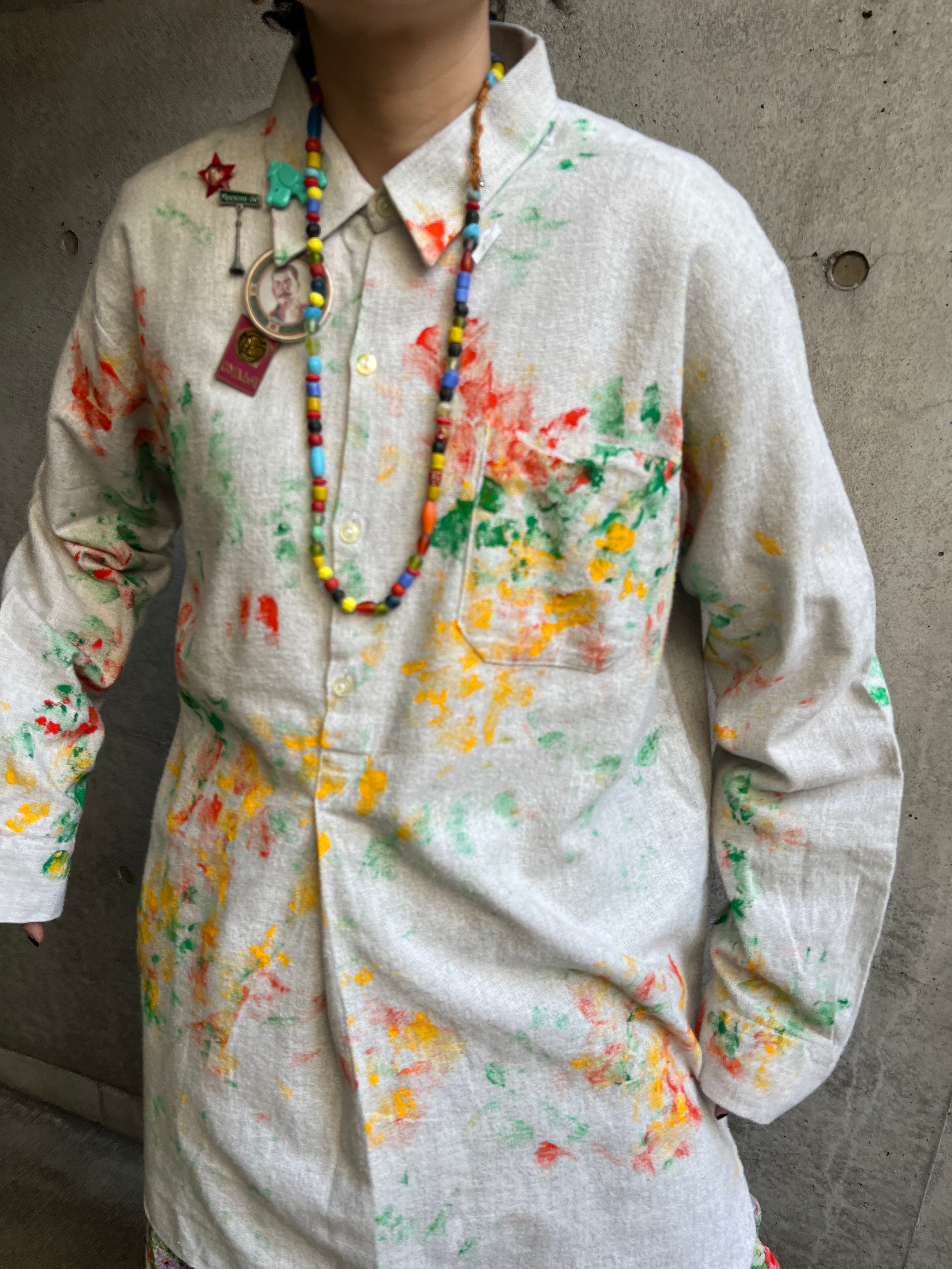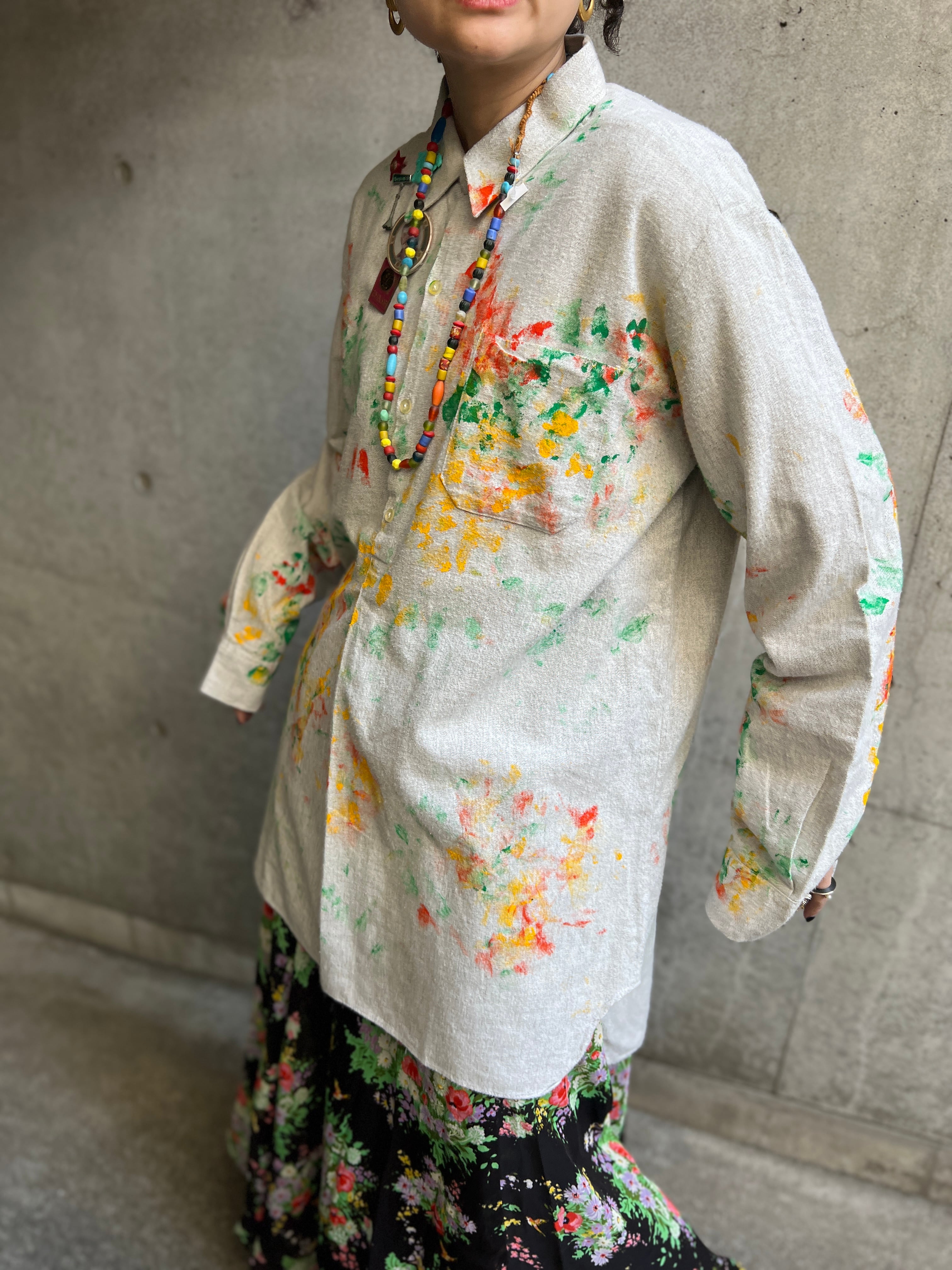 ヴィンテージのプルオーバーグランパコットンシャツのグッドボディーに、1点1点その個体に合わせて施された