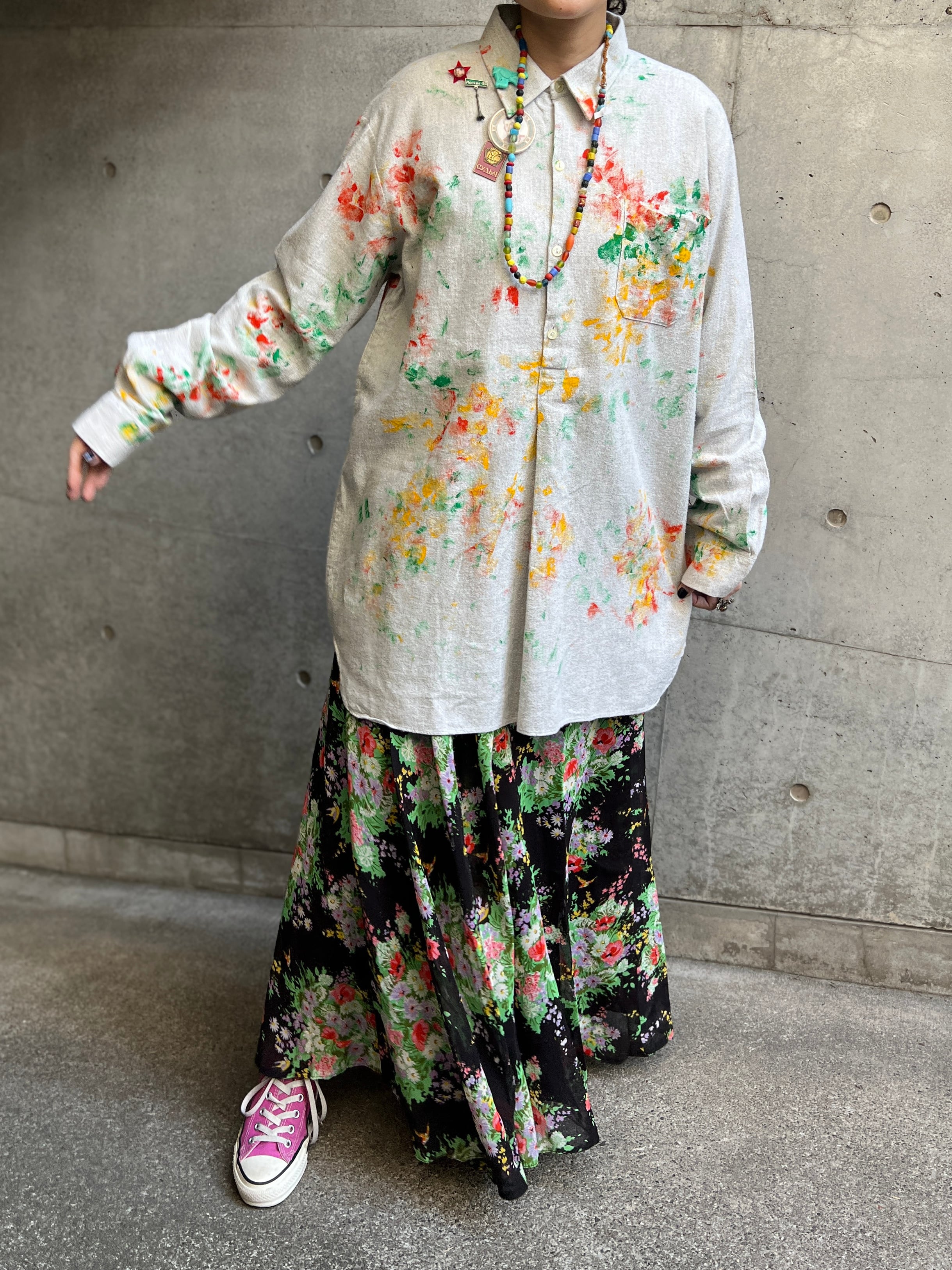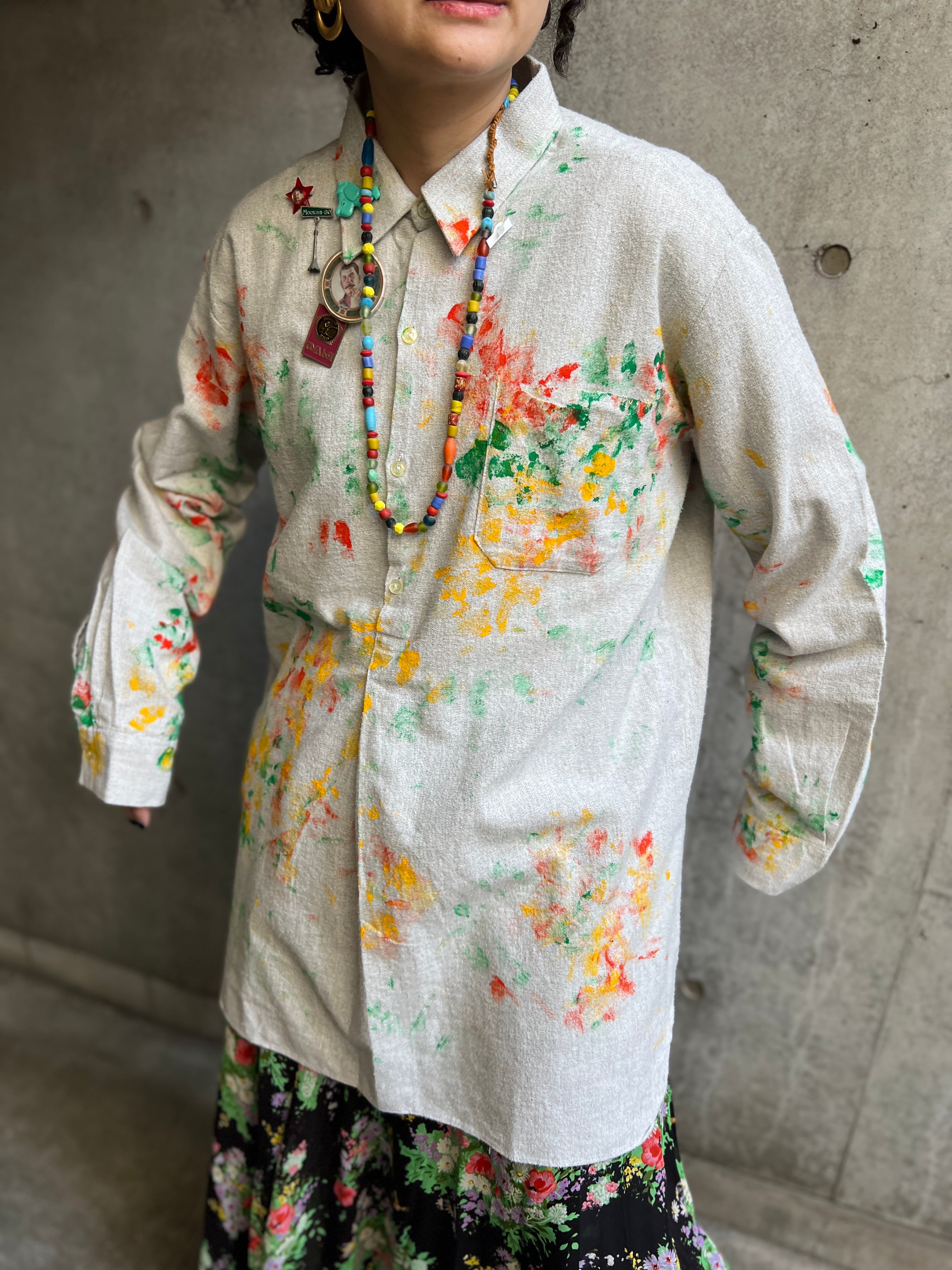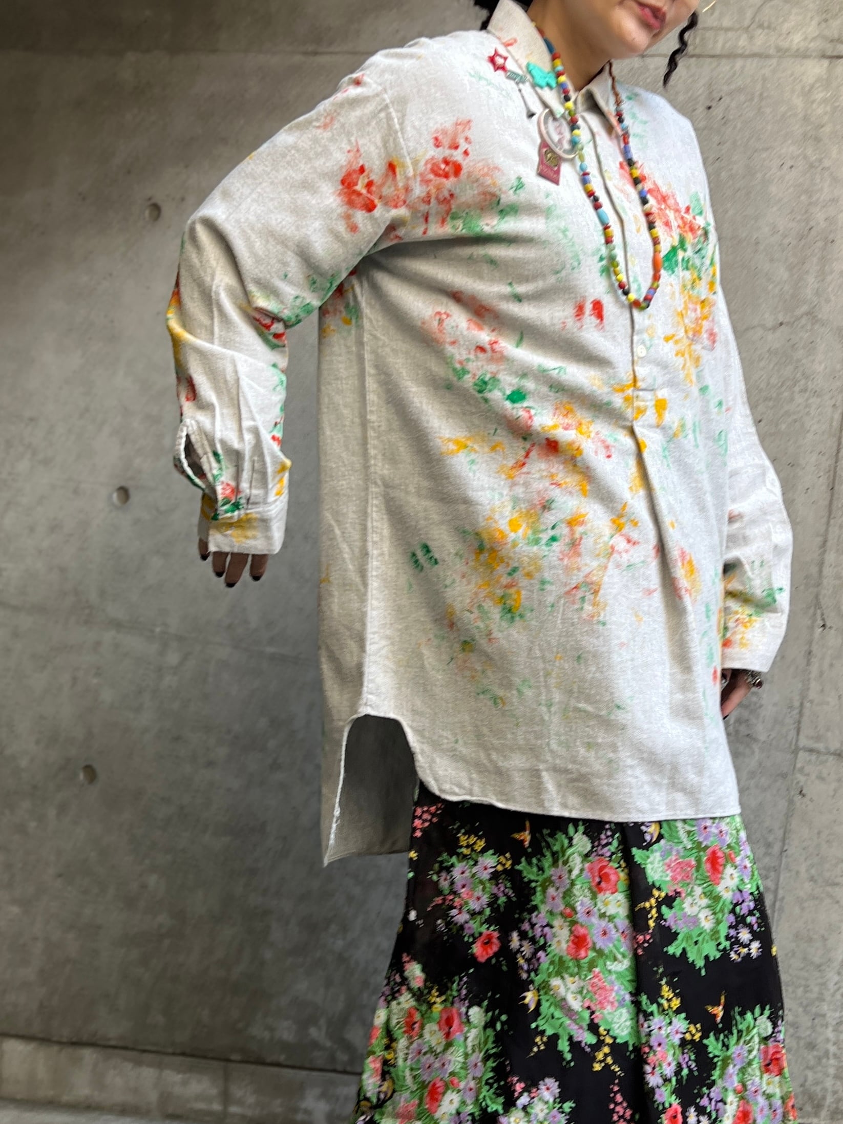 ヴィンテージのプルオーバーグランパコットンシャツのグッドボディーに、1点1点その個体に合わせて施された
