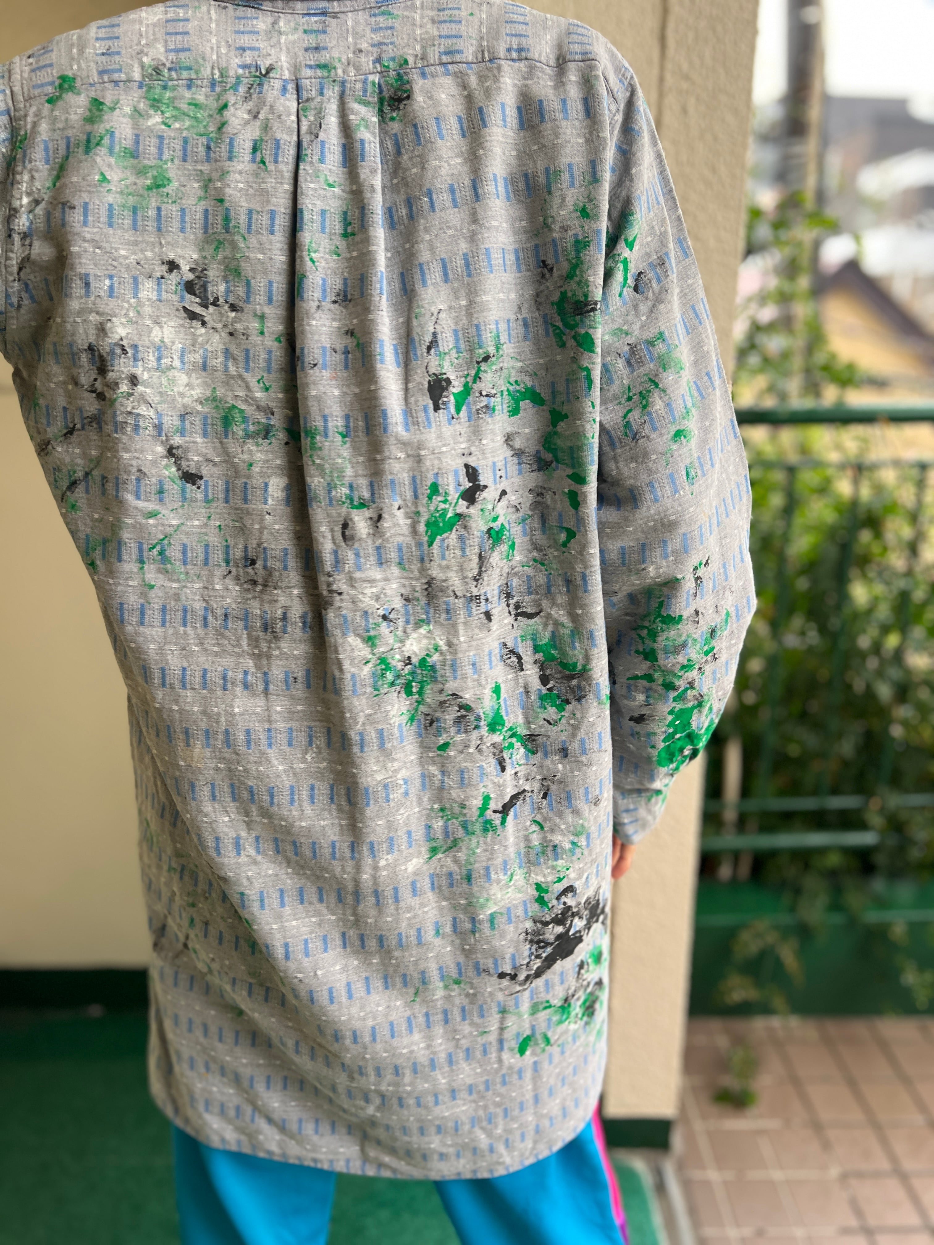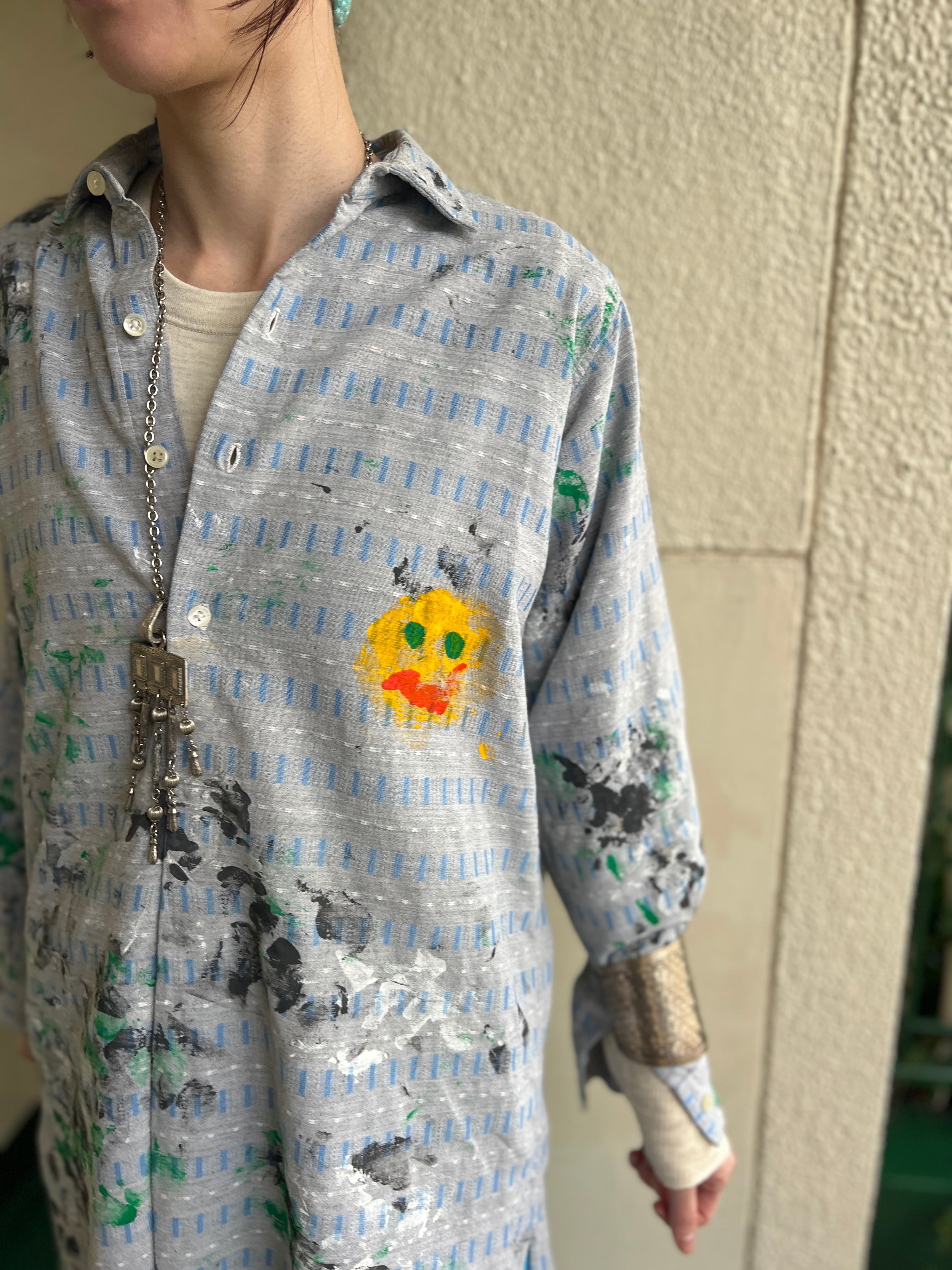 ヴィンテージのプルオーバーグランパコットンシャツのグッドボディーに、1点1点その個体に合わせて施された