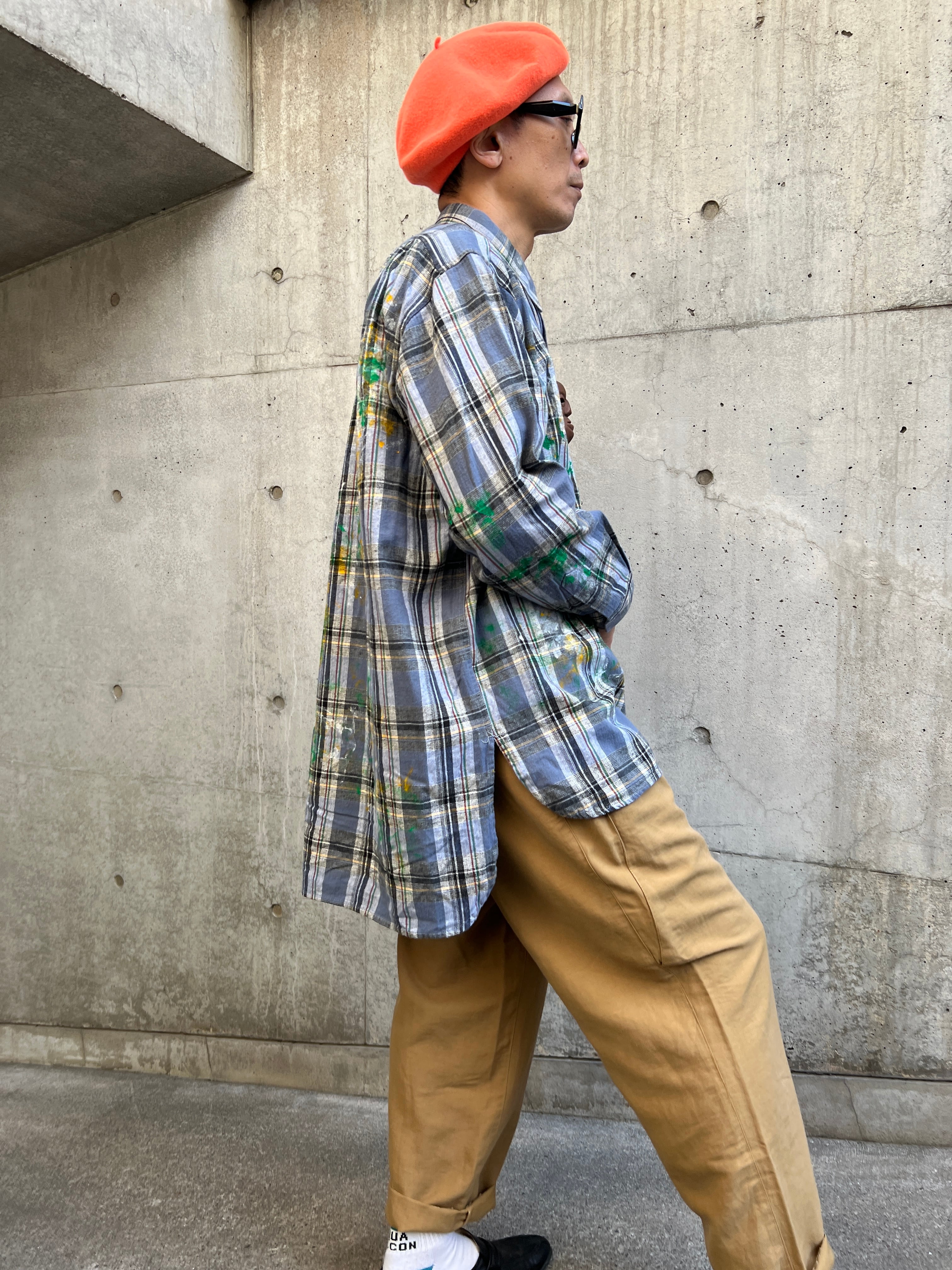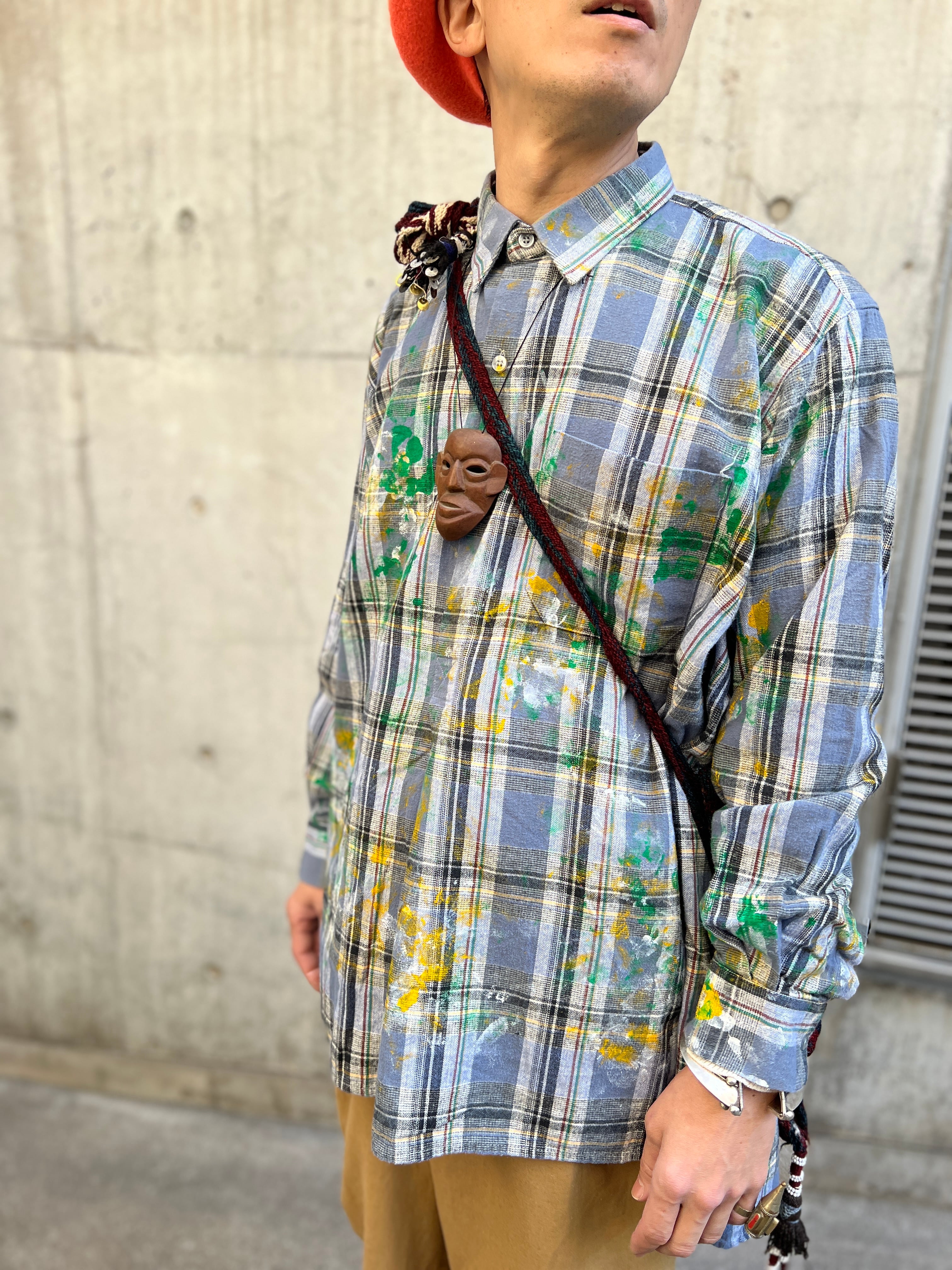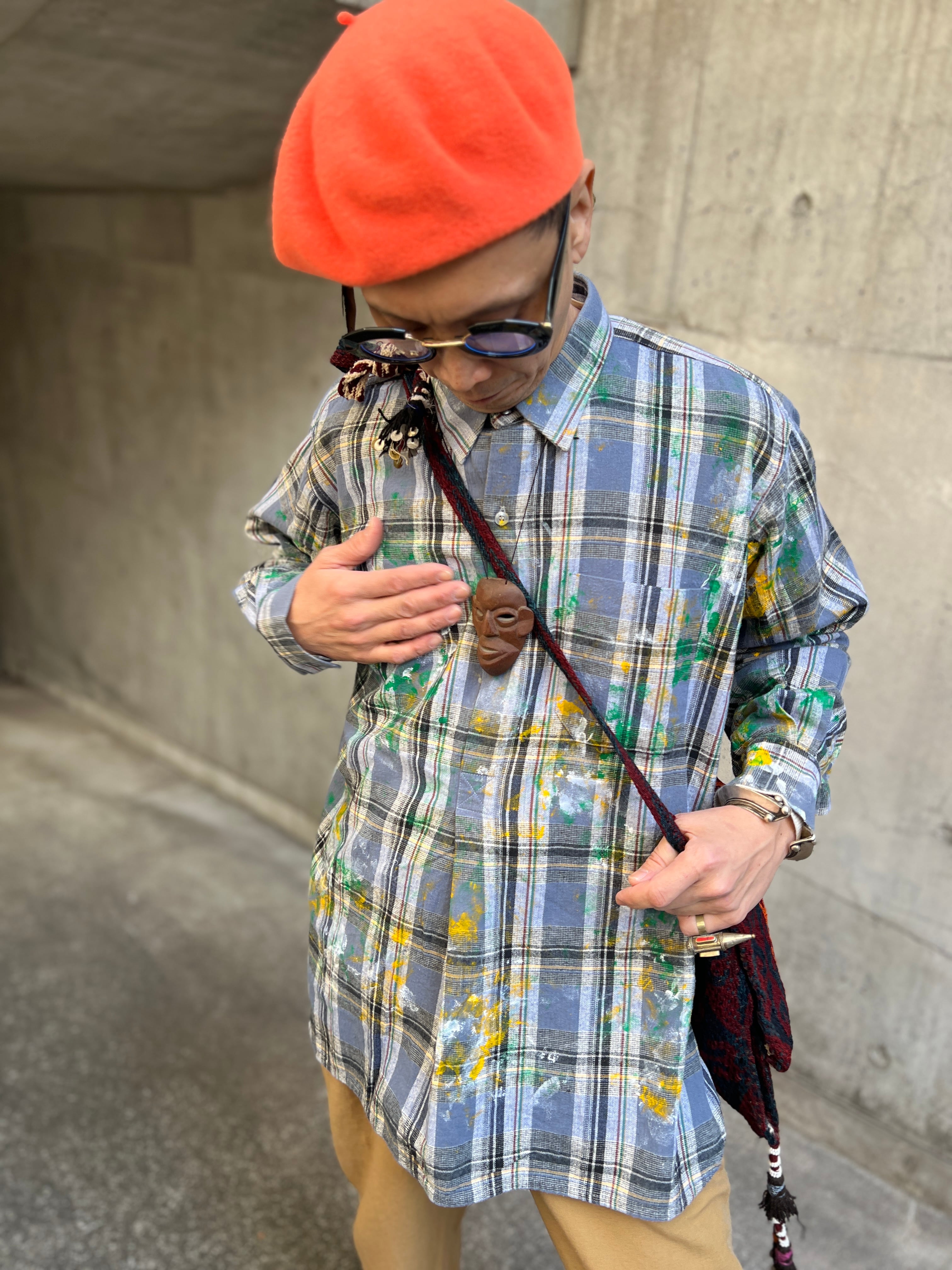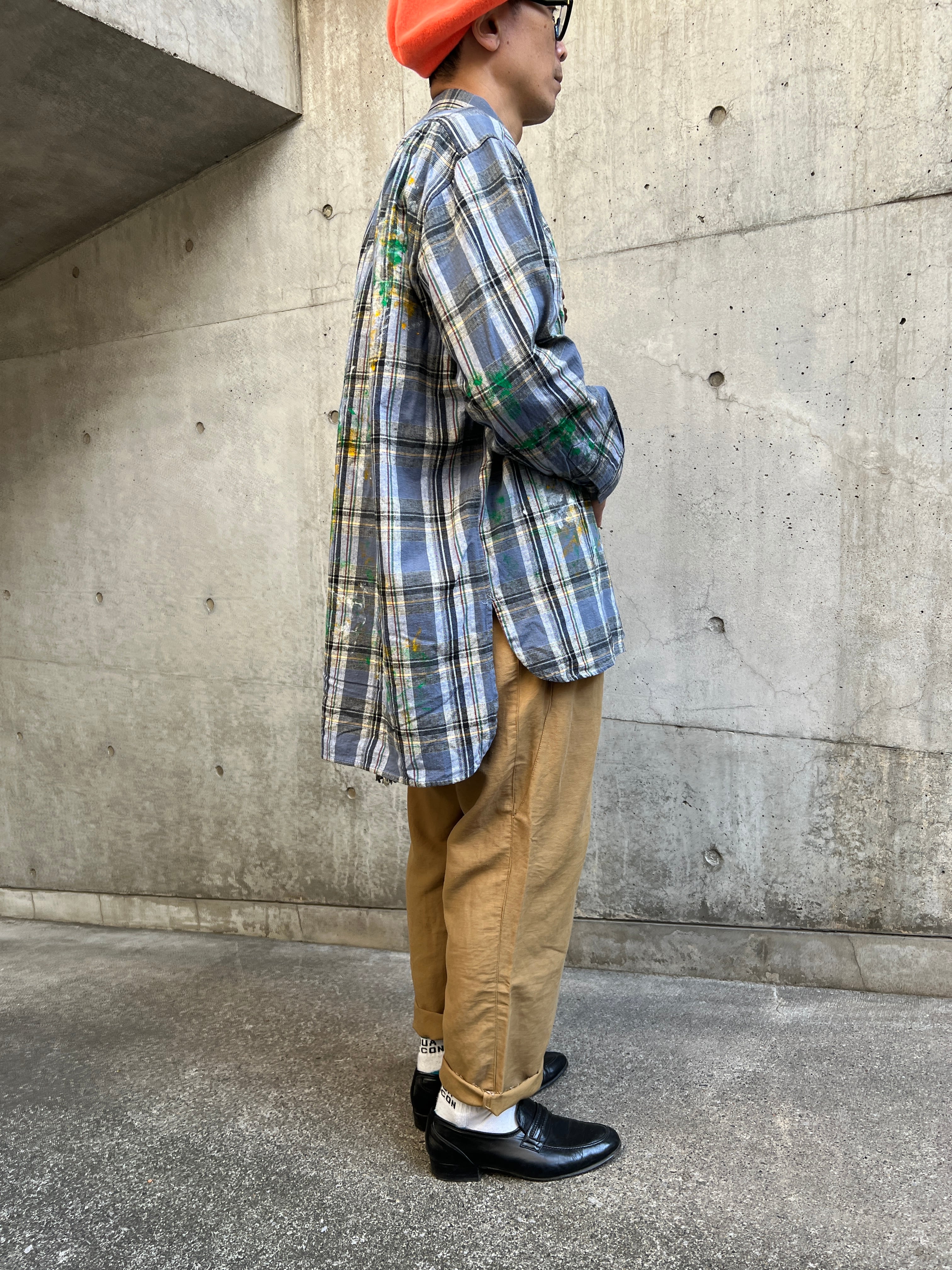 ヴィンテージのプルオーバーグランパコットンシャツのグッドボディーに、1点1点その個体に合わせて施された