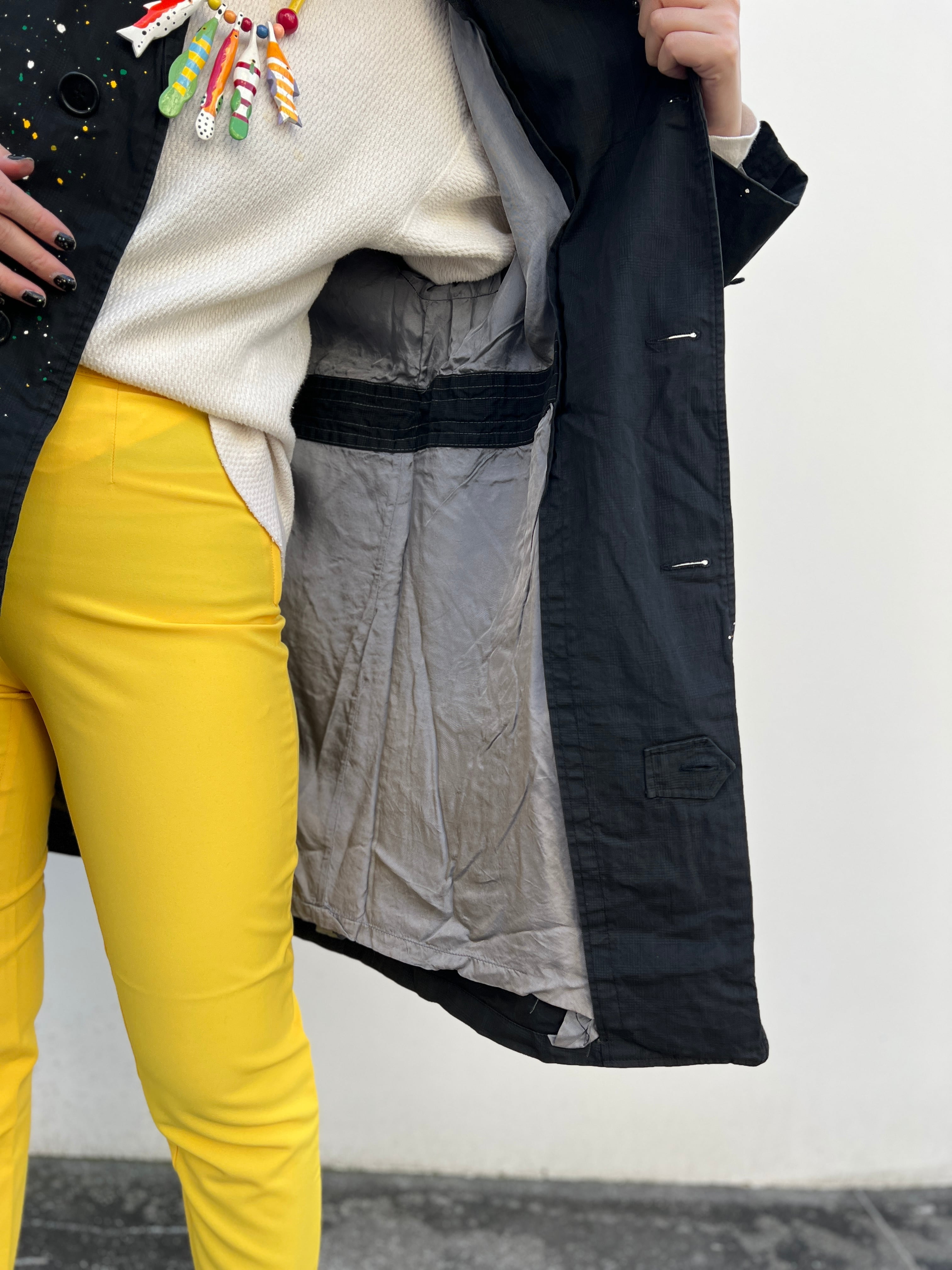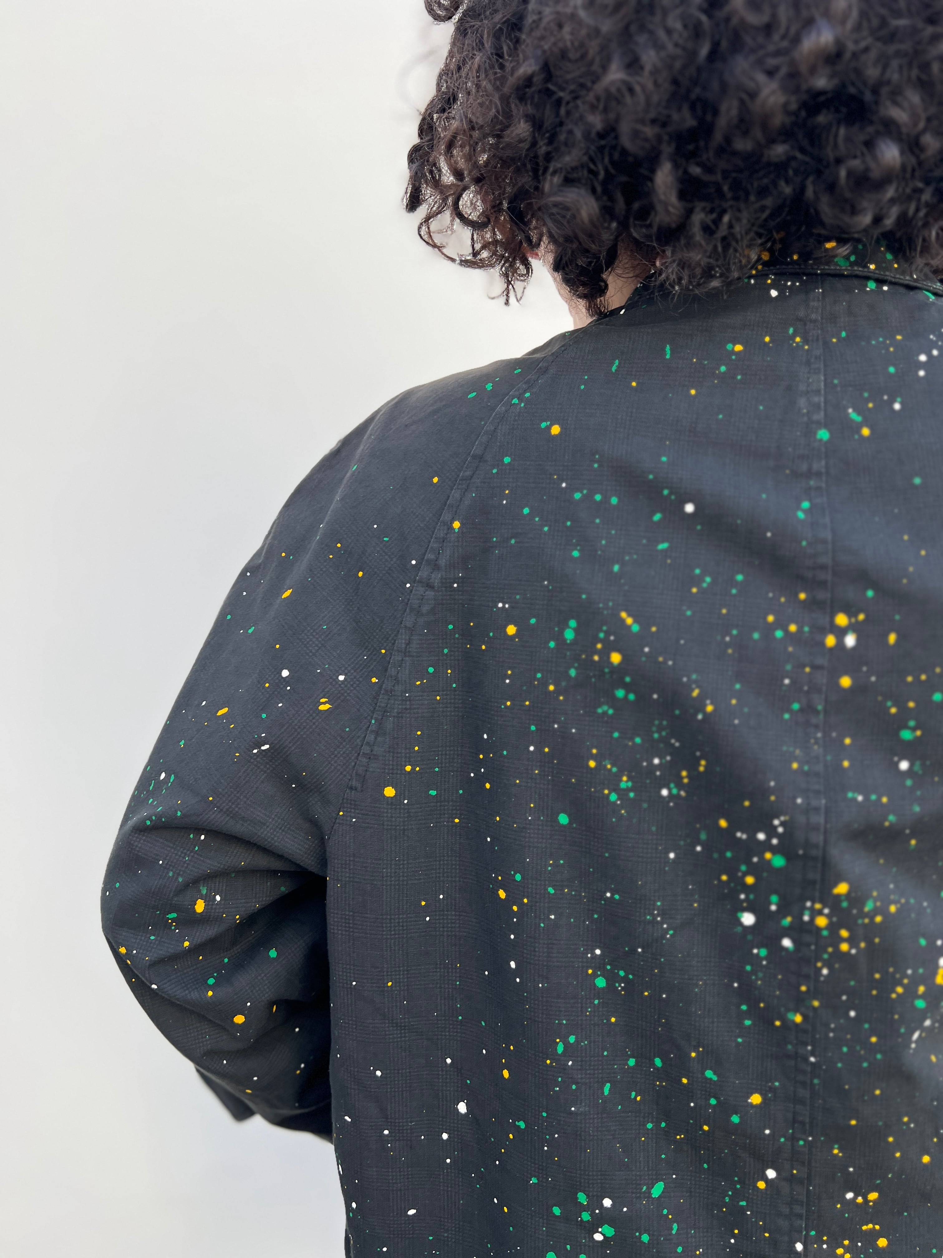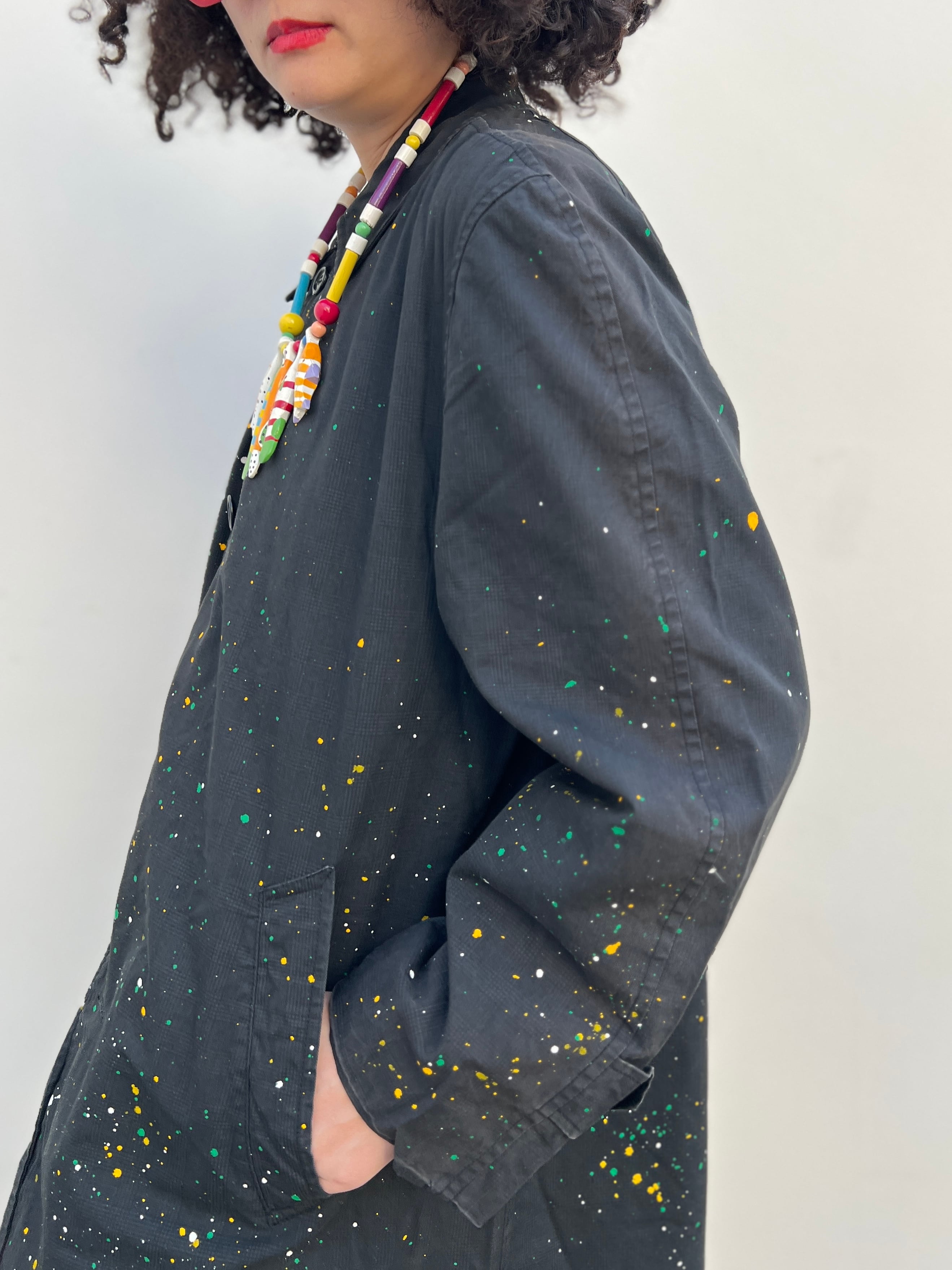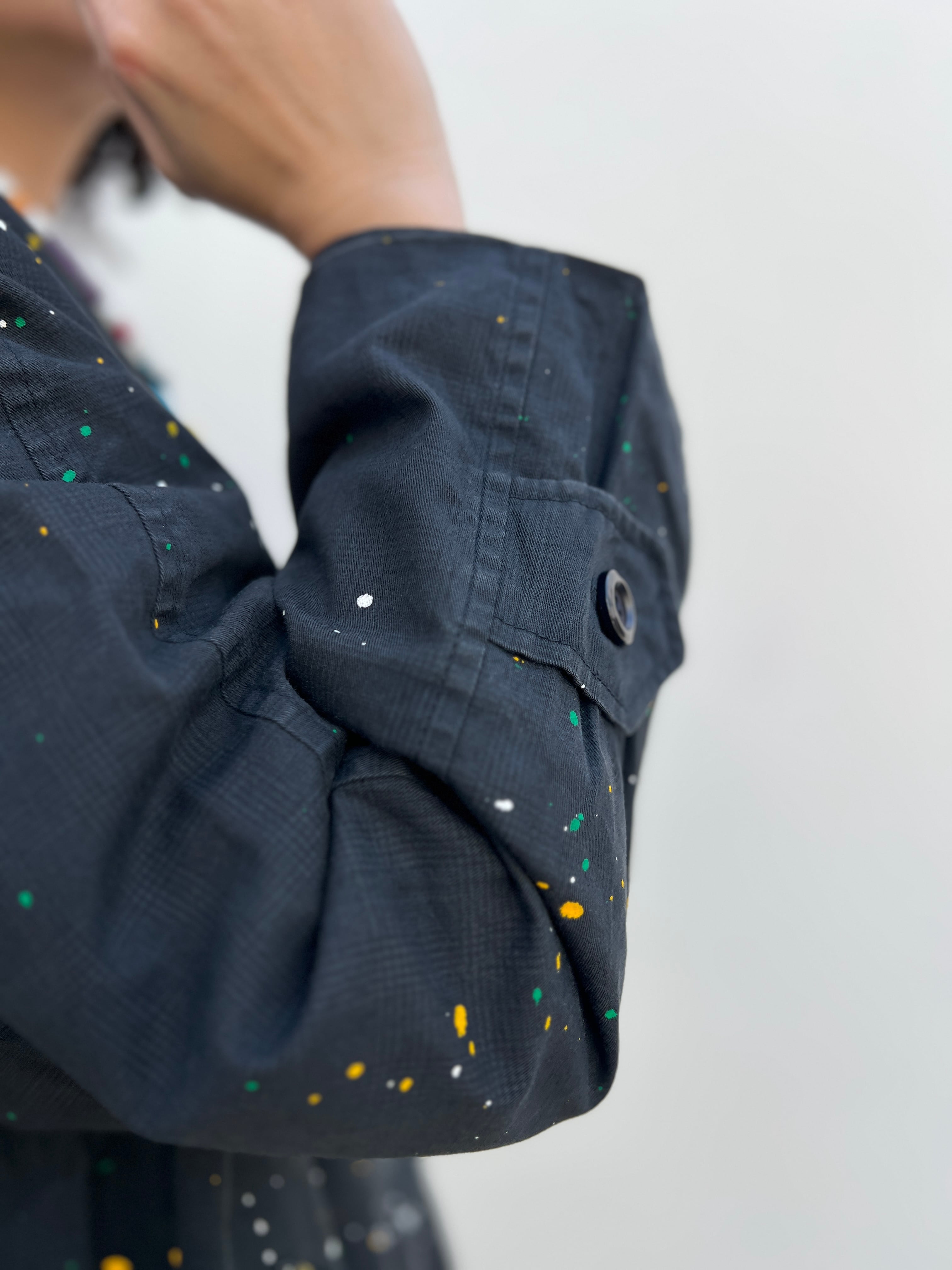 ヴィンテージのブラックのグッドボディーに、固体に合わせたポロック調のアクションペインティングが施された唯一無二なリワークコート。