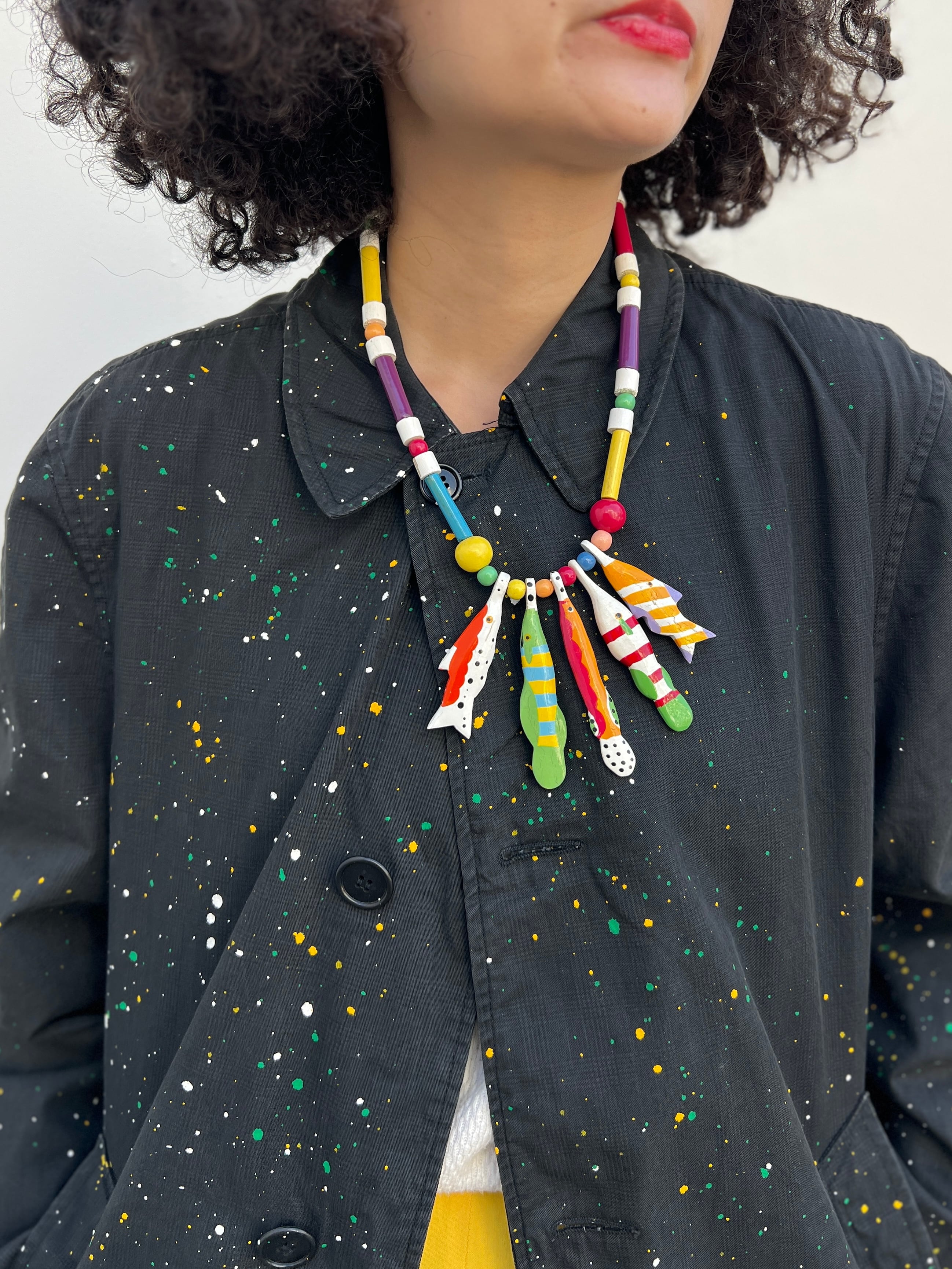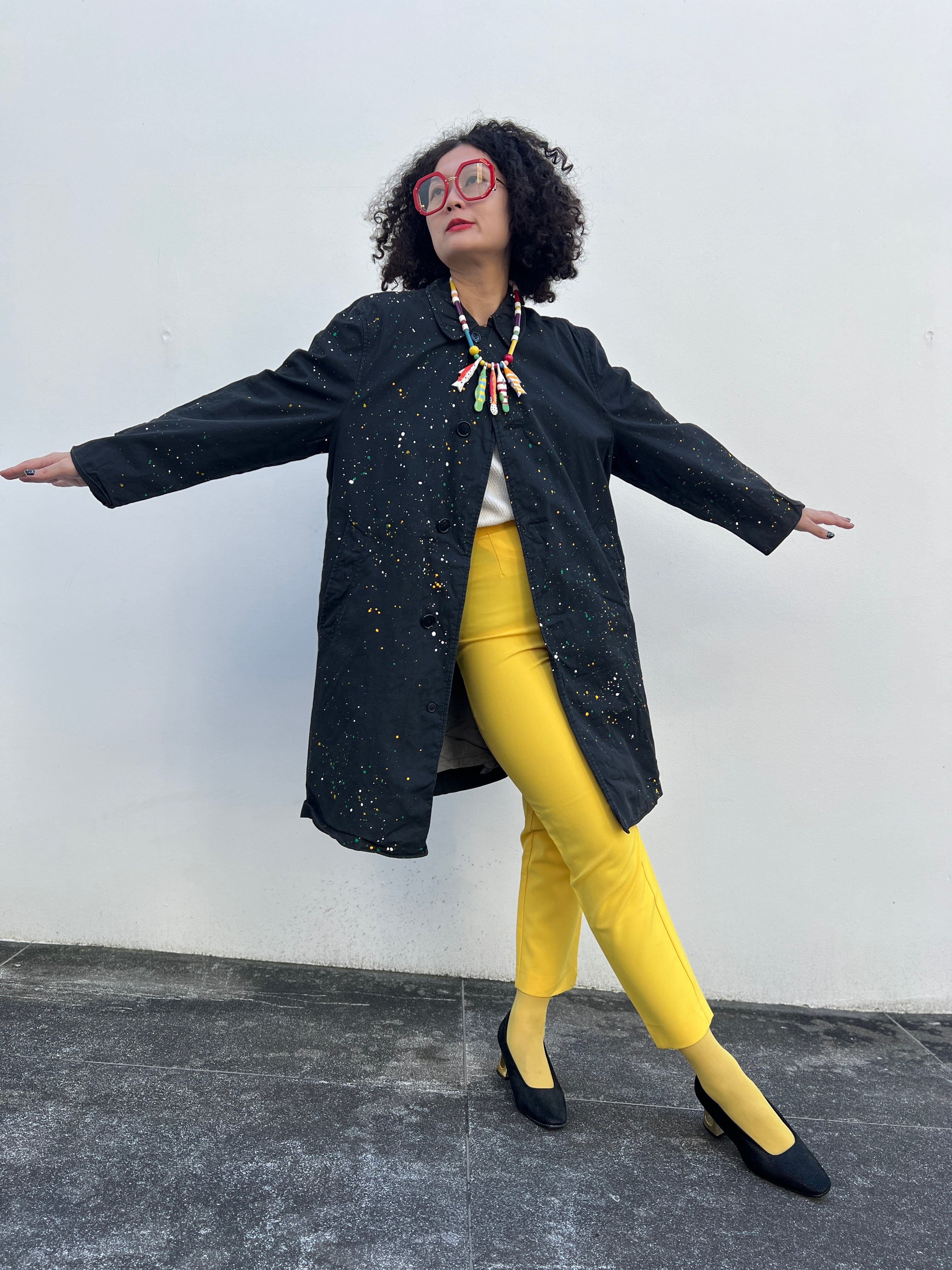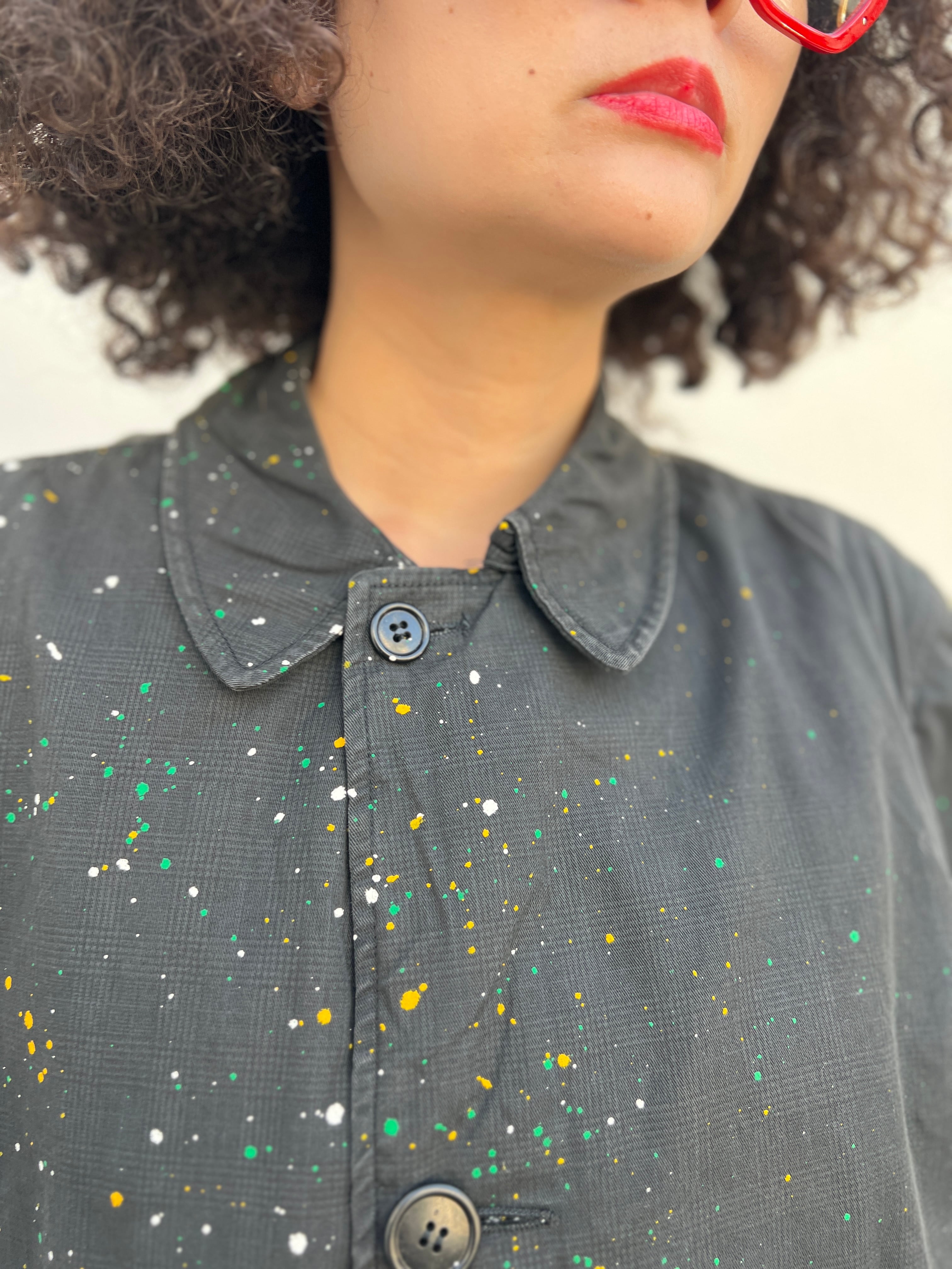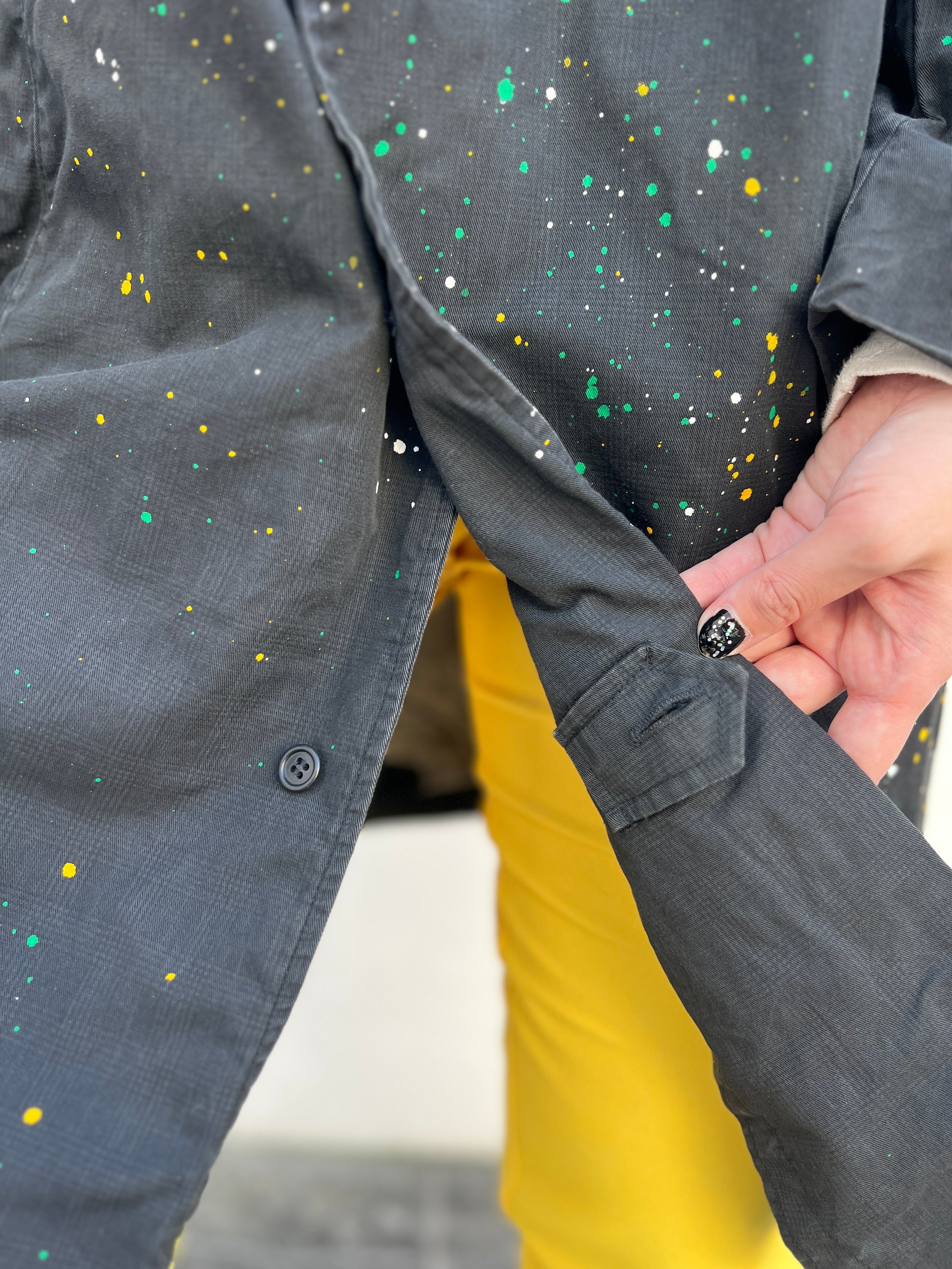 ヴィンテージのブラックのグッドボディーに、固体に合わせたポロック調のアクションペインティングが施された唯一無二なリワークコート。