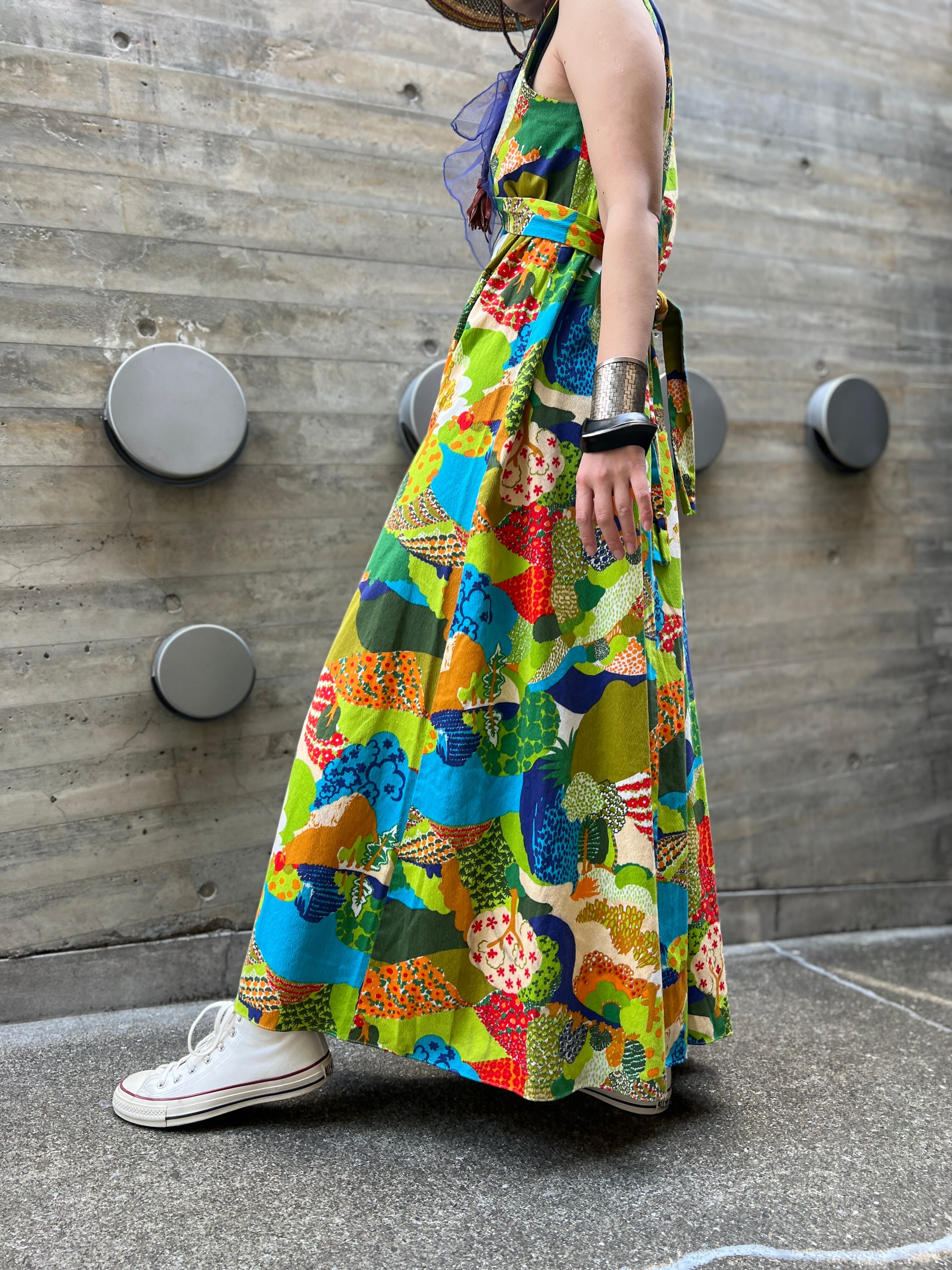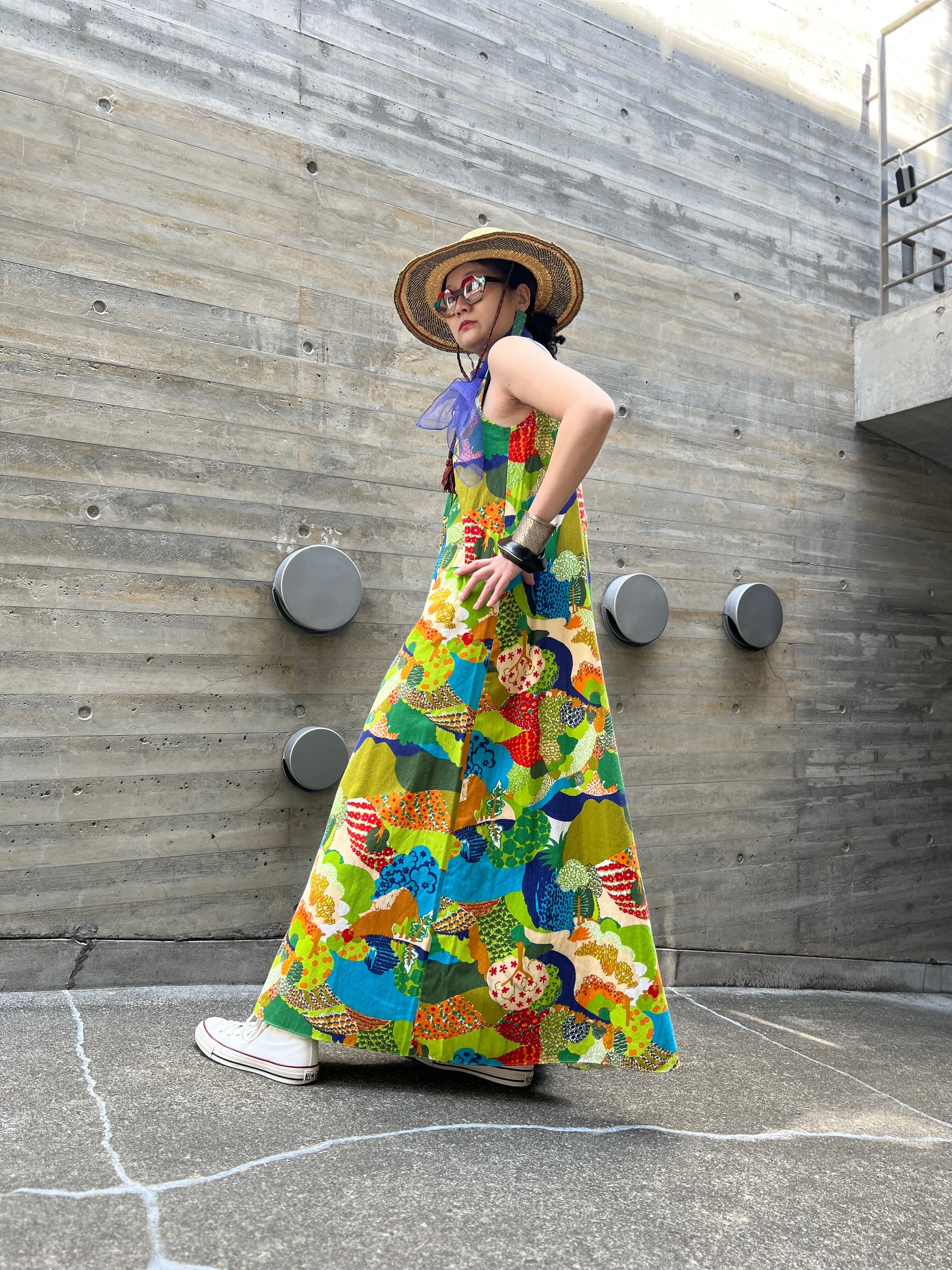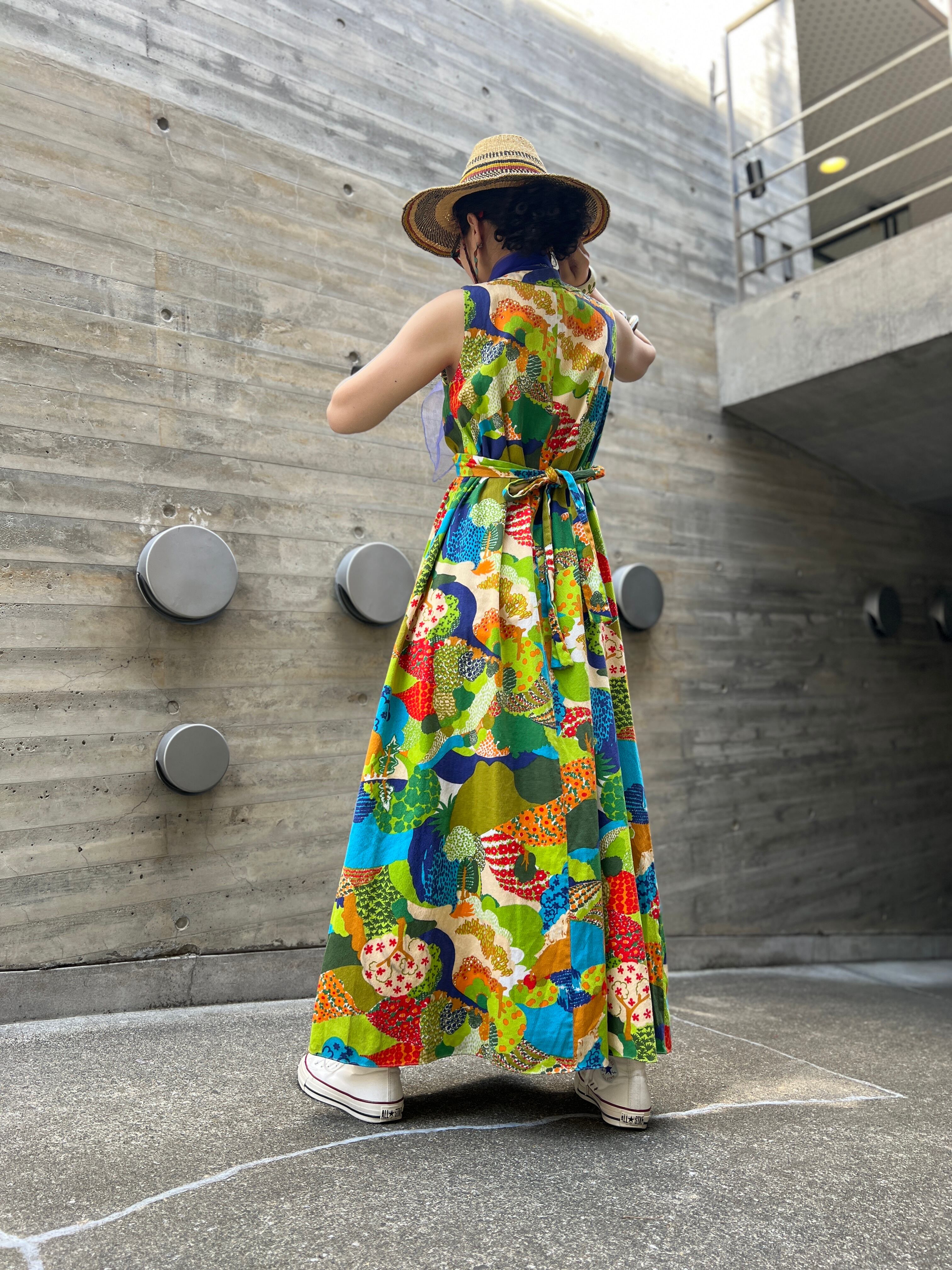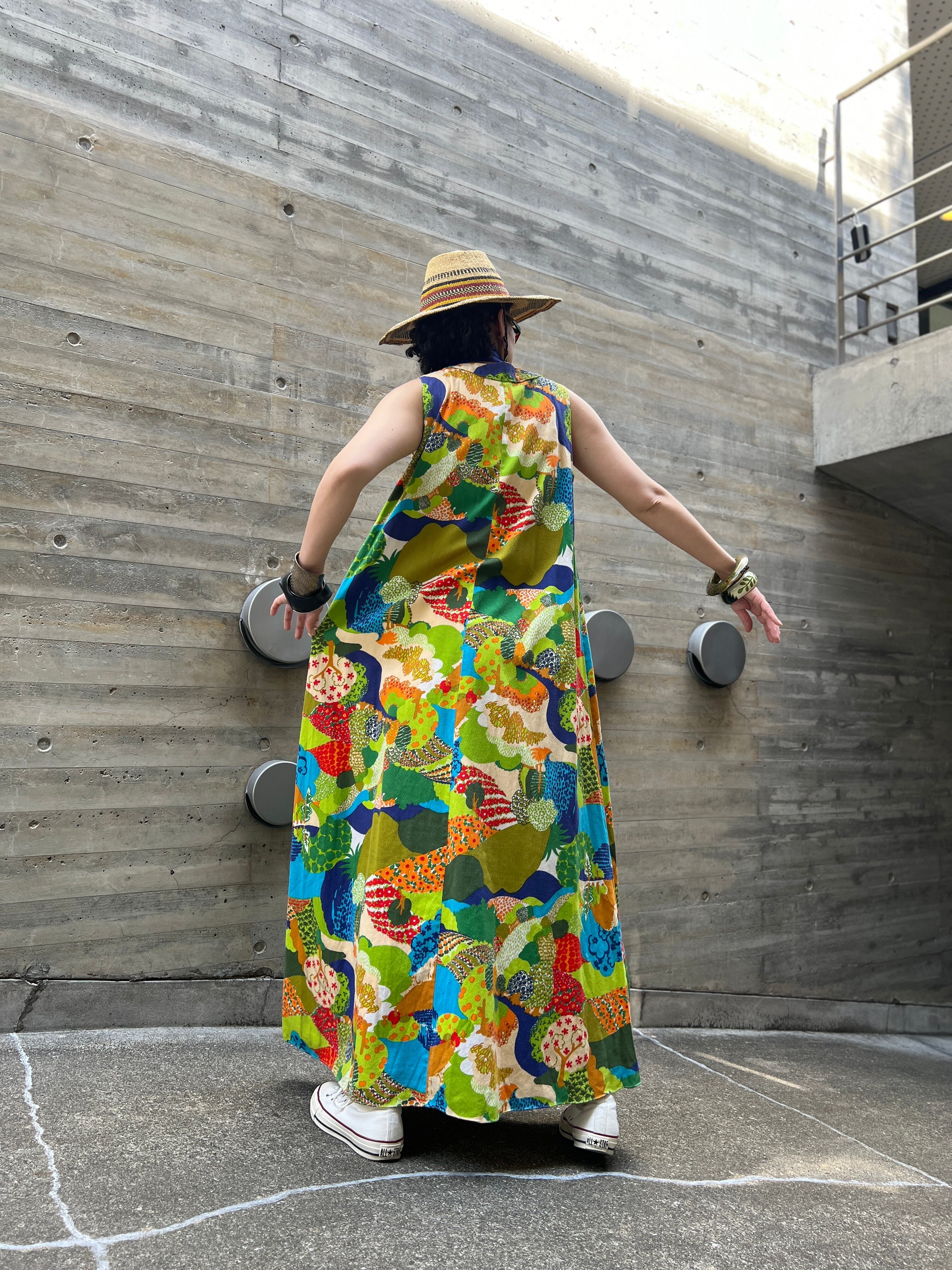 60s-70s floral sleeveless cotton dress