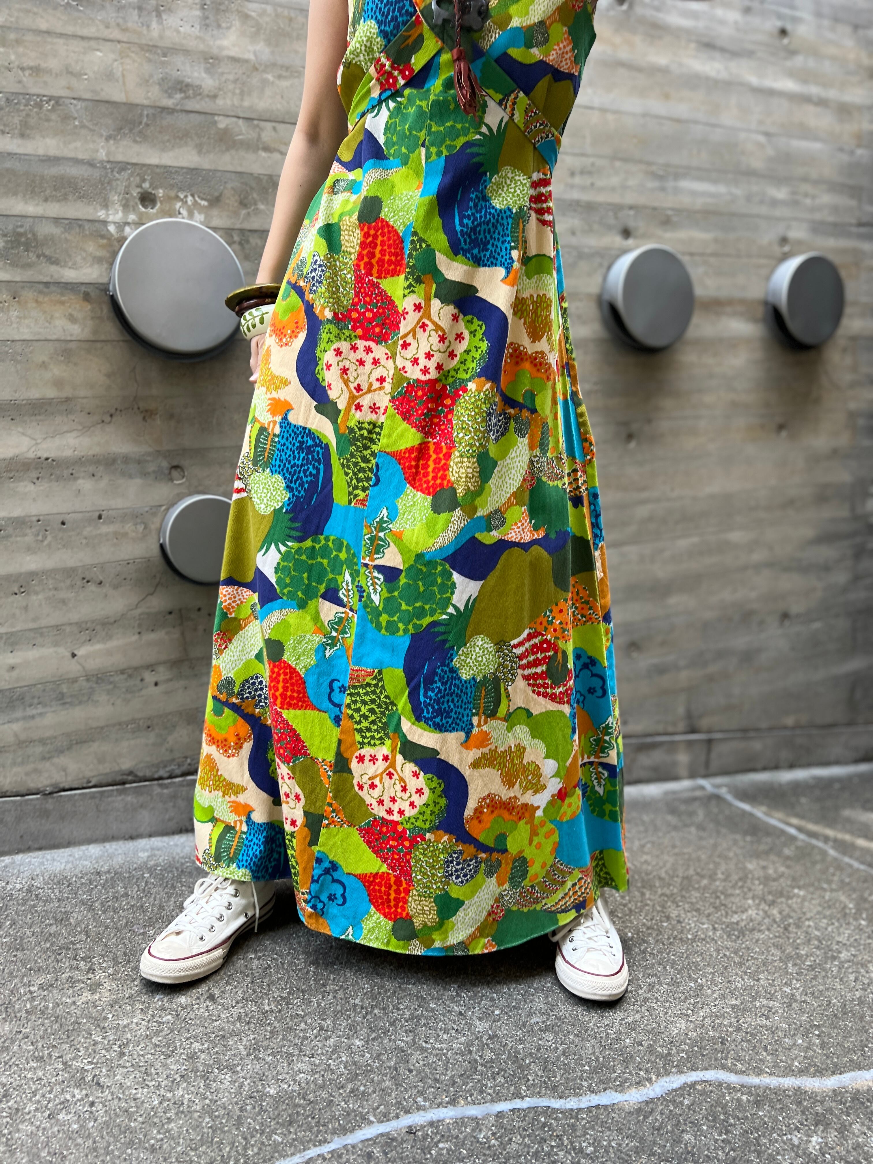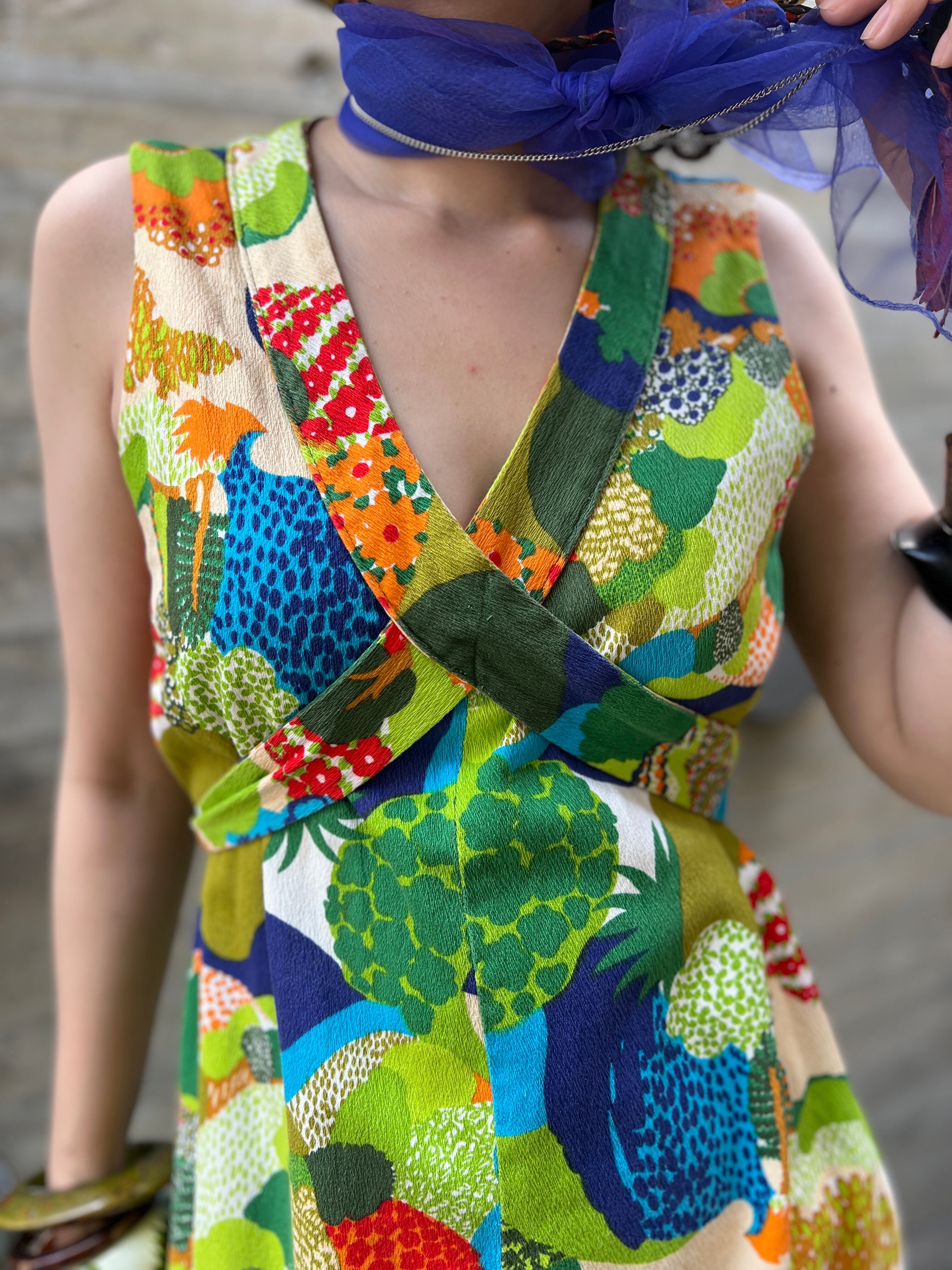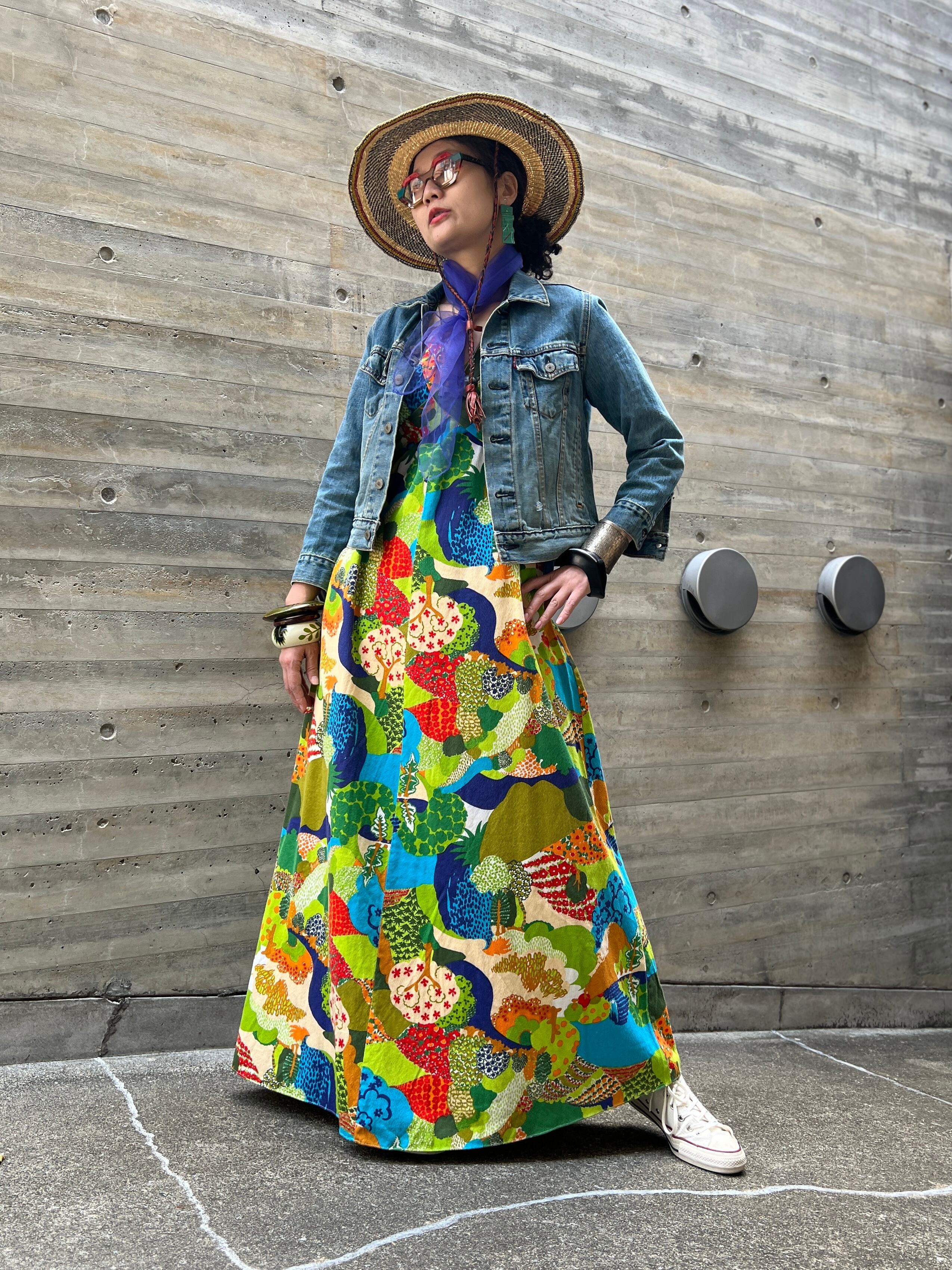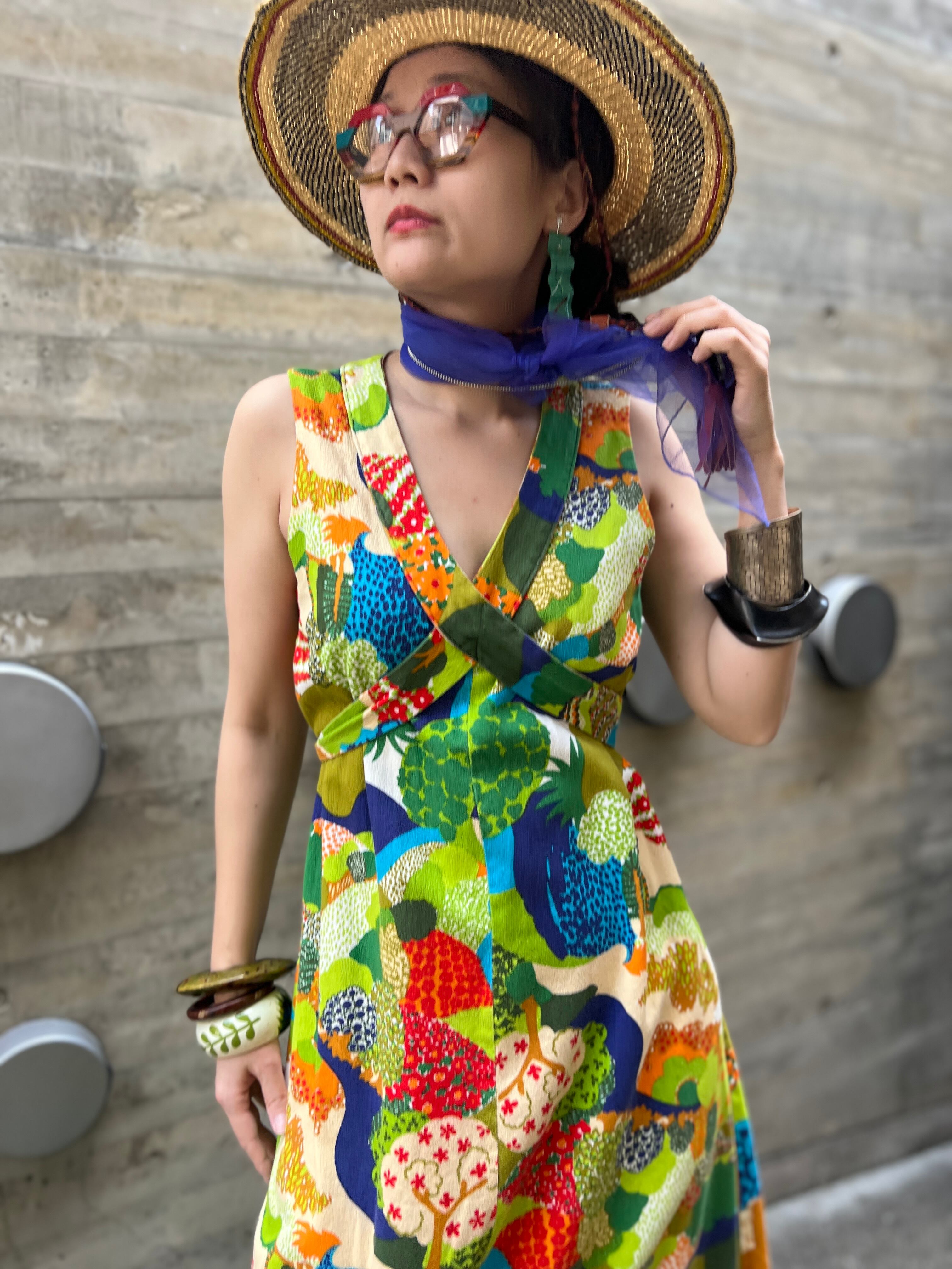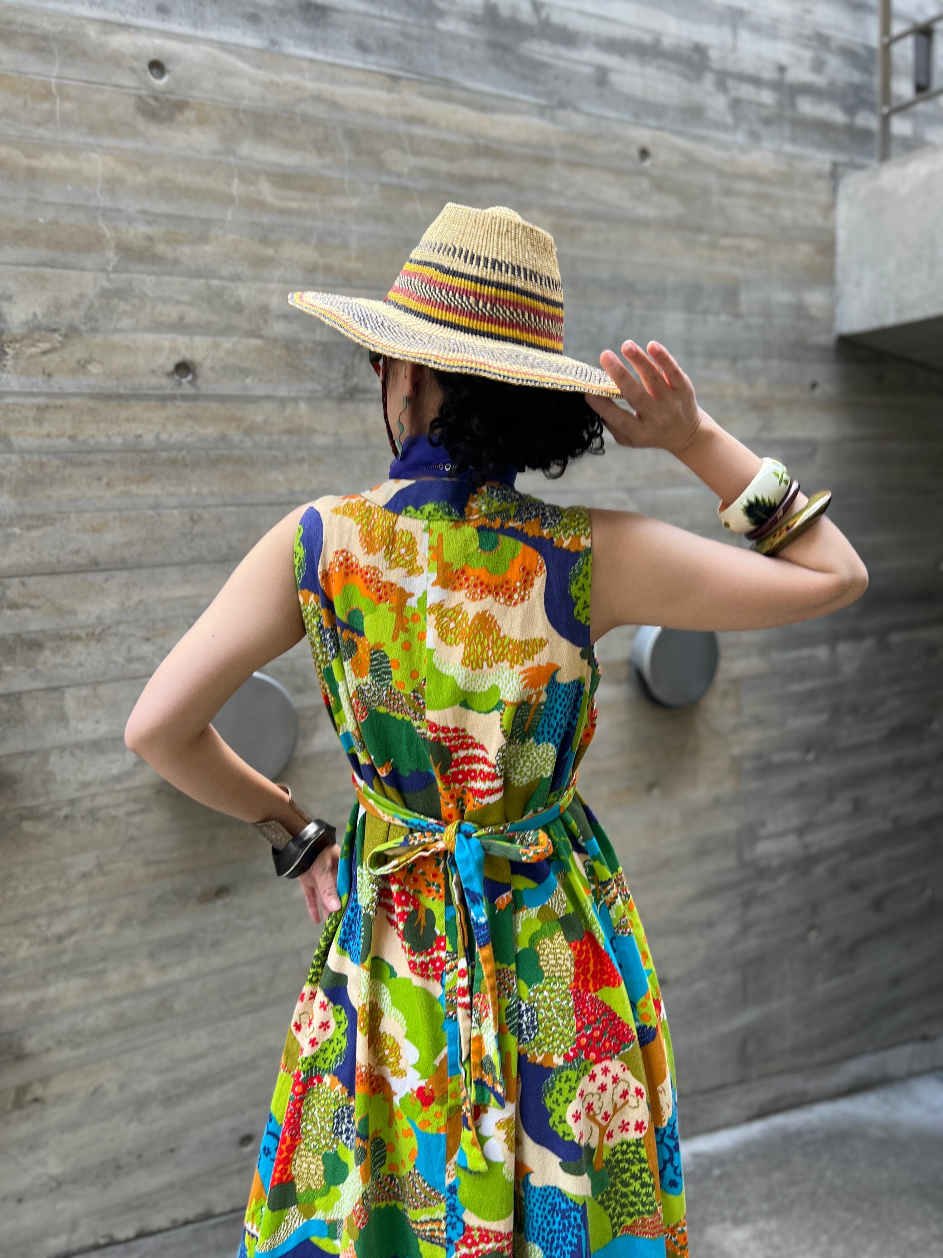 60s-70s floral sleeveless cotton dress