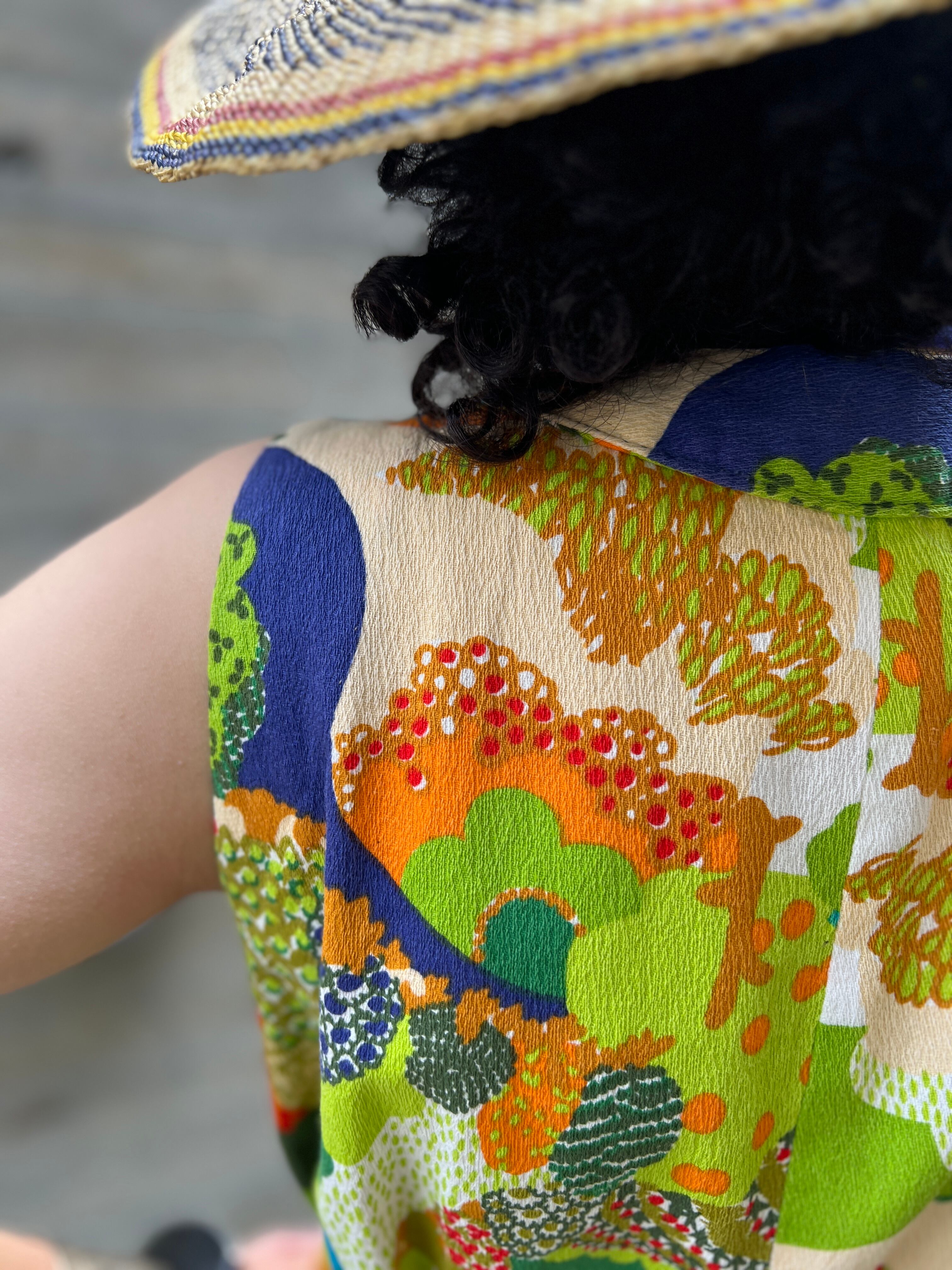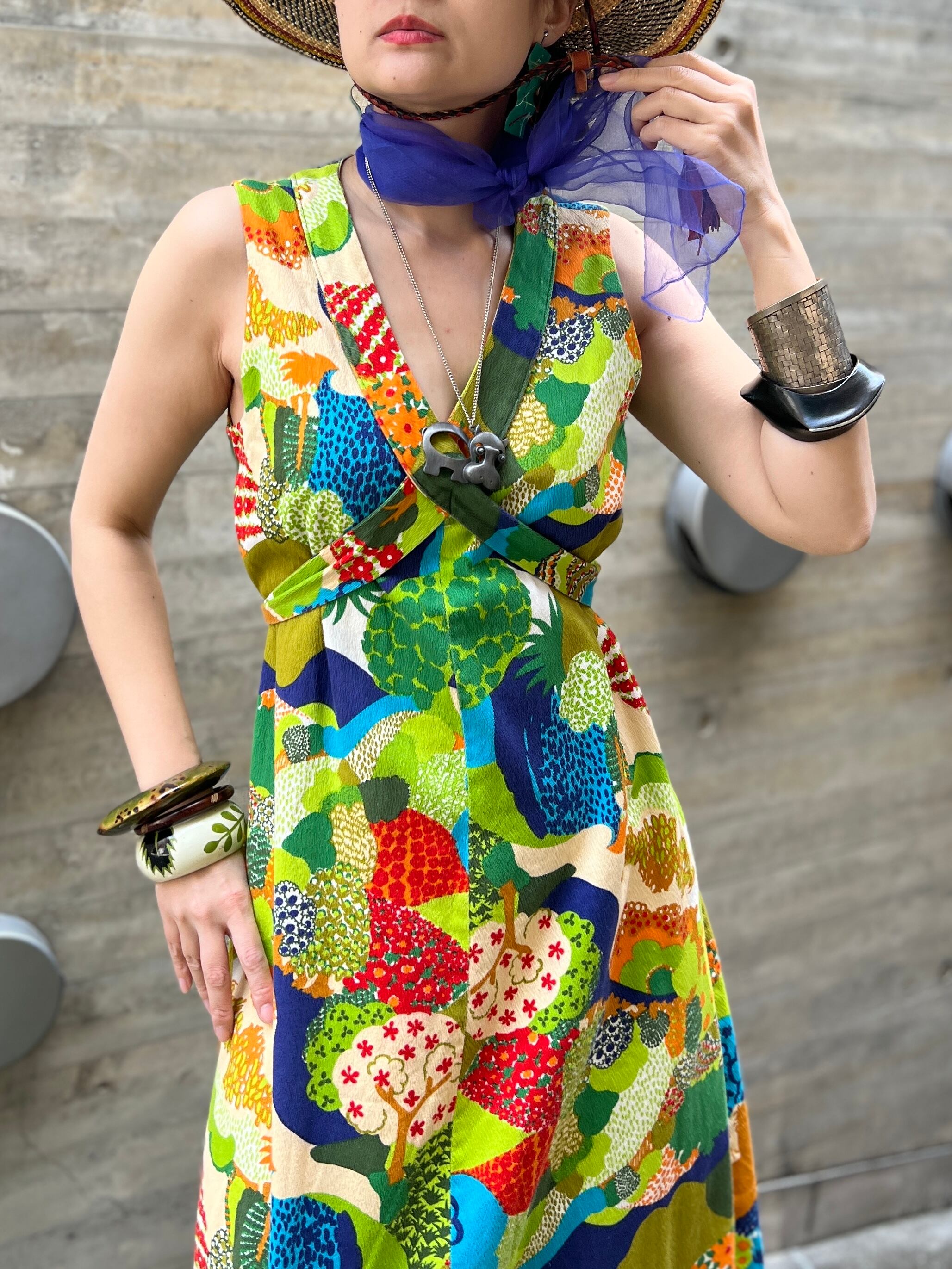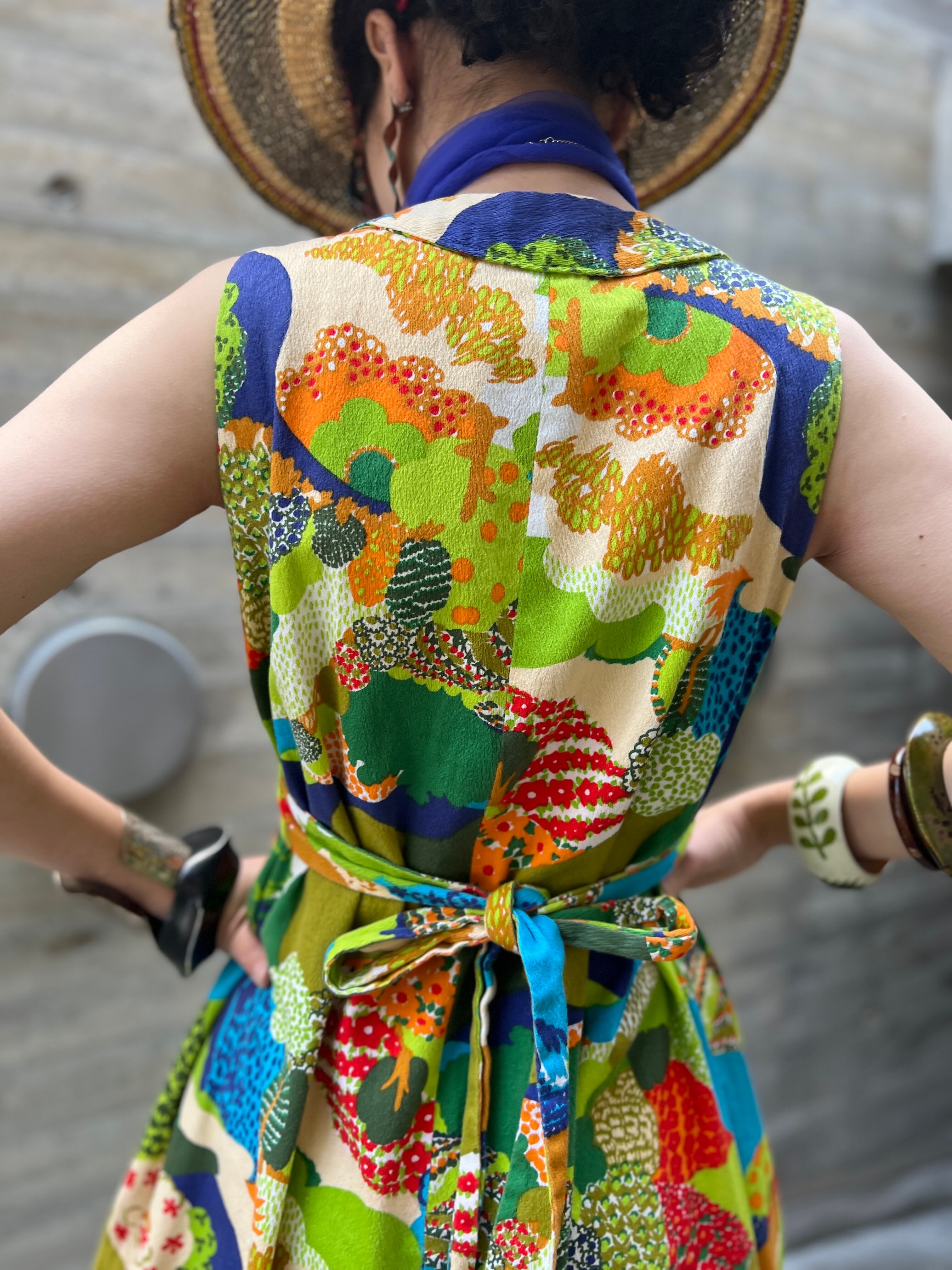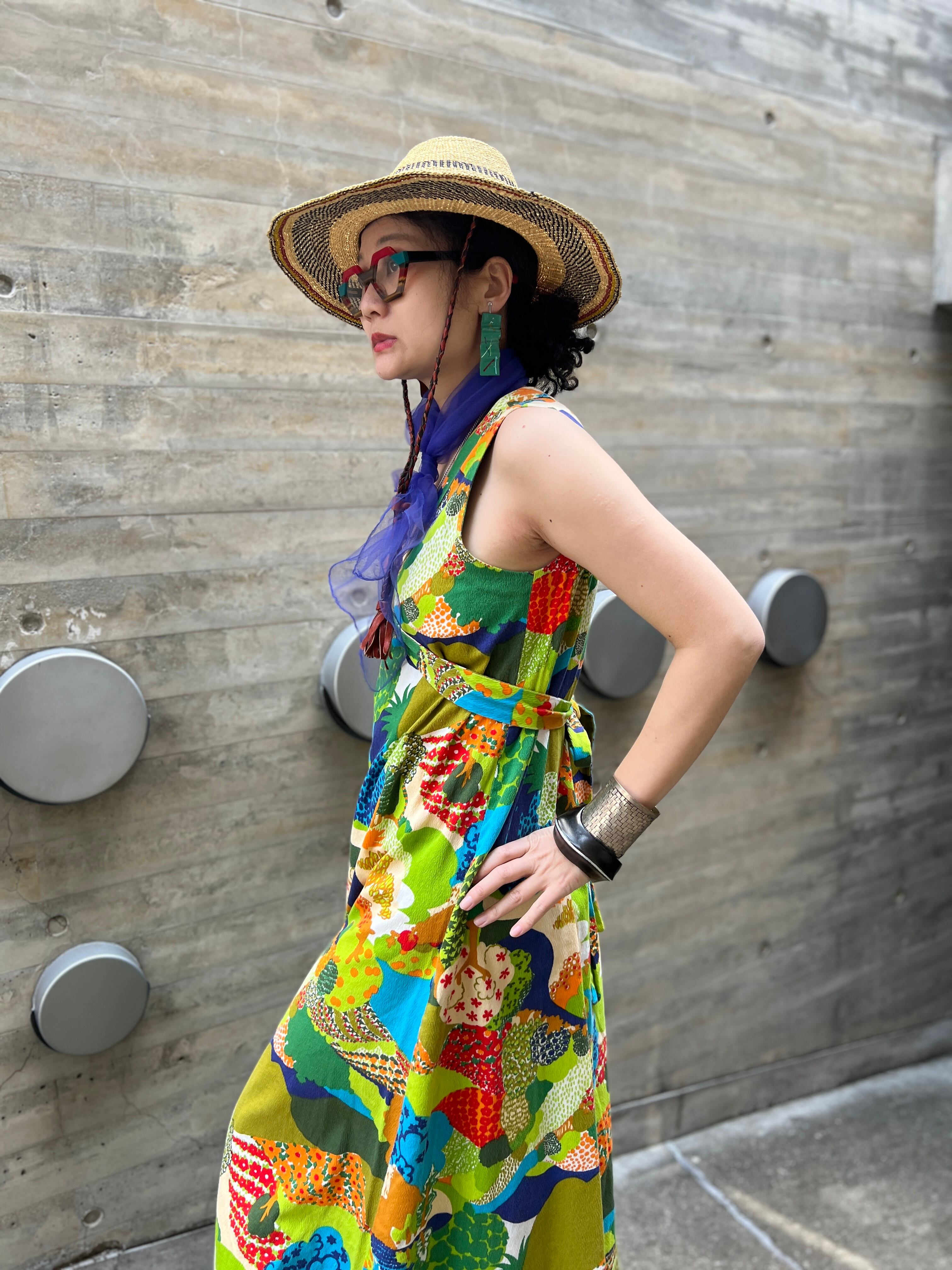 60s-70s floral sleeveless cotton dress