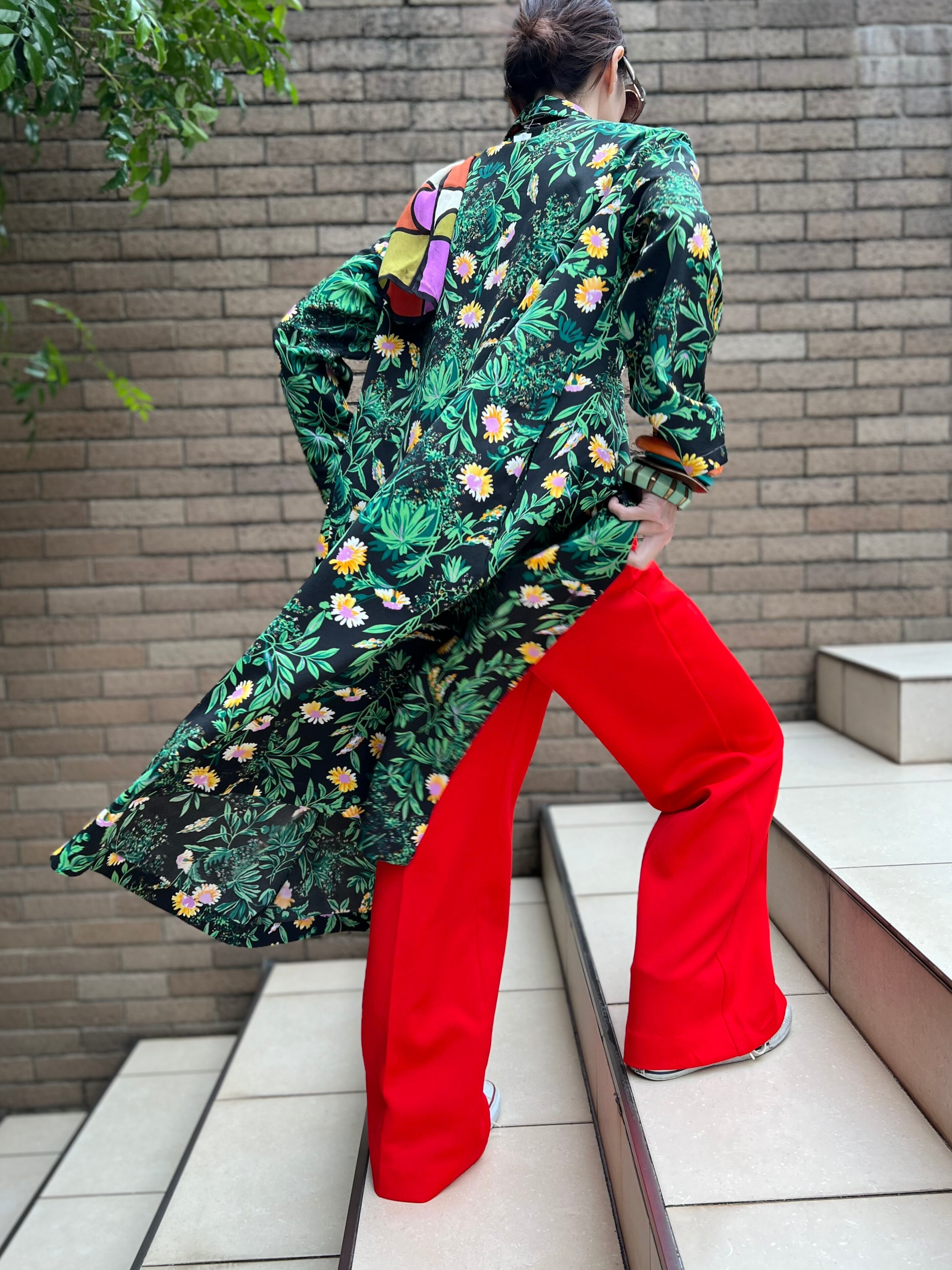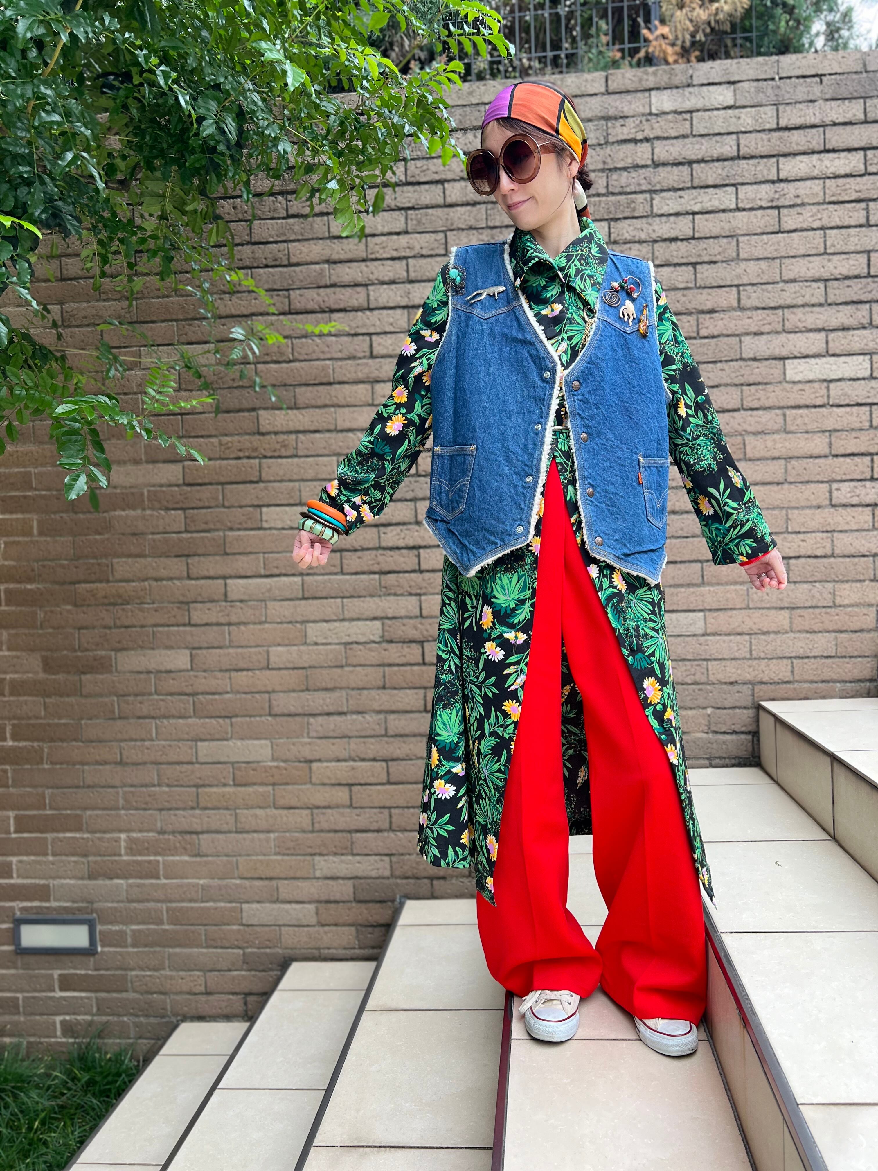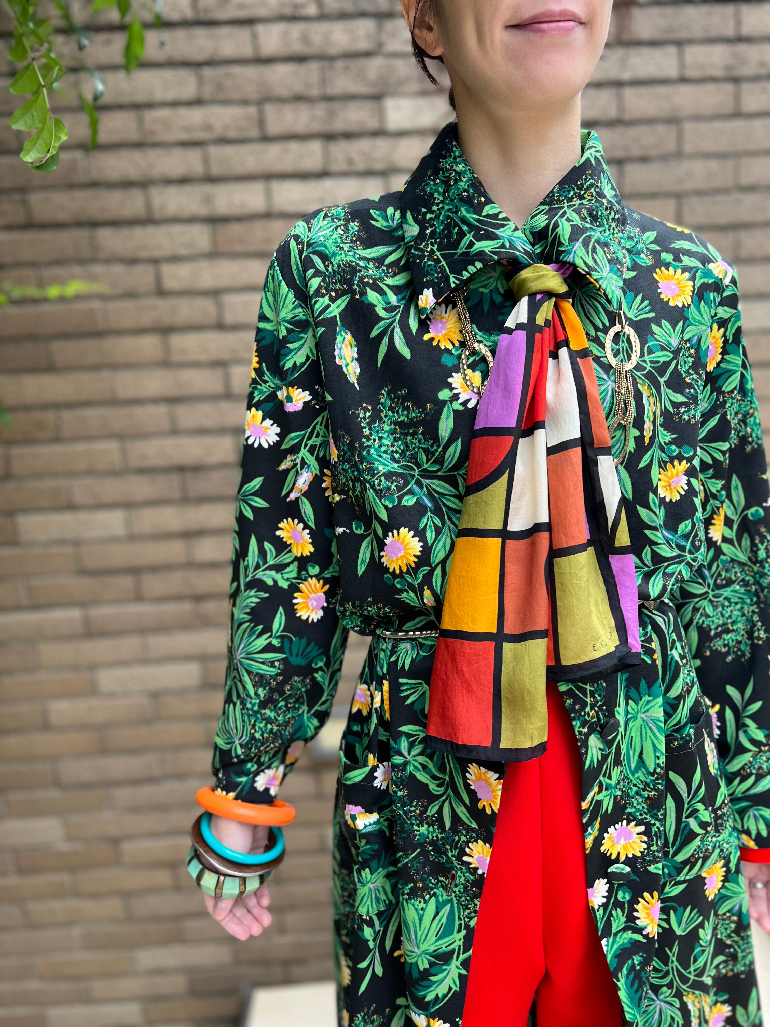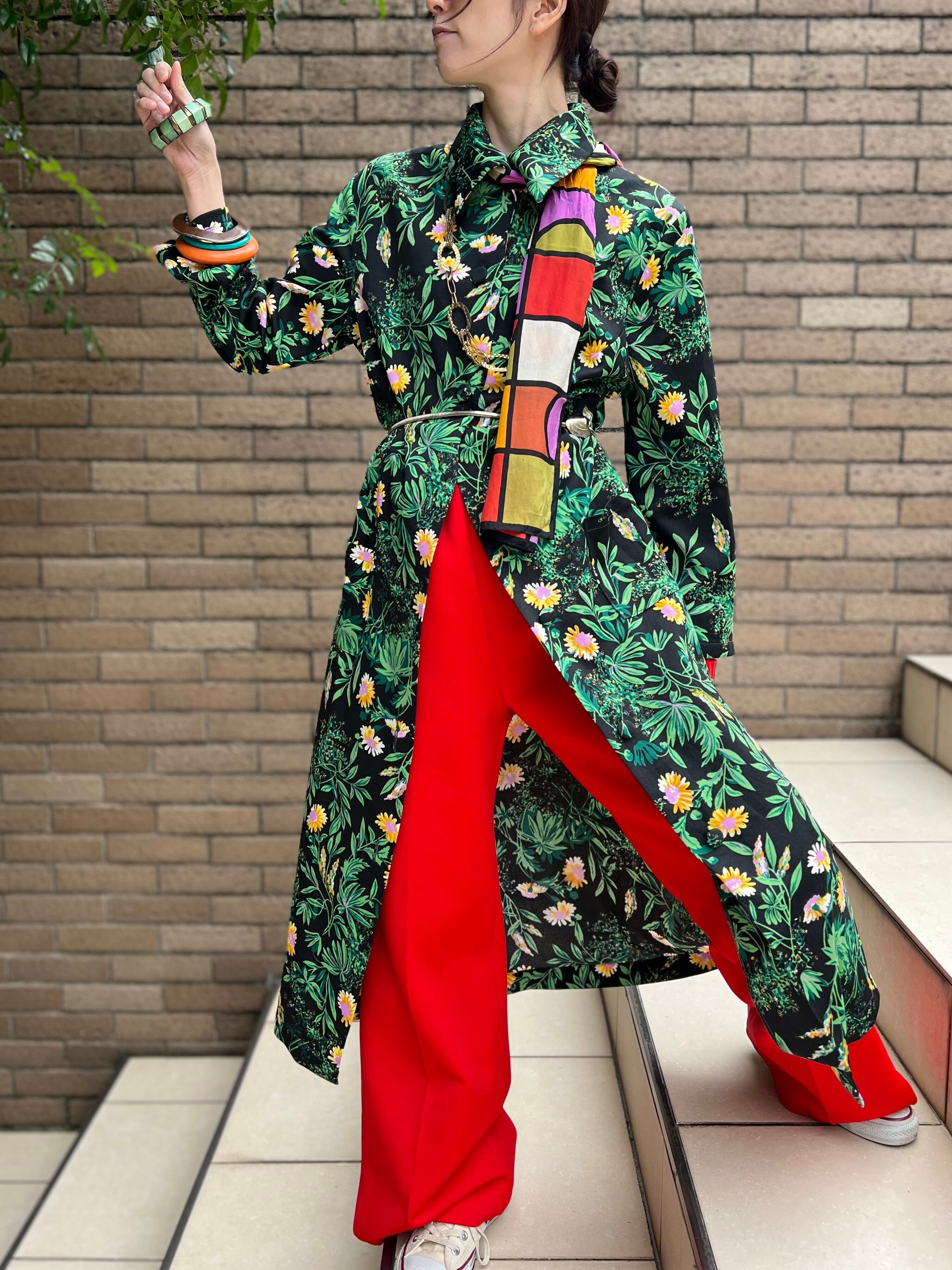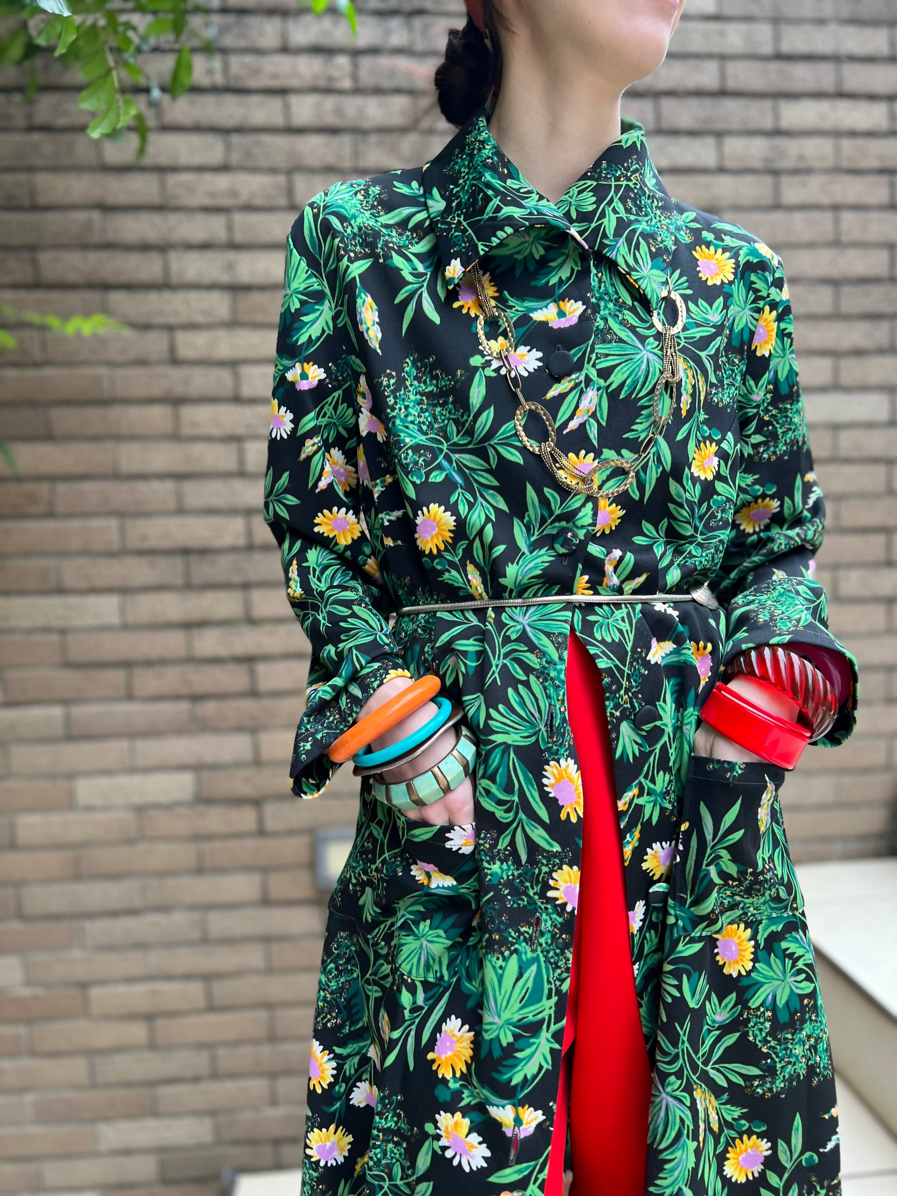 70s floral poly haori dress ( ヴィンテージ 花柄 ポリ 羽織り ワンピース )