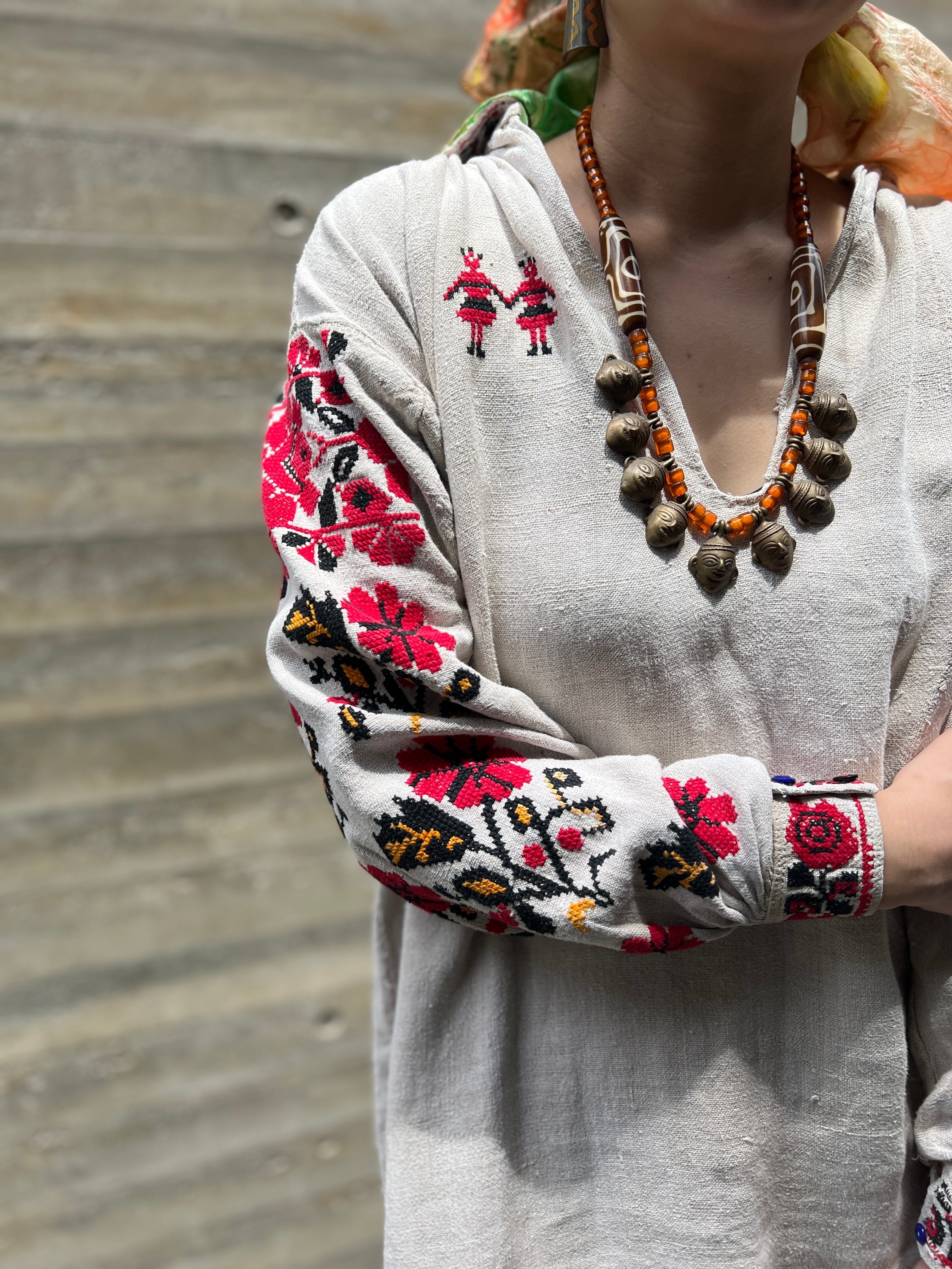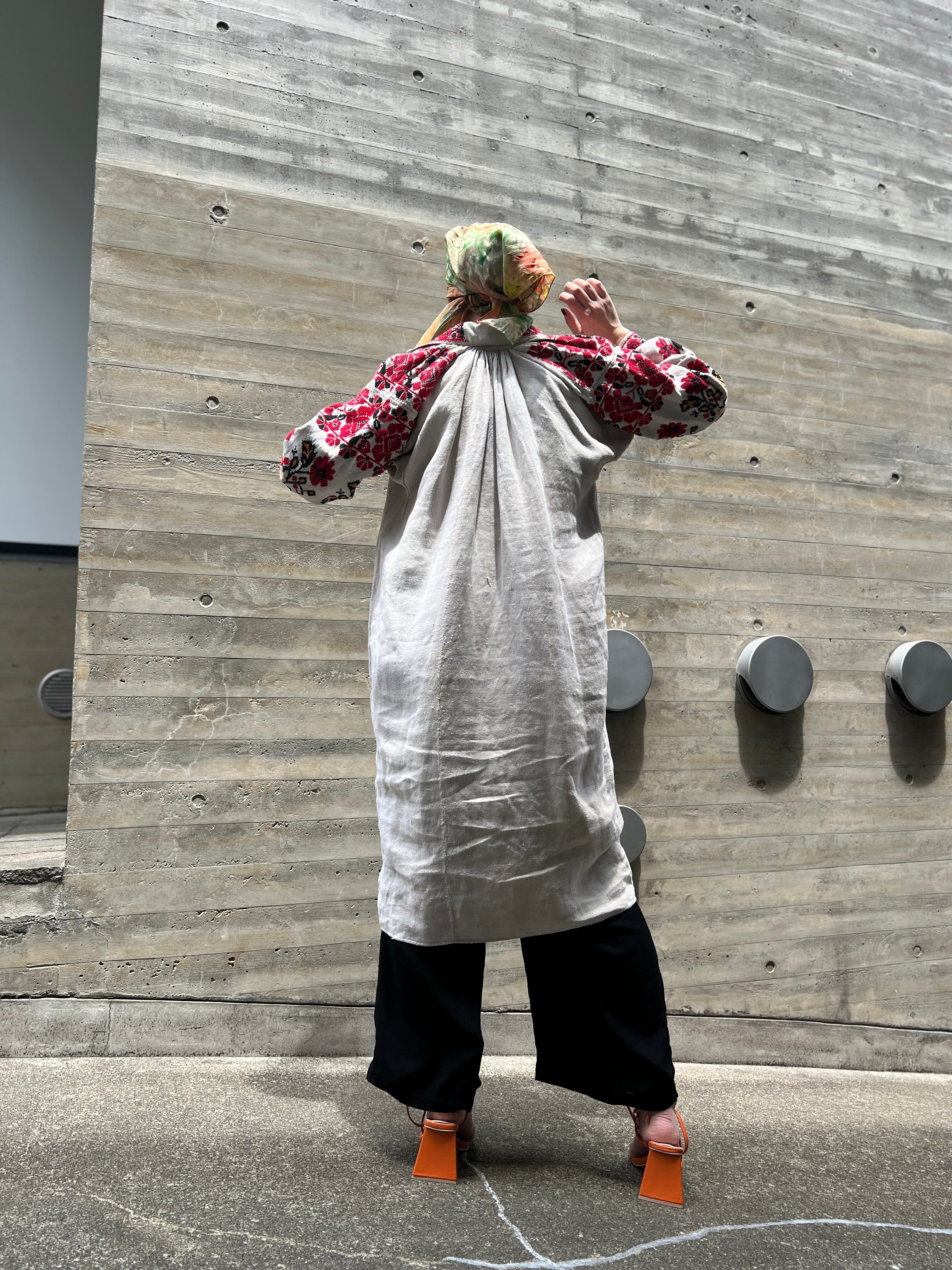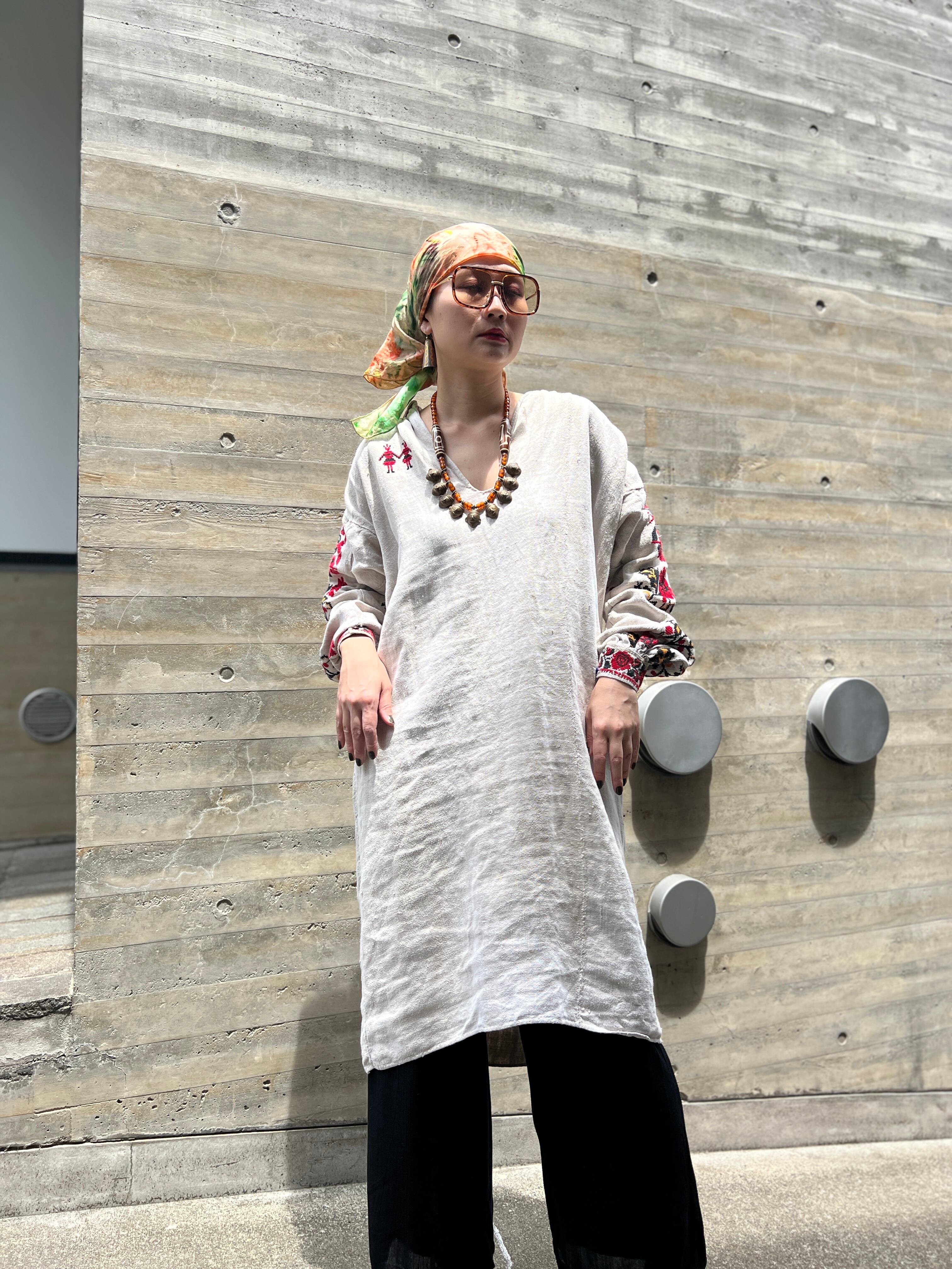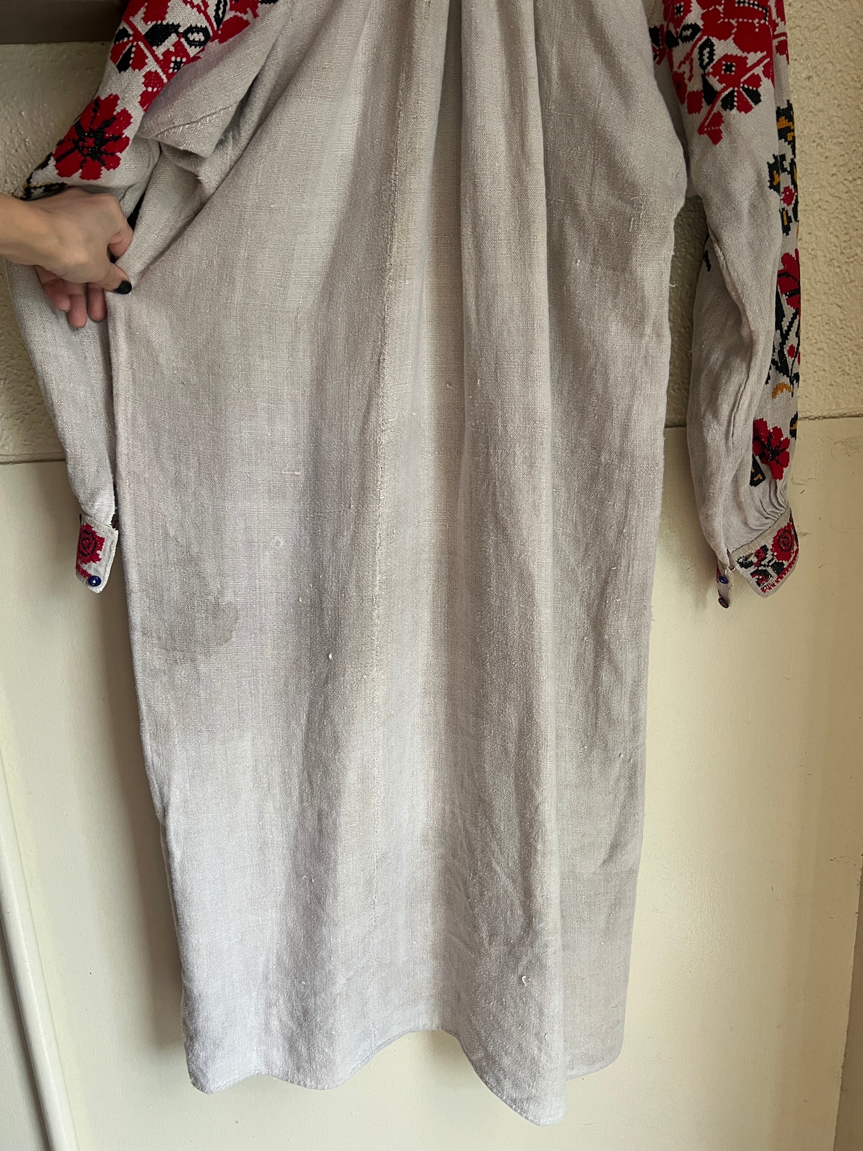 Vintage Ukraina floral × people embroidery linen dress