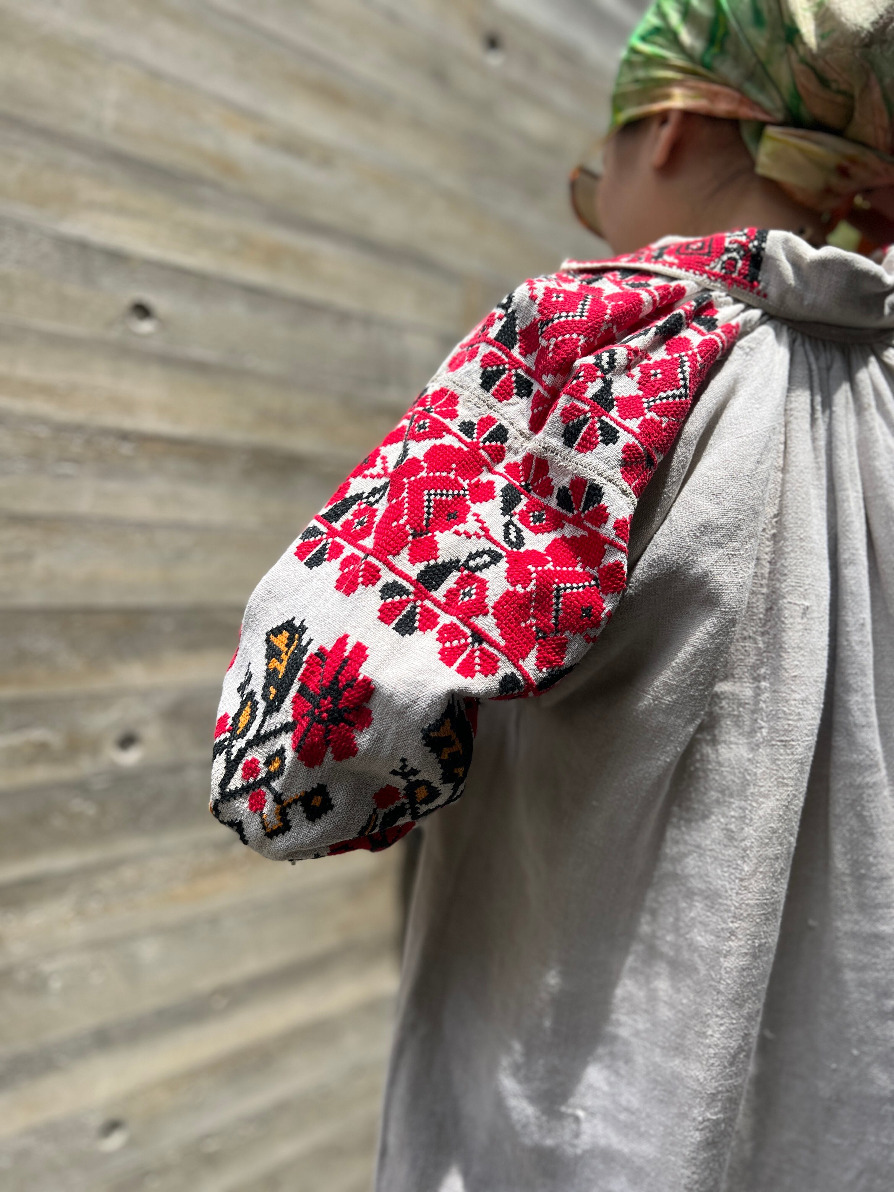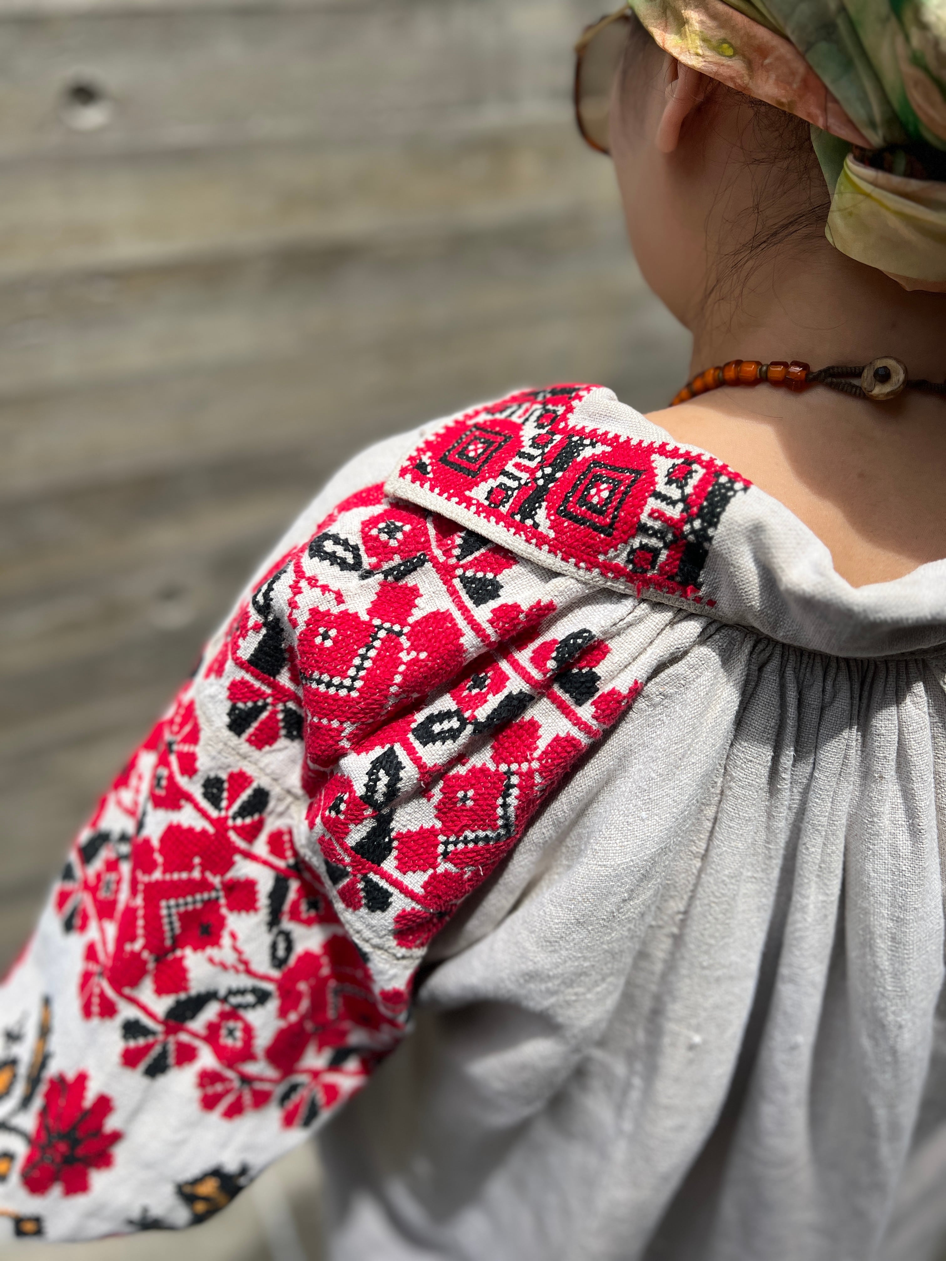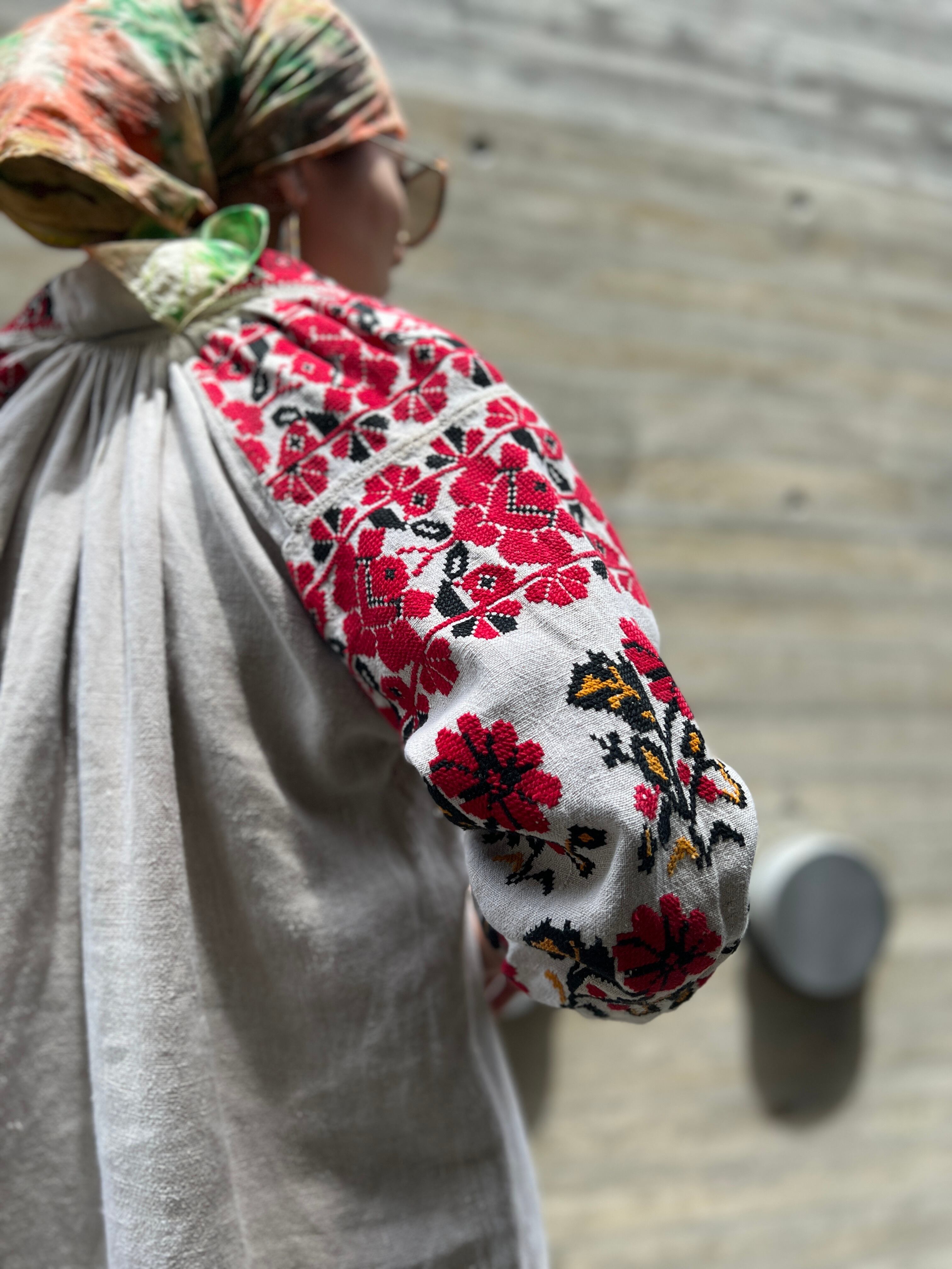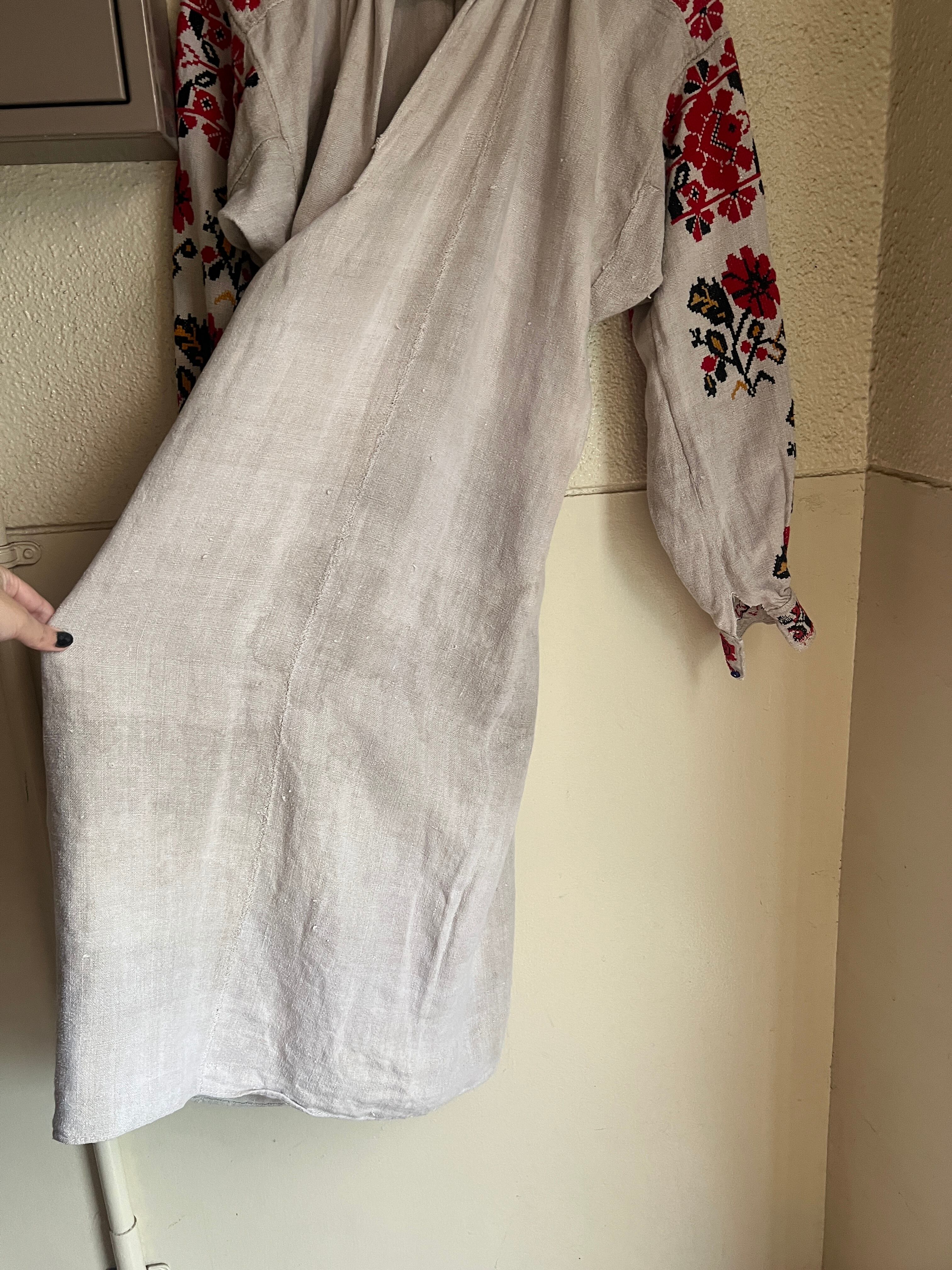 Vintage Ukraina floral × people embroidery linen dress