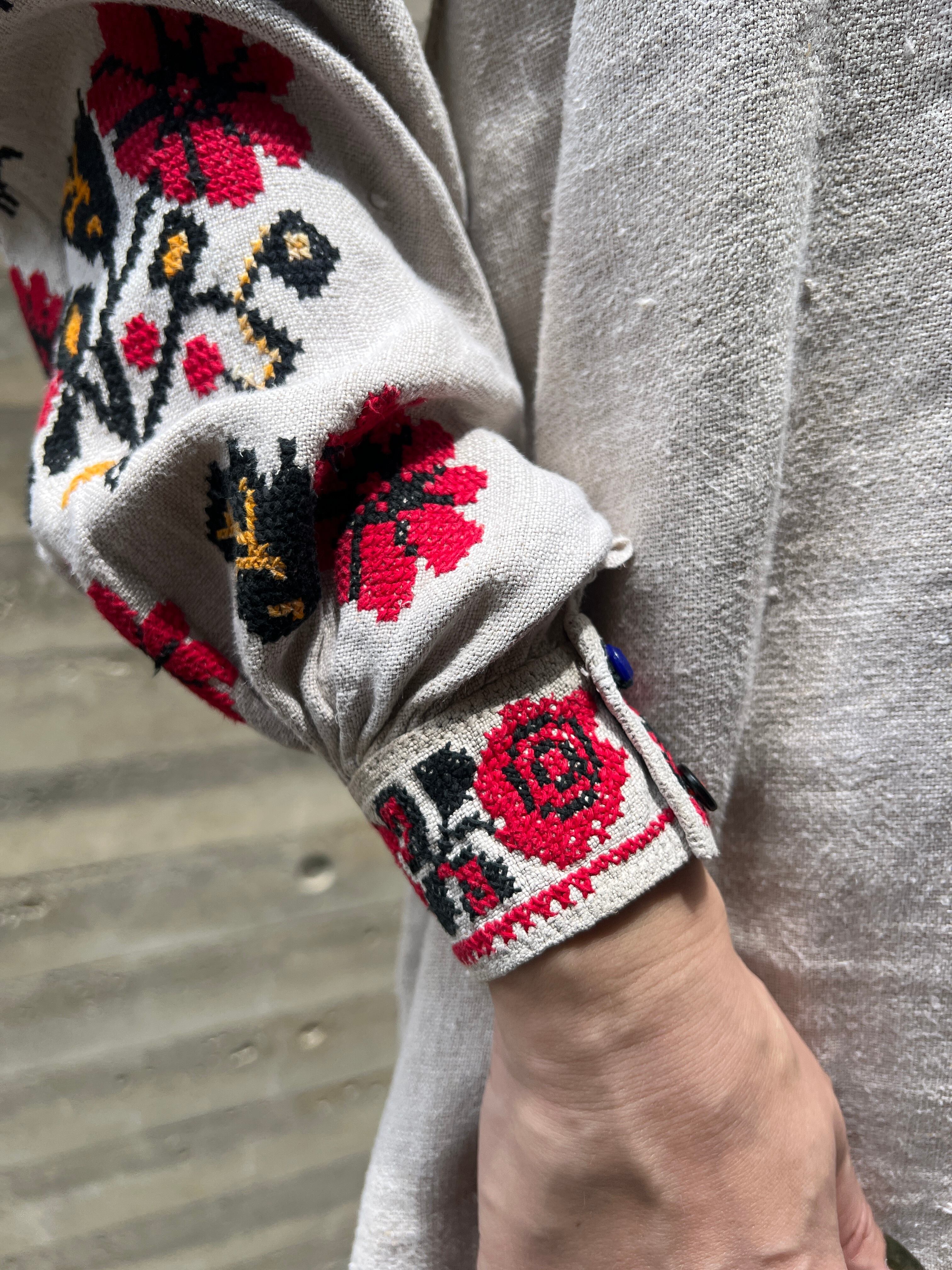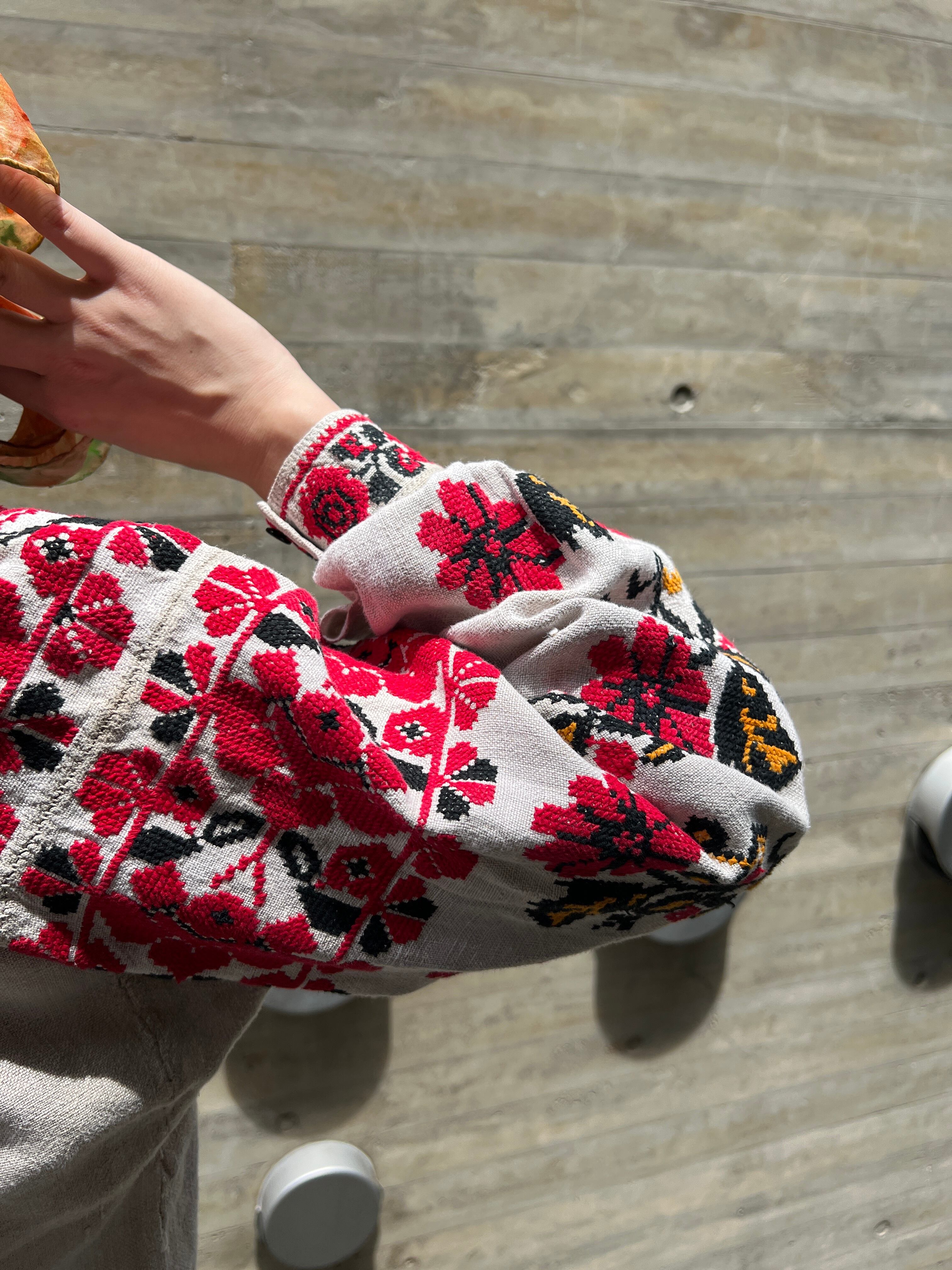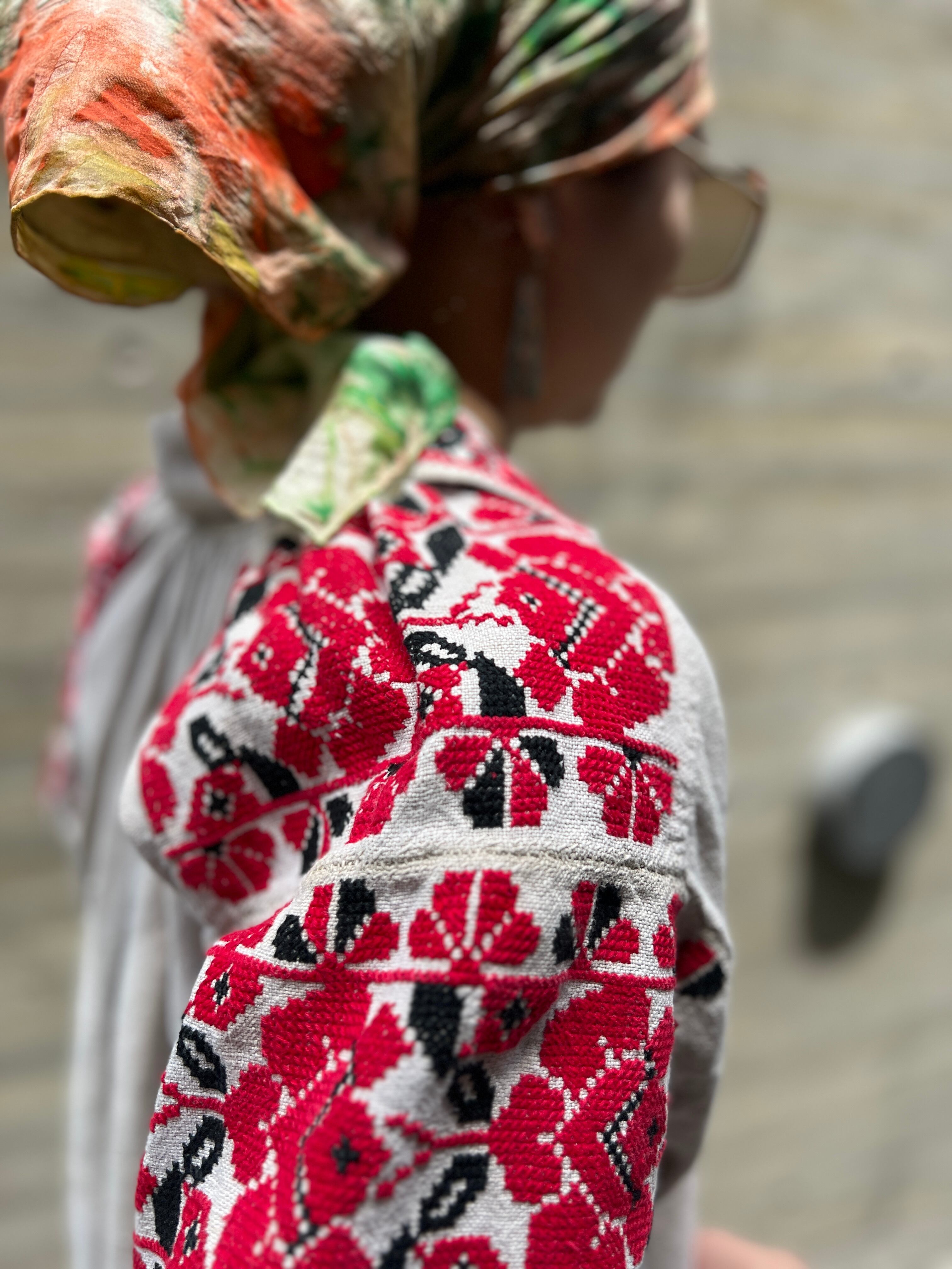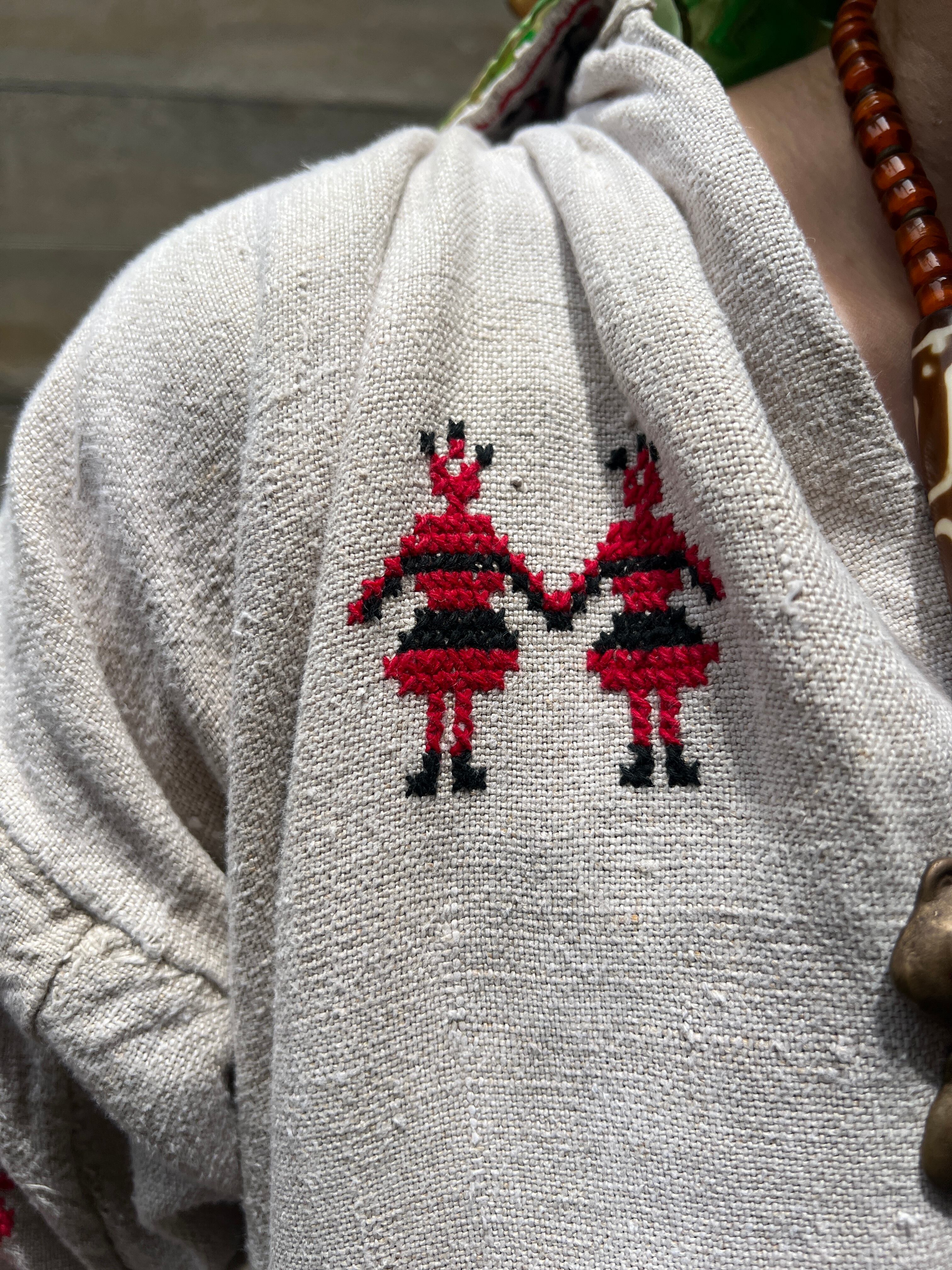Vintage Ukraina floral × people embroidery linen dress