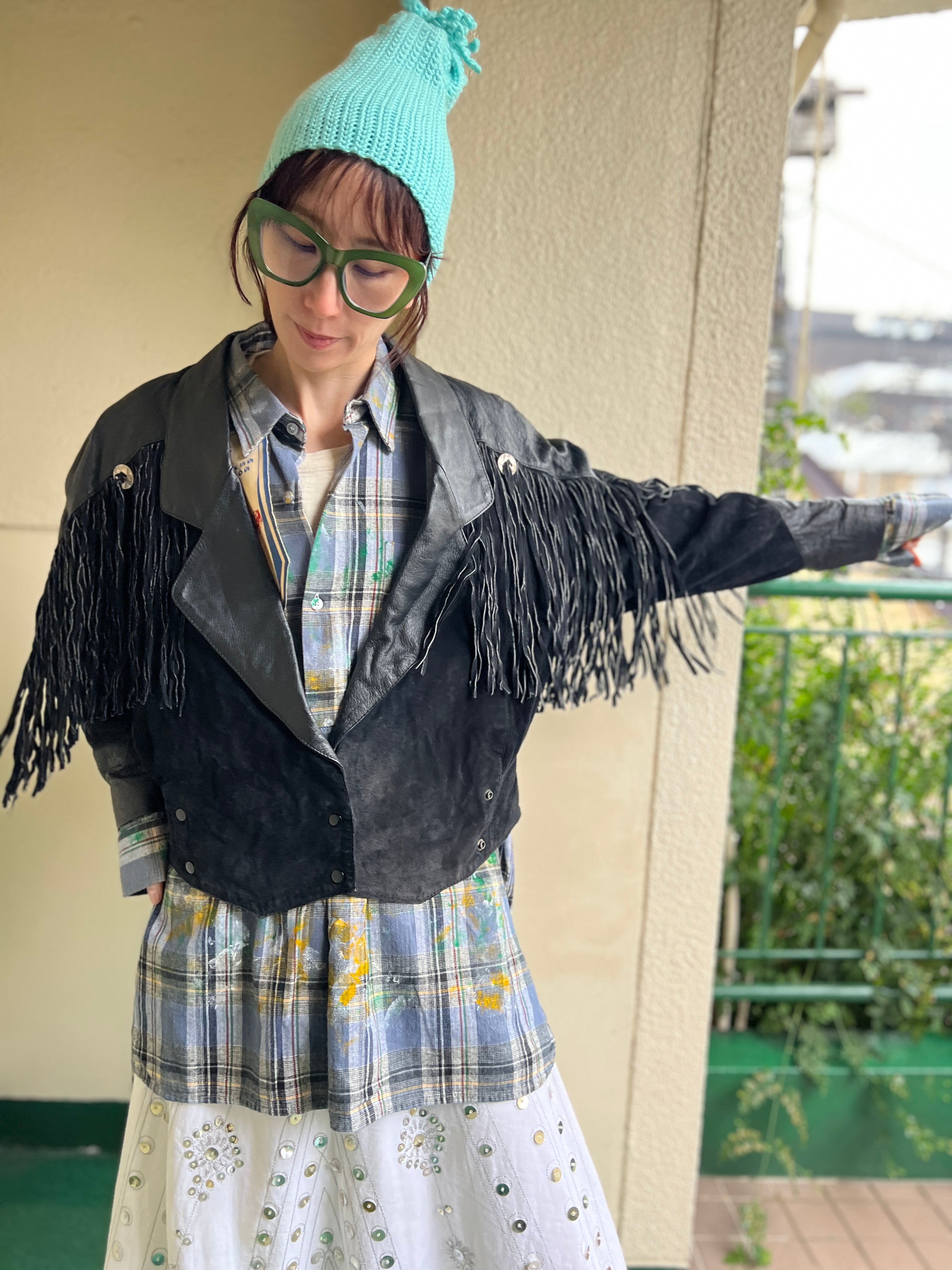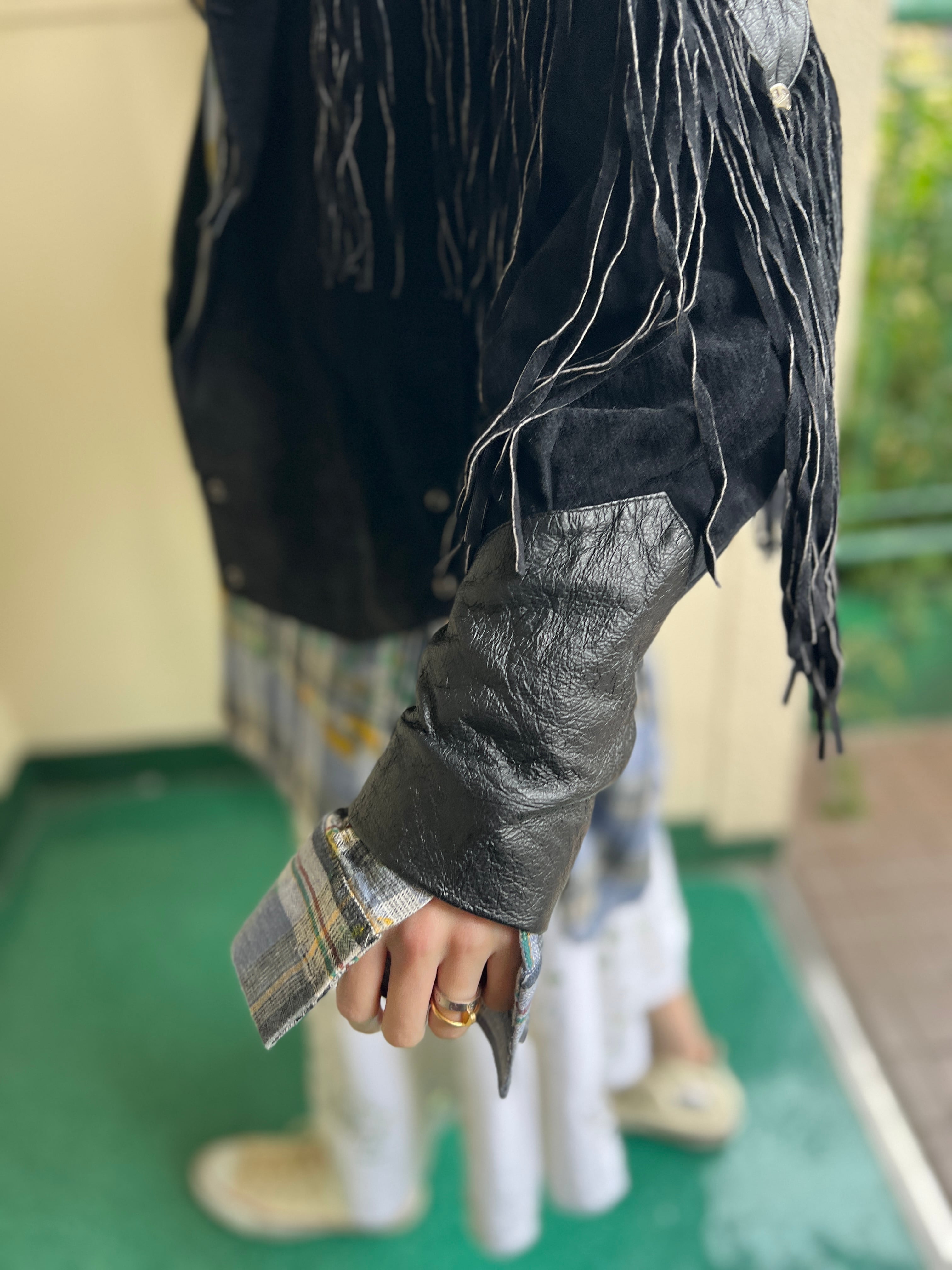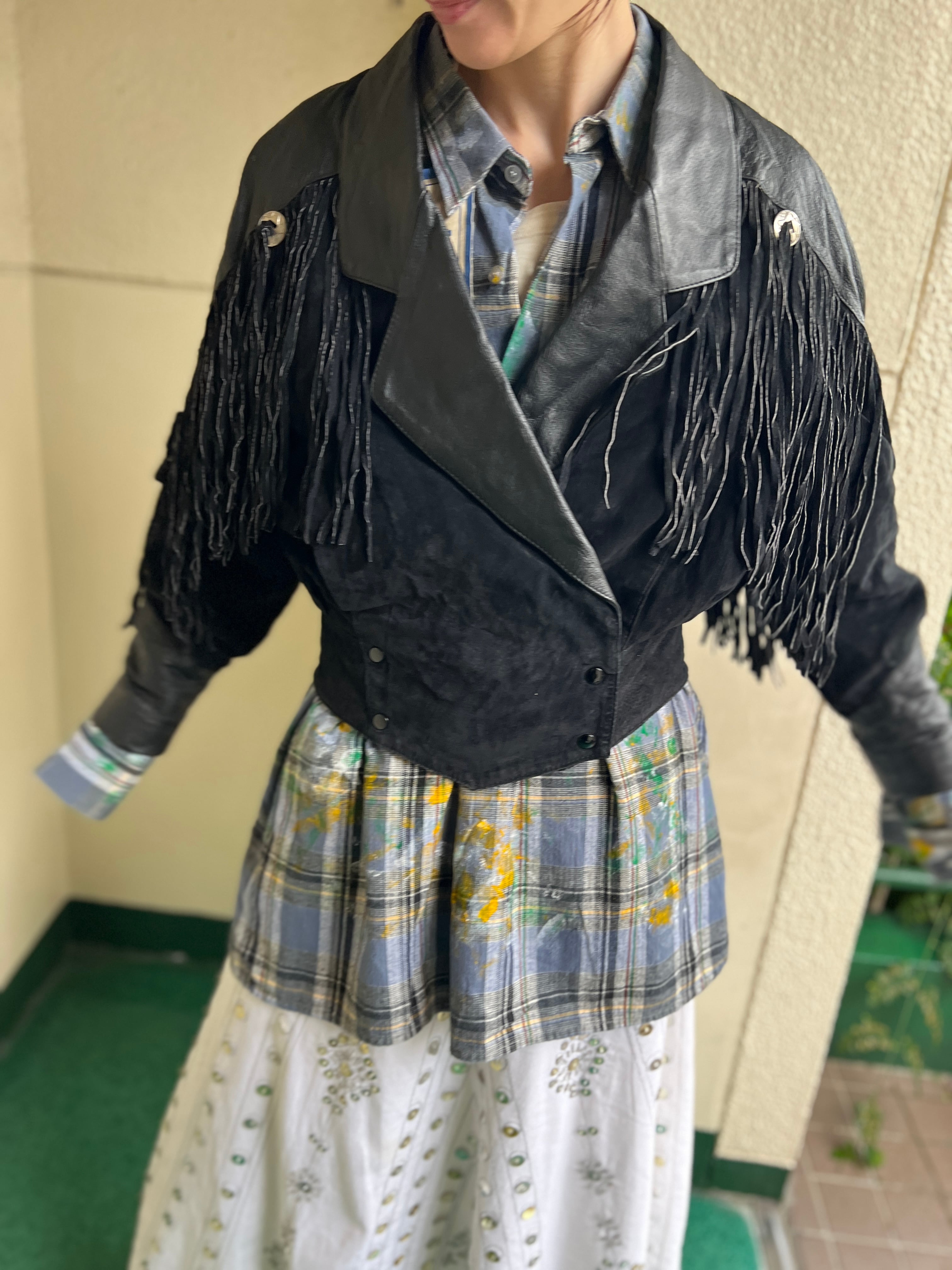 80s black leather fringe jacket