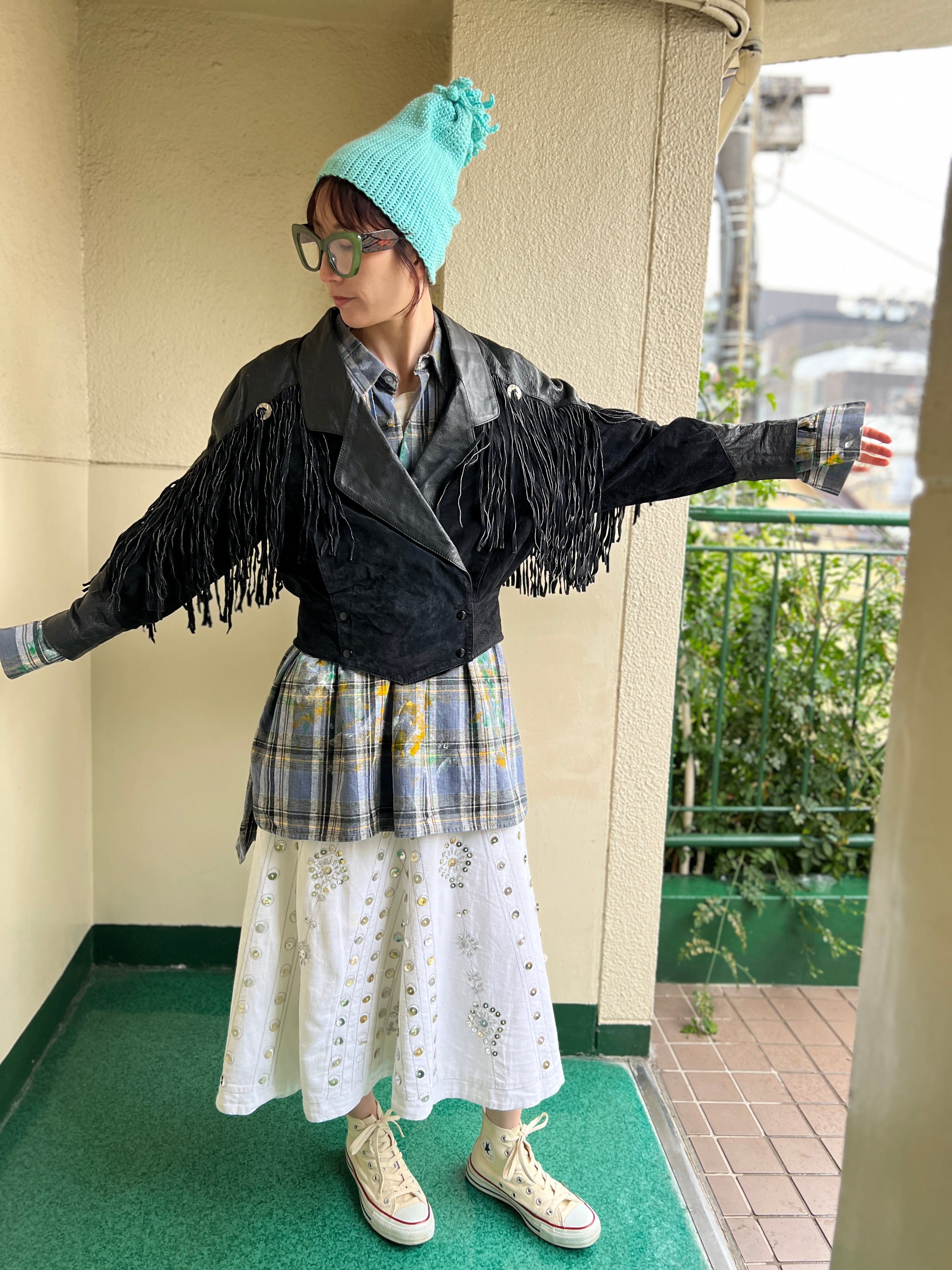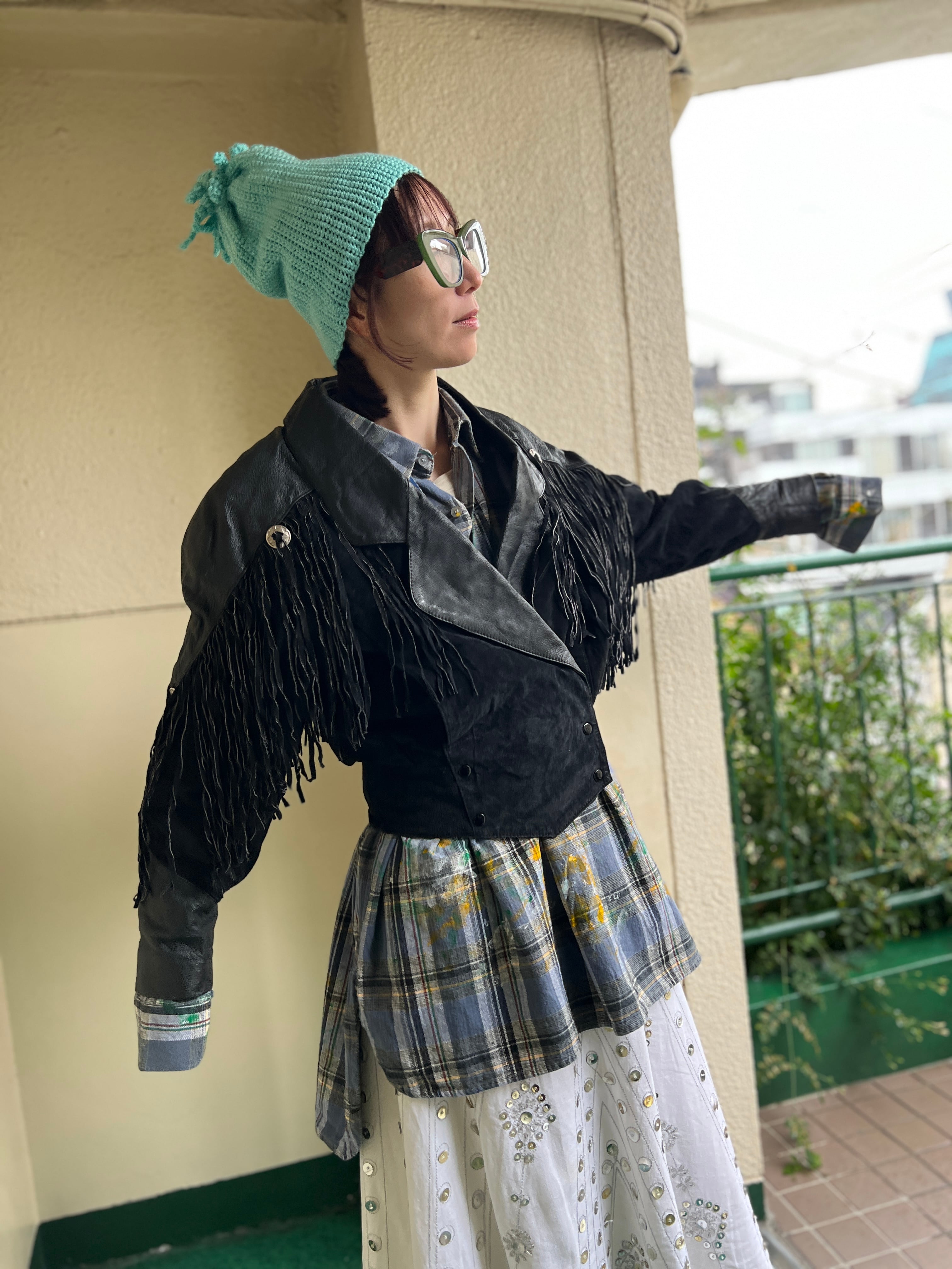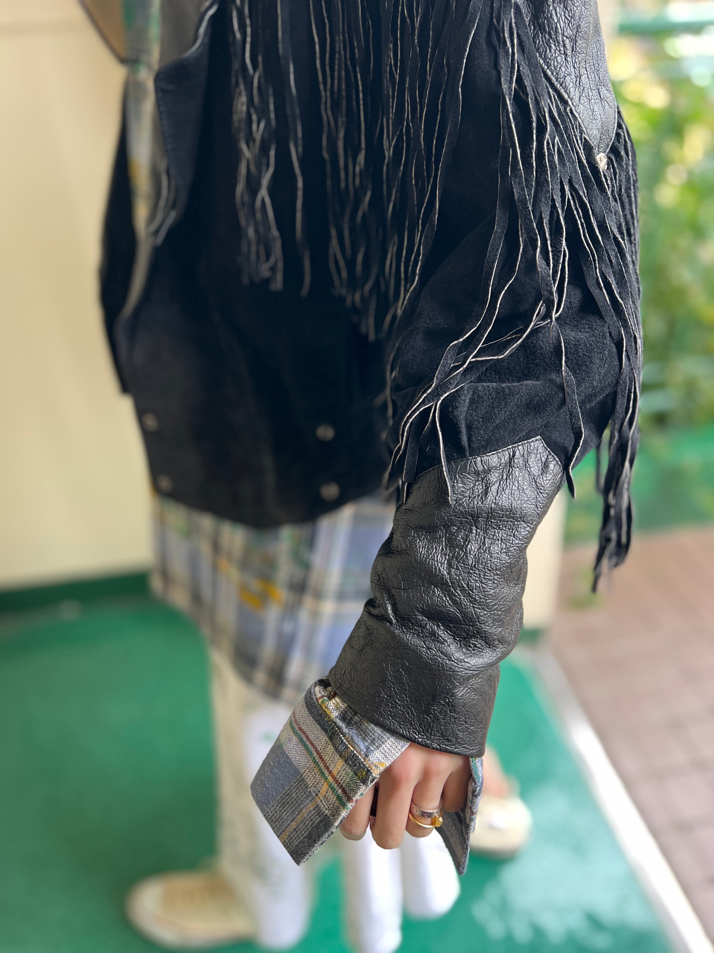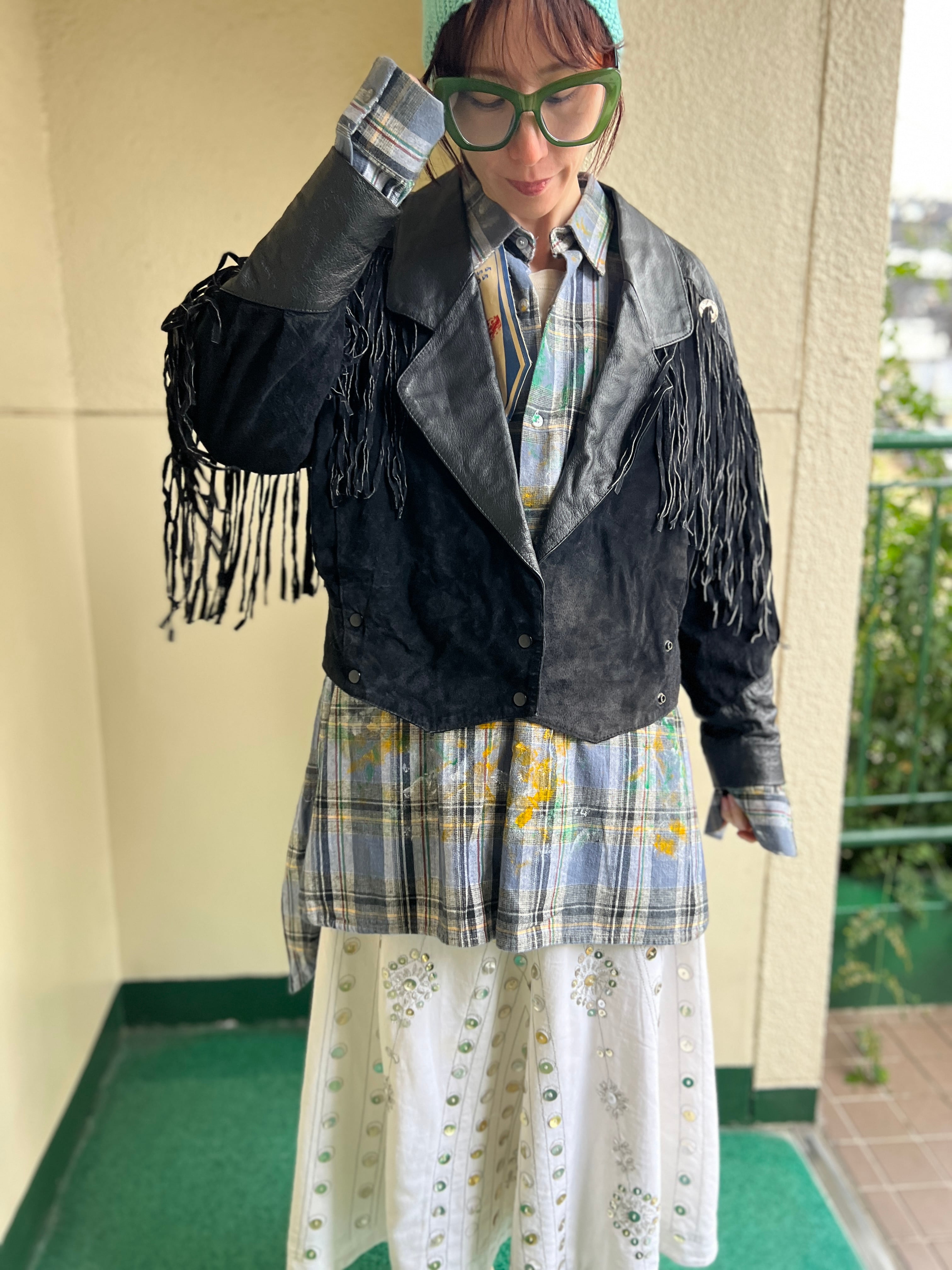 80s black leather fringe jacket