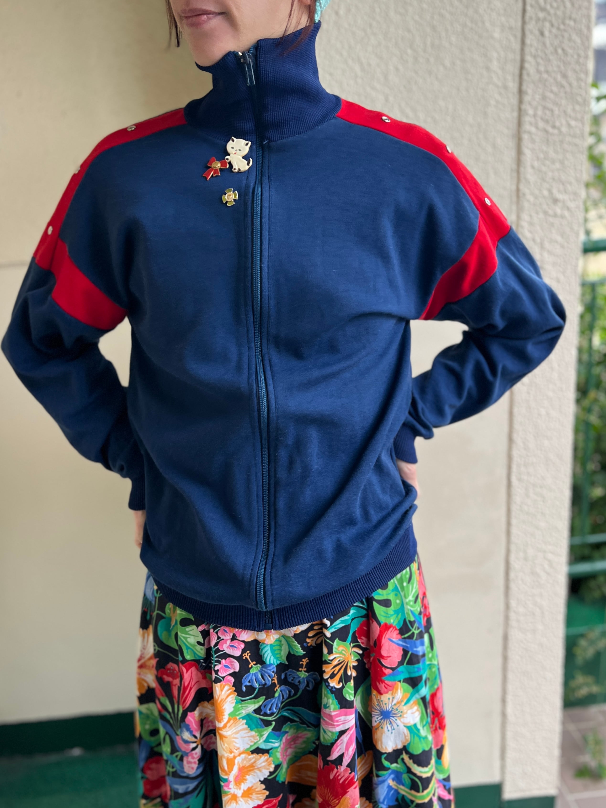 1970-80s Germany Vintage Track Jacket Navy × Red Line Design