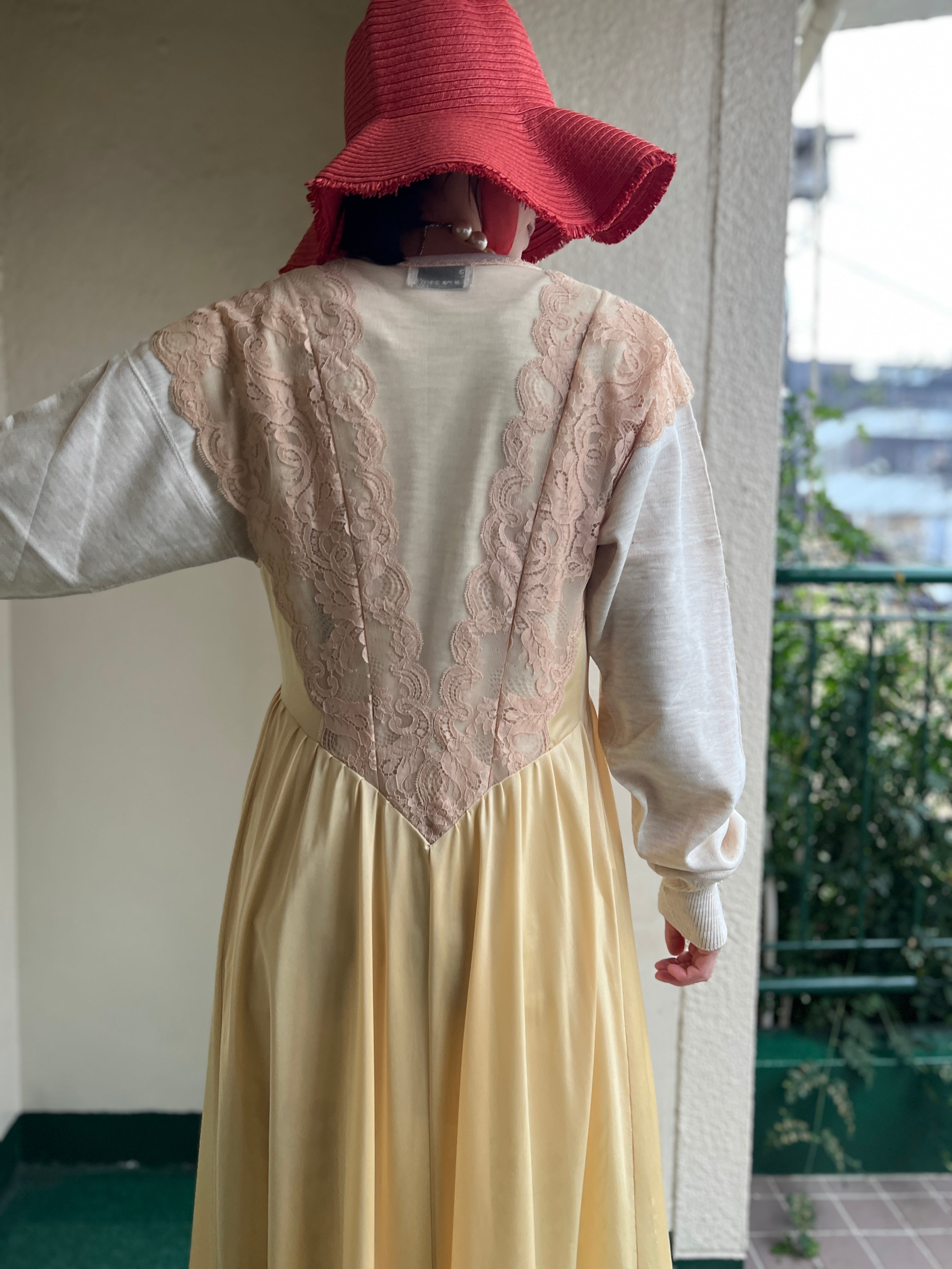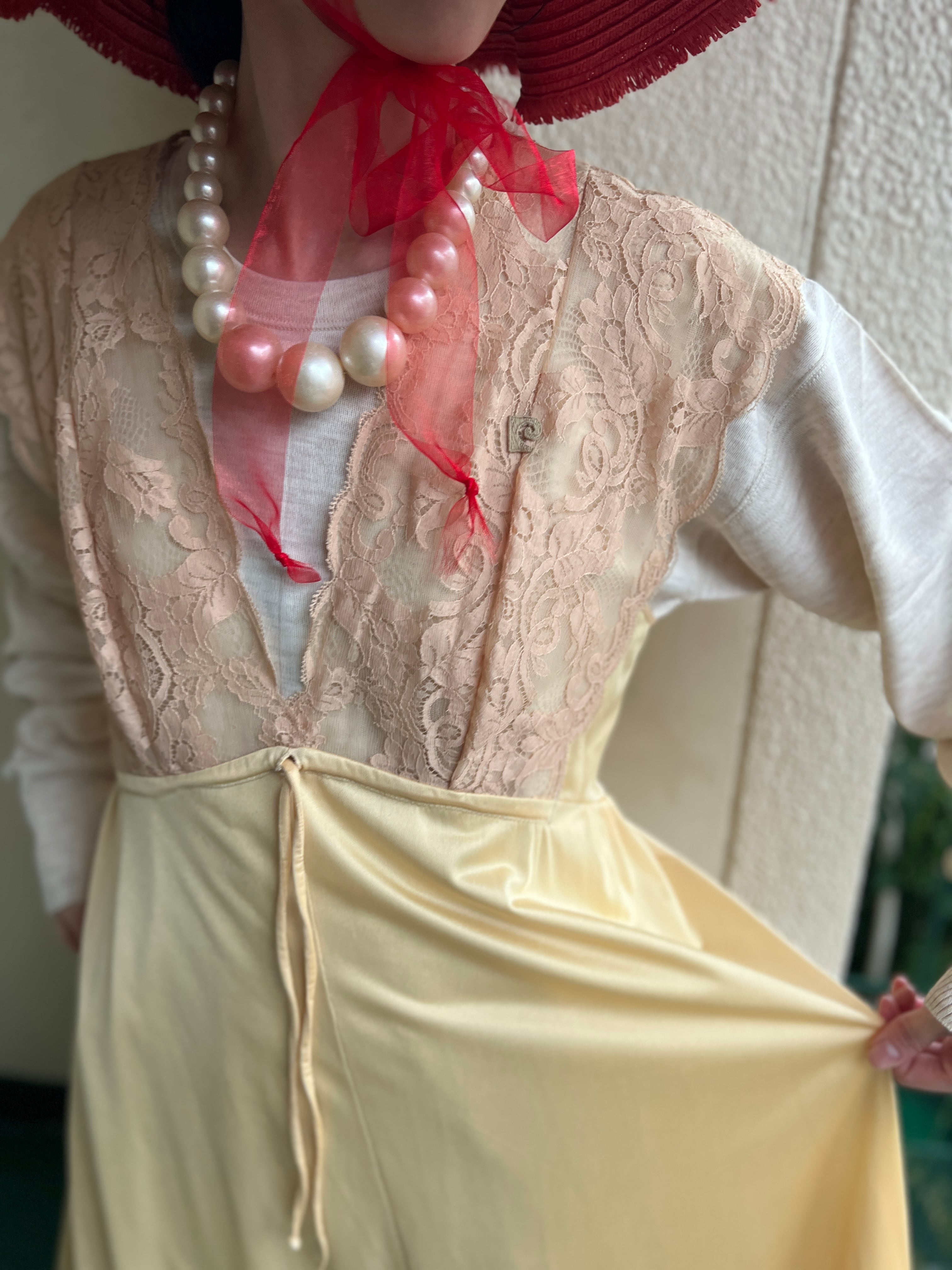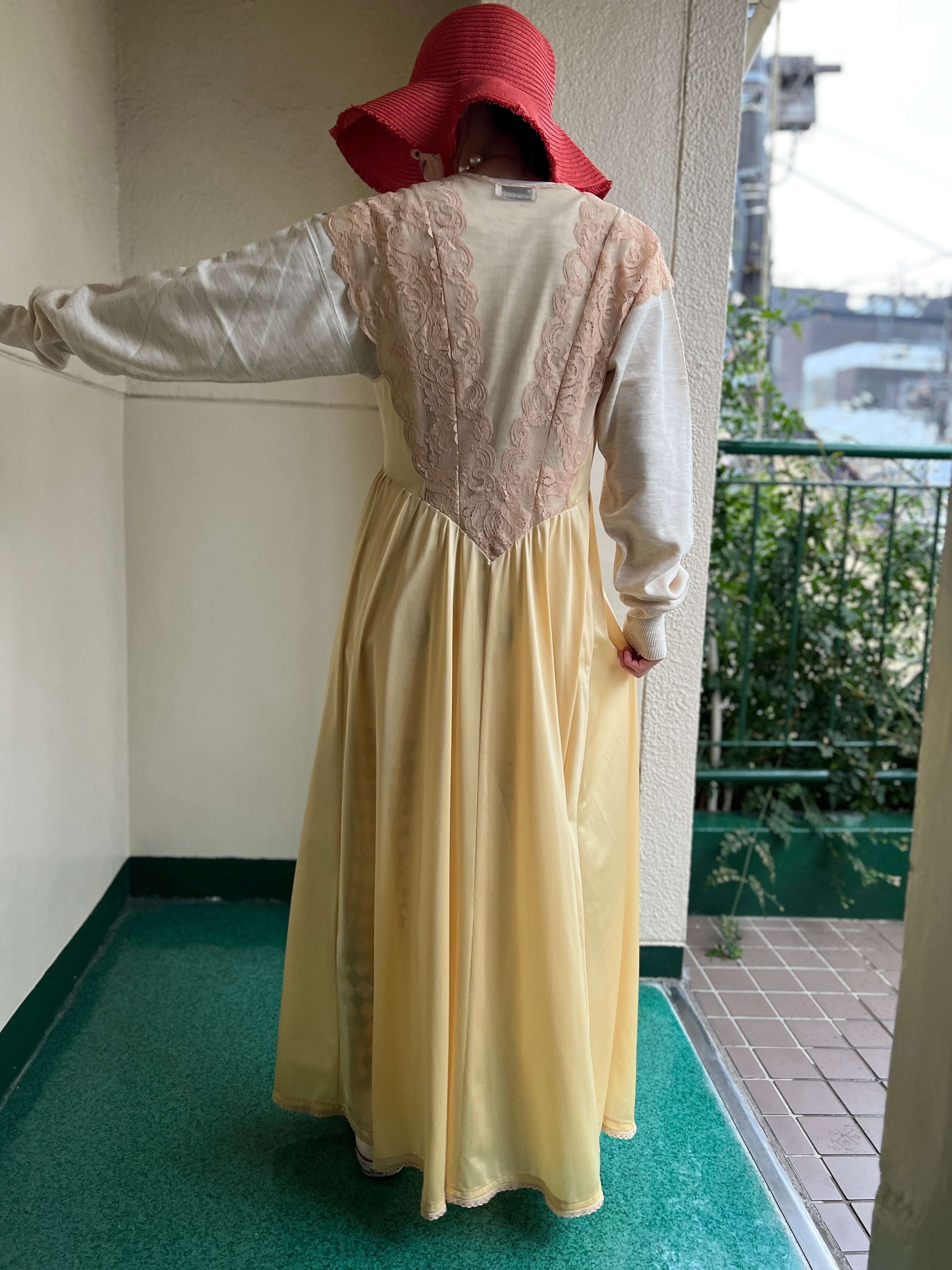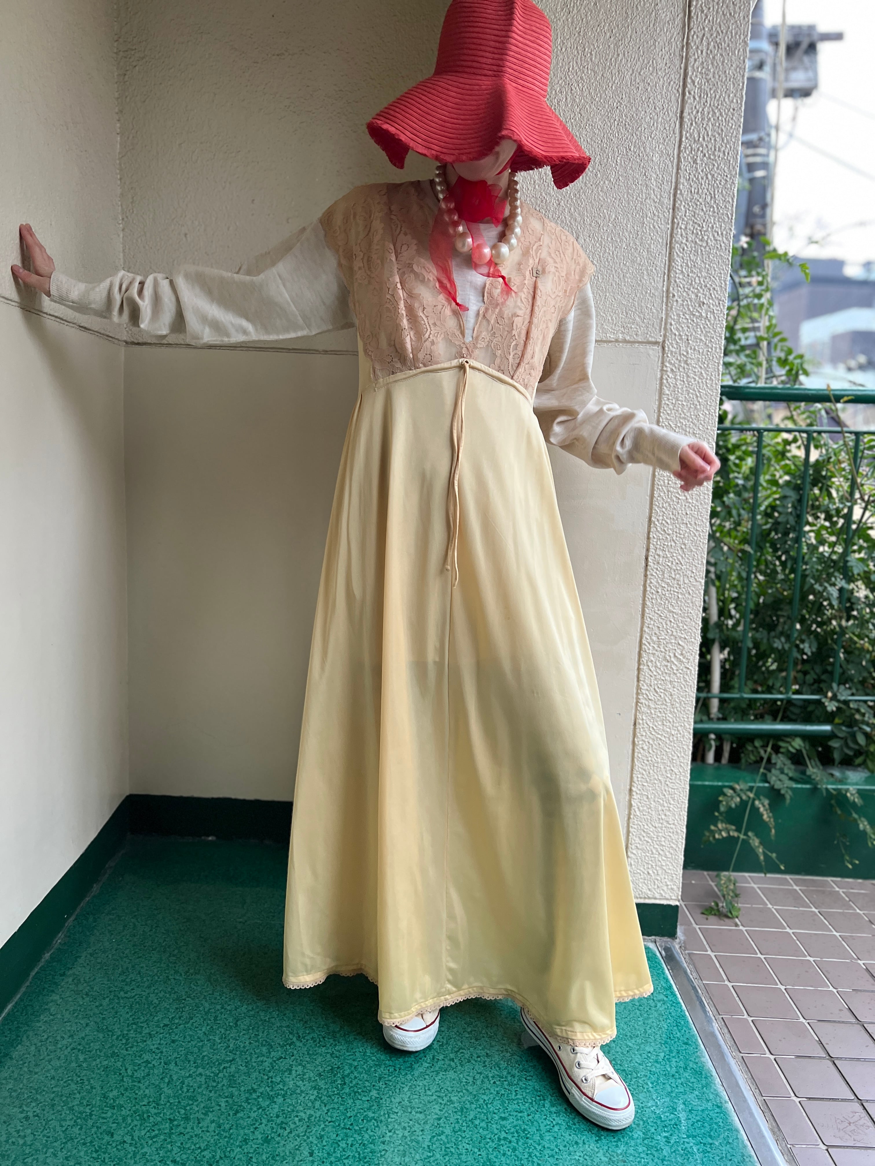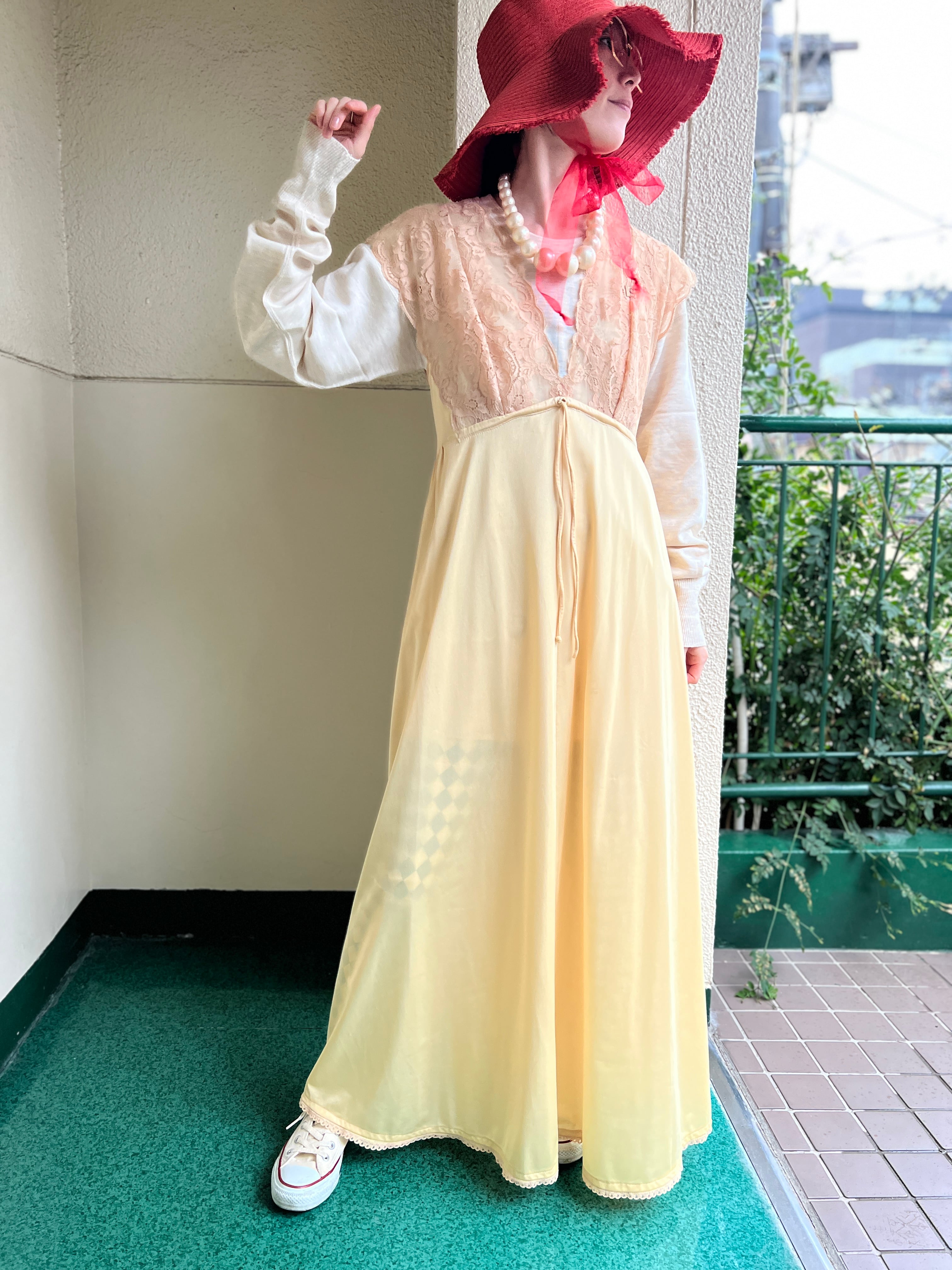柔らかなシャンパンイエローが美しいヴィンテージドレス。