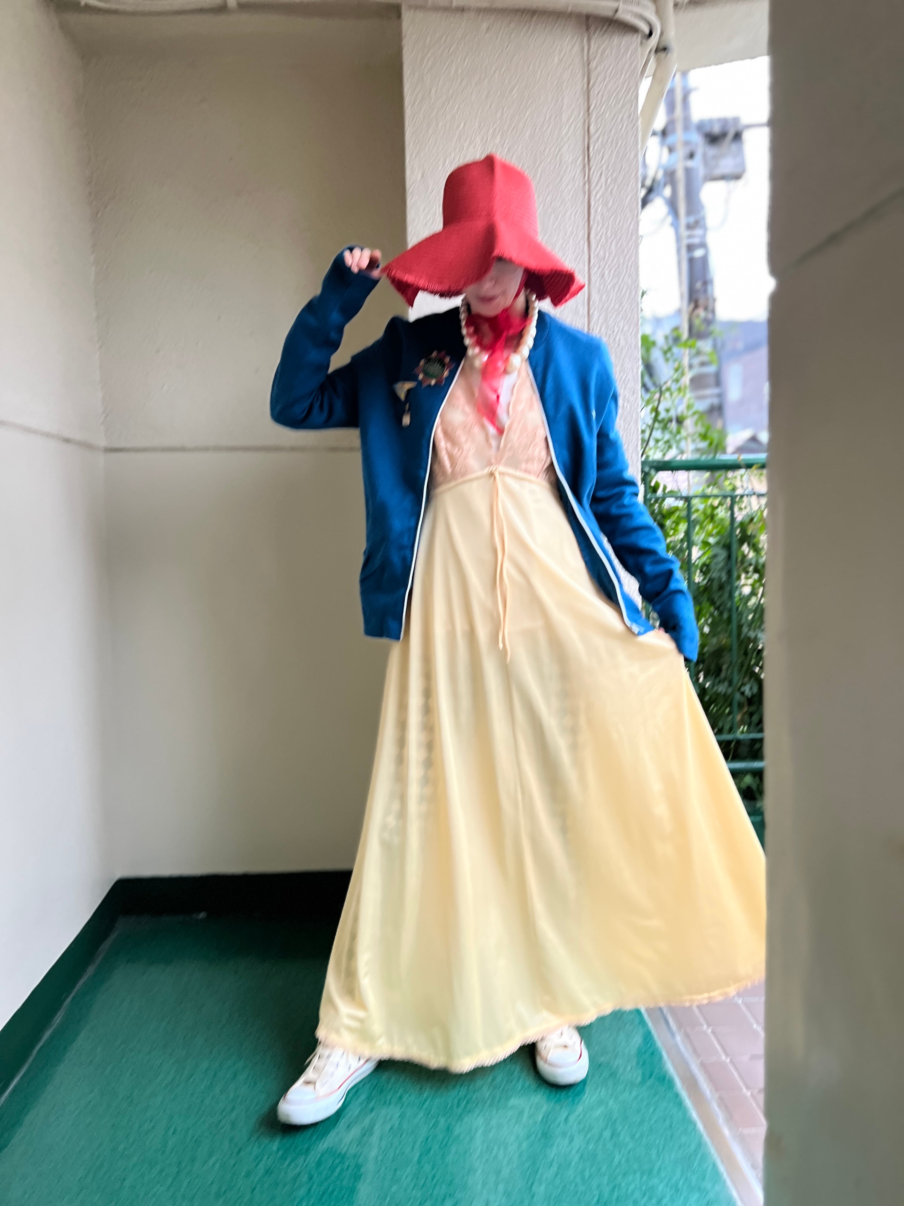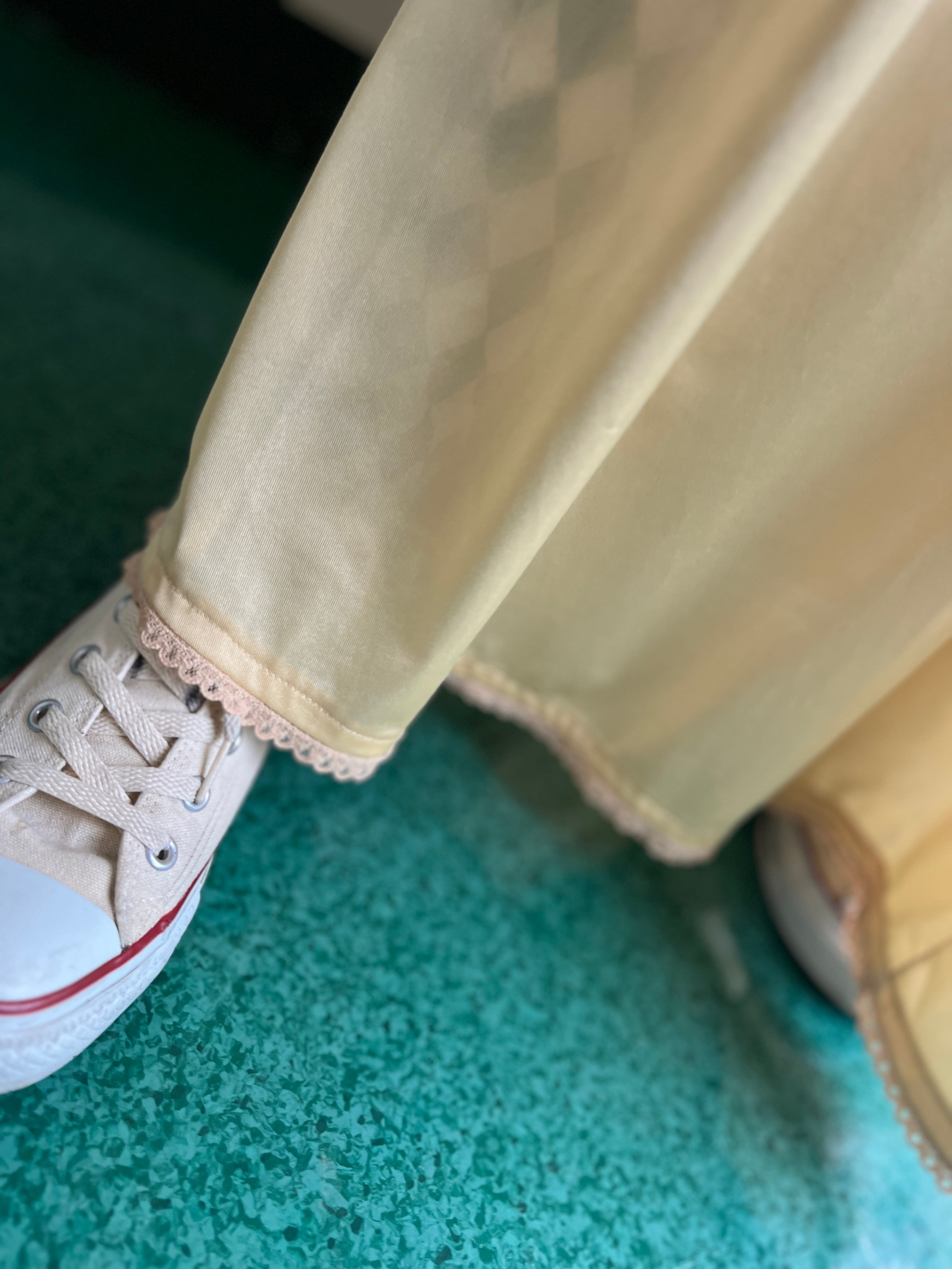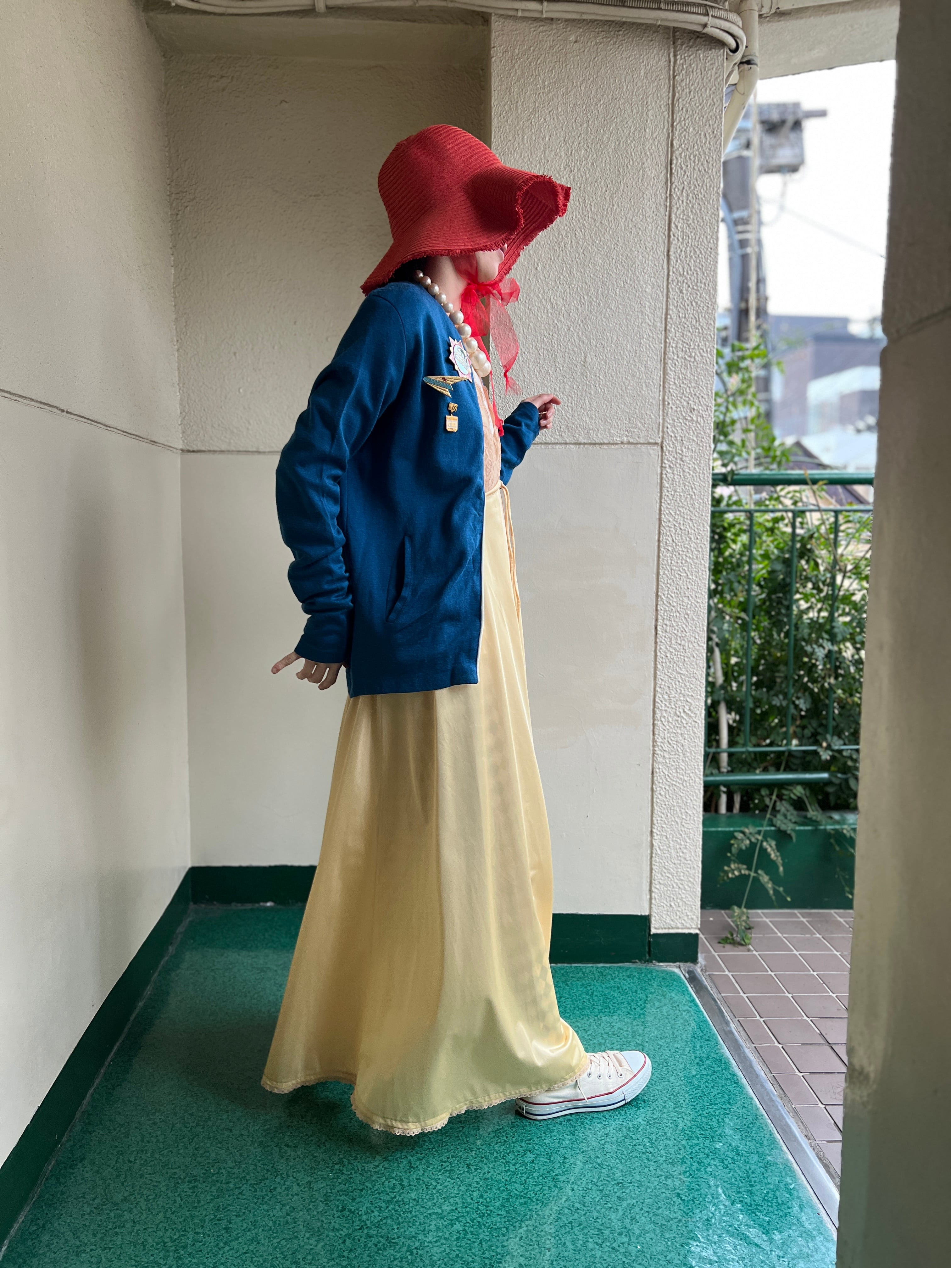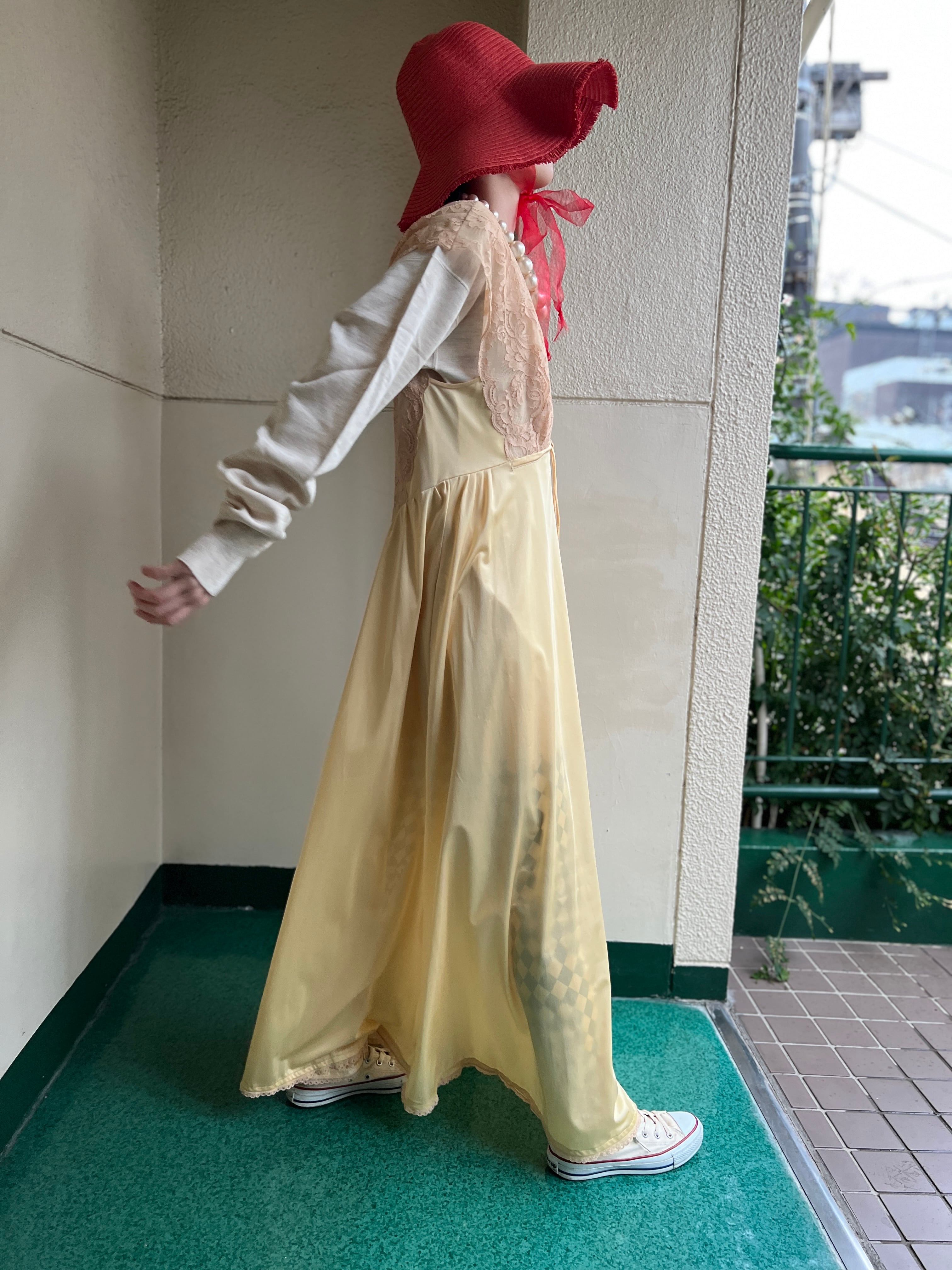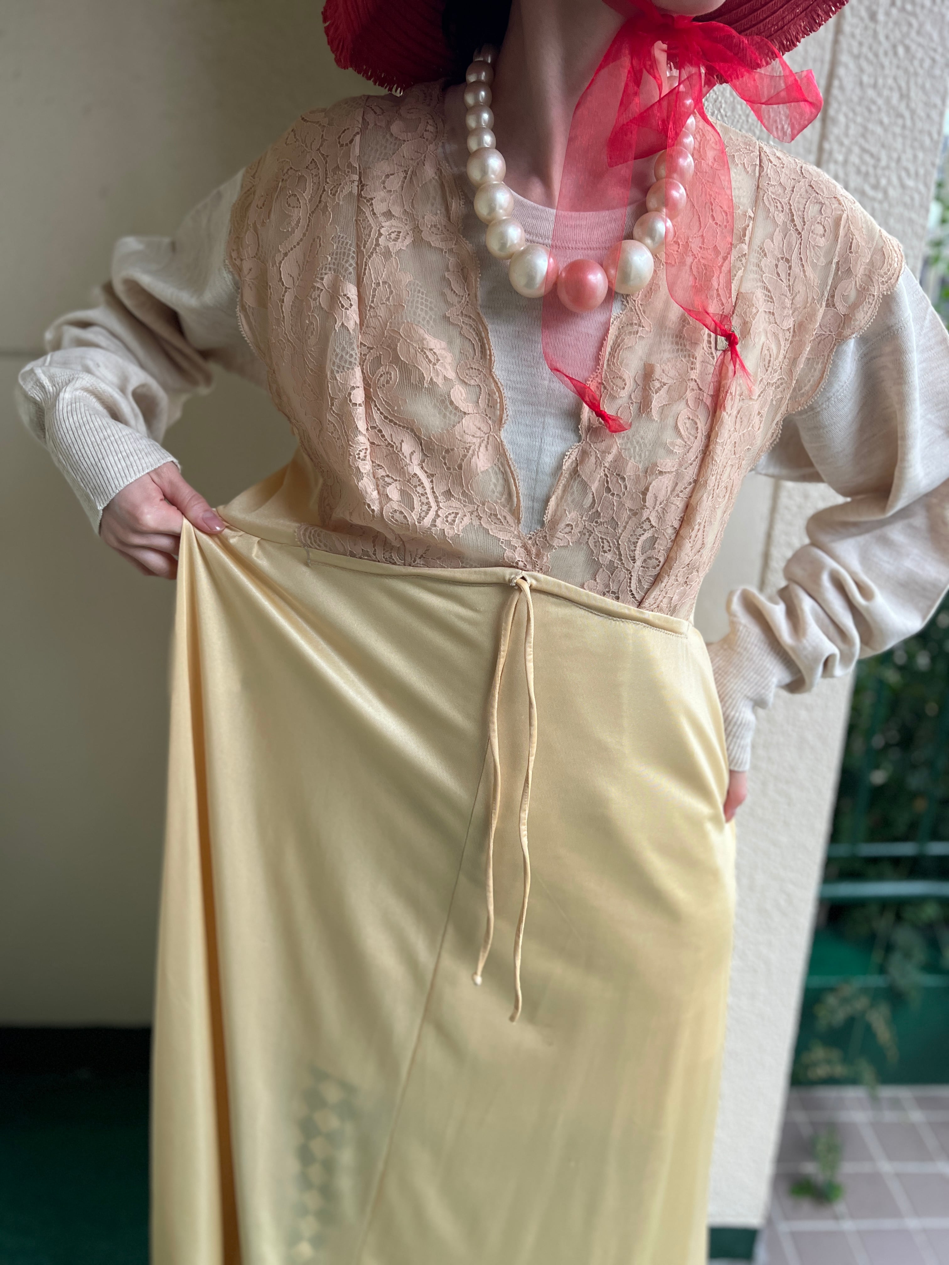 柔らかなシャンパンイエローが美しいヴィンテージドレス。