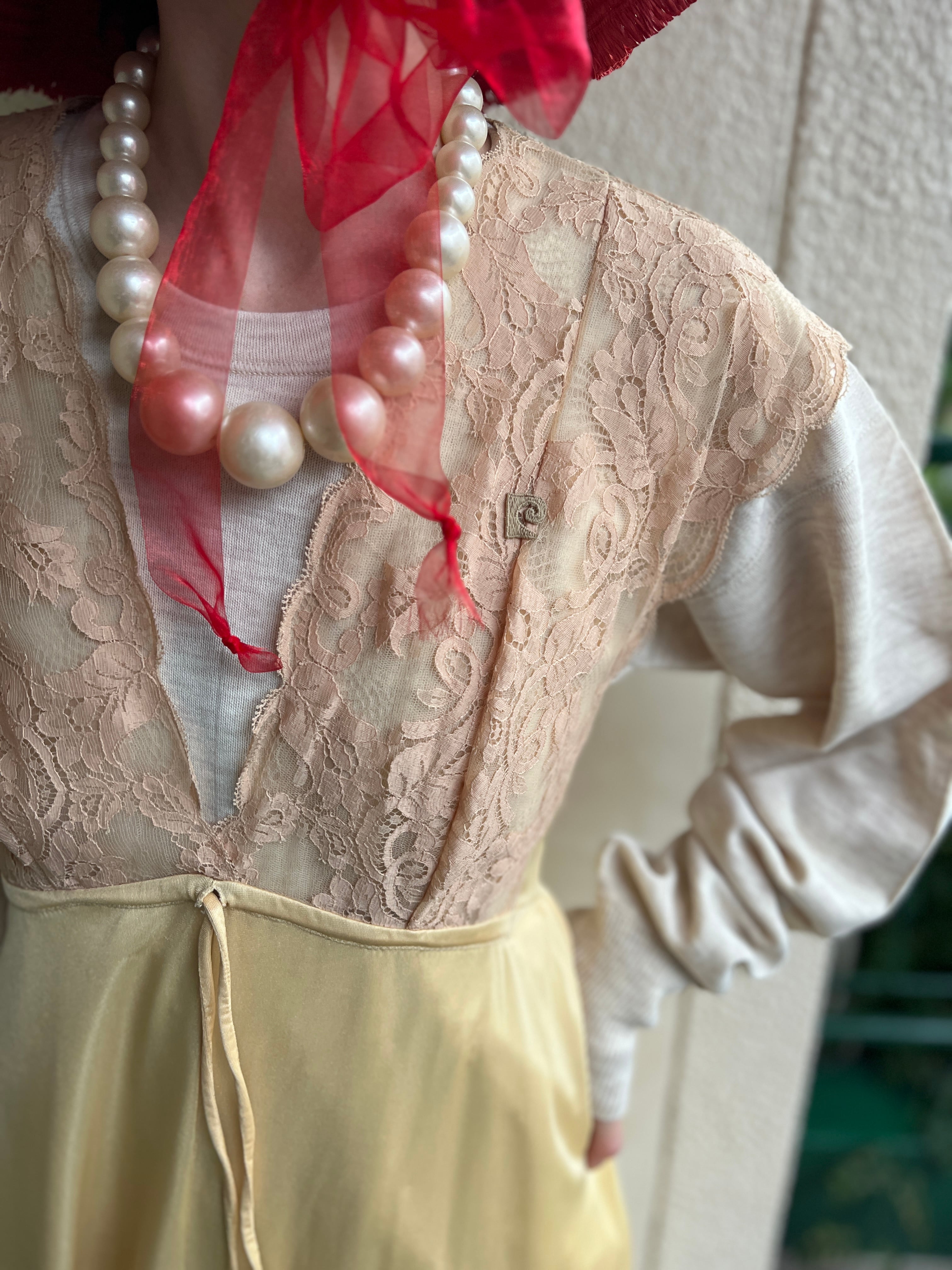 Vintage Pierre Cardin Paris / Lace × Satin Layered Dress (ピエールカルダン パリス レースサテンドレス)