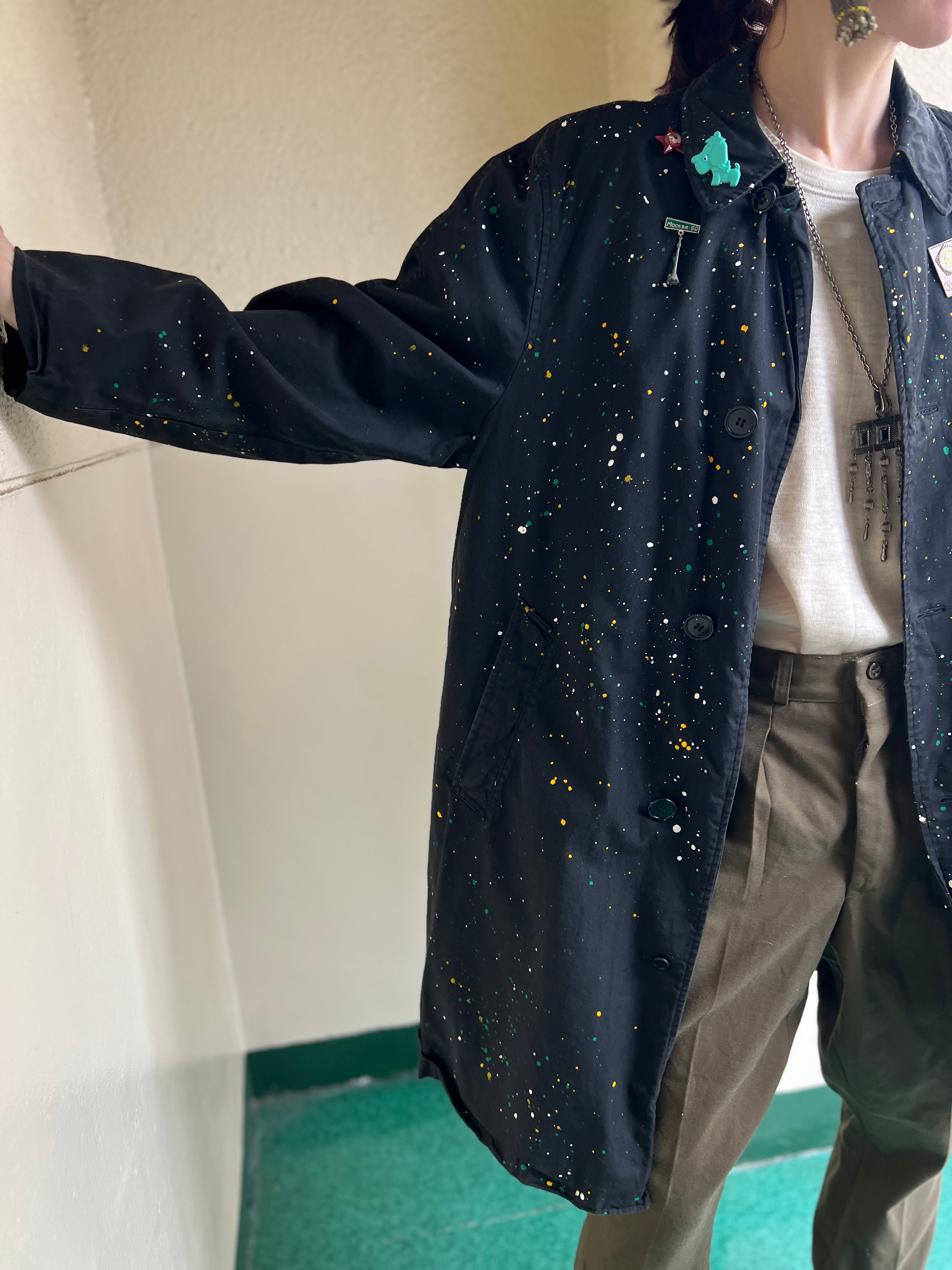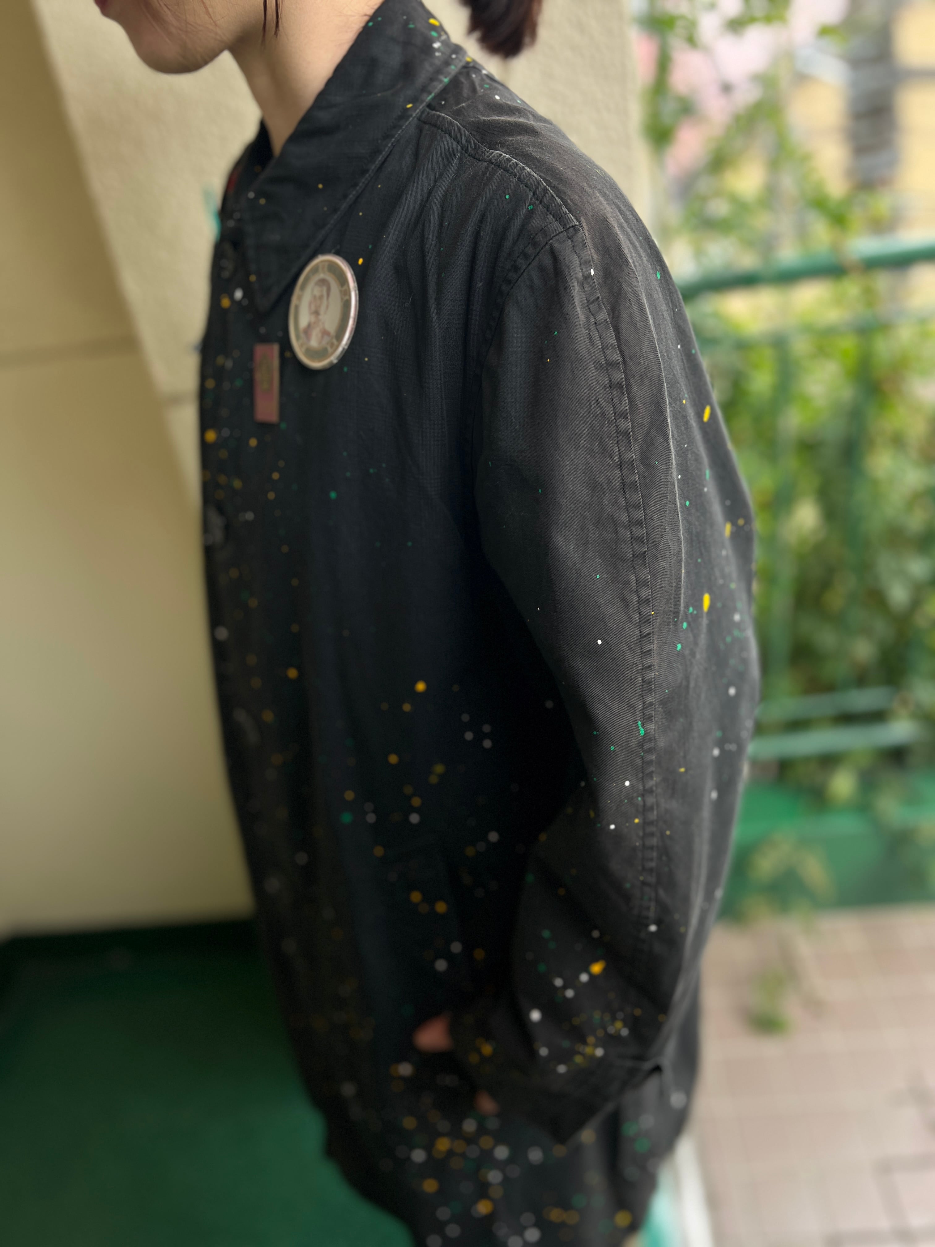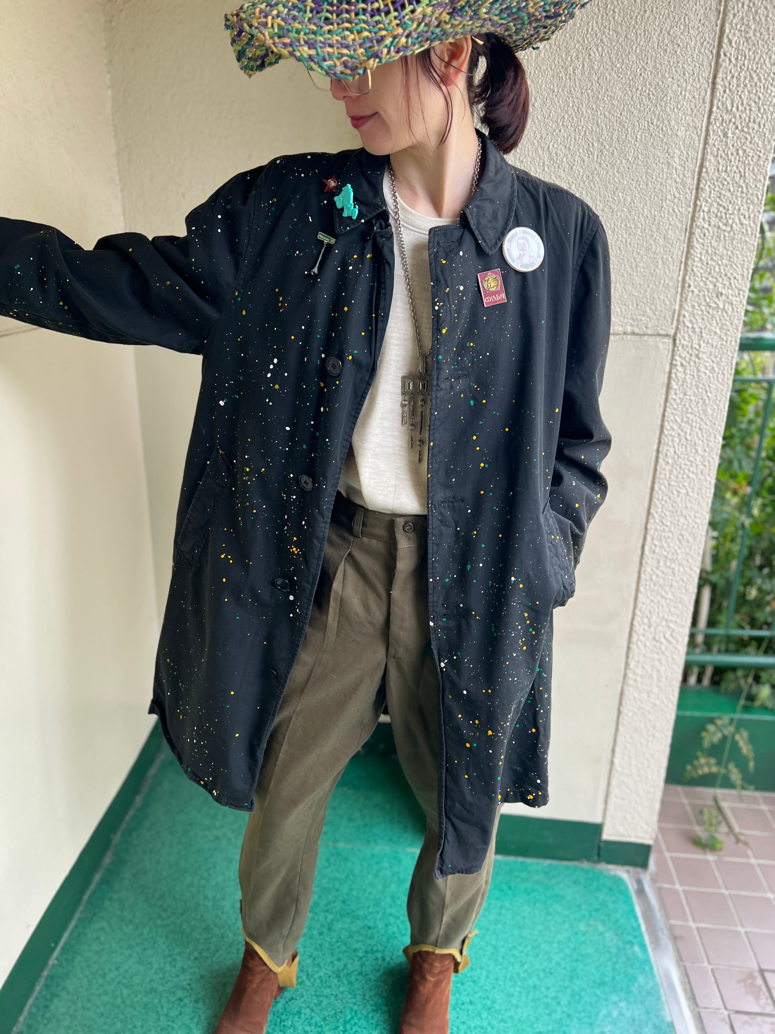 ヴィンテージのブラックのグッドボディーに、固体に合わせたポロック調のアクションペインティングが施された唯一無二なリワークコート。