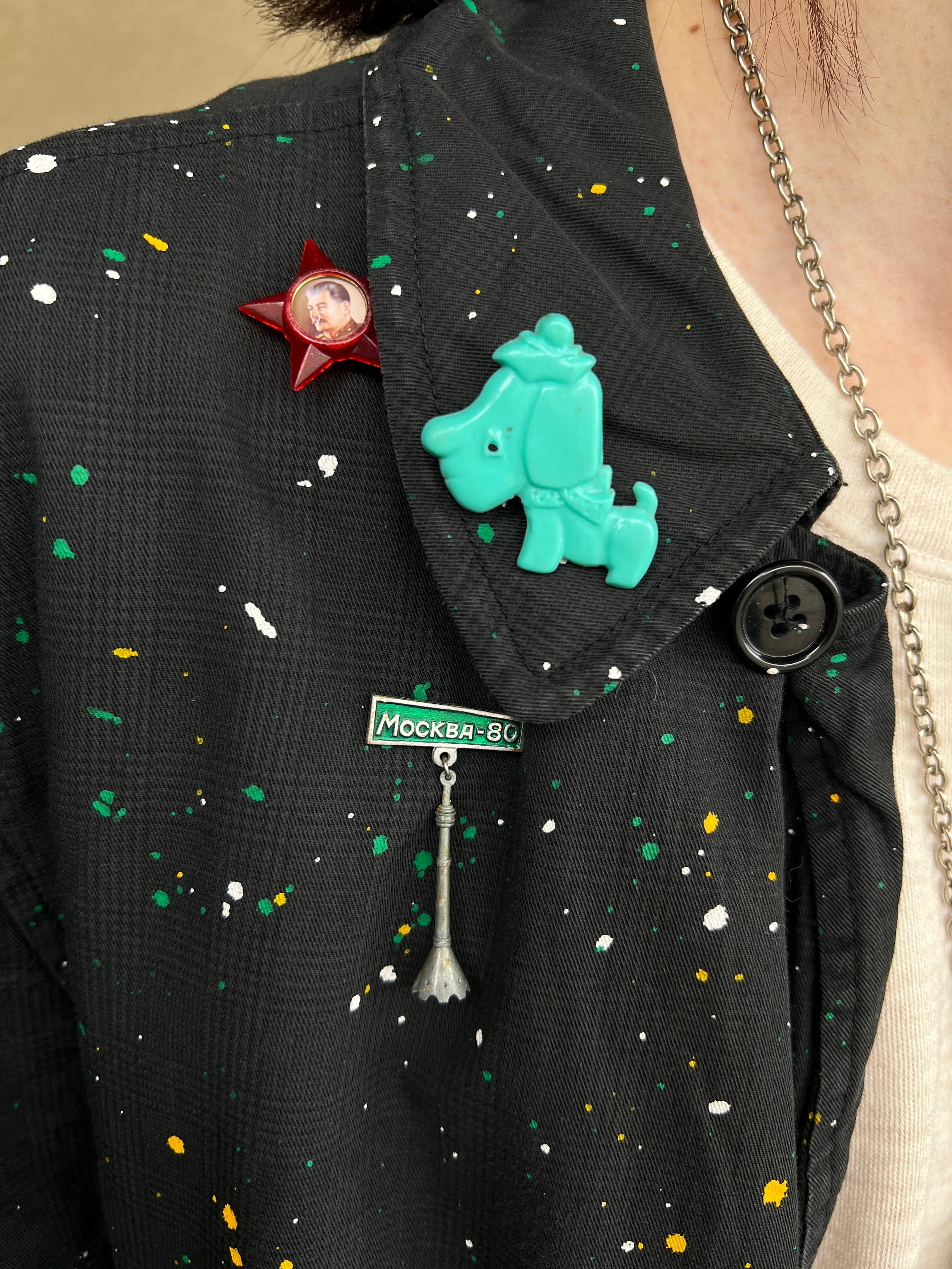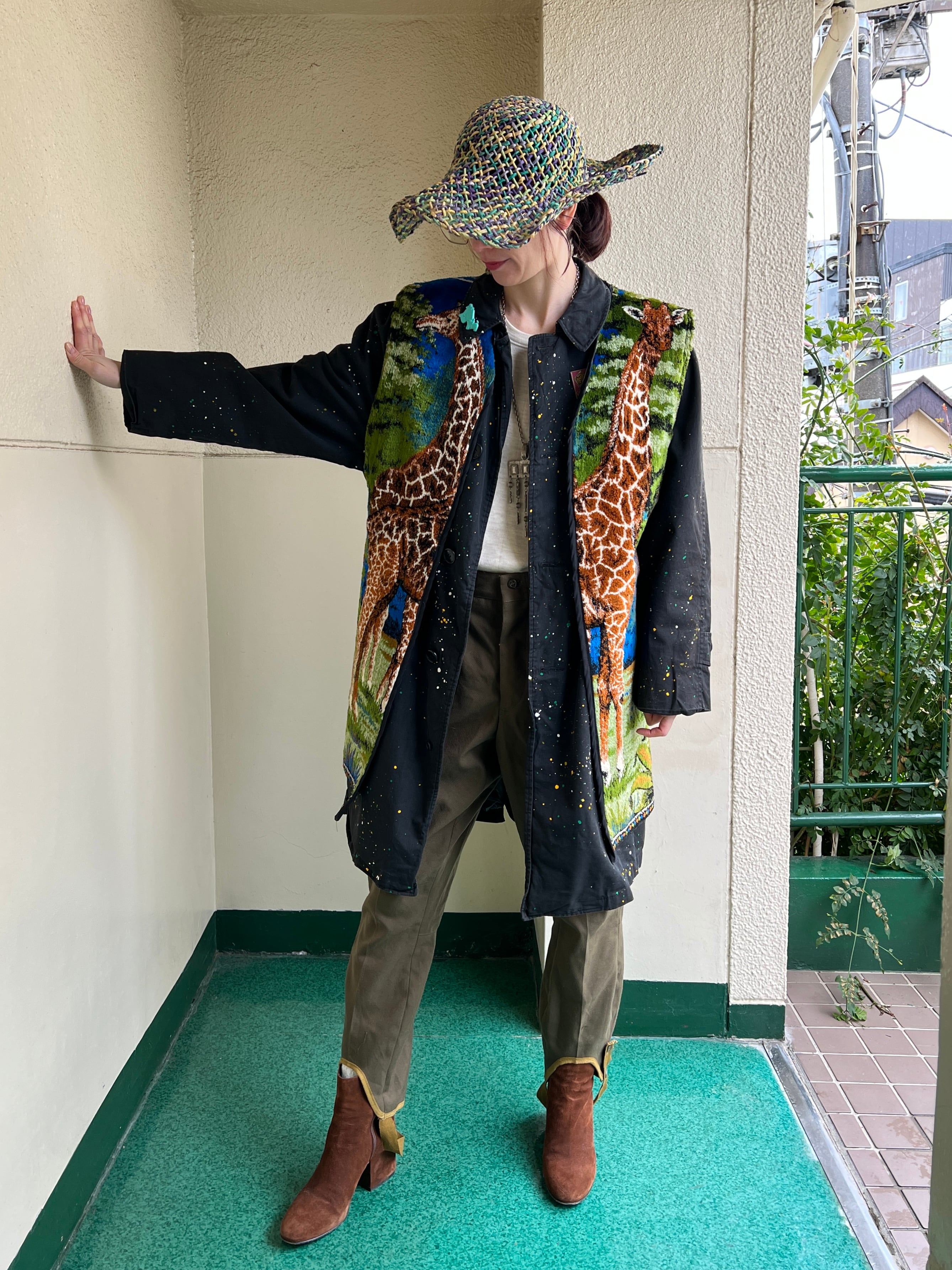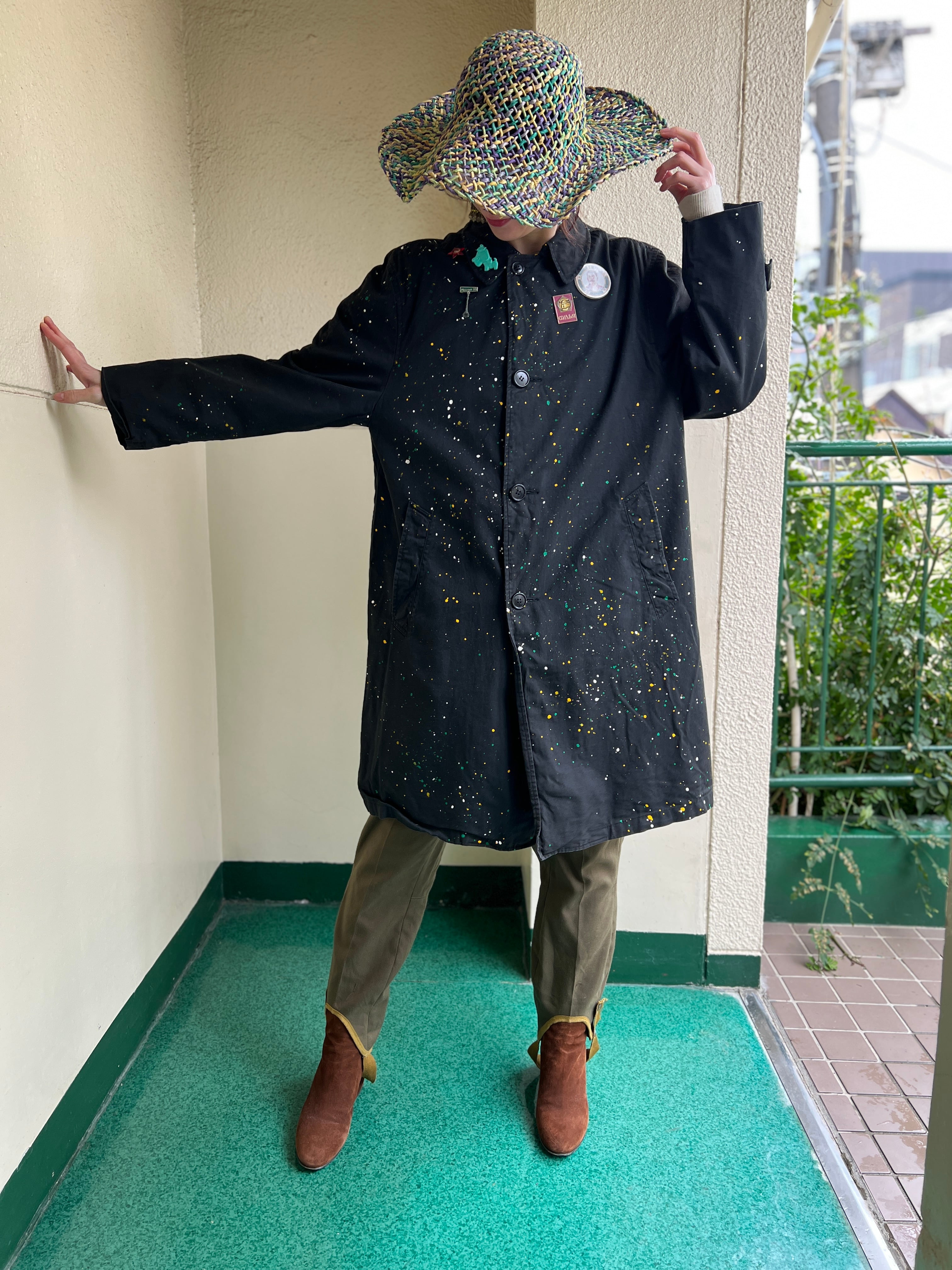 ヴィンテージのブラックのグッドボディーに、固体に合わせたポロック調のアクションペインティングが施された唯一無二なリワークコート。