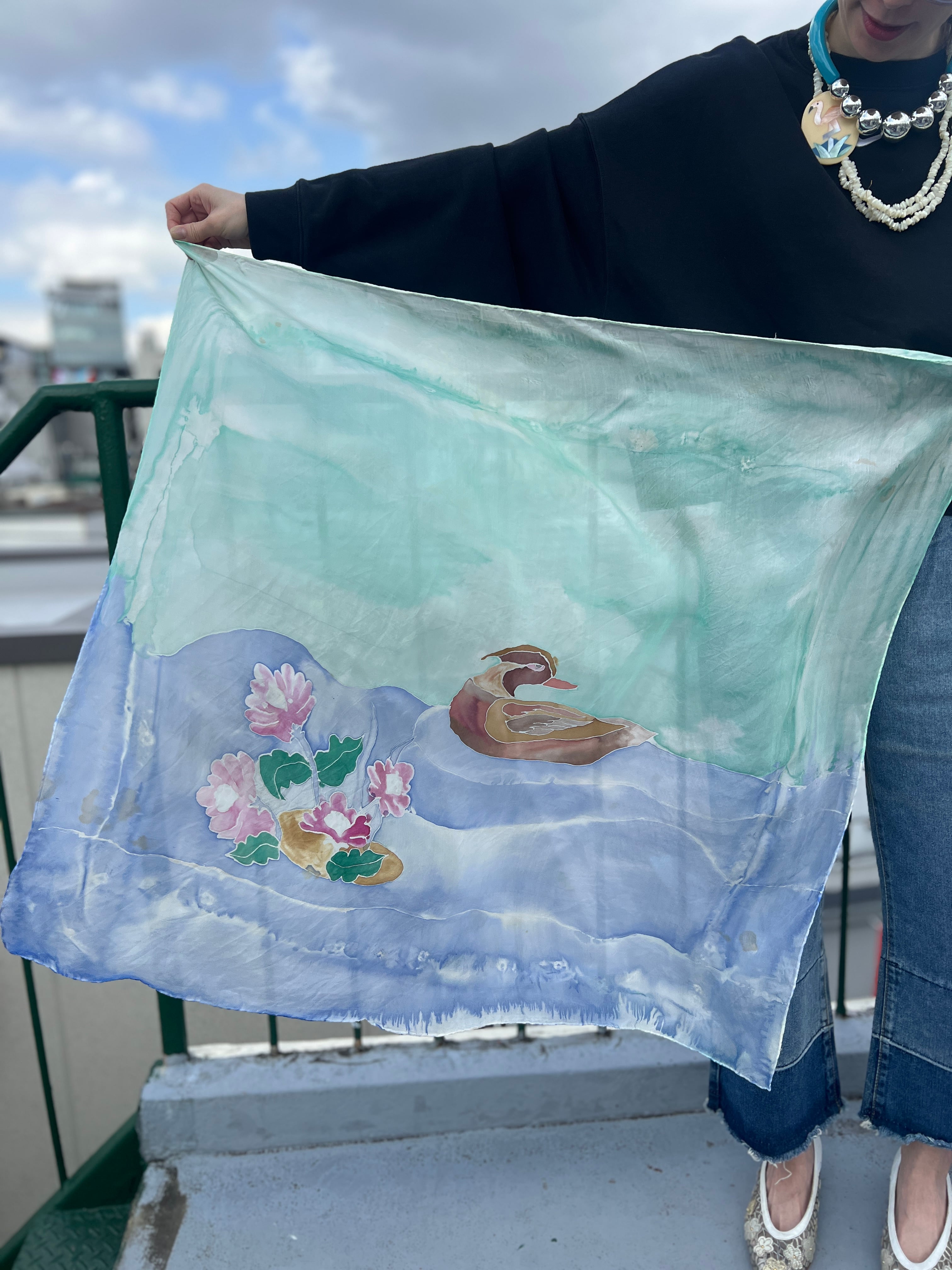Vintage "duck" silk art scarf