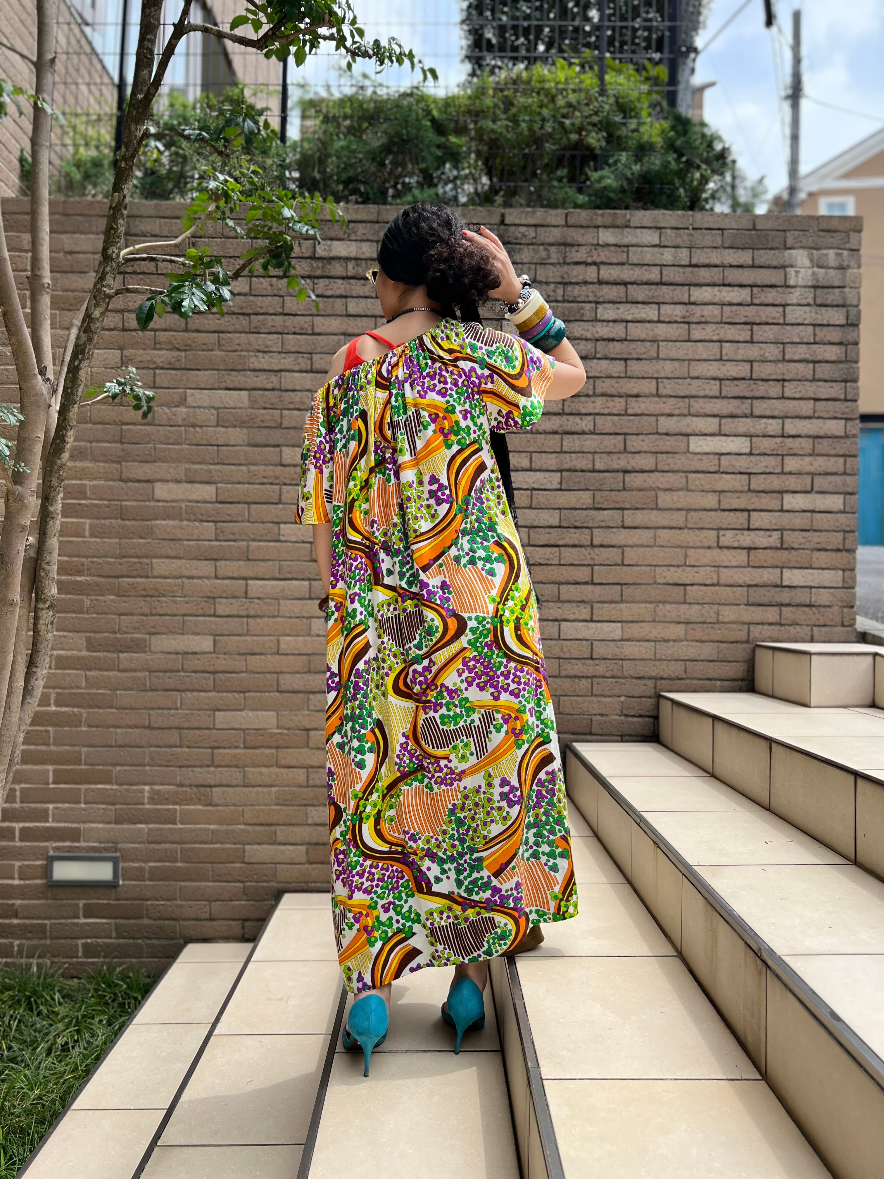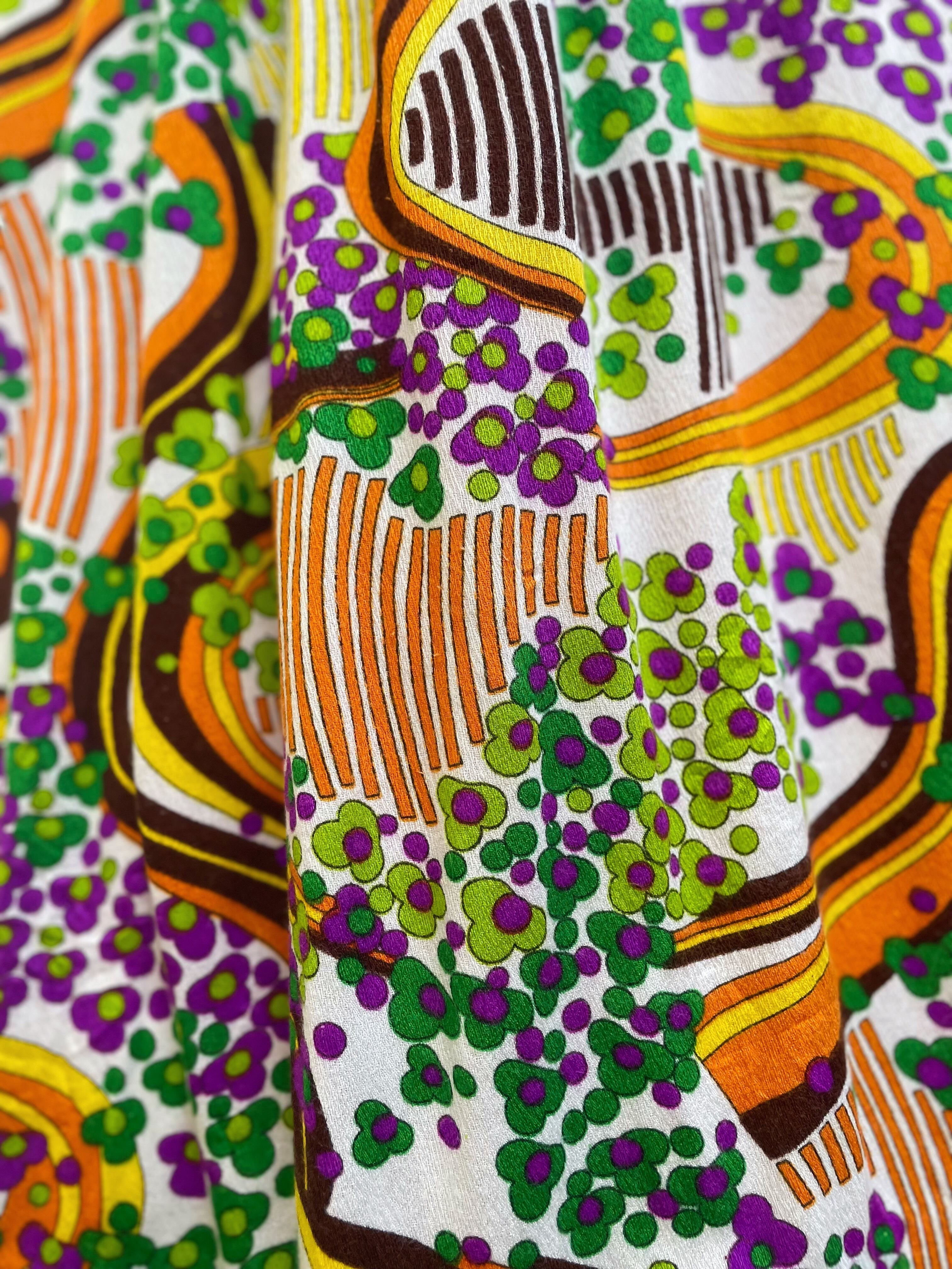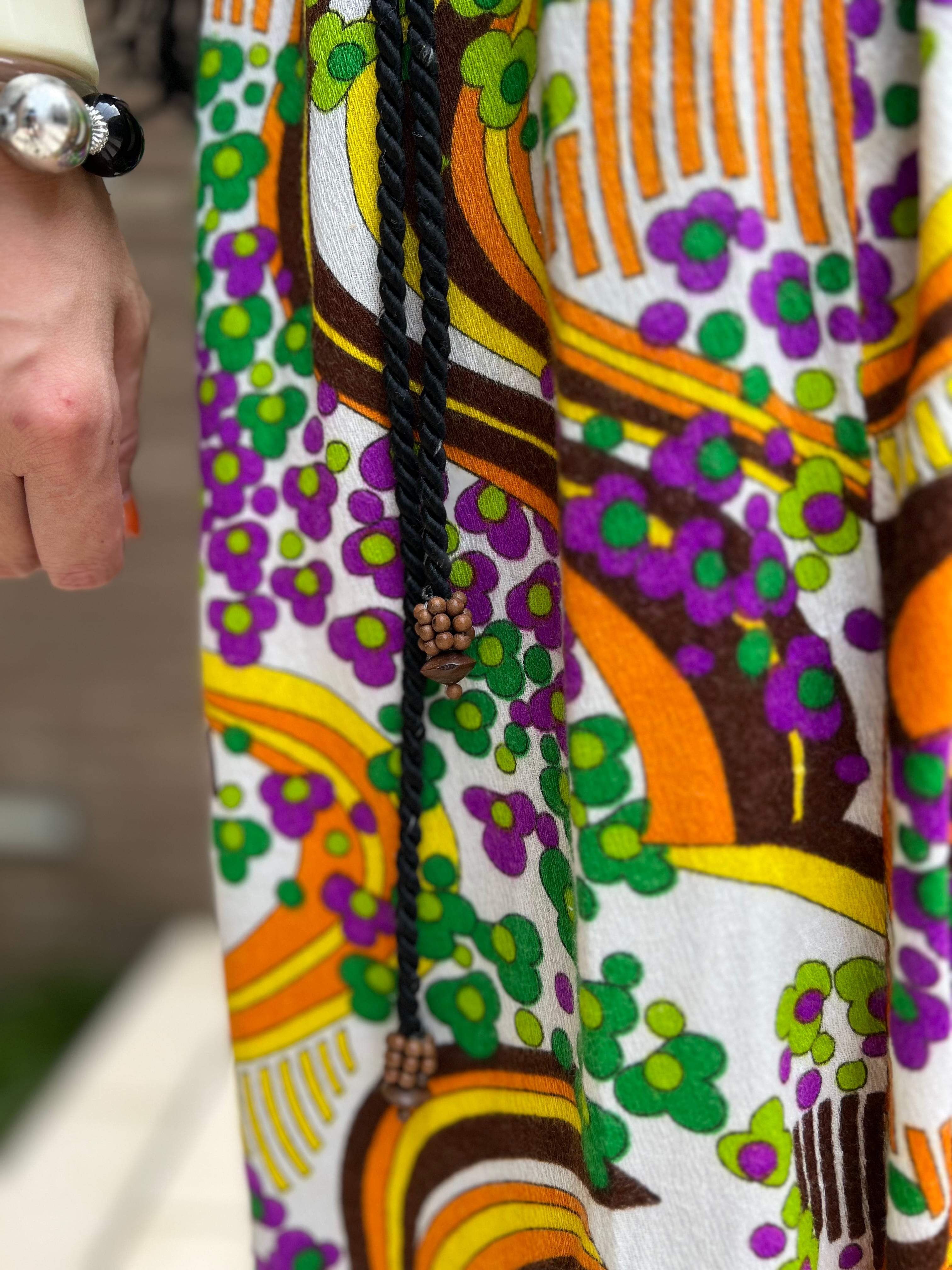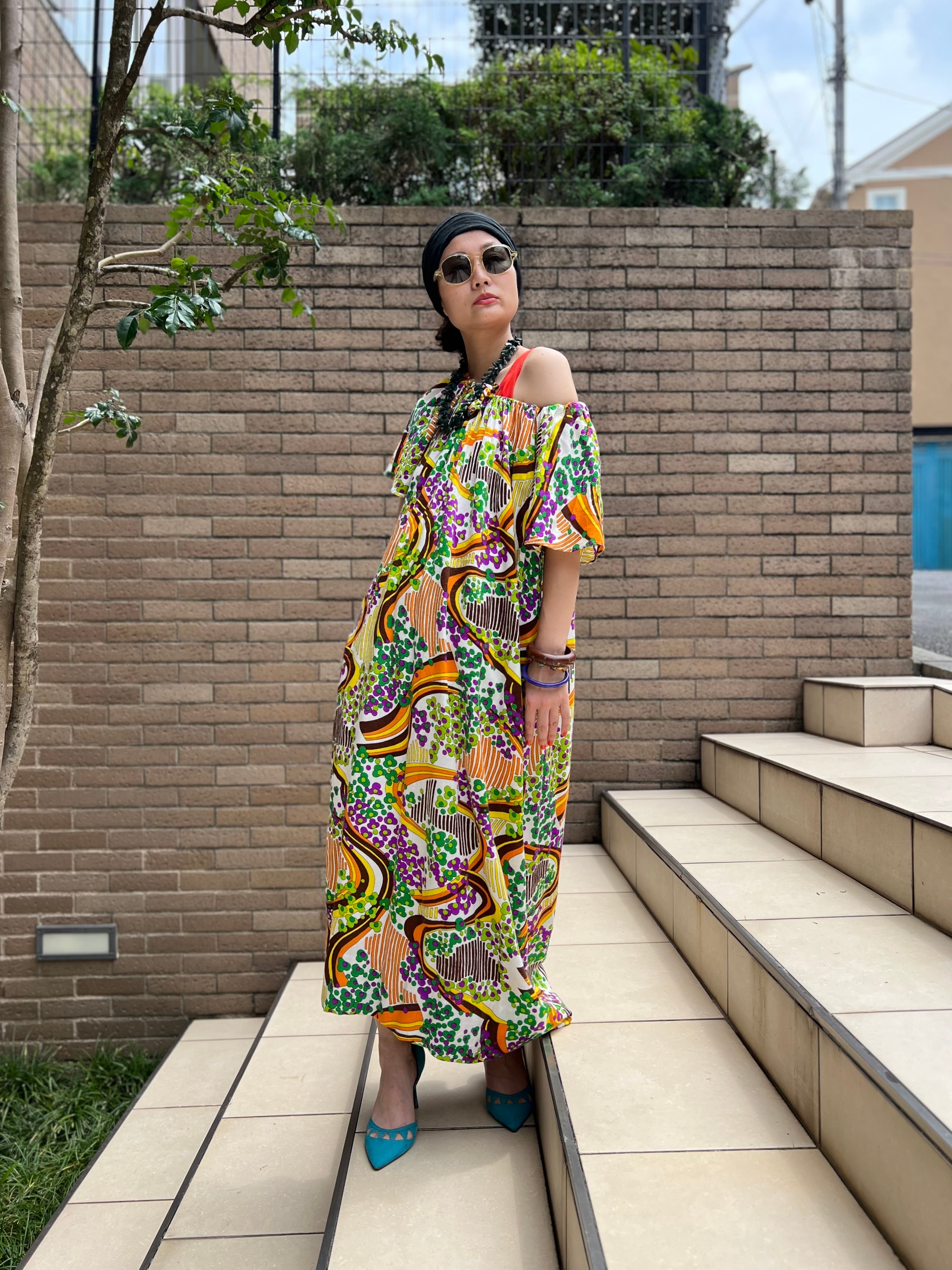 60年代 〜70年代ハワイアン ハンドメイド ホワイト× マルチカラー 花柄コットンワンピースになります。