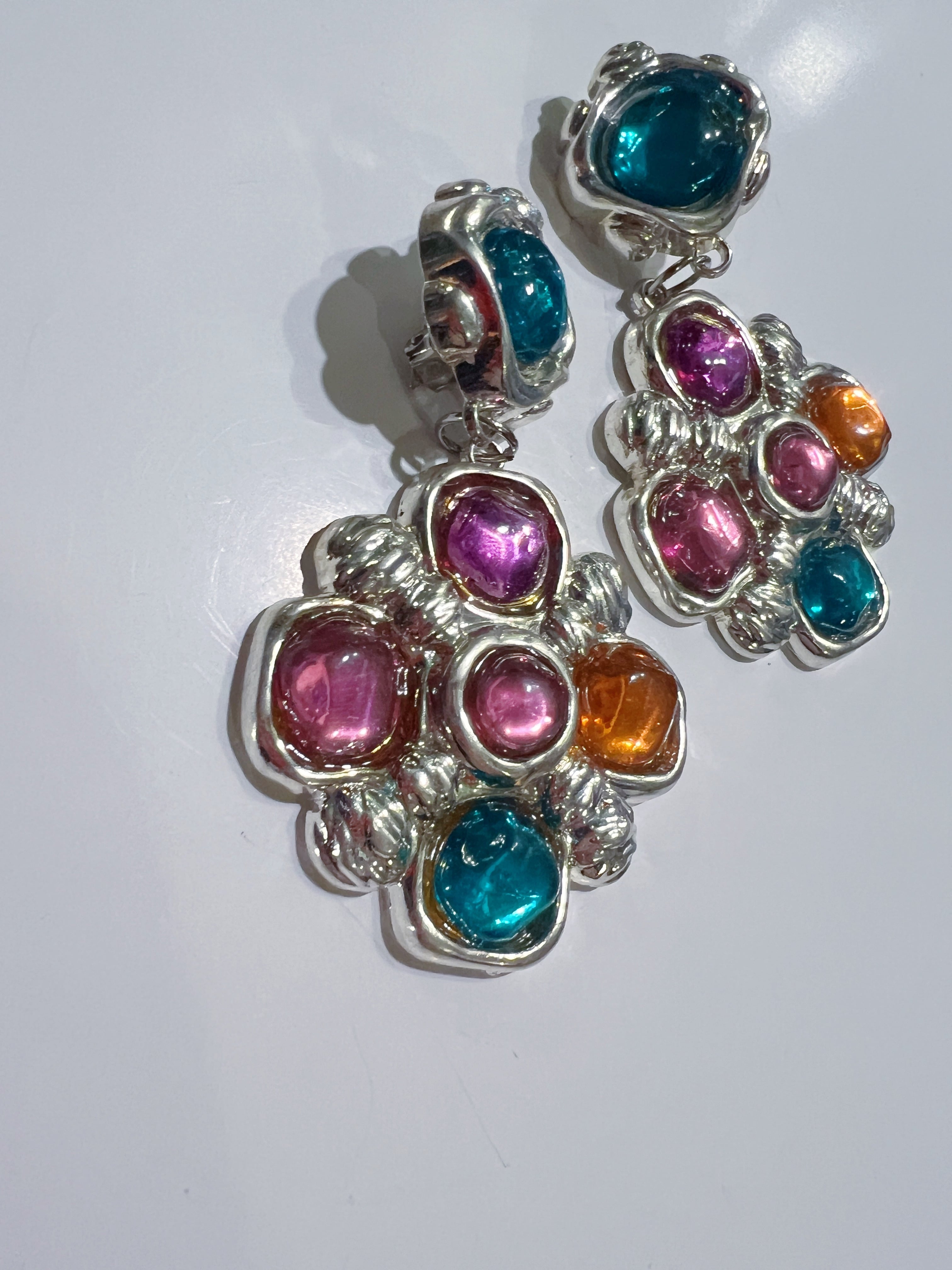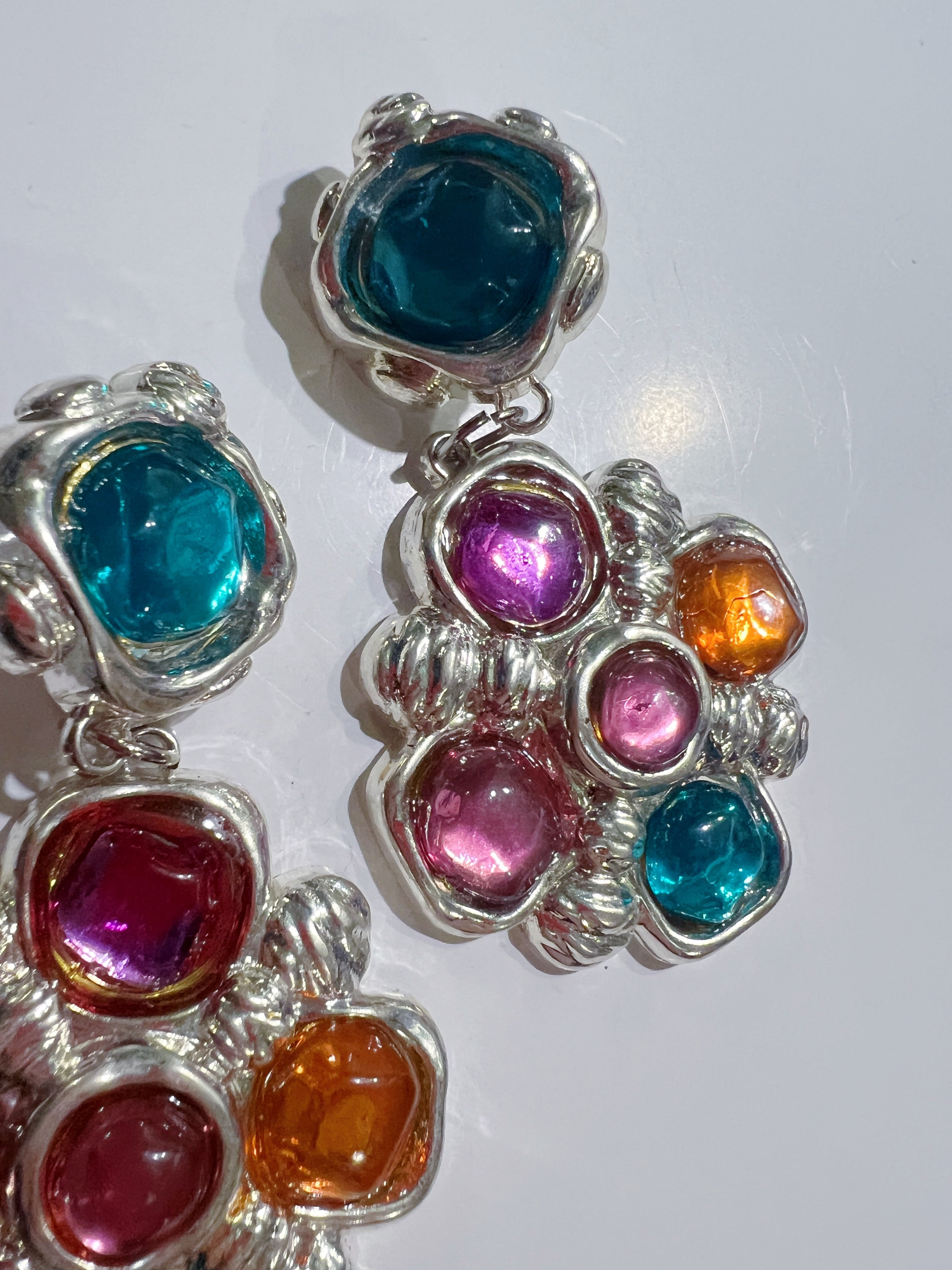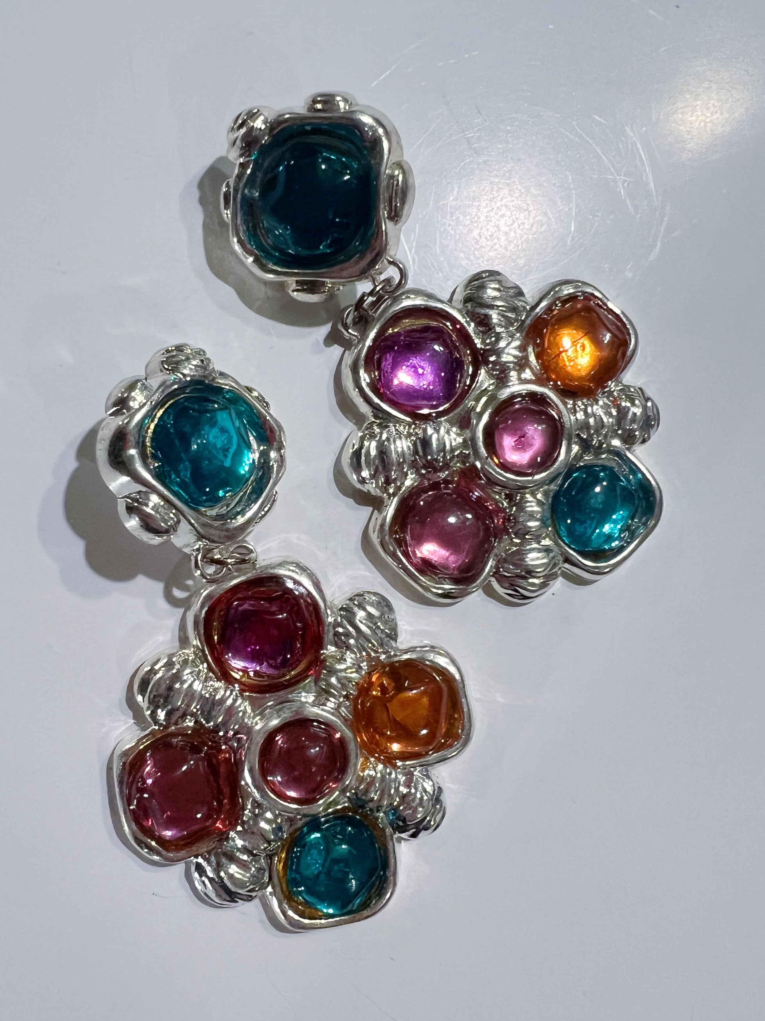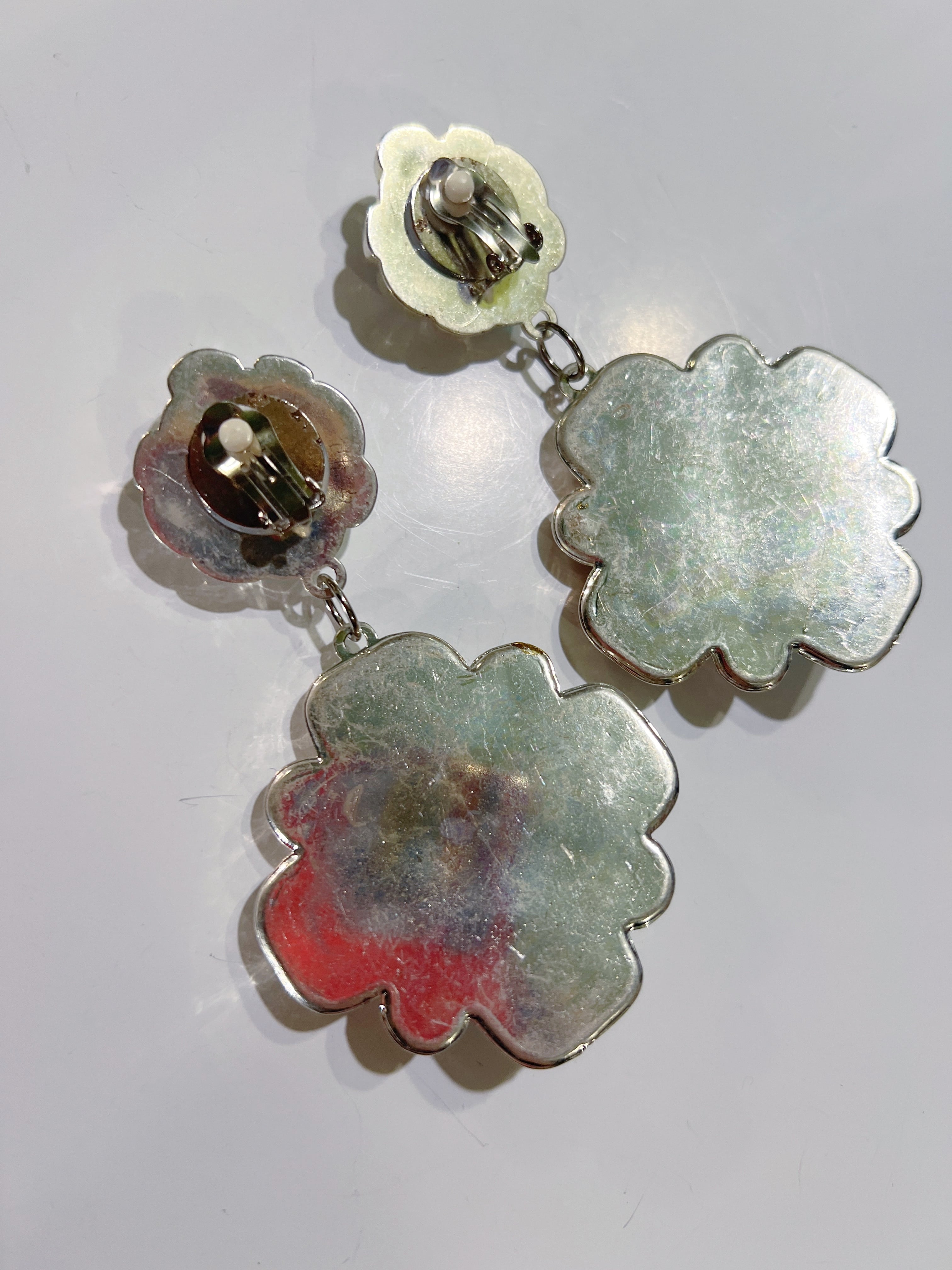 Vintage silver × bijou floral earrings