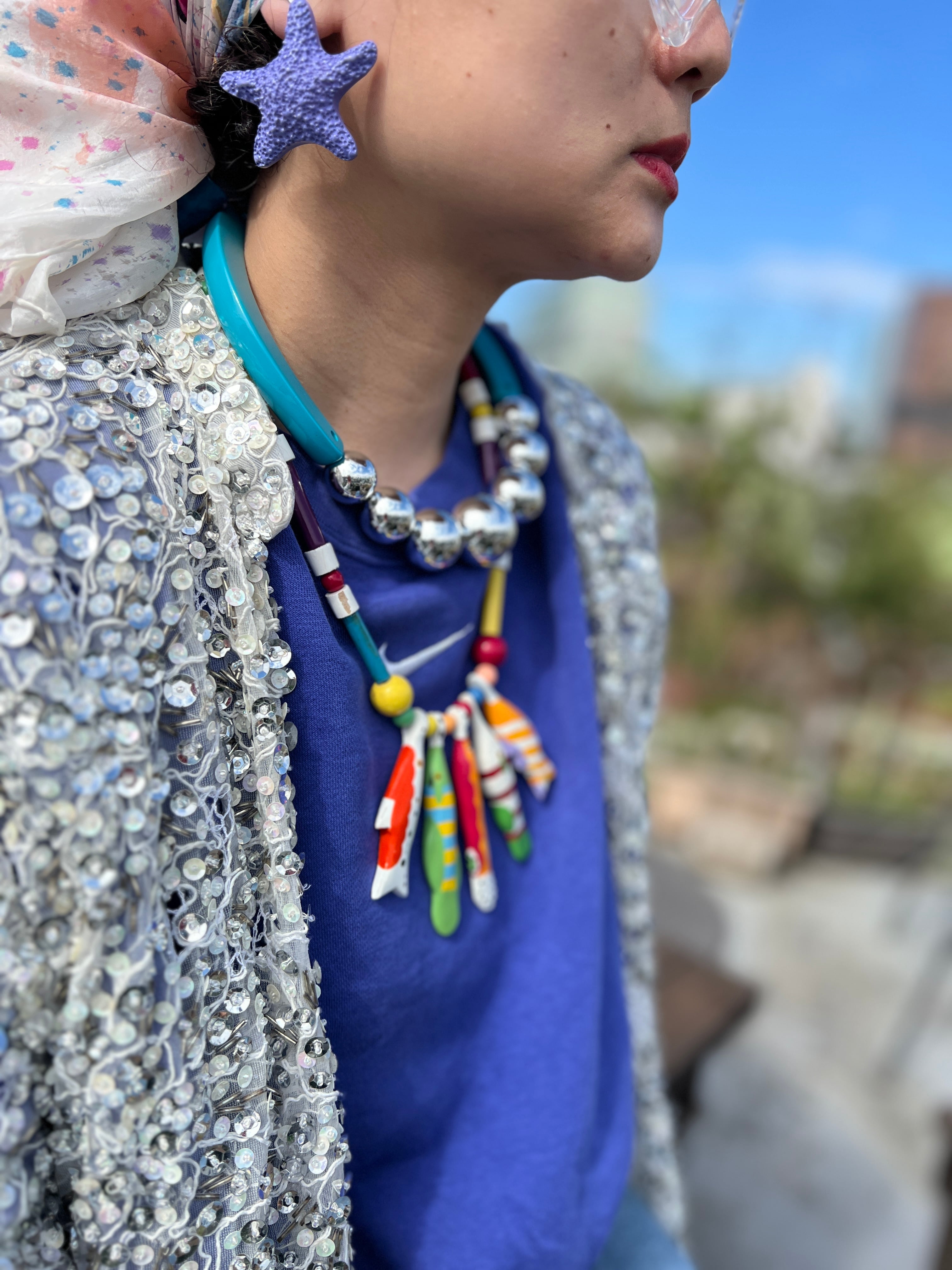 Vintage turquoise × silver ball necklace