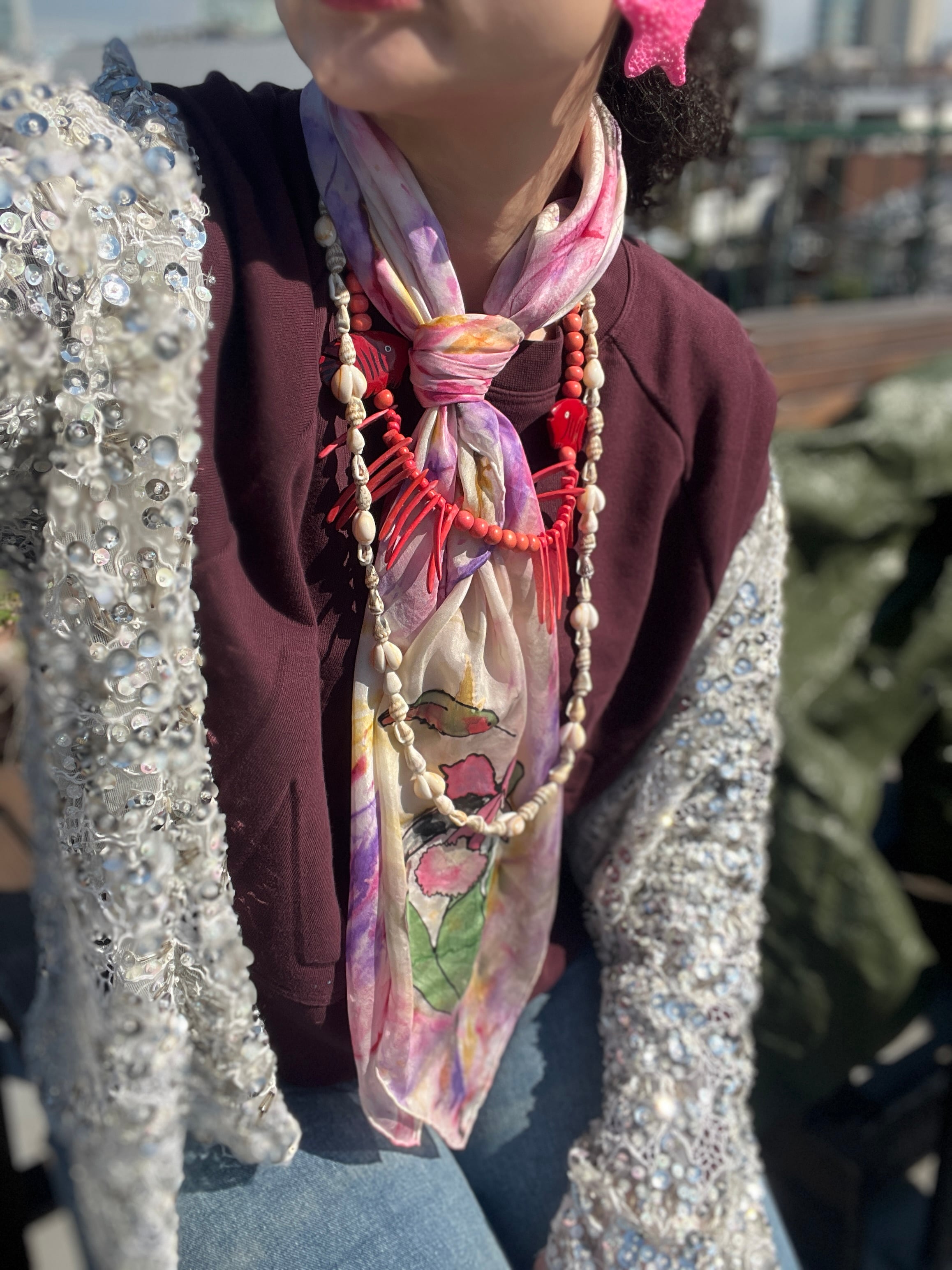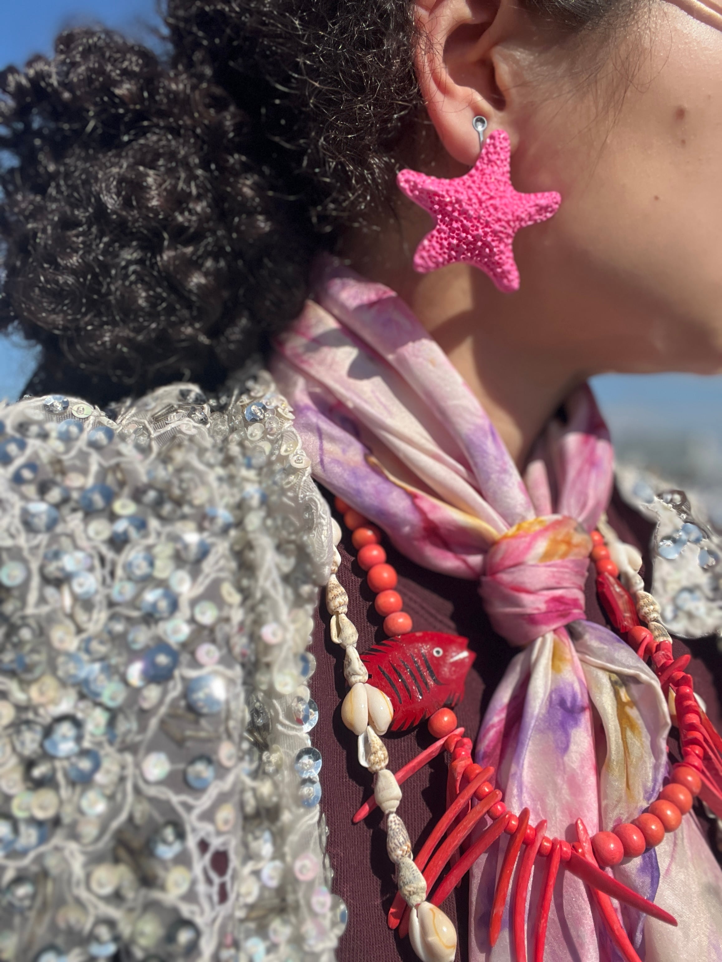 Dead stock red fish handpaint wood necklace ( 未使用 ヴィンテージ レッド × お魚 ハンドペイント ウッド ネックレス