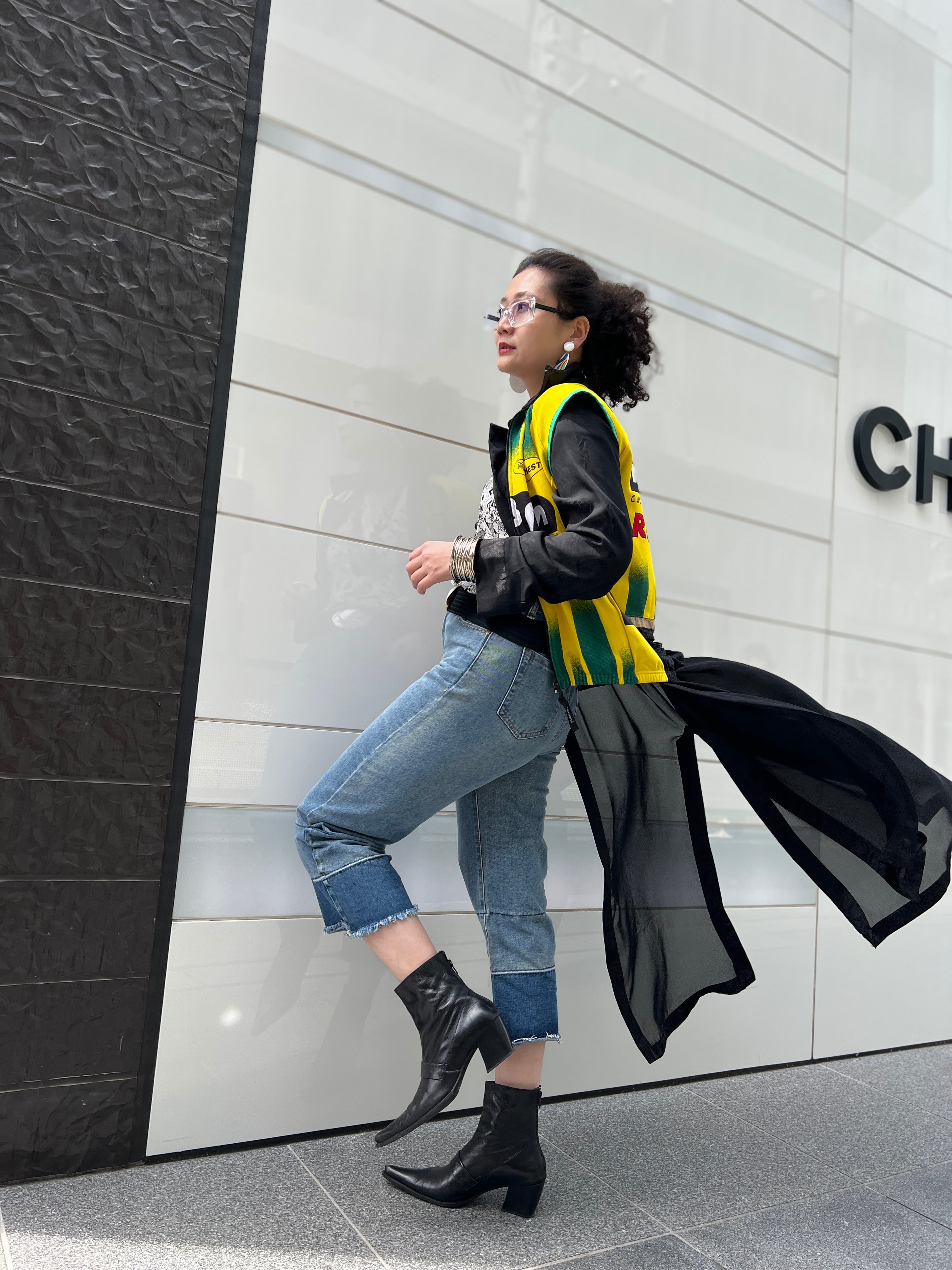 モノトーンスタイルに差し込むことで、遊び心あるスタイルに。