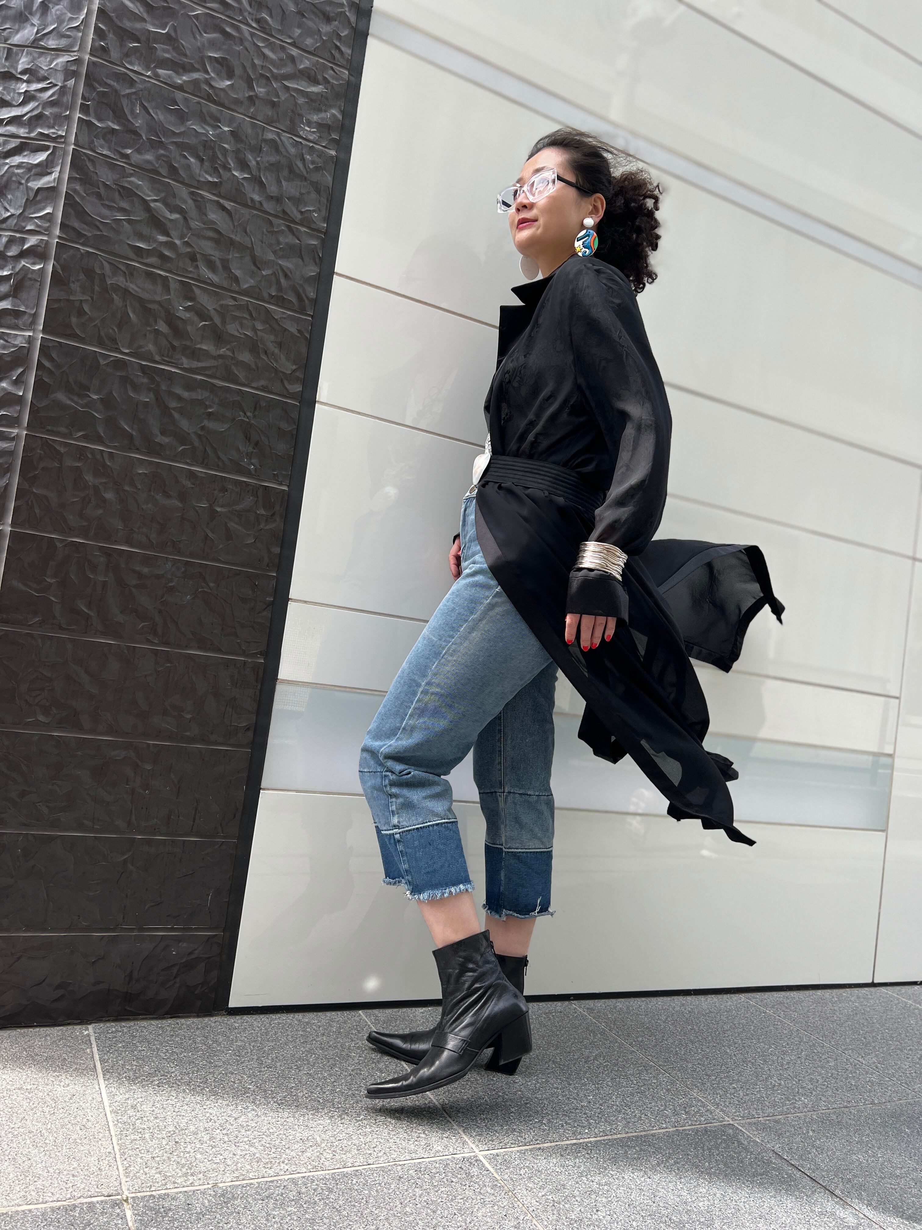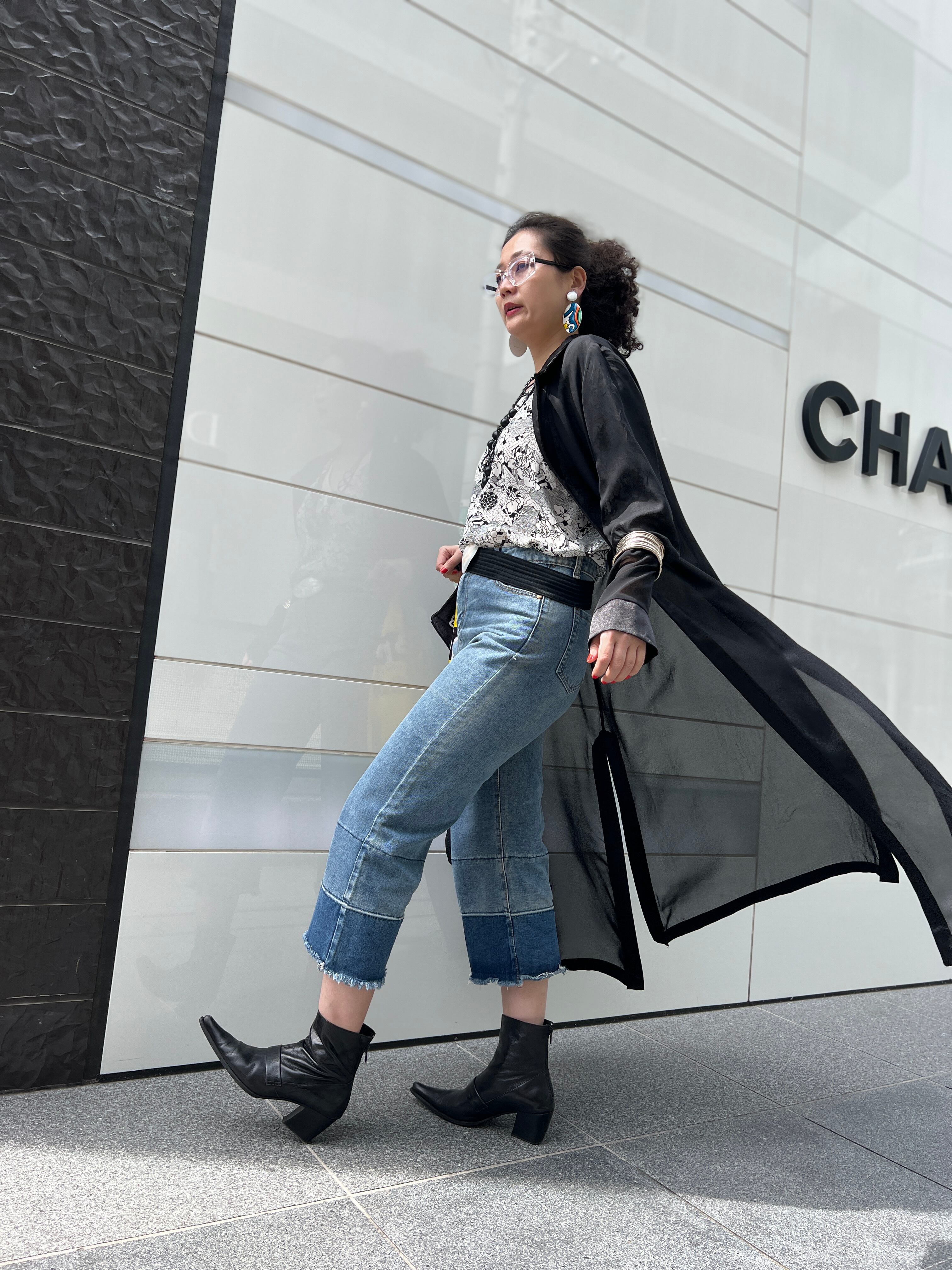 デニムなどのカジュアルなアイテムに重ねるだけで、