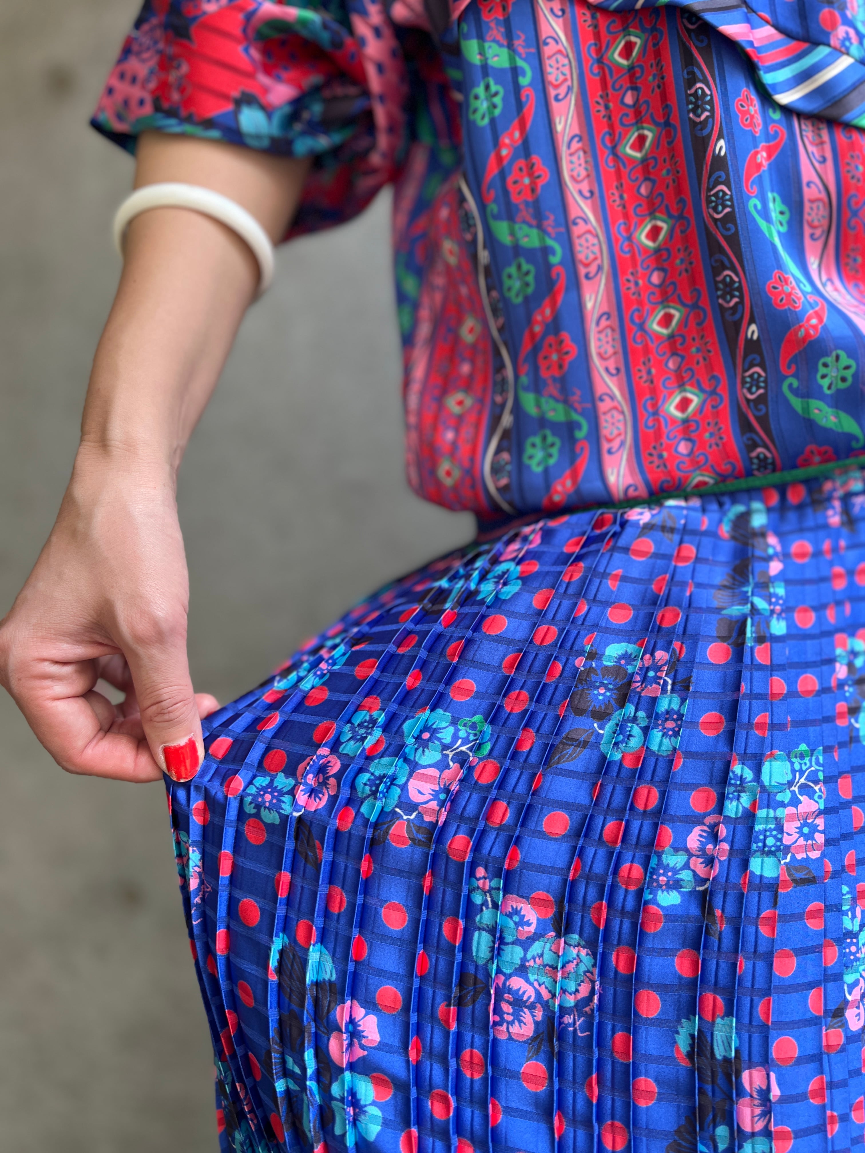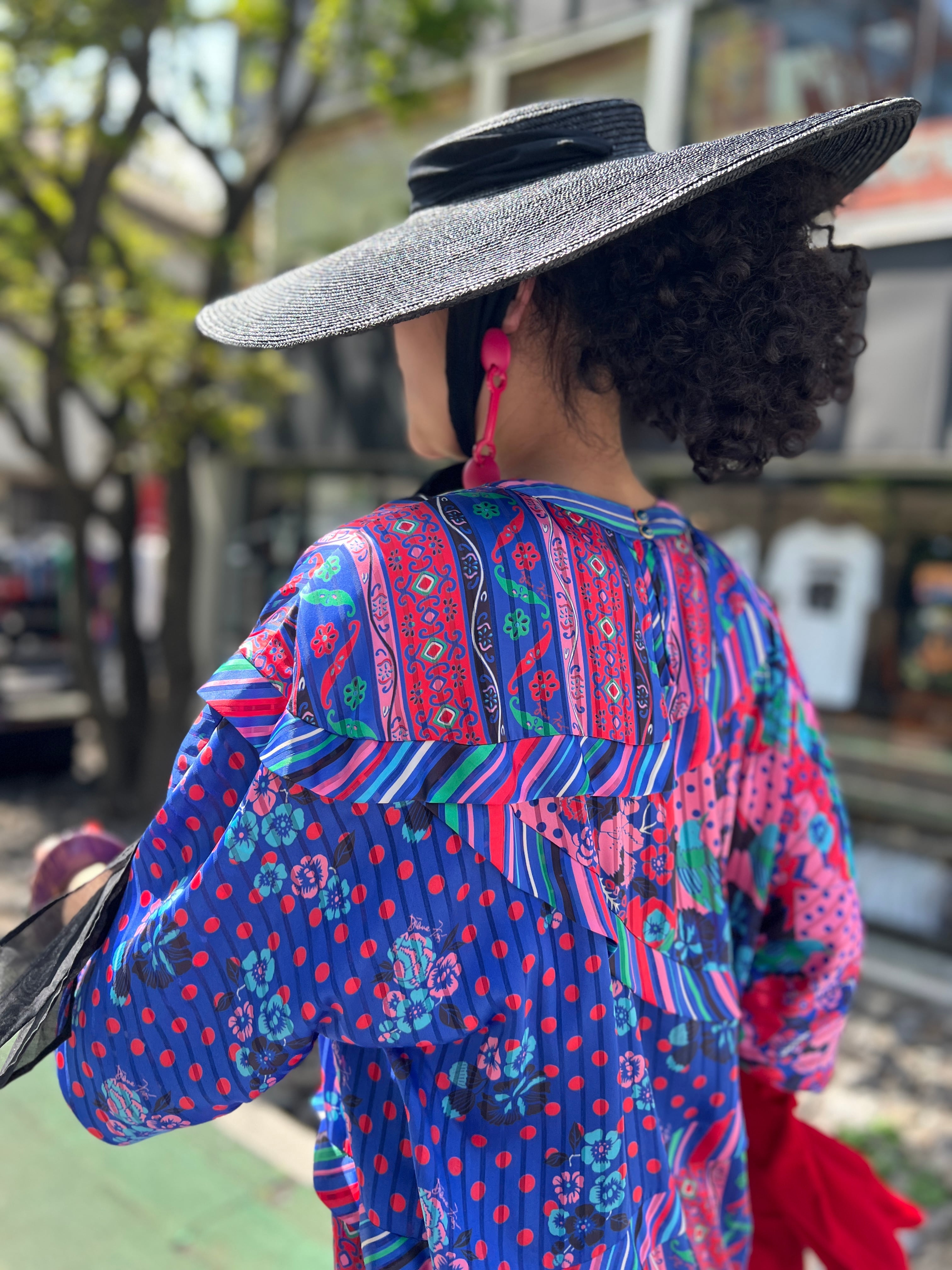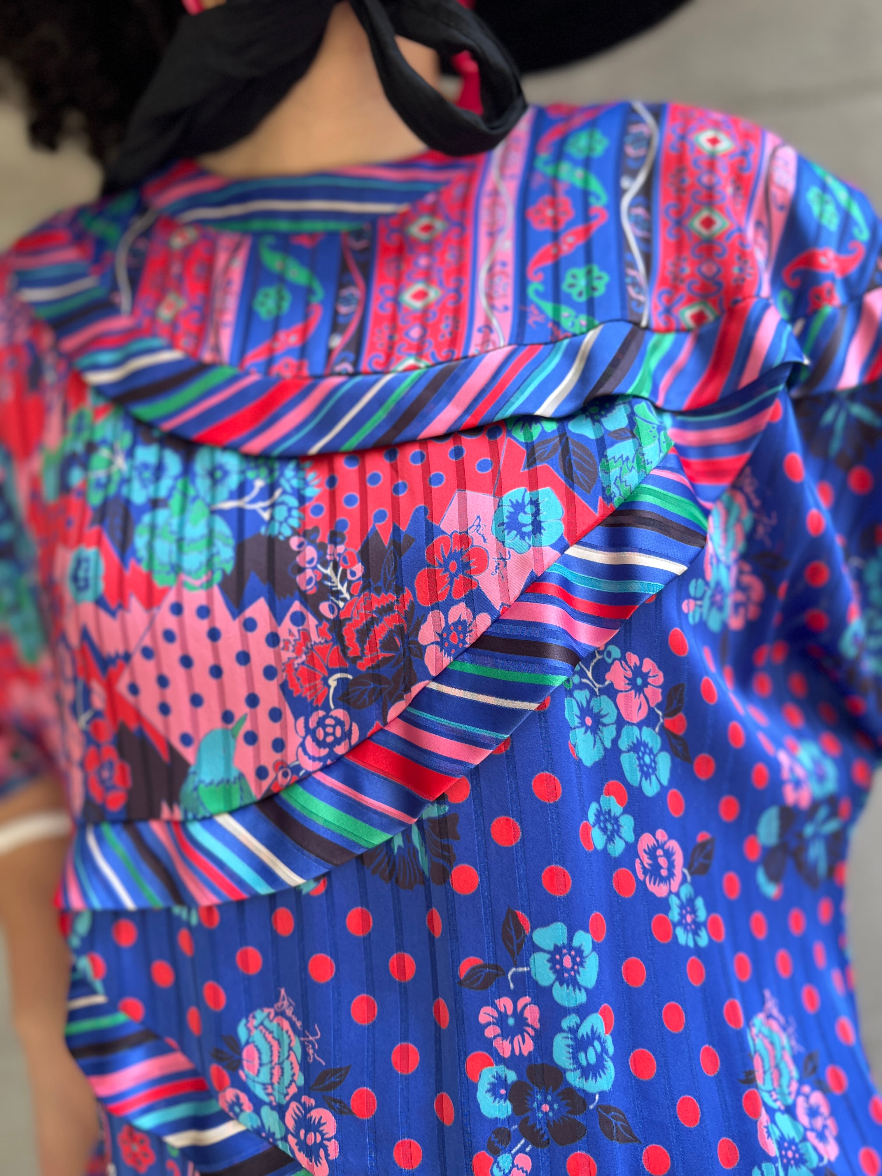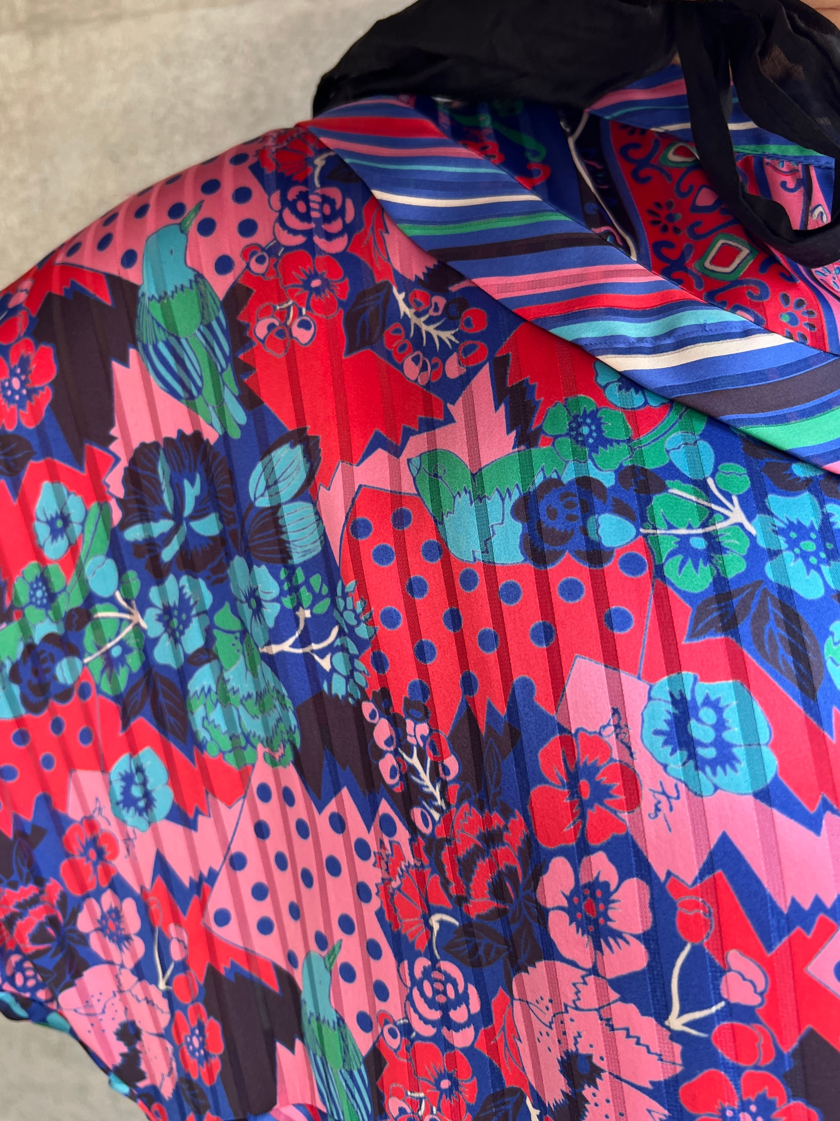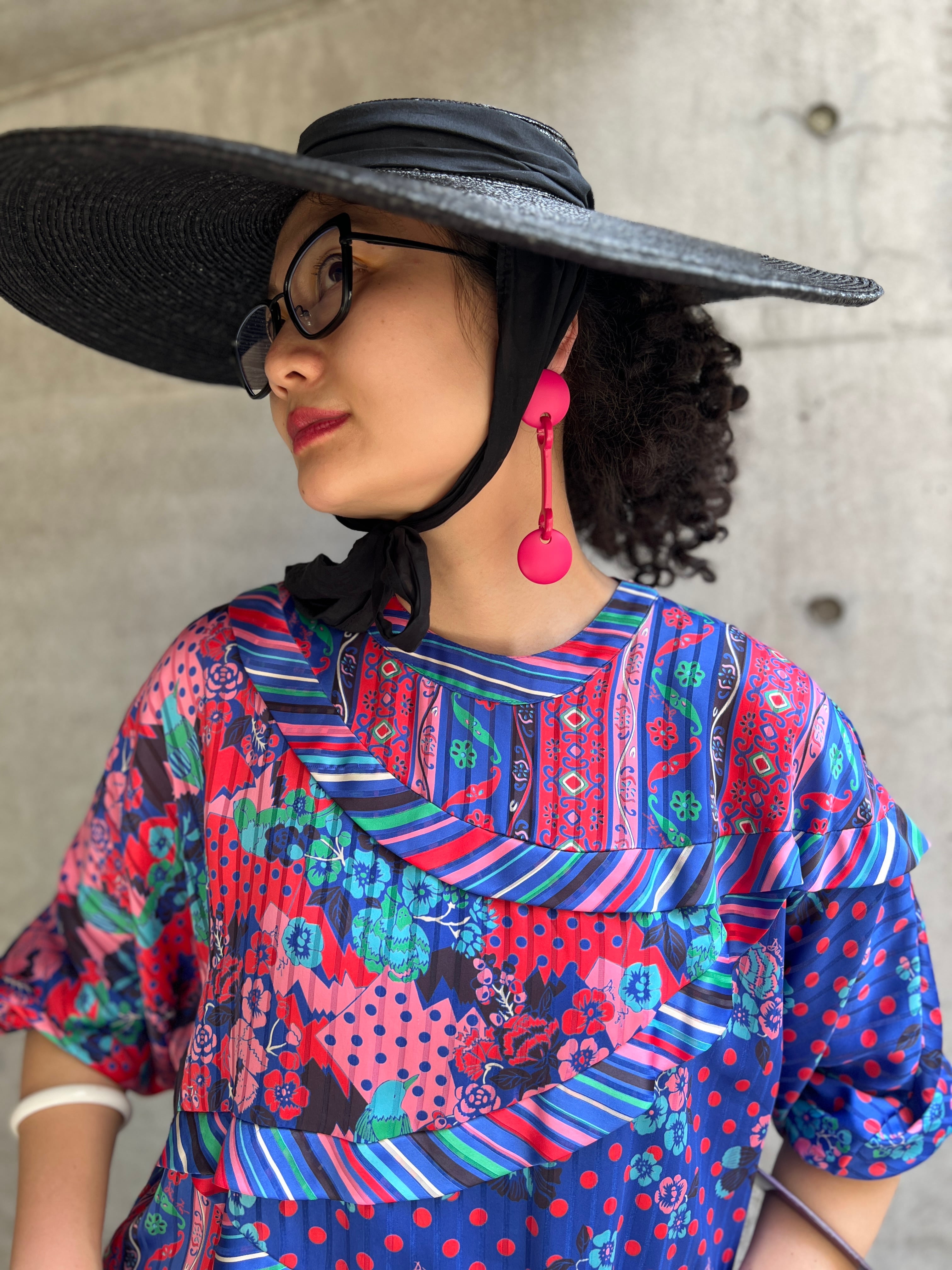鳥、ドット、フラワー、ストライプといった異なる柄を大胆に組み合わせながらも、
