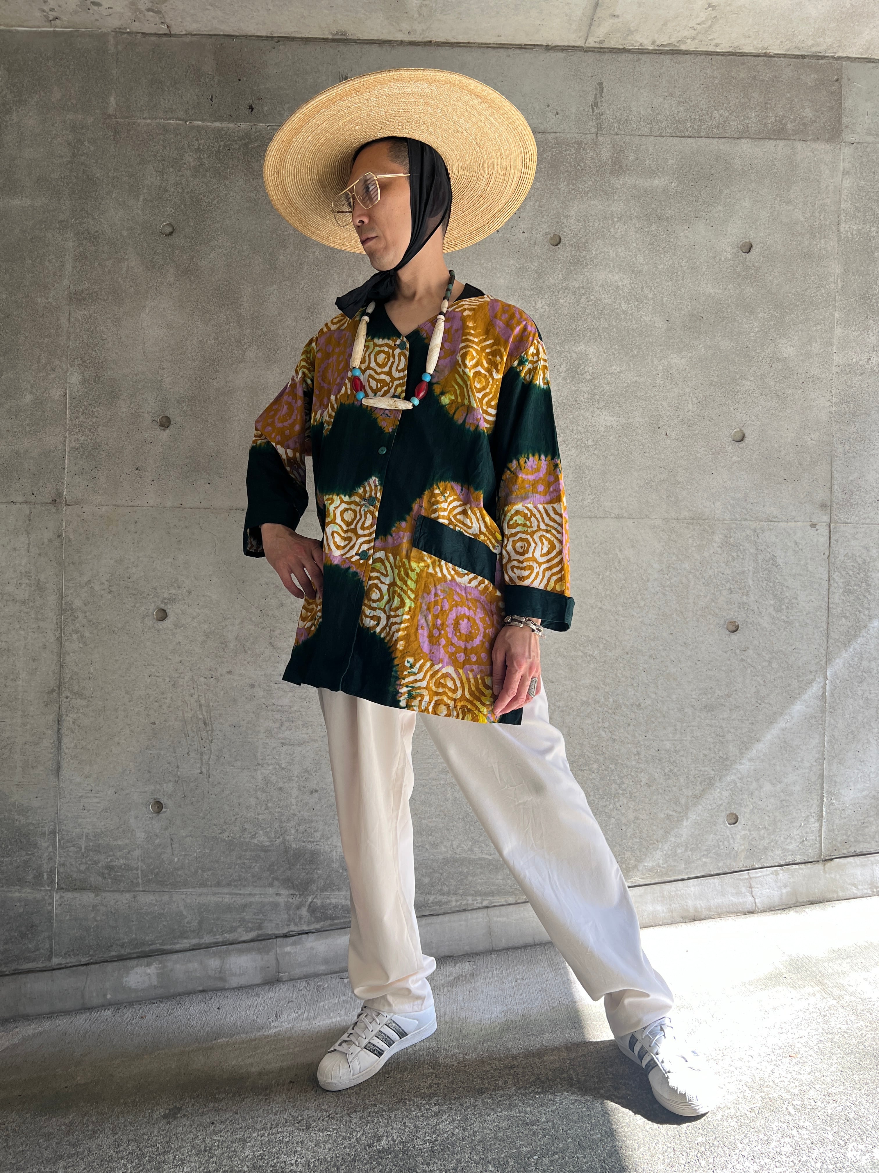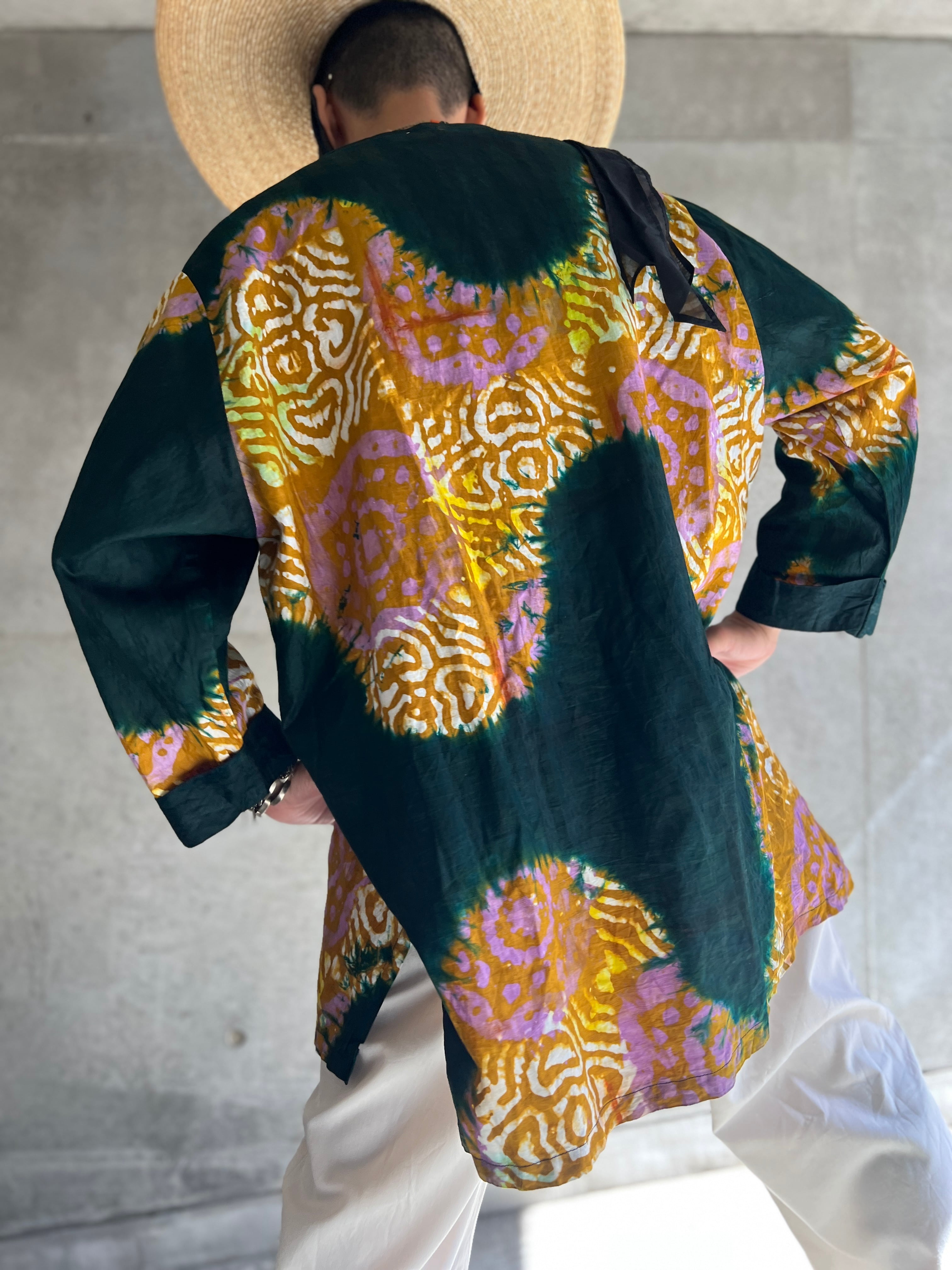 アフリカンバティック ハサミモチーフボタン ロングシャツジャケット
