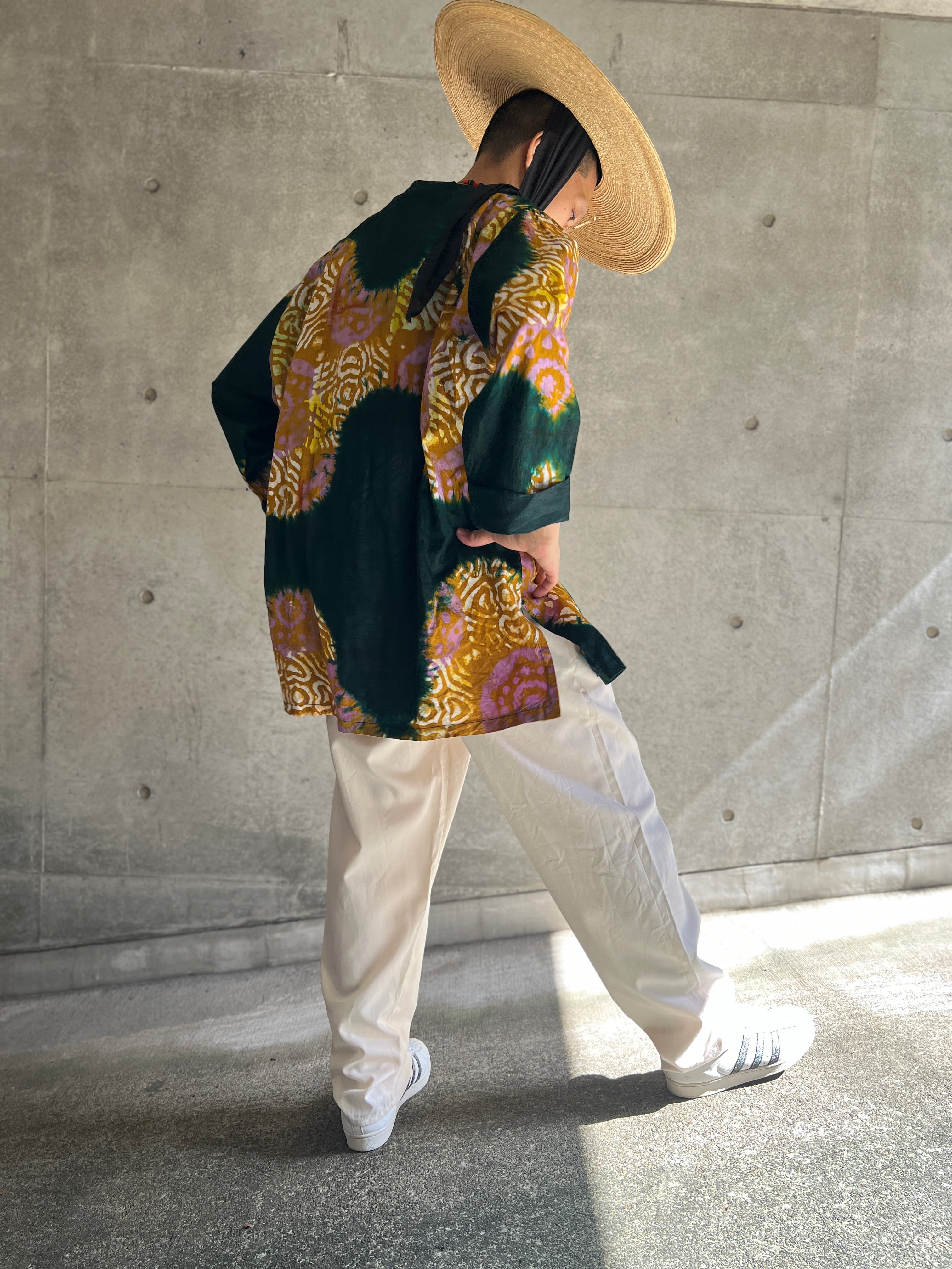 Vintage african batik deep green cotton jacket ( ヴィンテージ アフリカンバティック 深緑 コットンジャケット )
