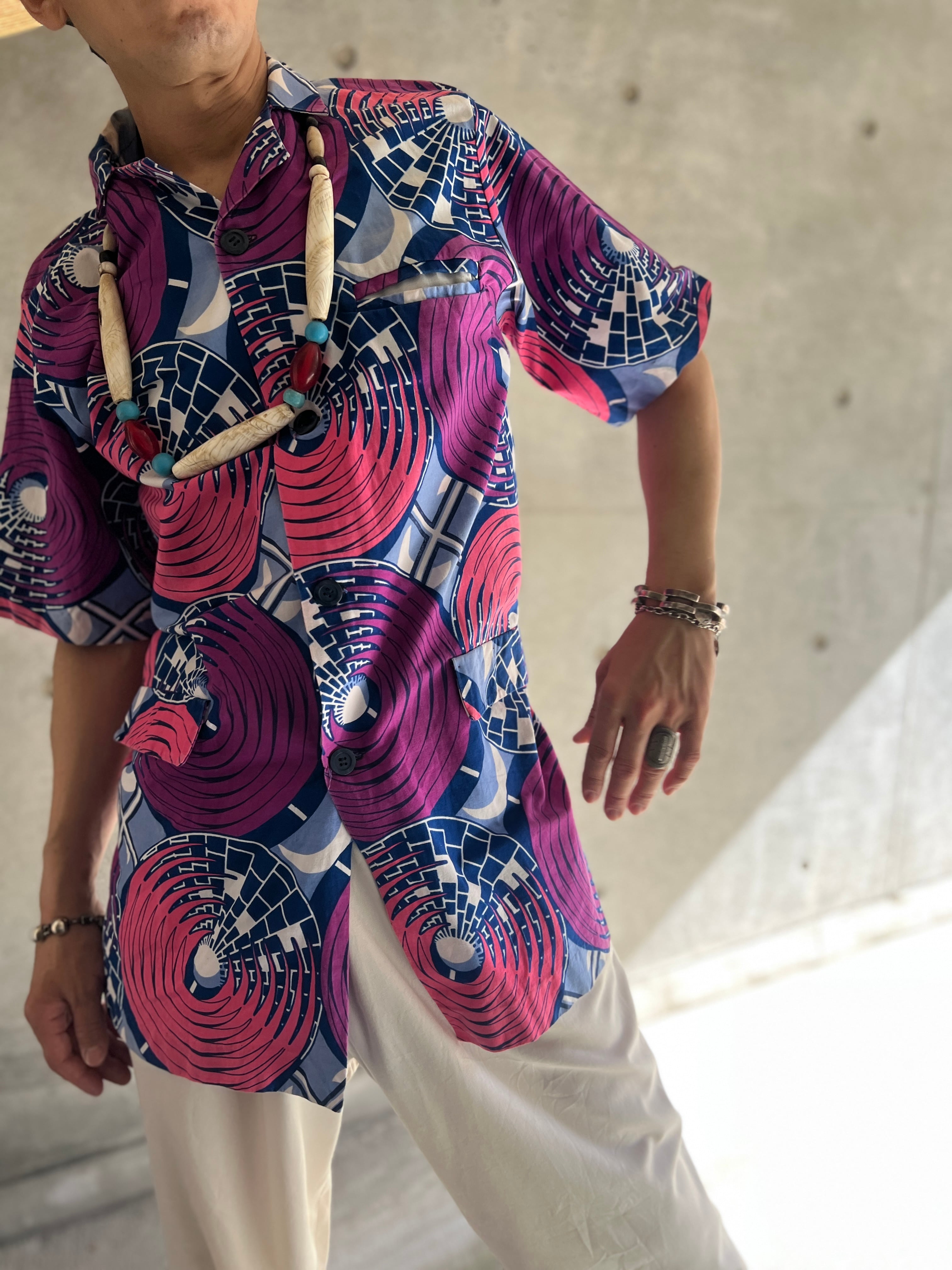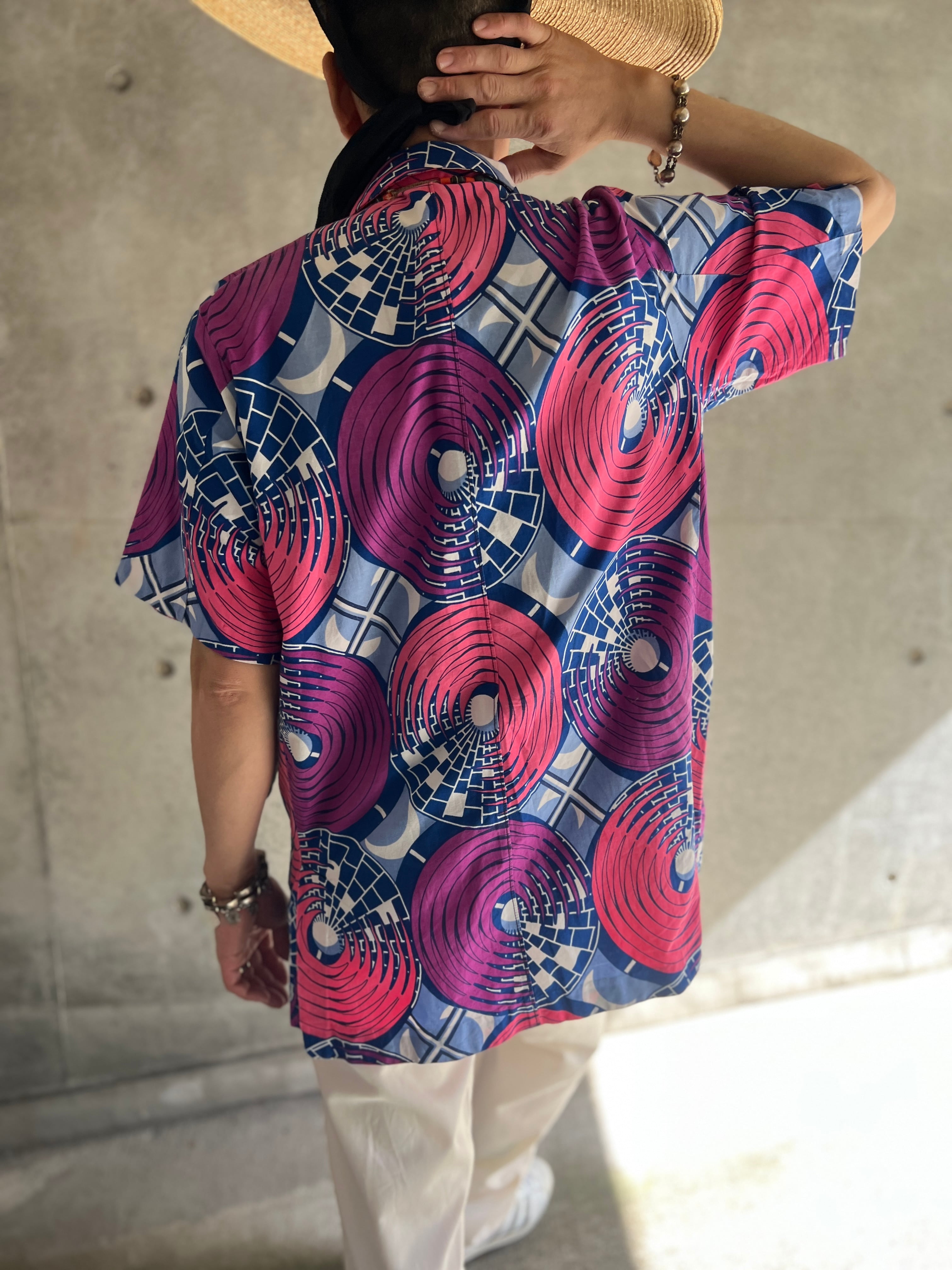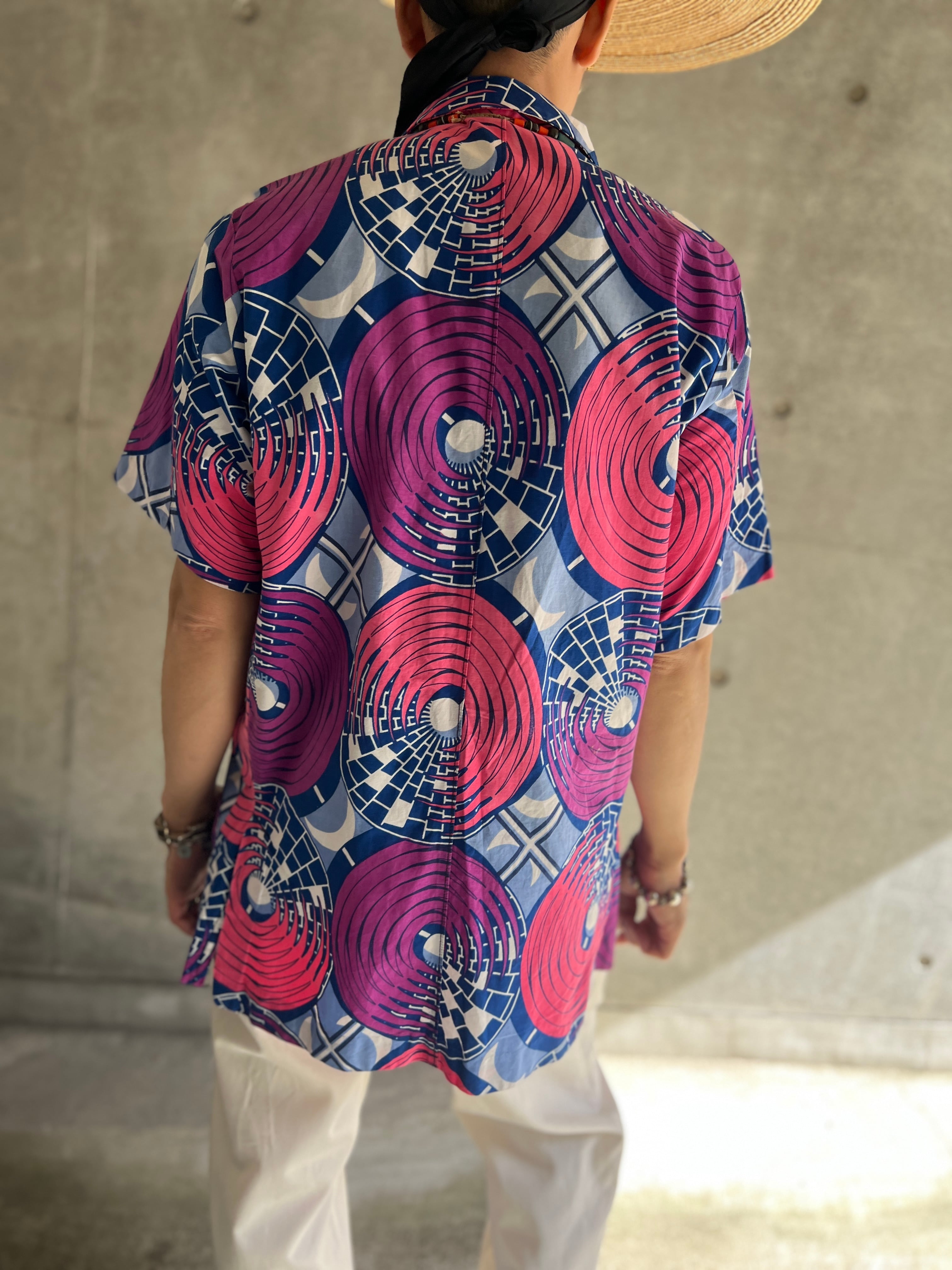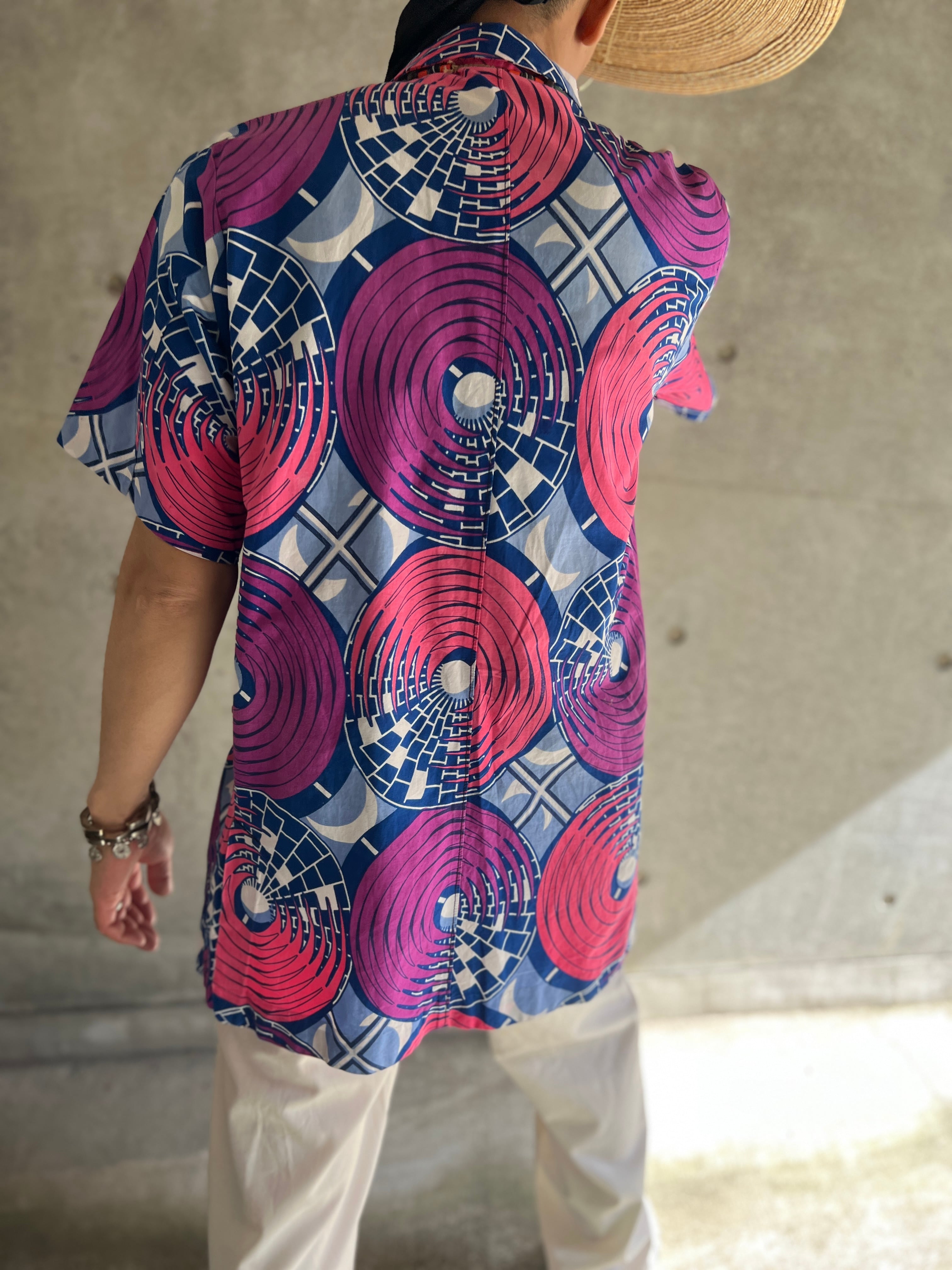 アフリカンバティック サークルパターン ショートスリーブシャツ
