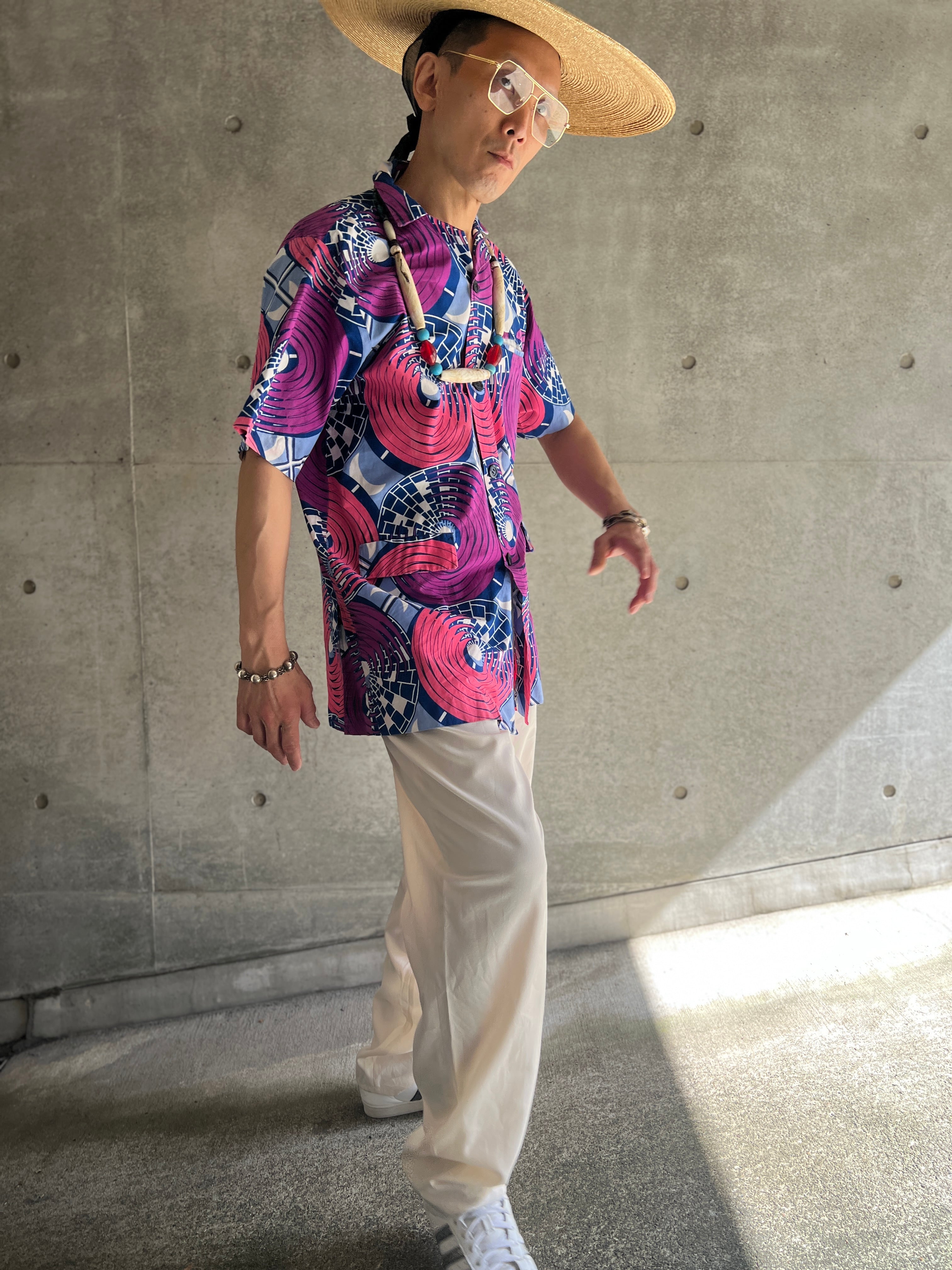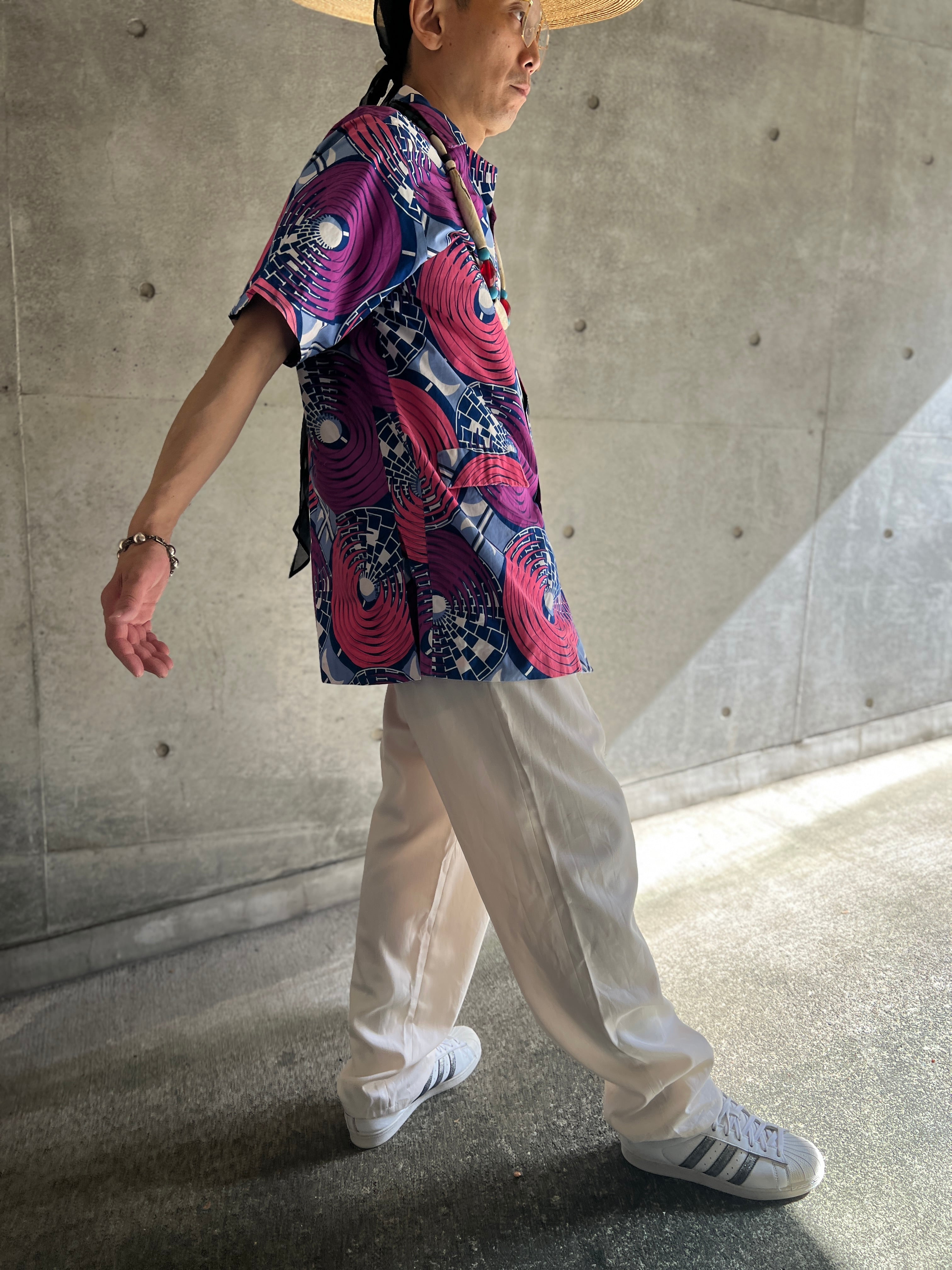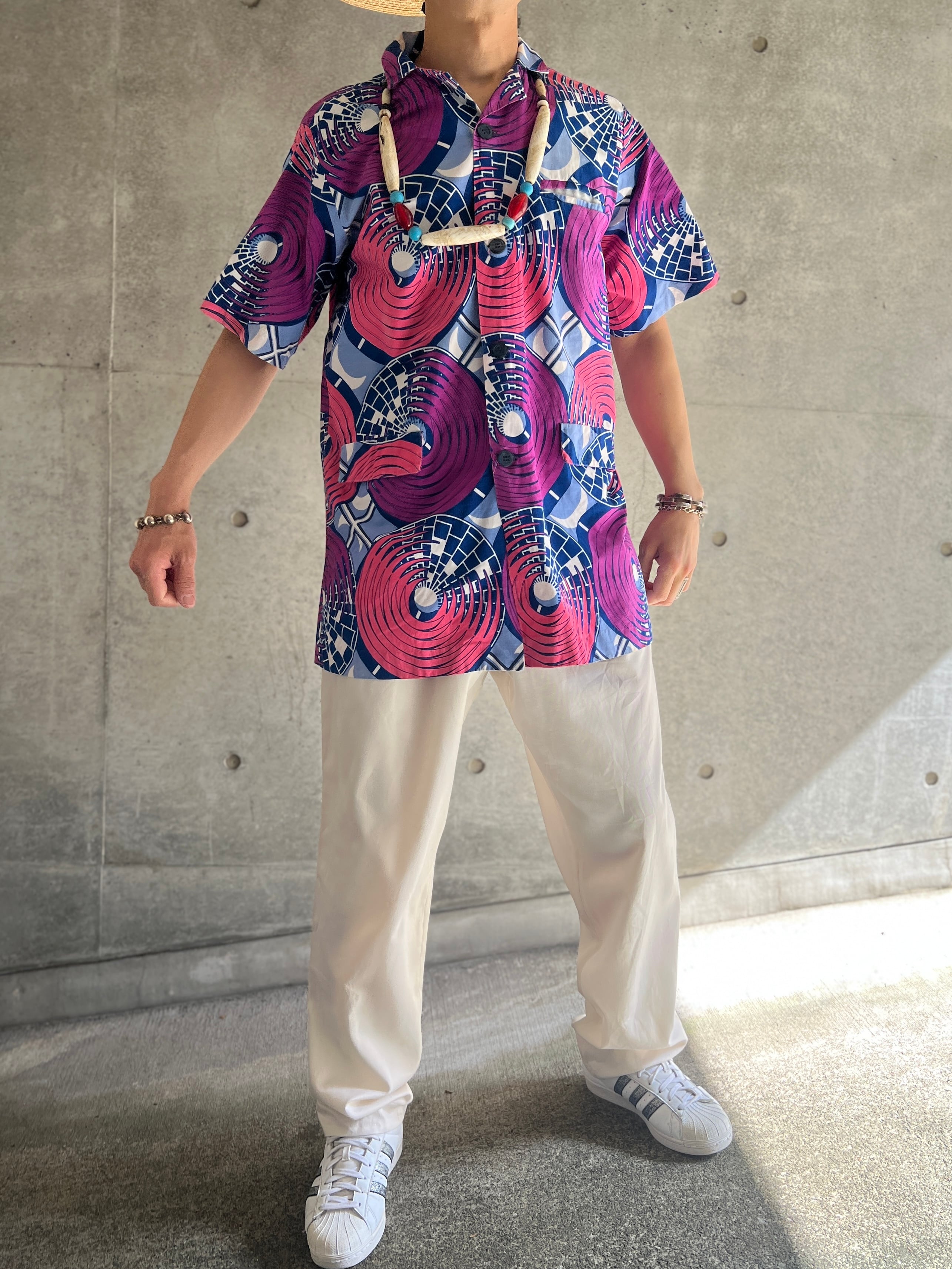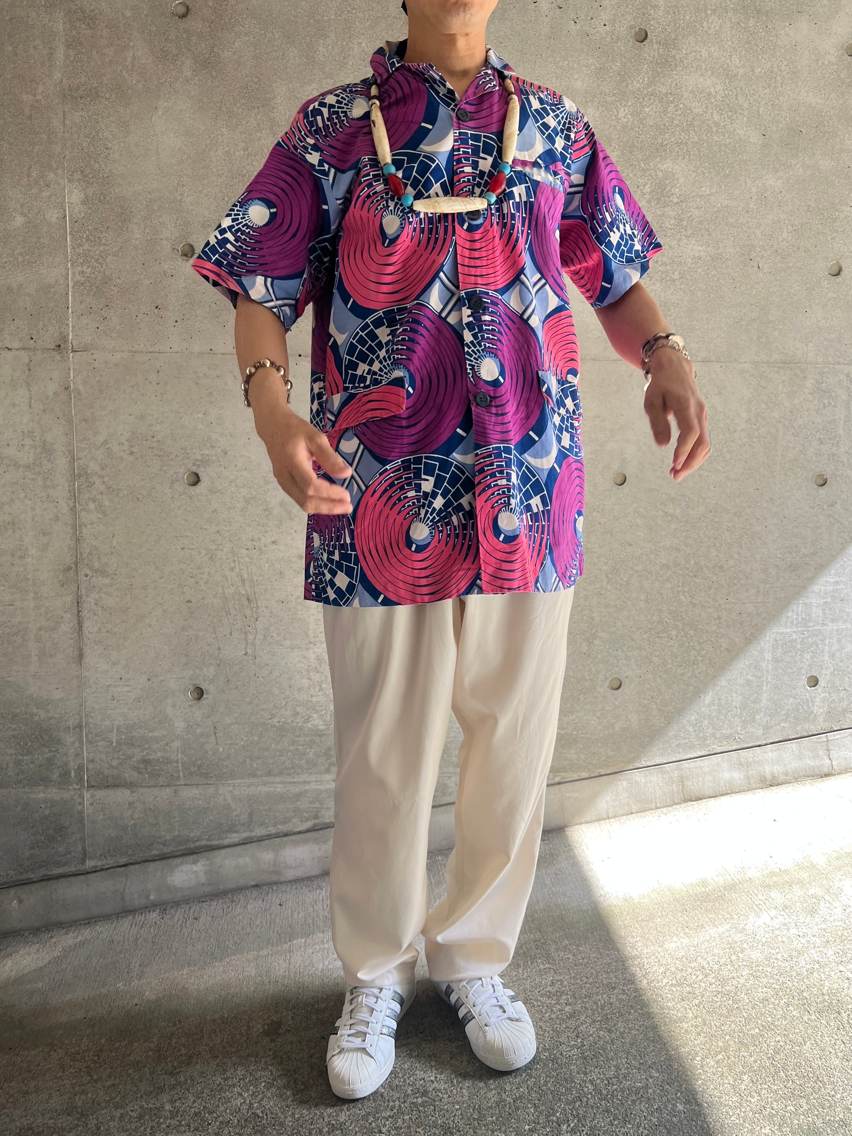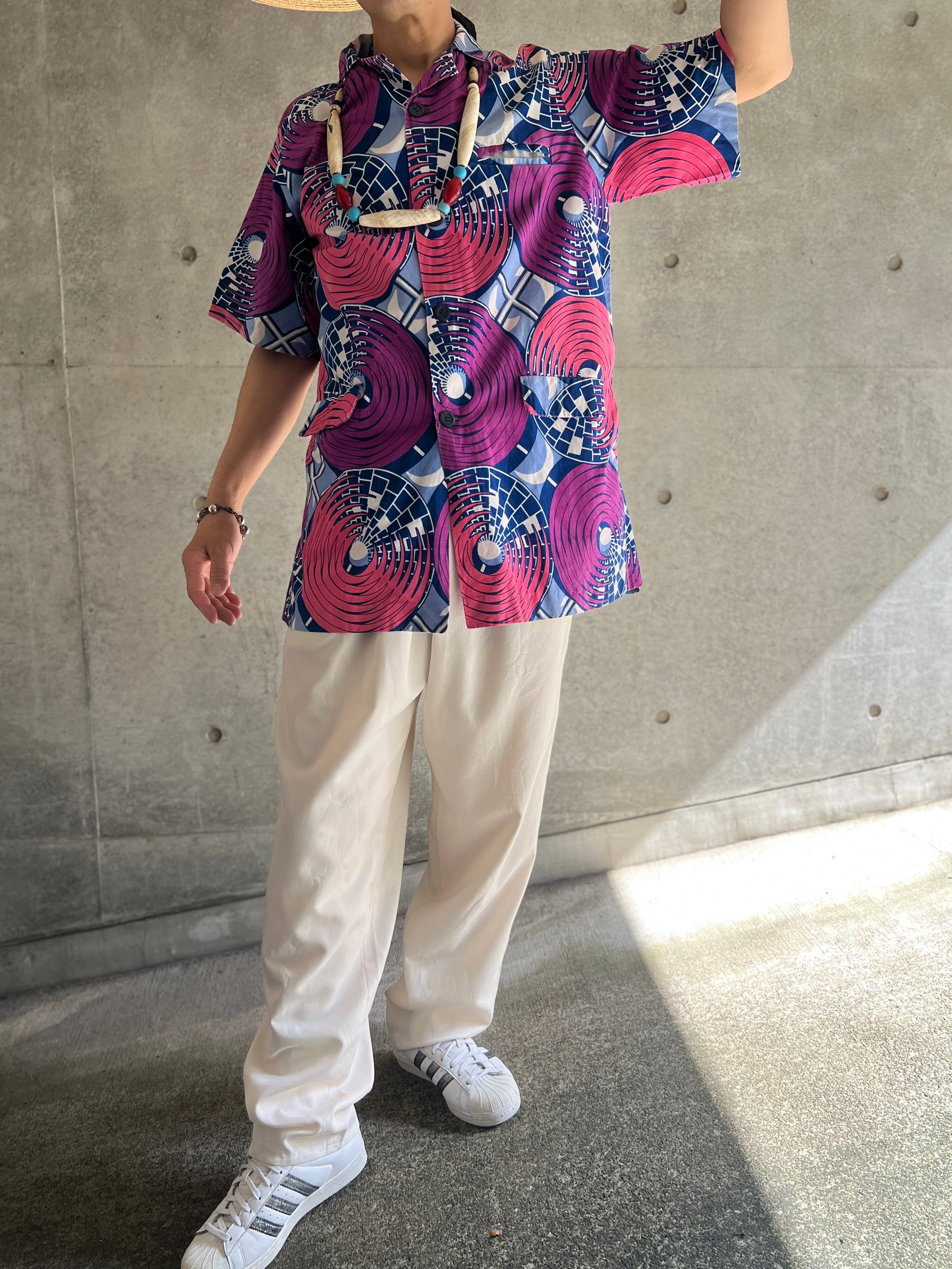 アフリカンバティック サークルパターン ショートスリーブシャツ