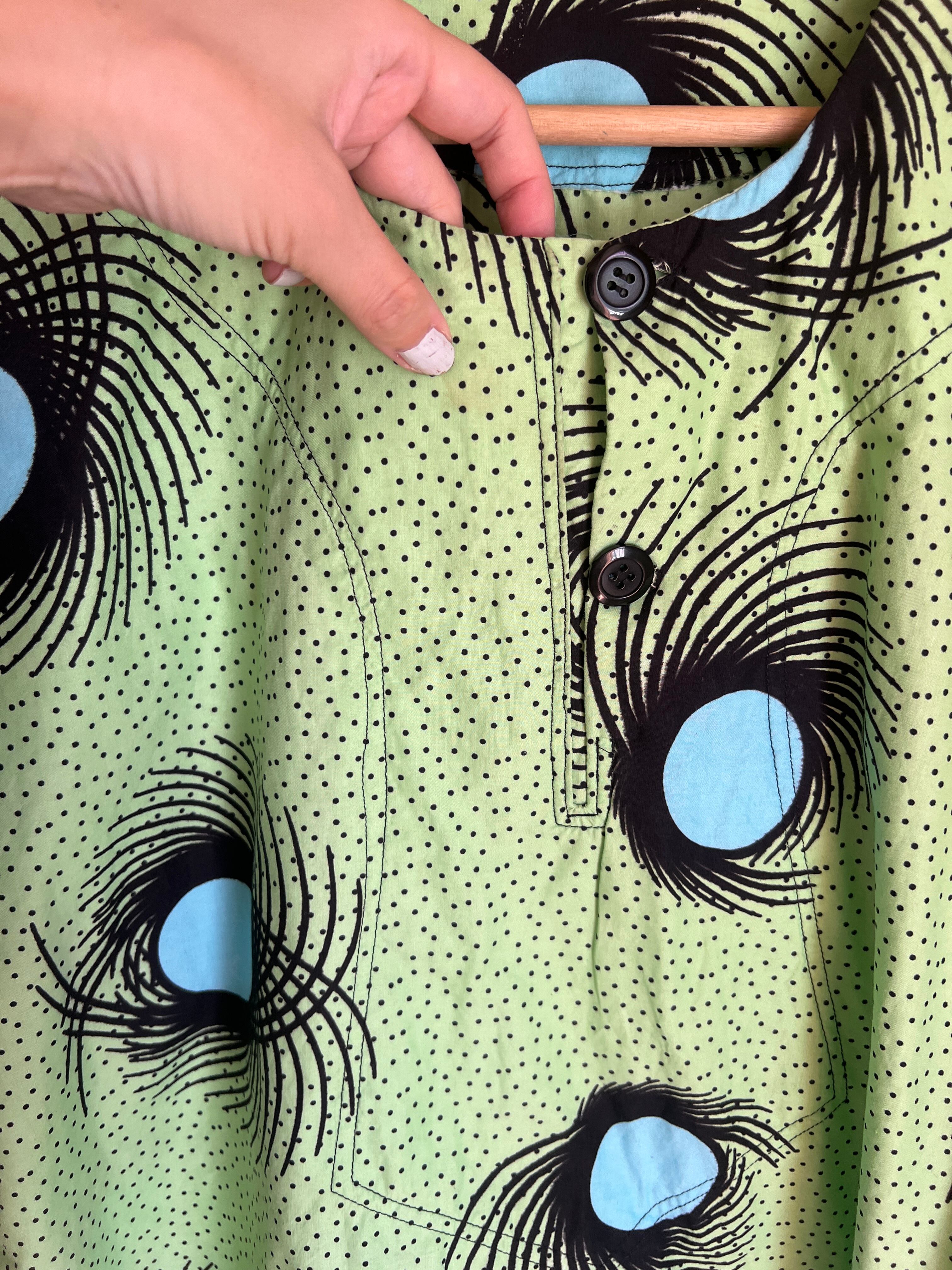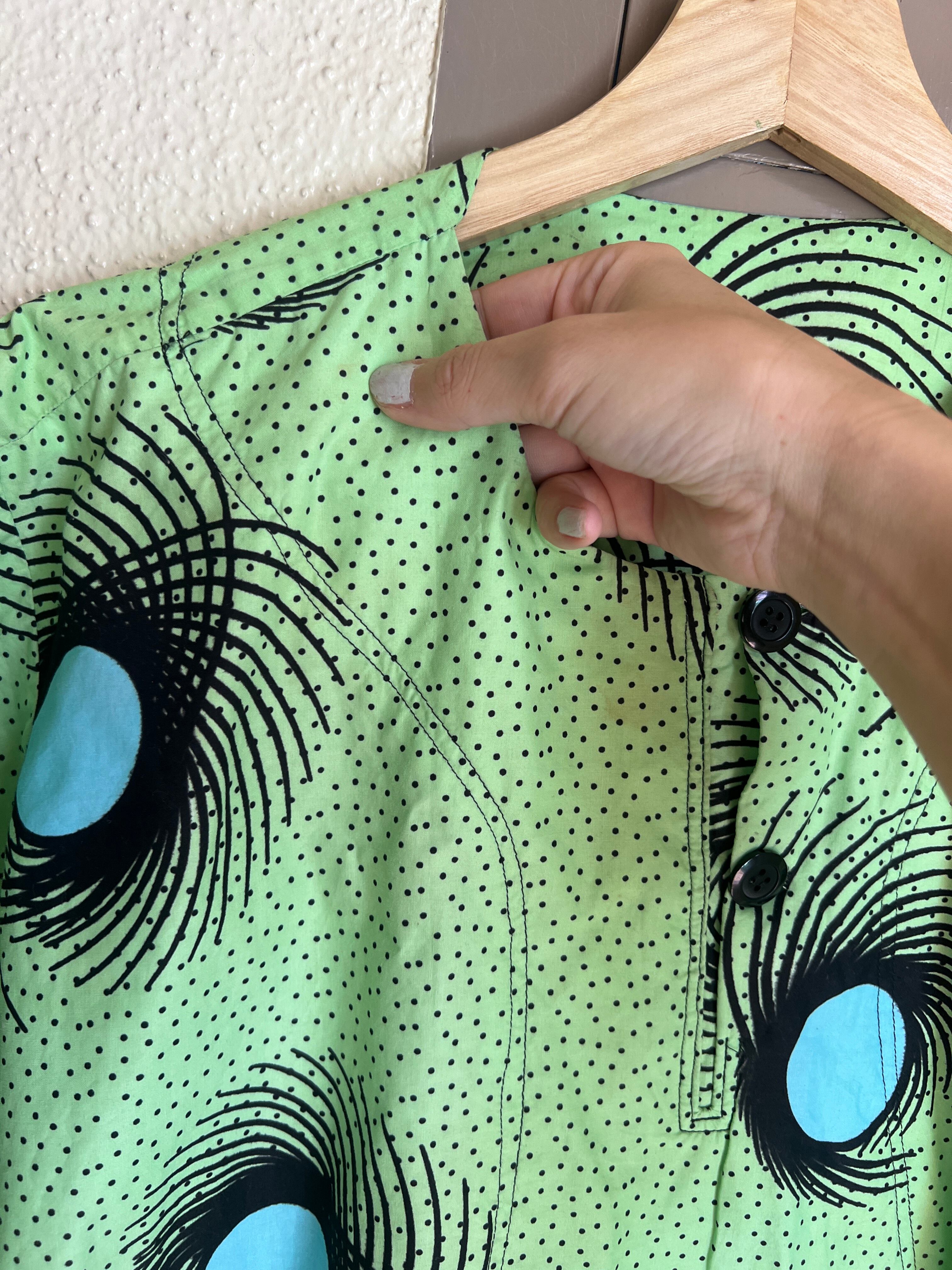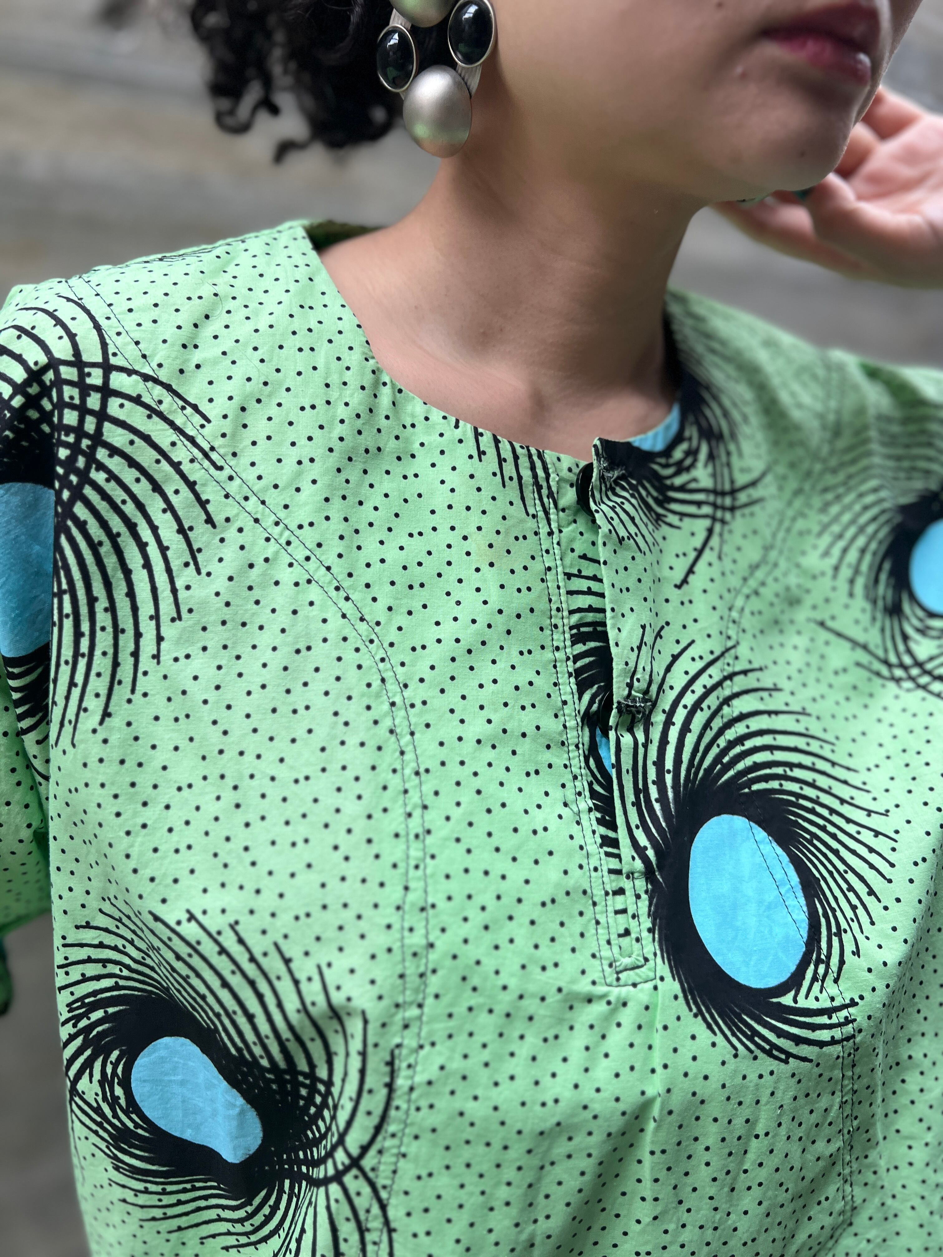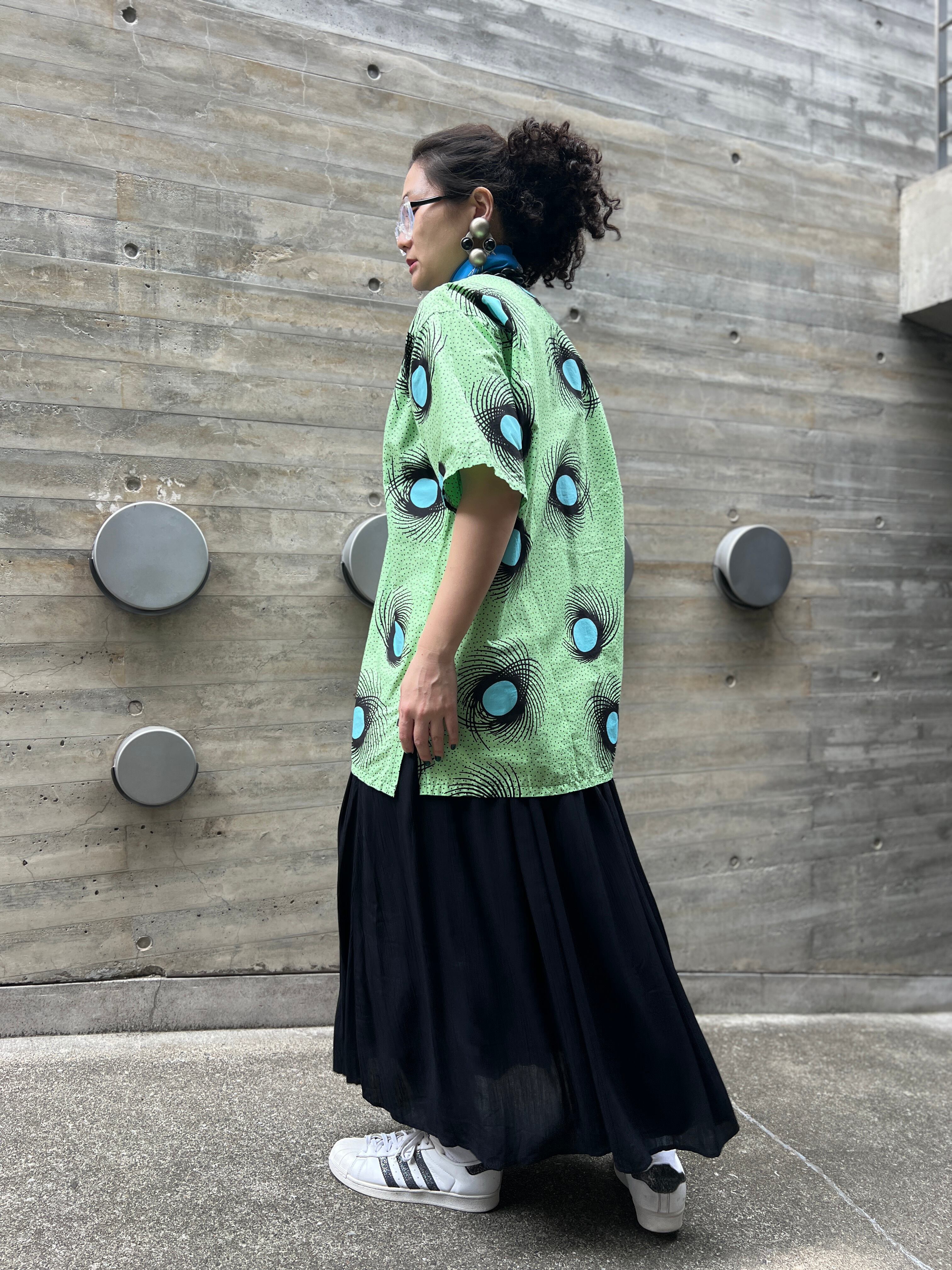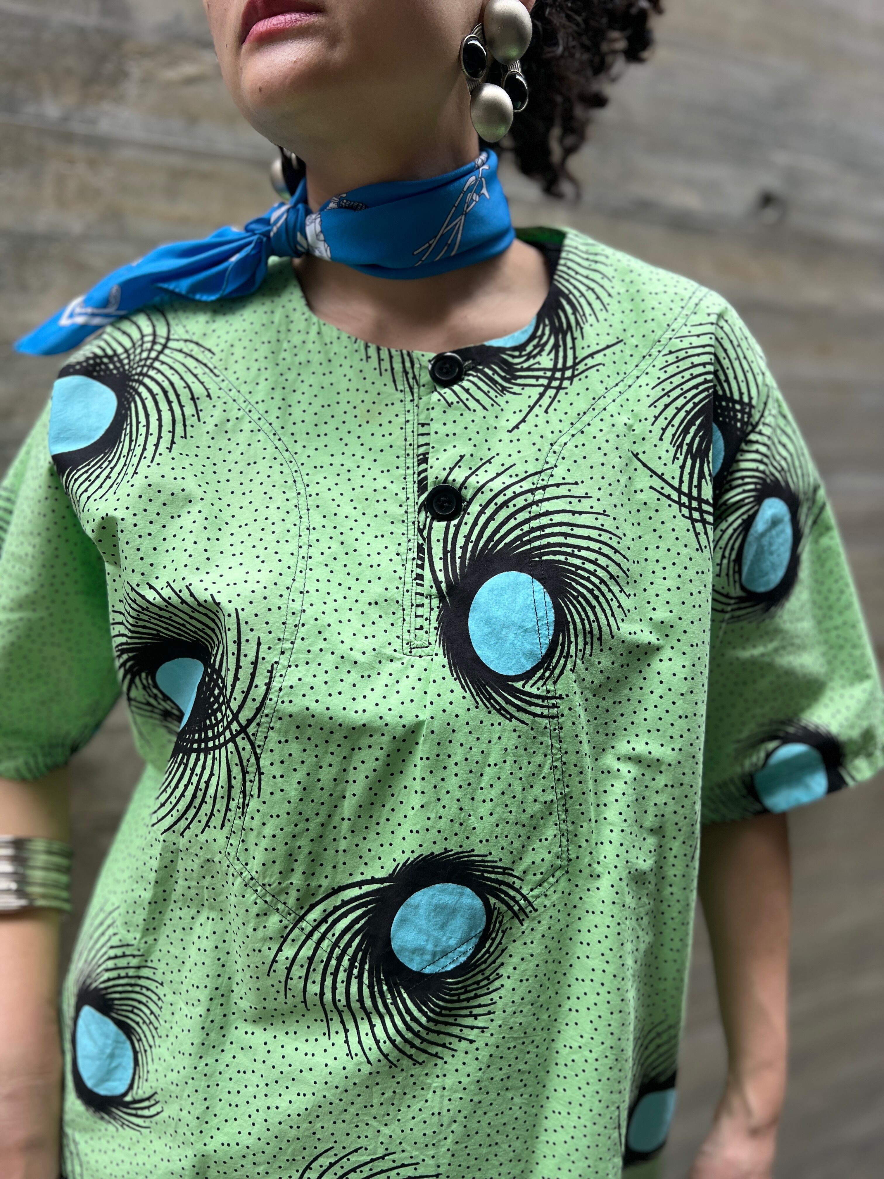 Vintage african batik melonGreen cotton tops