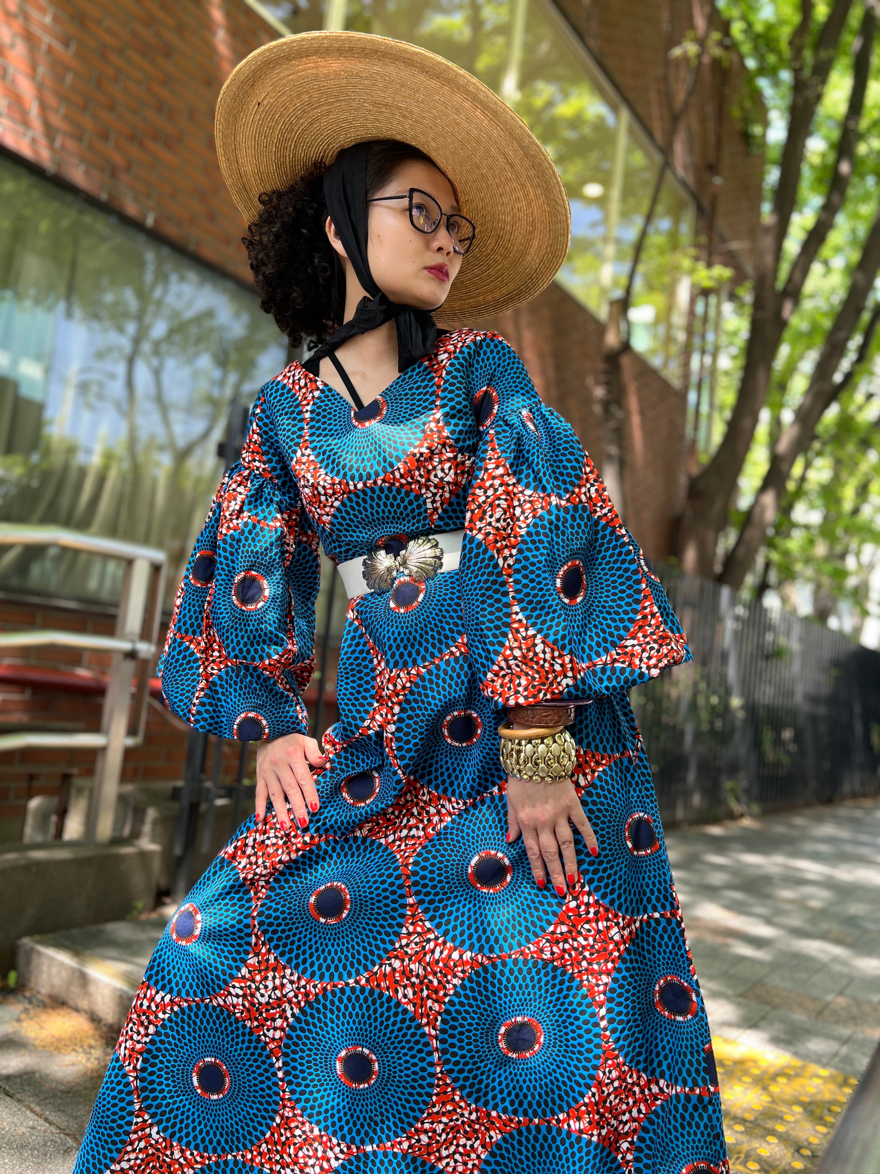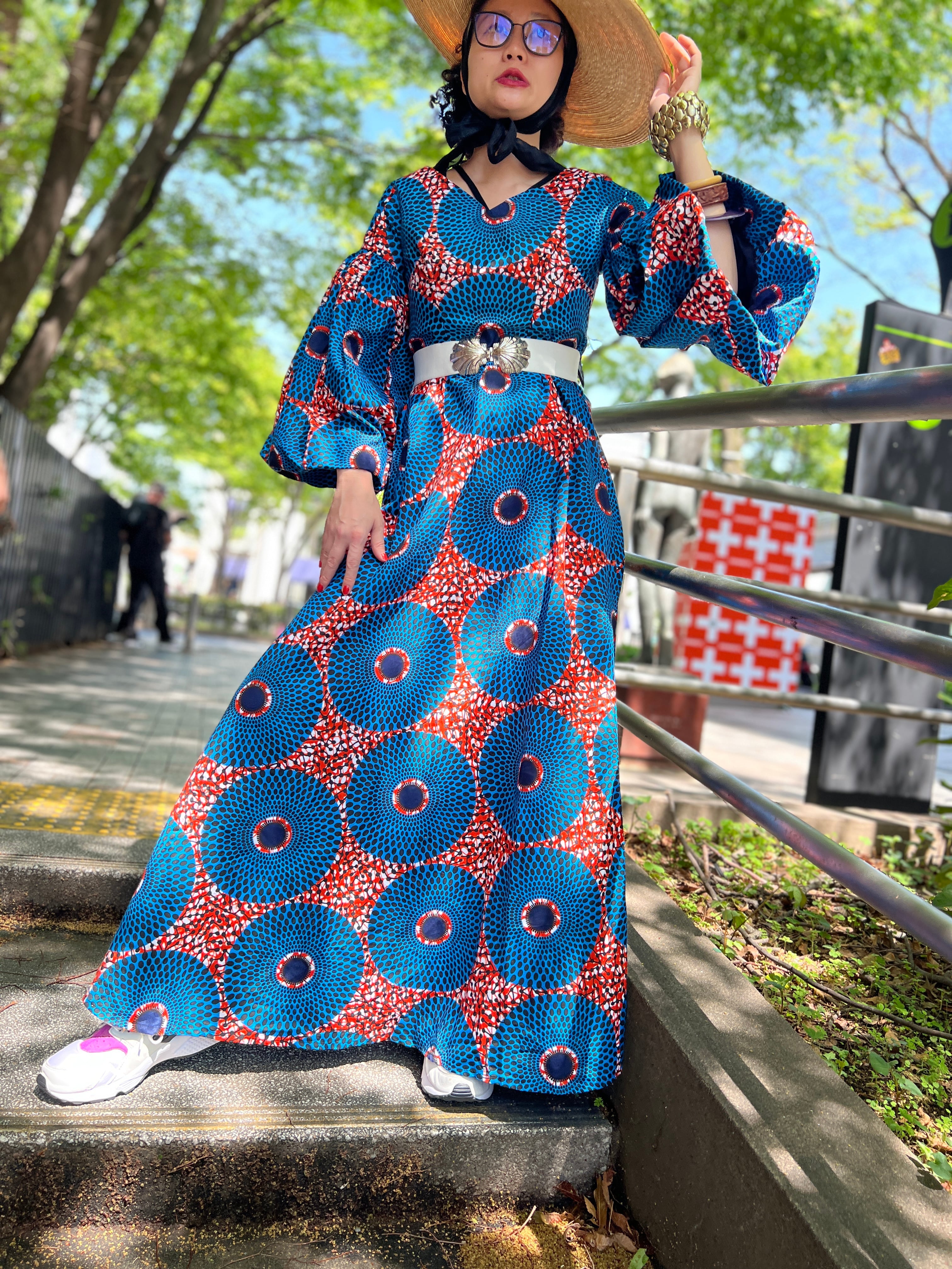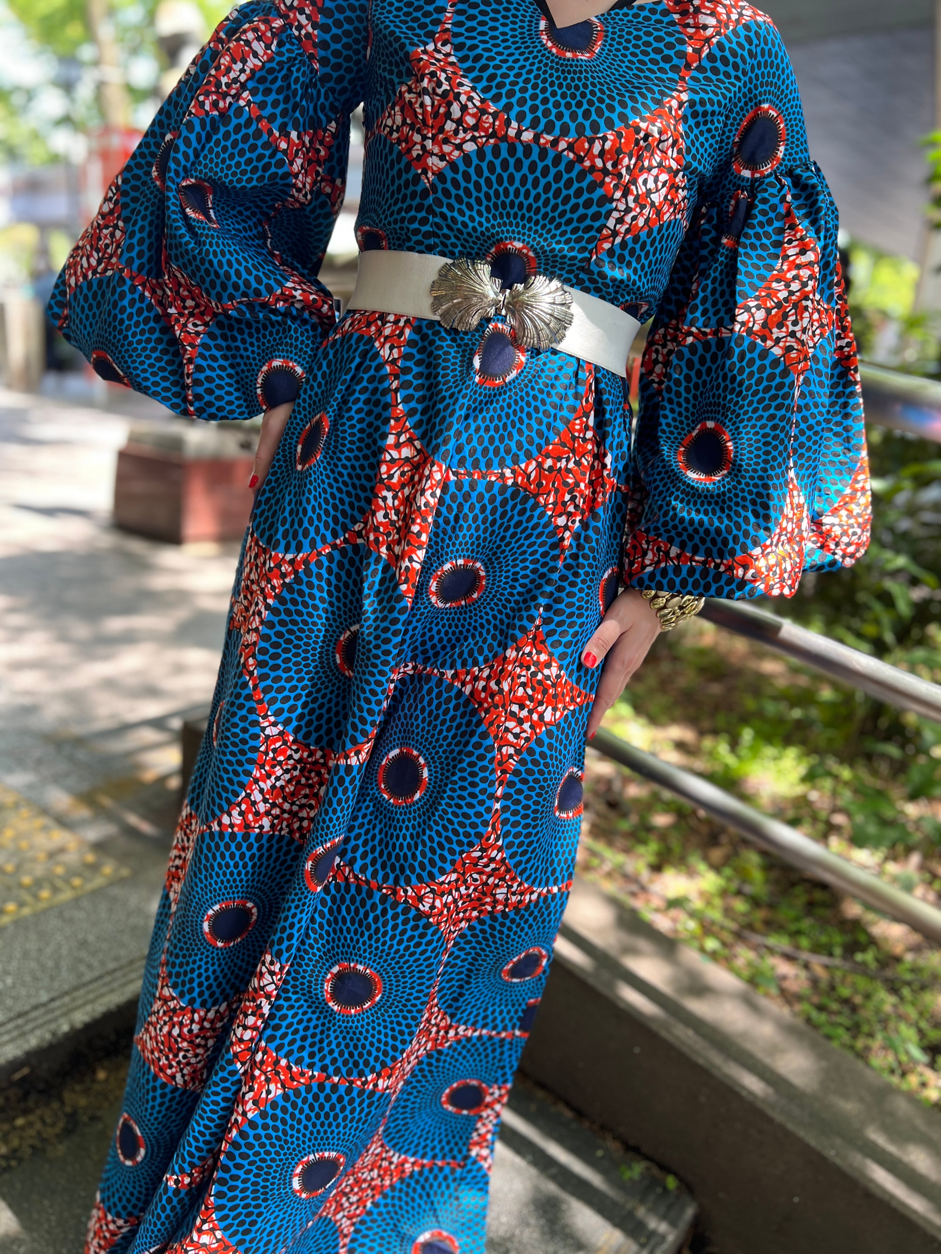 アフリカンバティック ロングワンピース(ボリュームスリーブ)