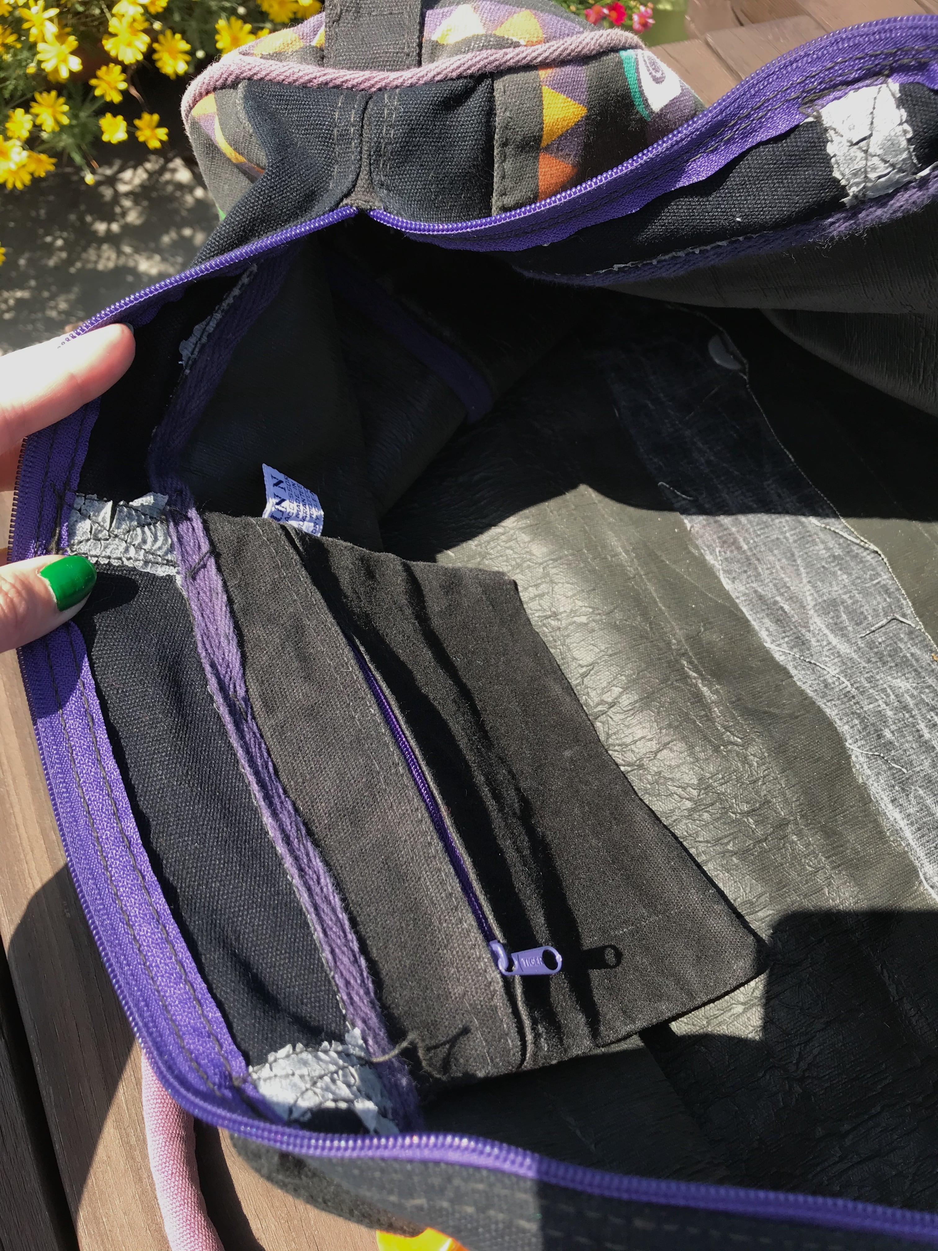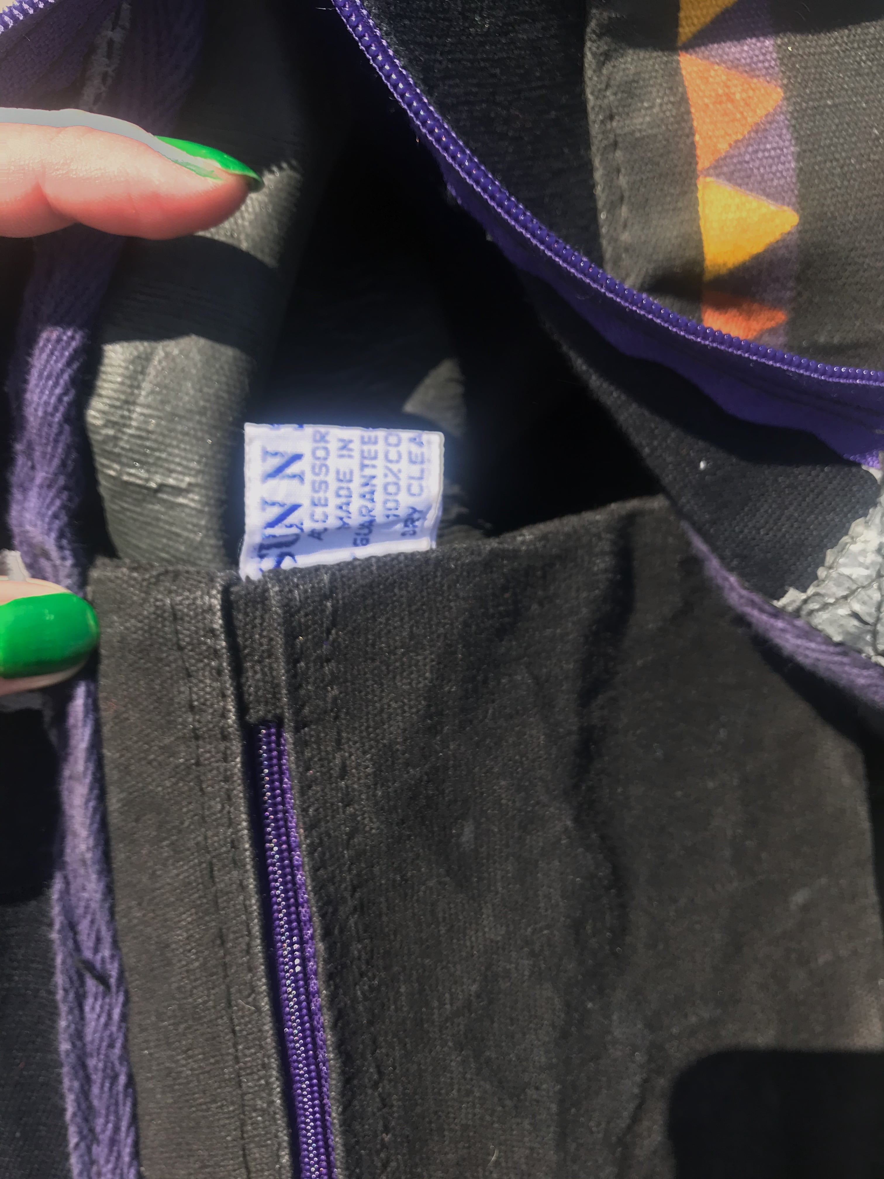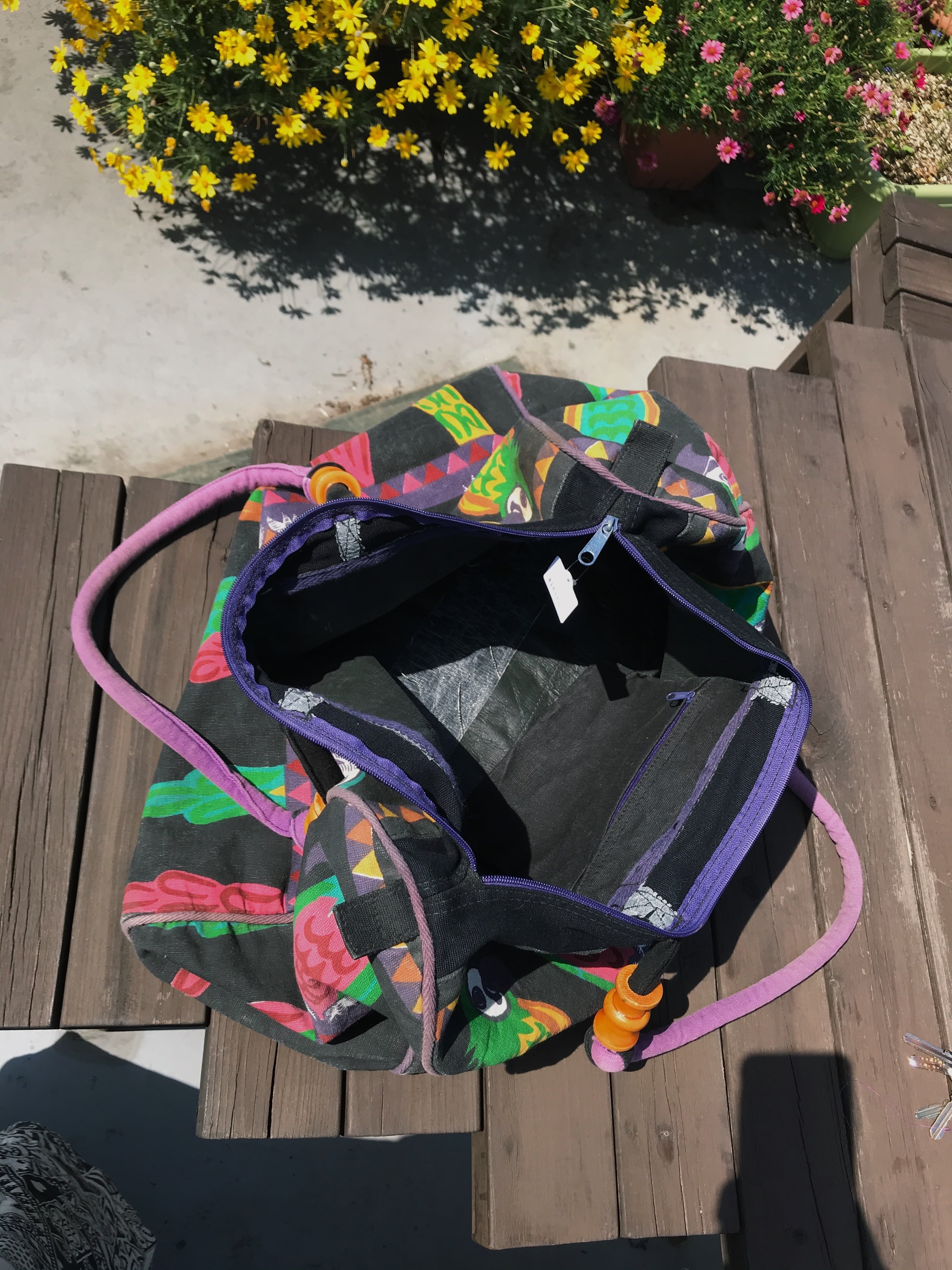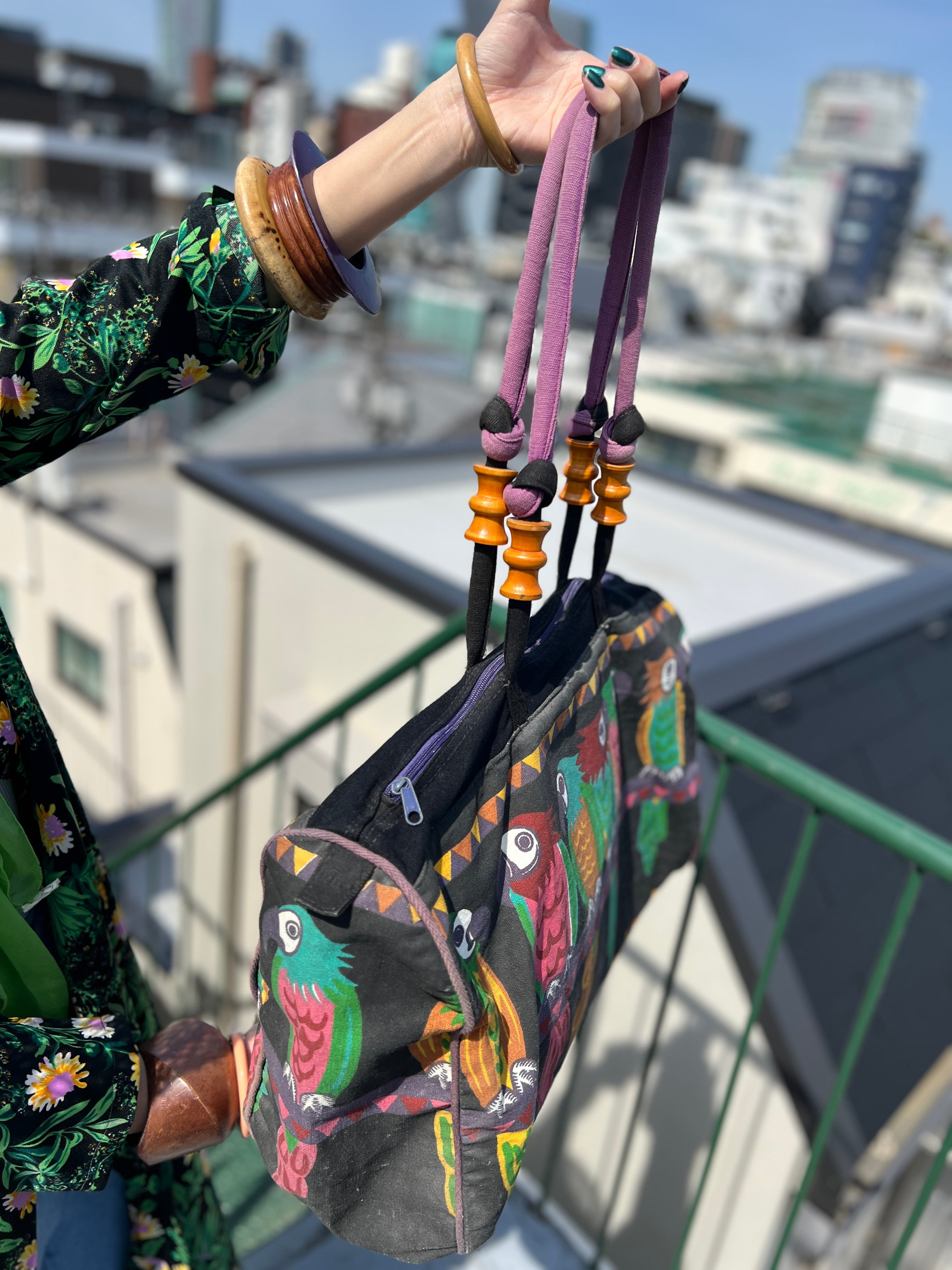 Vintage black × bird cotton big bag ( ヴィンテージ ブラック × 鳥 コットン ビッグ バッグ )