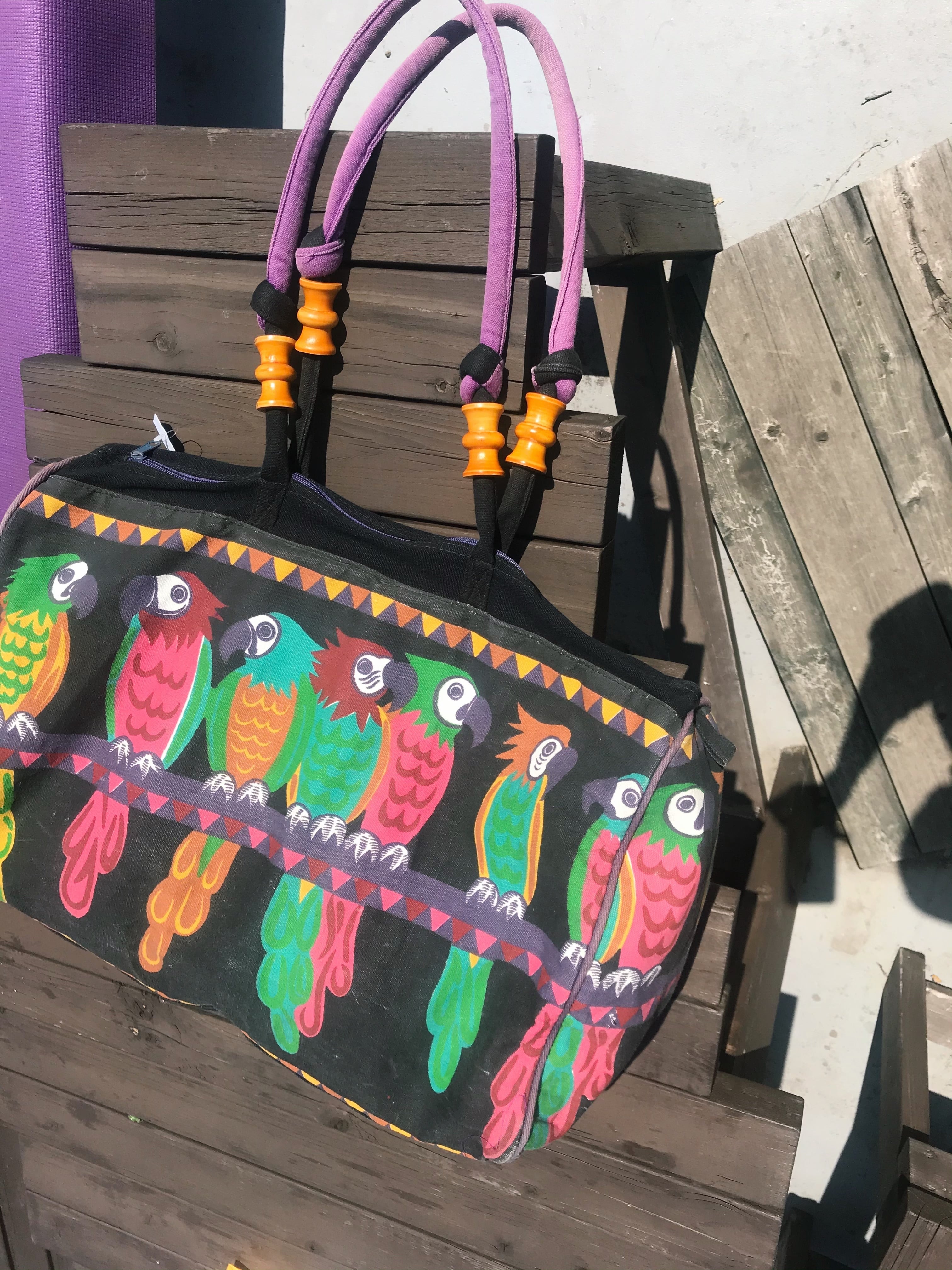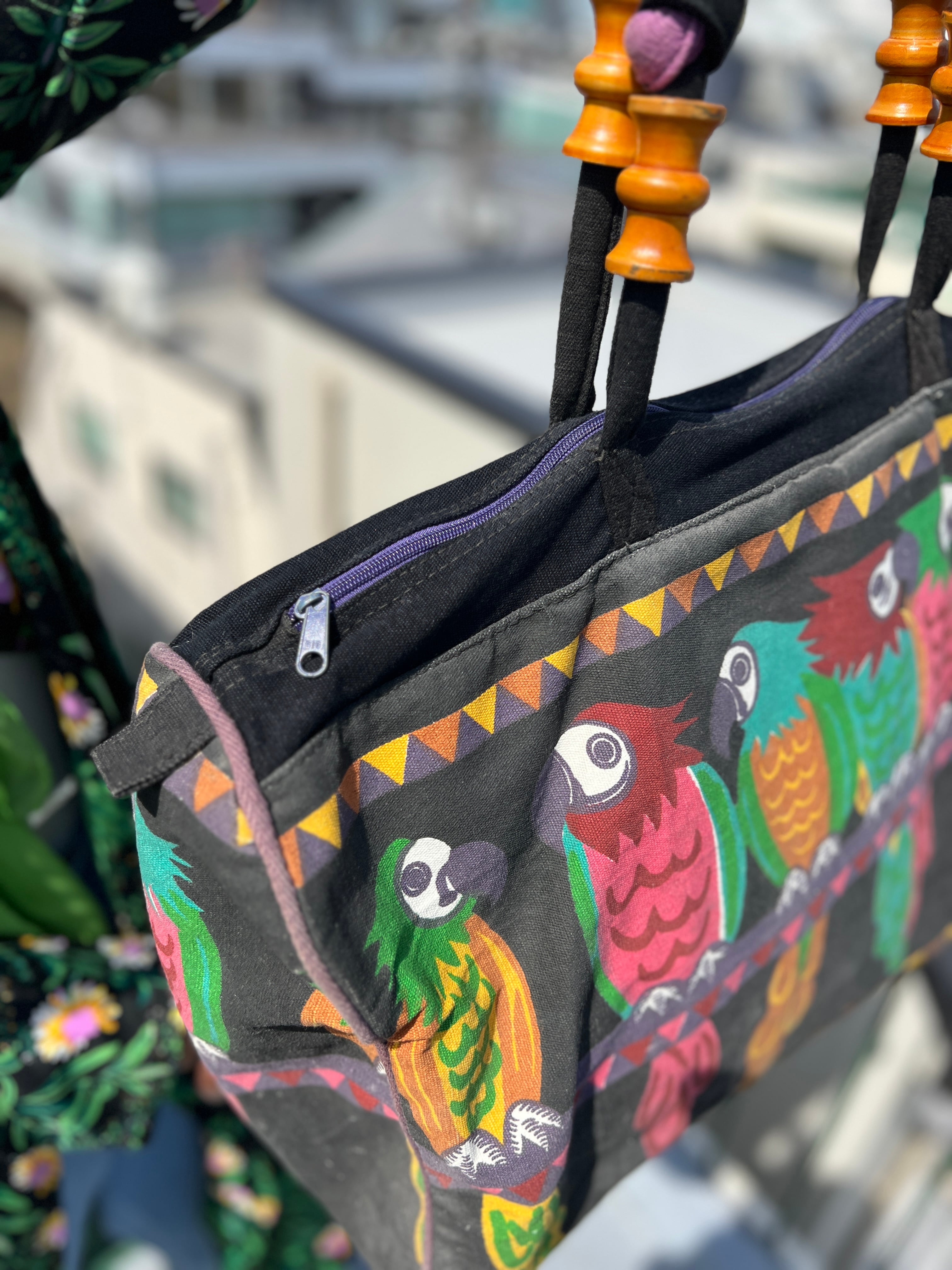 ヴィンテージ ブラック × 鳥 コットン ビッグ バッグになります。