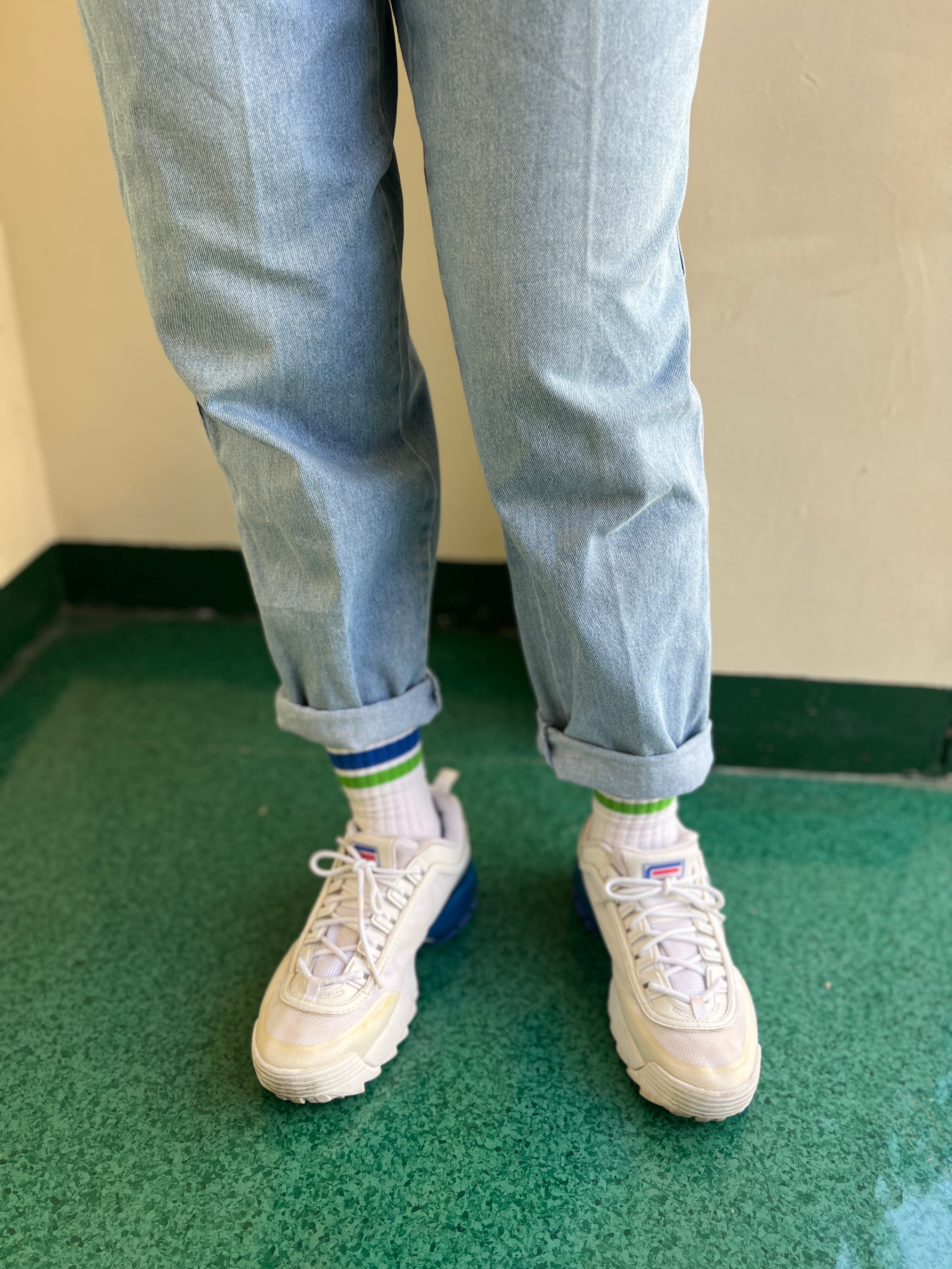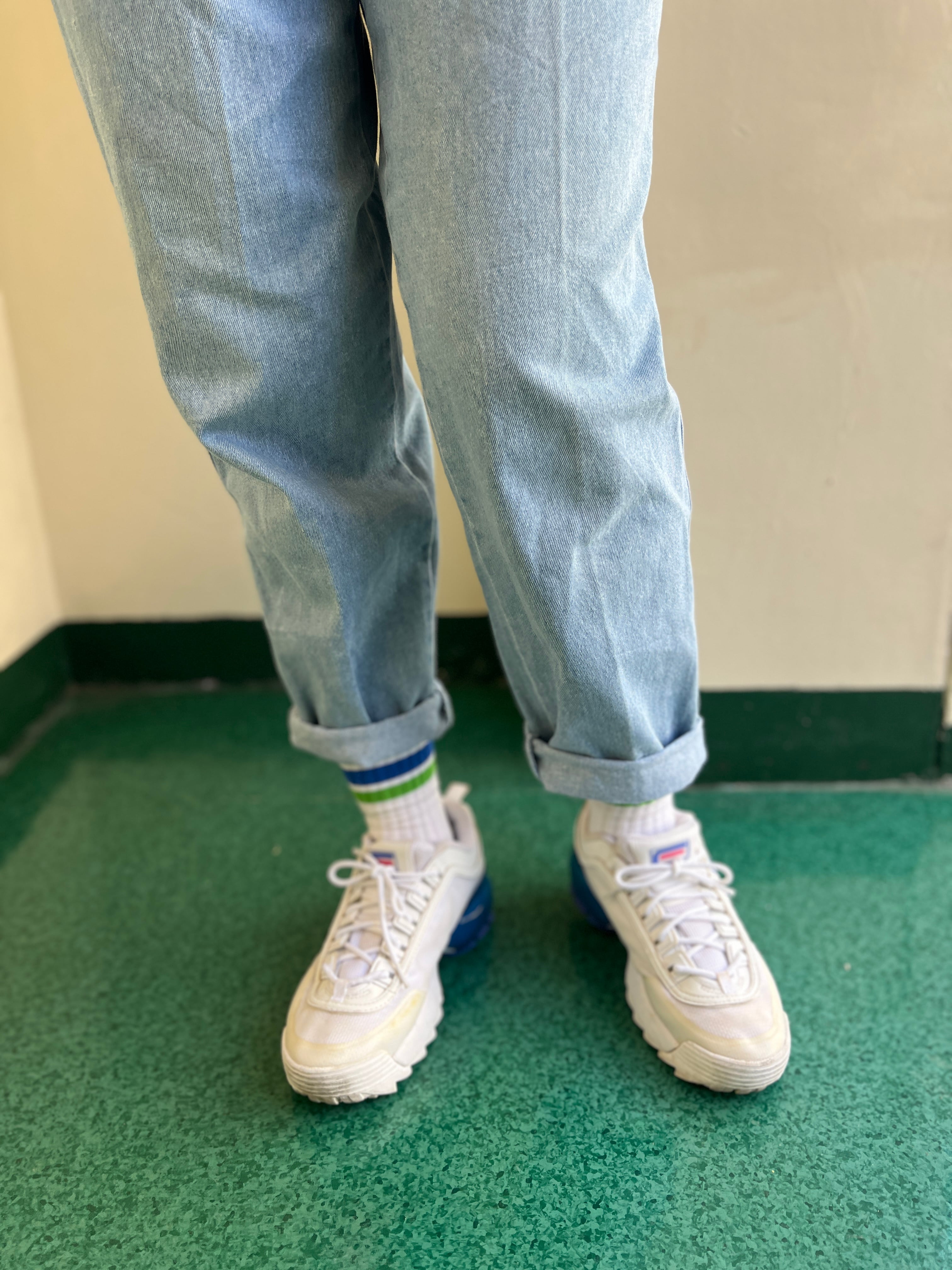 やや色落ちしたライトブルーが軽やかな印象の一本。