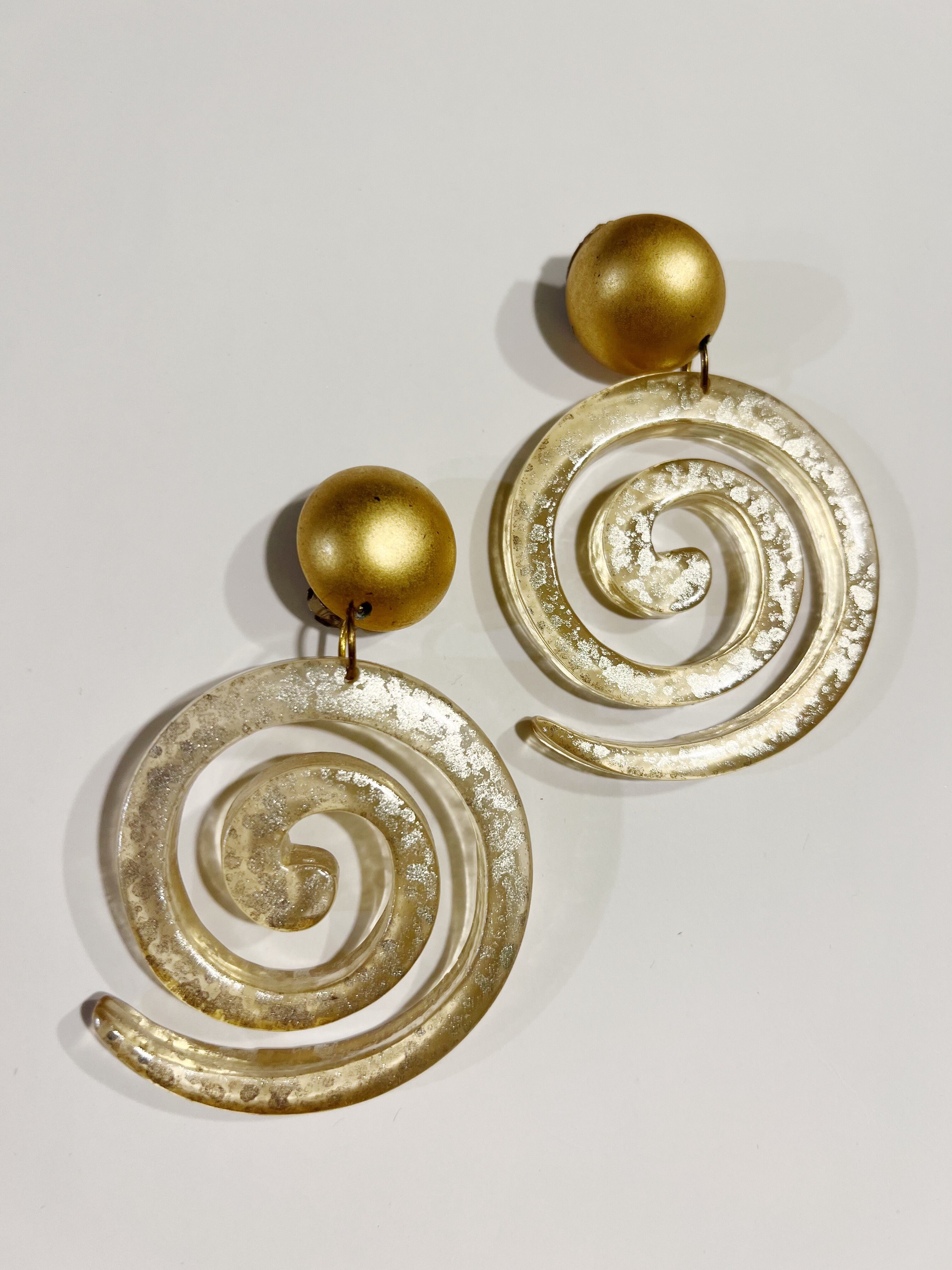 Vintage clear yellow × gold handpaint earrings ( ヴィンテージ ハンドペイント ゴールド × クリア イヤリング