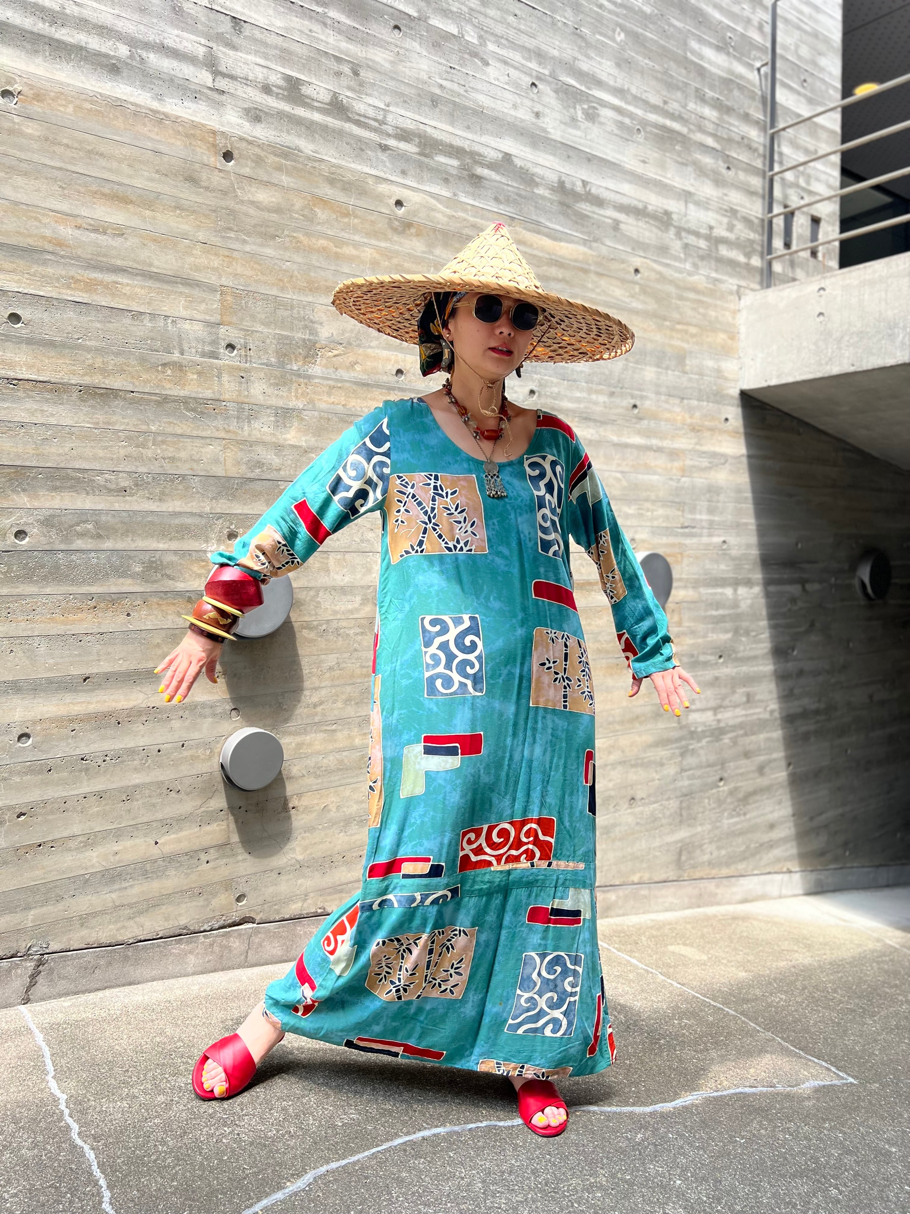 Vintage Indonesia rayon long dress ( ヴィンテージ インドネシア レーヨン ロング ワンピース )