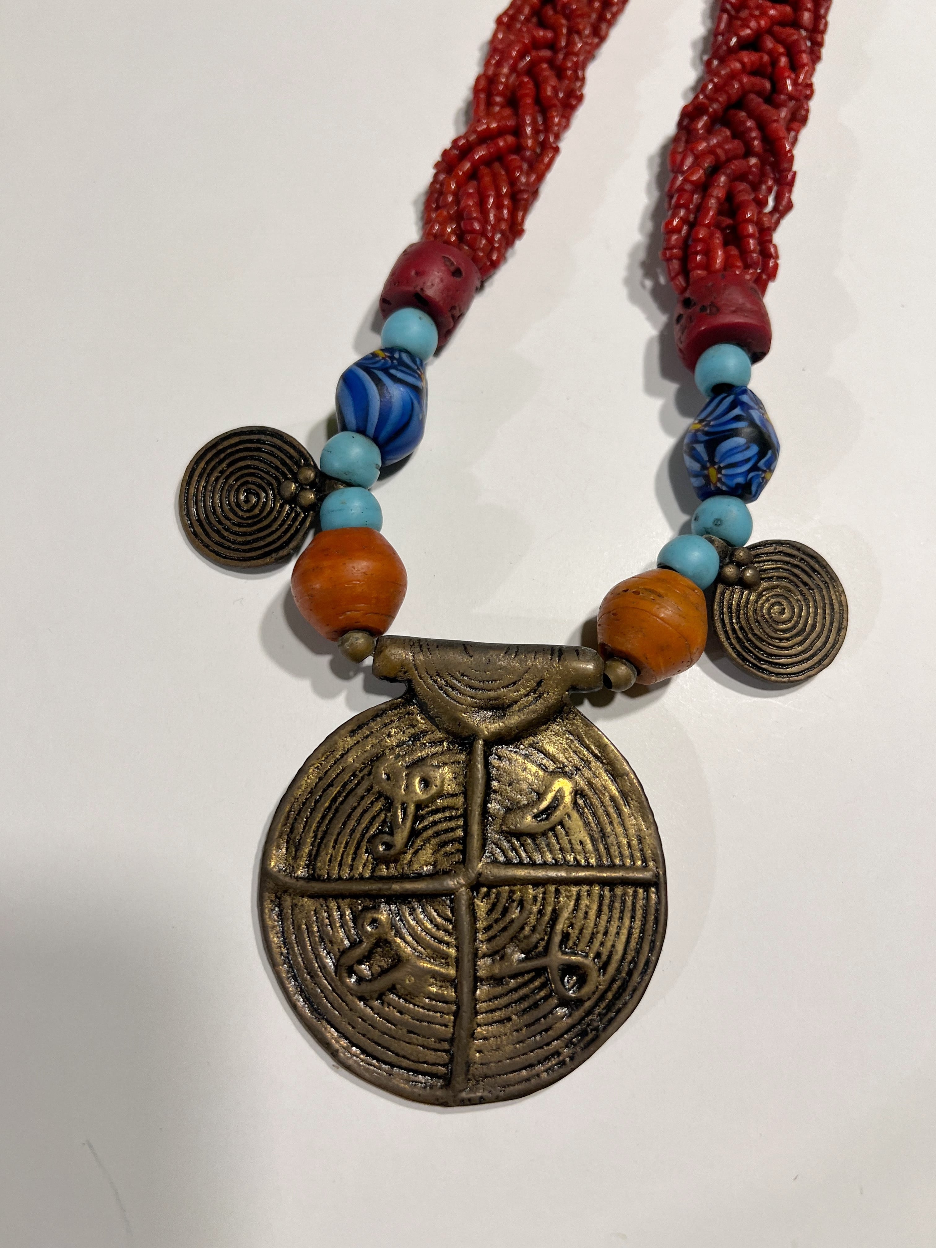 Vintage Naga dark red beads × brass Necklace ( ヴィンテージ ナガ族 ワインレッド × 真鍮 ネックレス )