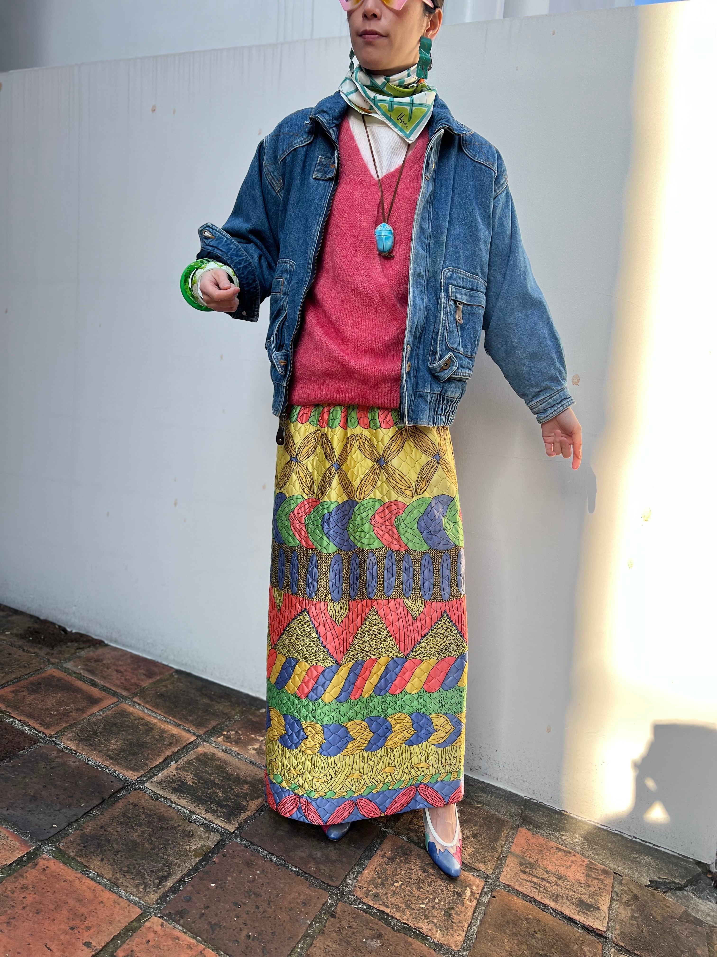 70s Lemon yellow quilting skirt ( ヴィンテージ レモンイエロー キルティング スカート )